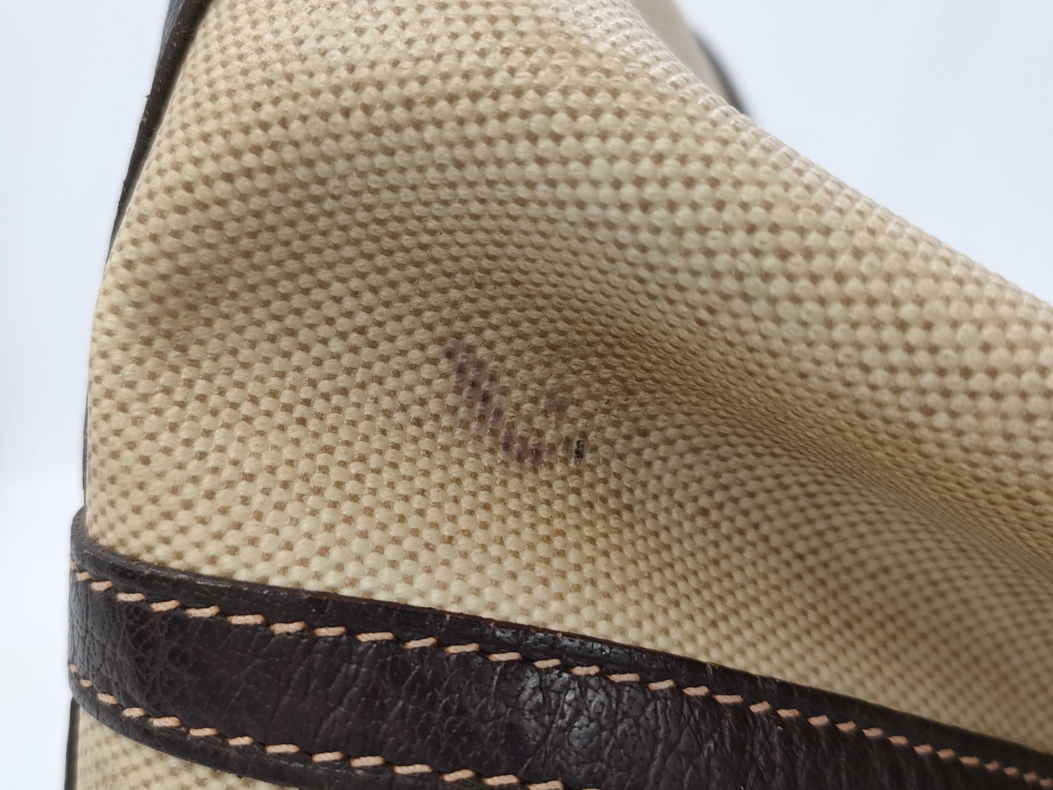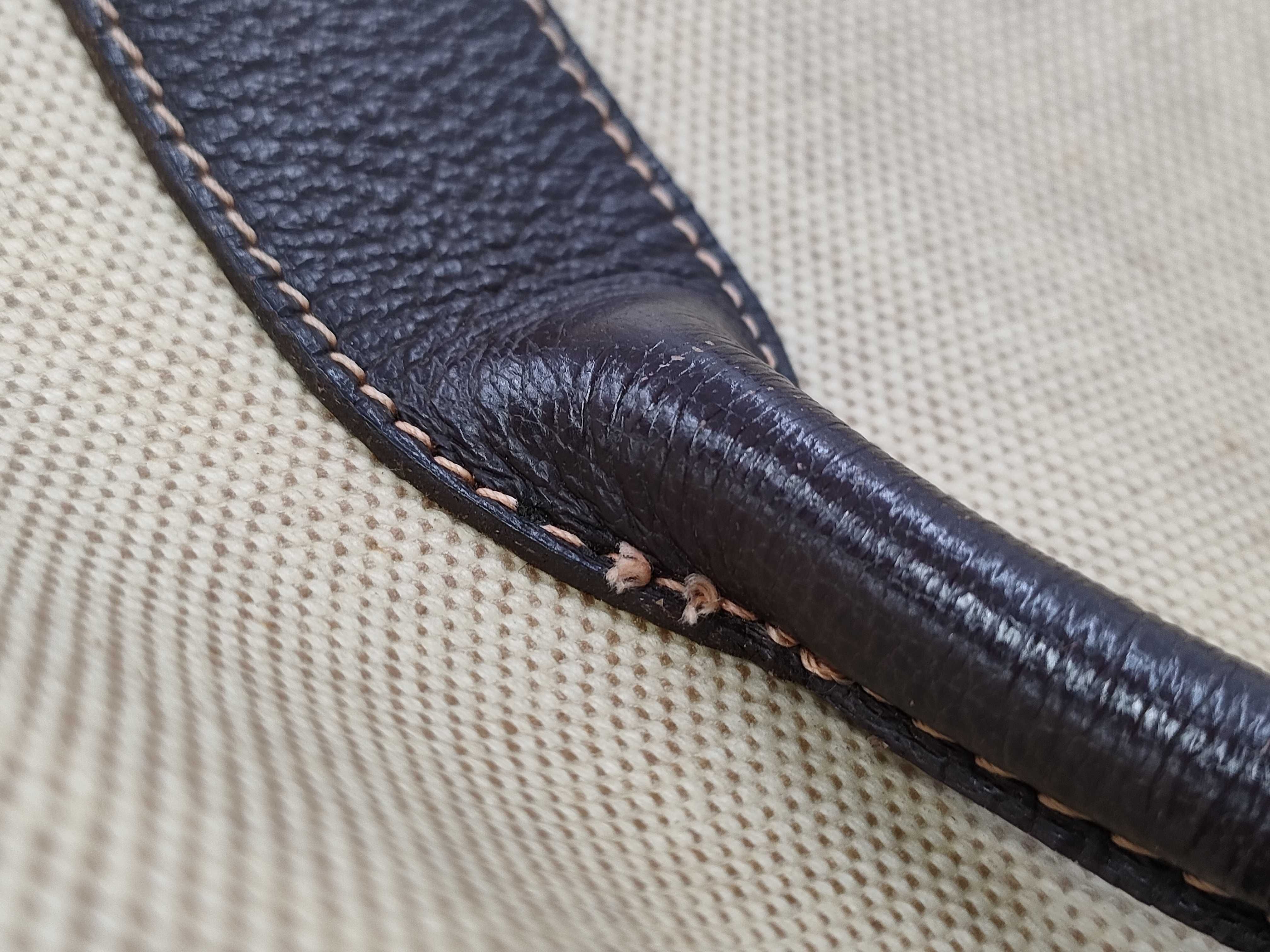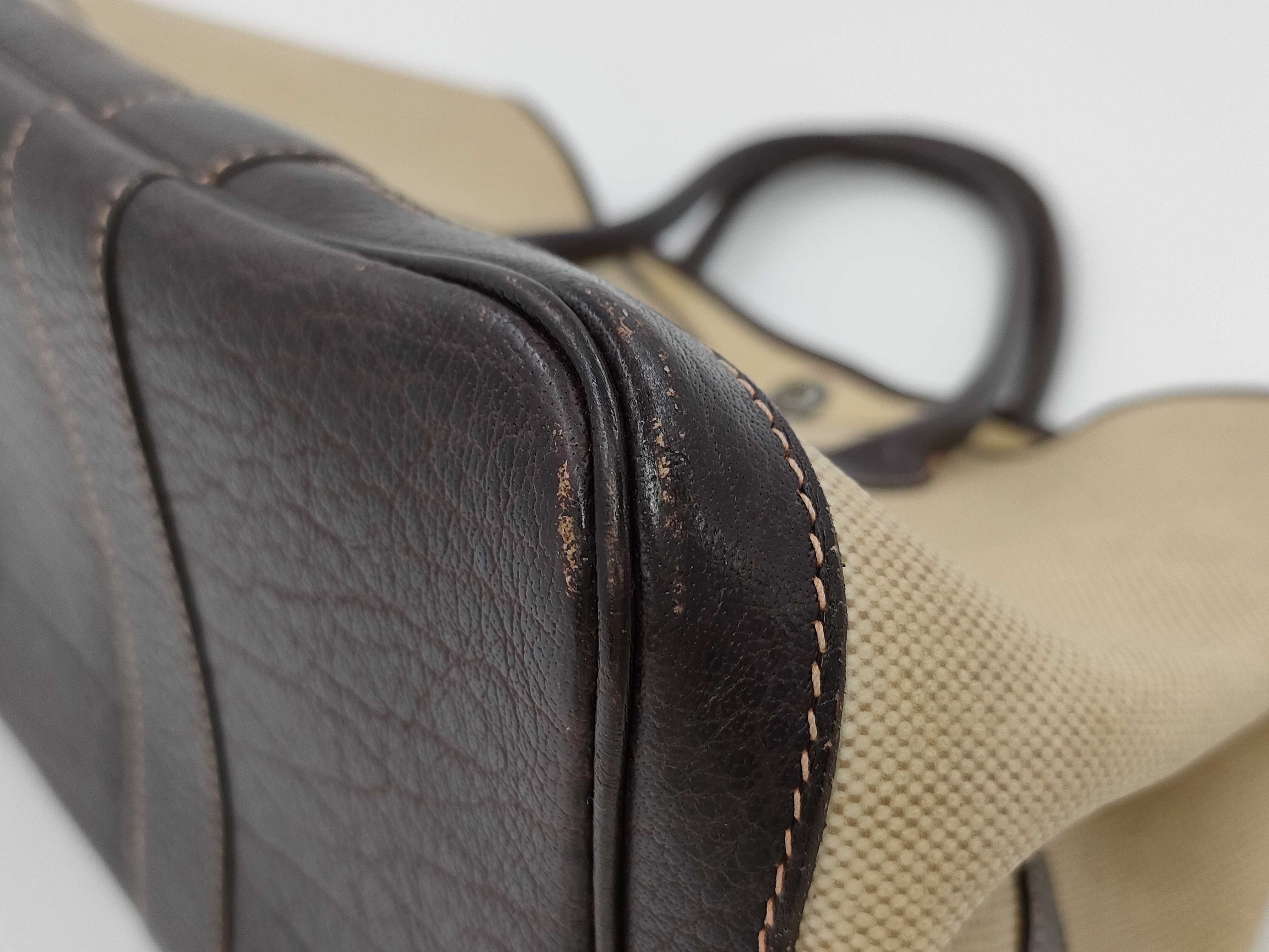 全体ヤケ変色シミ(中) 角擦れ剥げ(中) 破れ(小) 金具擦れ(中) 持ち手ヒビ(小) 内側ヤケ変色(中) 【刻印