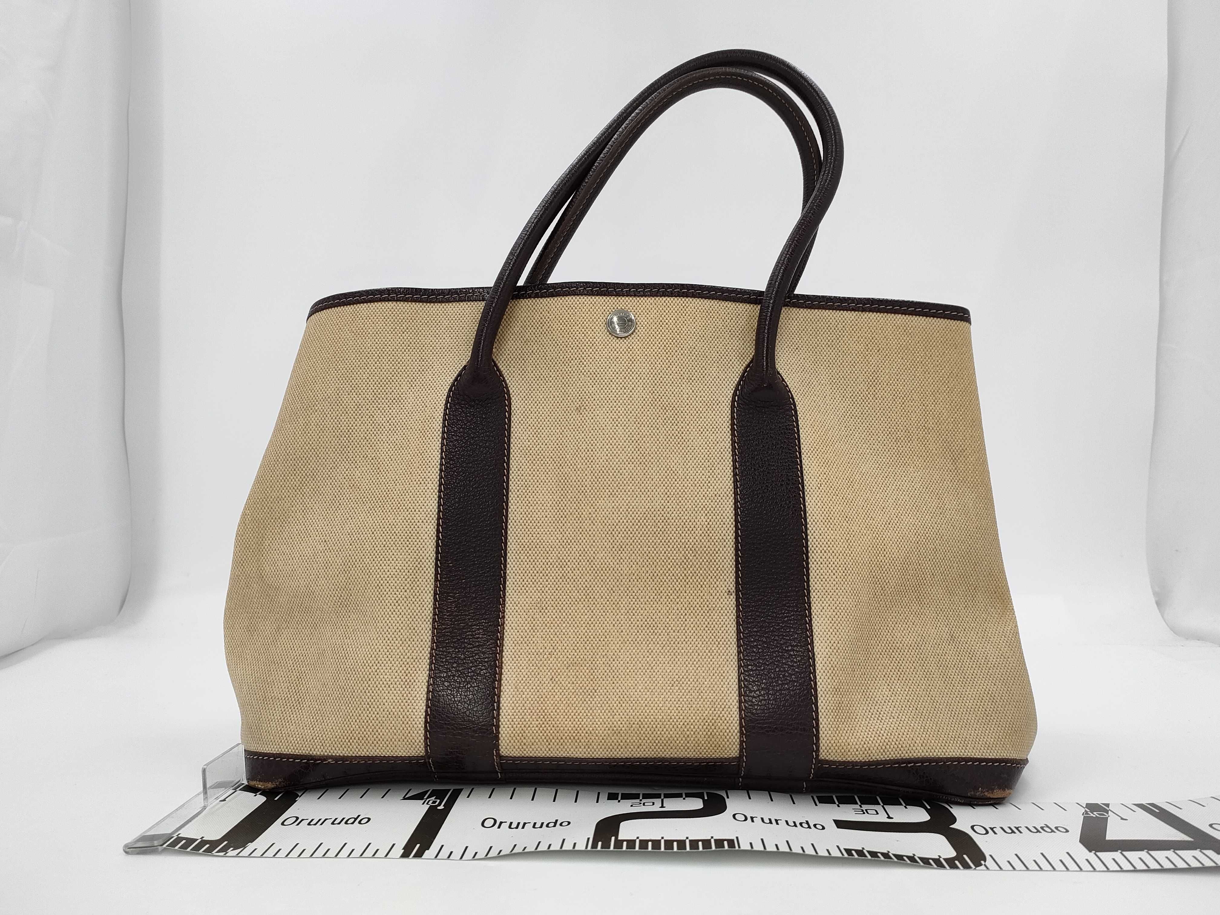 (A_0079)HERMES エルメス ガーデンパーティPM トワルアッシュ ベージュ ブラウン D刻印 トートバッグ