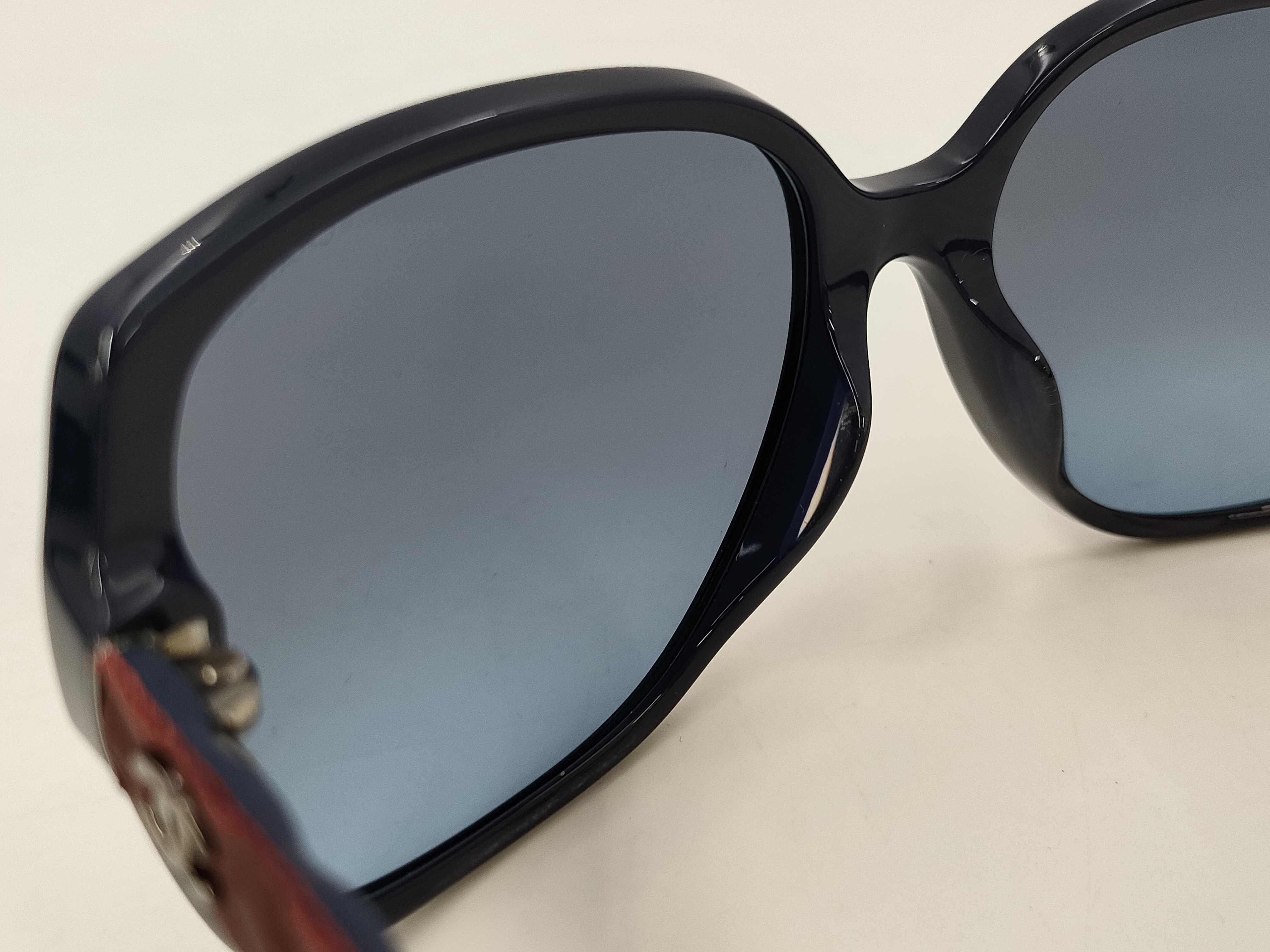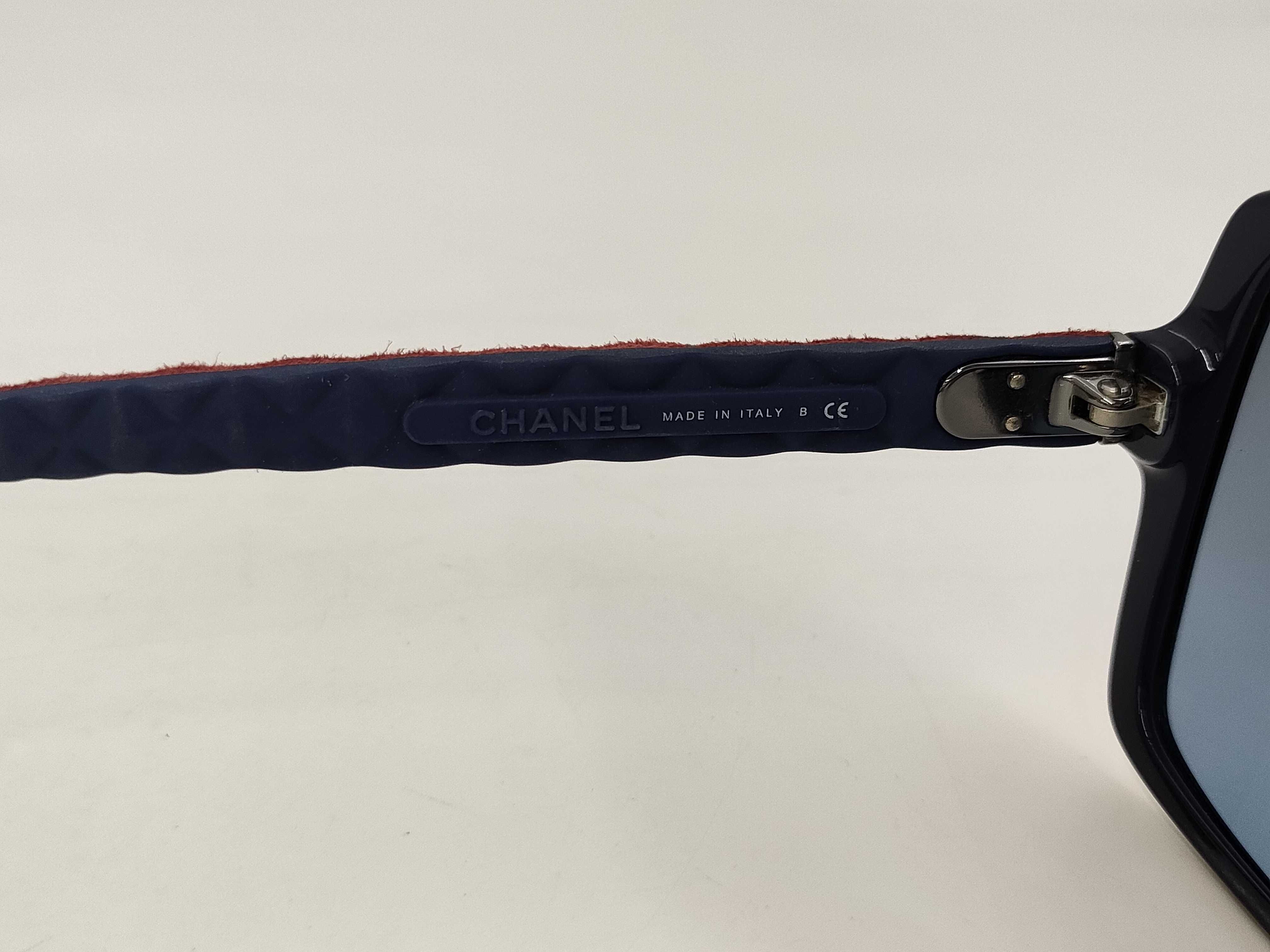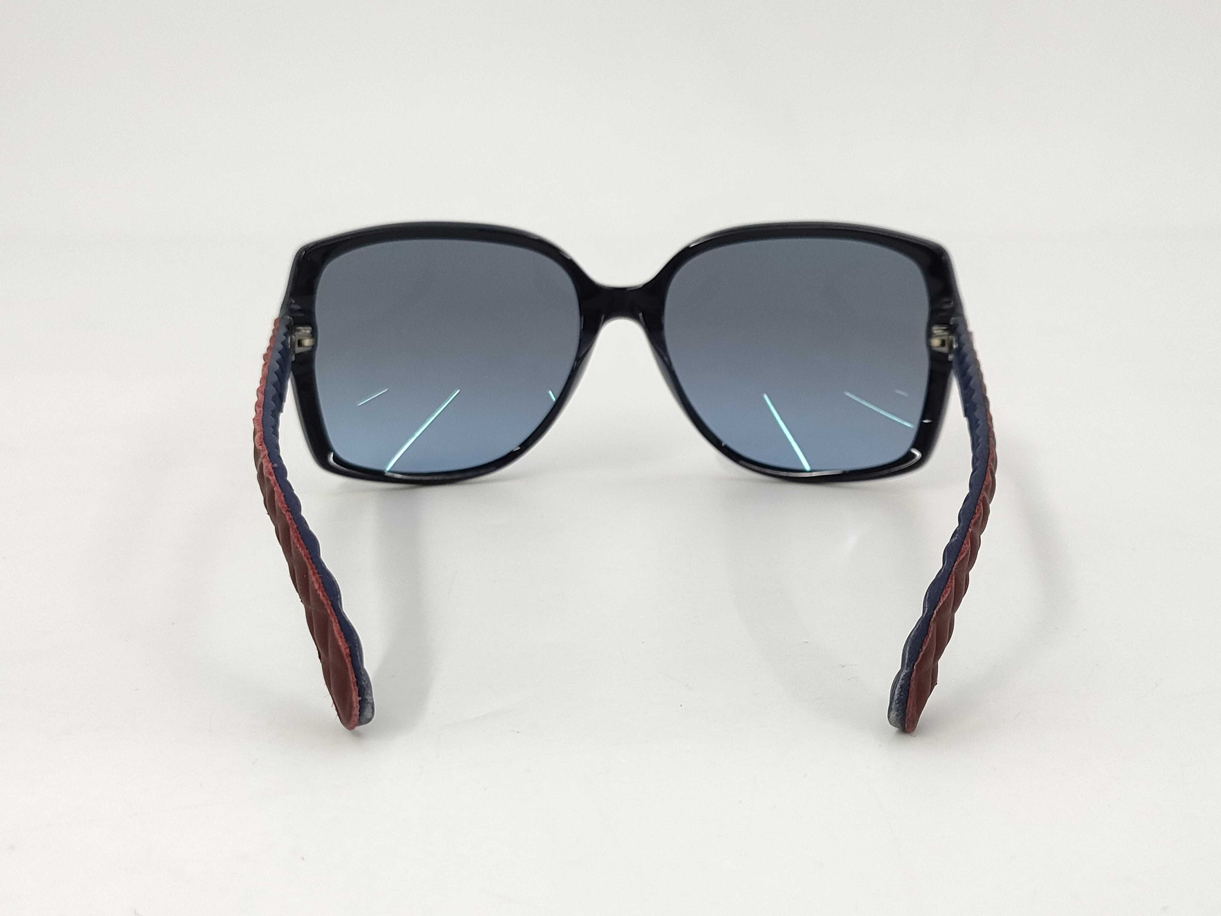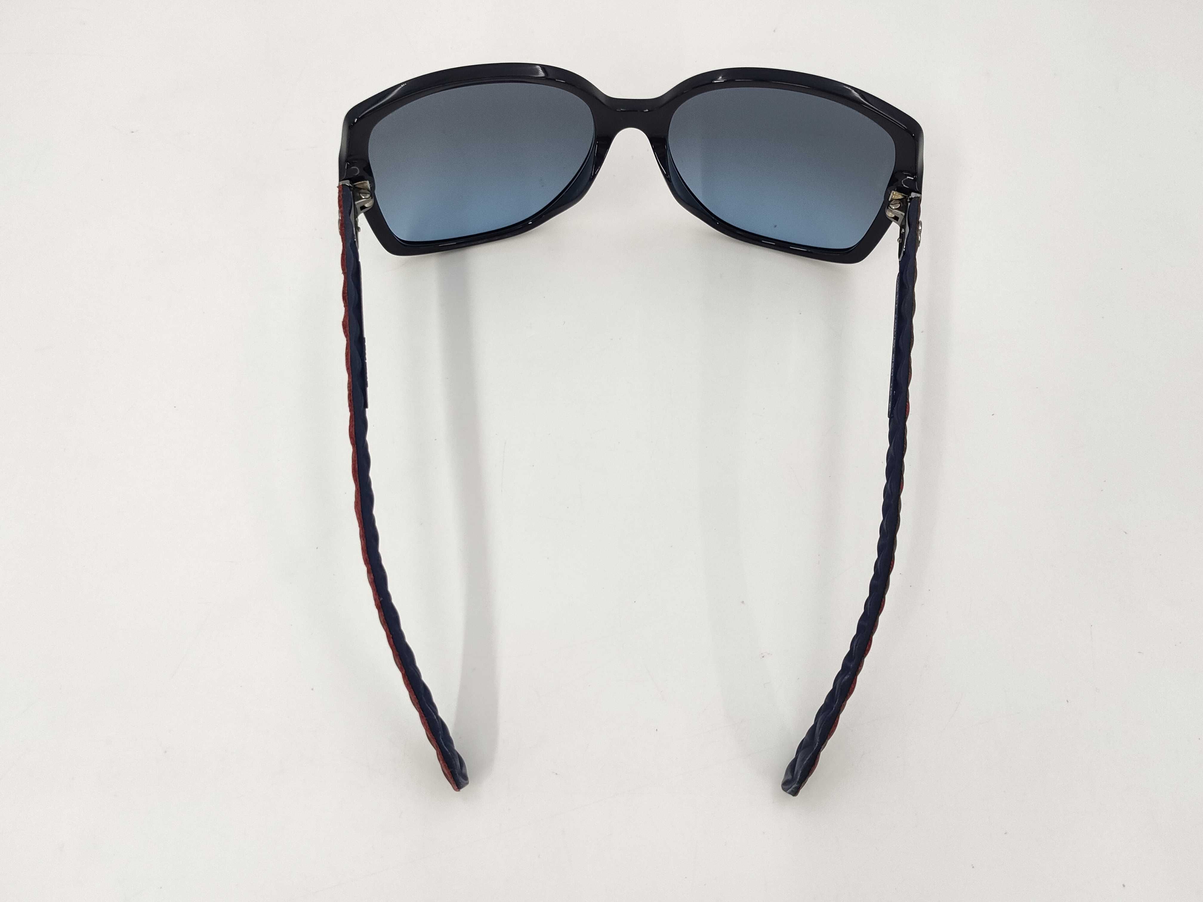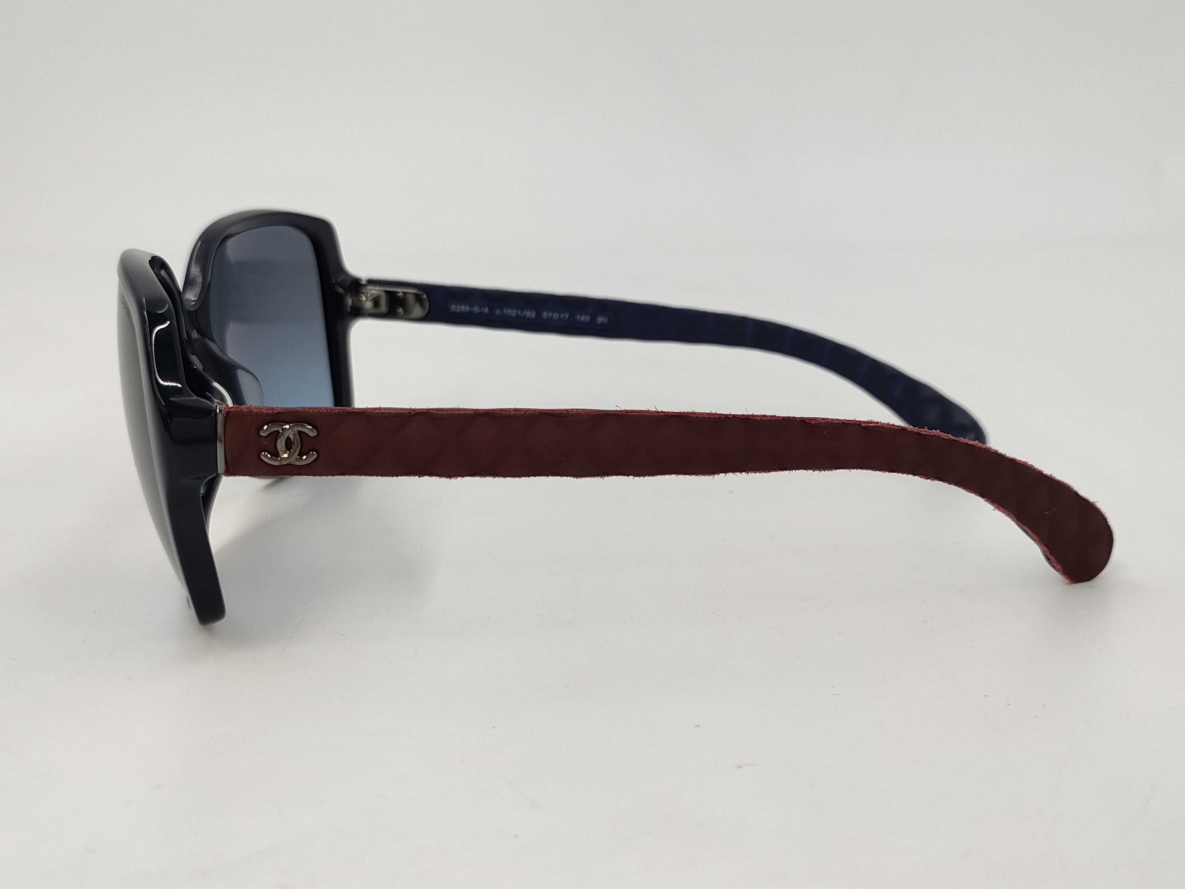 (B_0014)◆CHANEL シャネル サングラス プラスチック/レザー ブルー/ボルドー シルバー金具 サングラス・メガネ