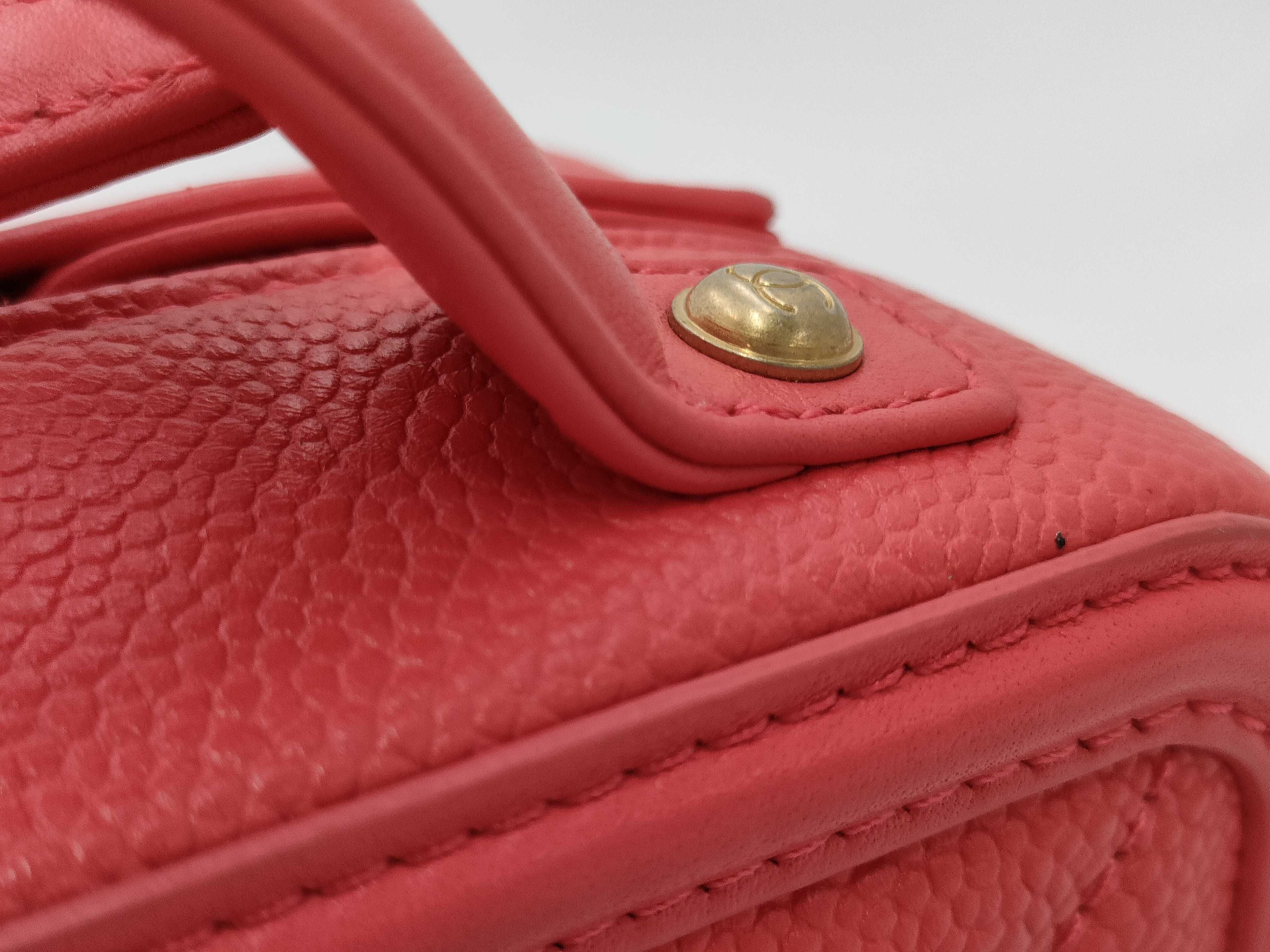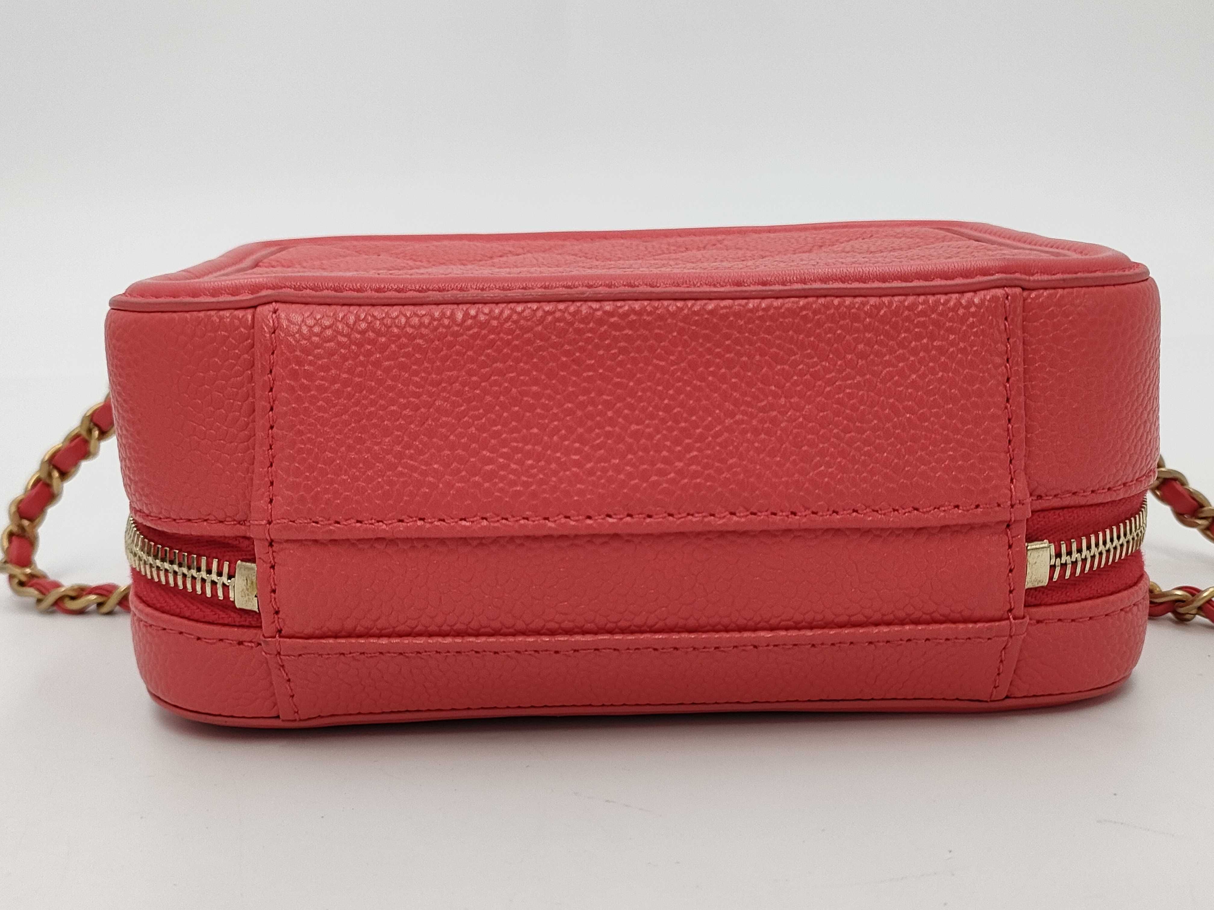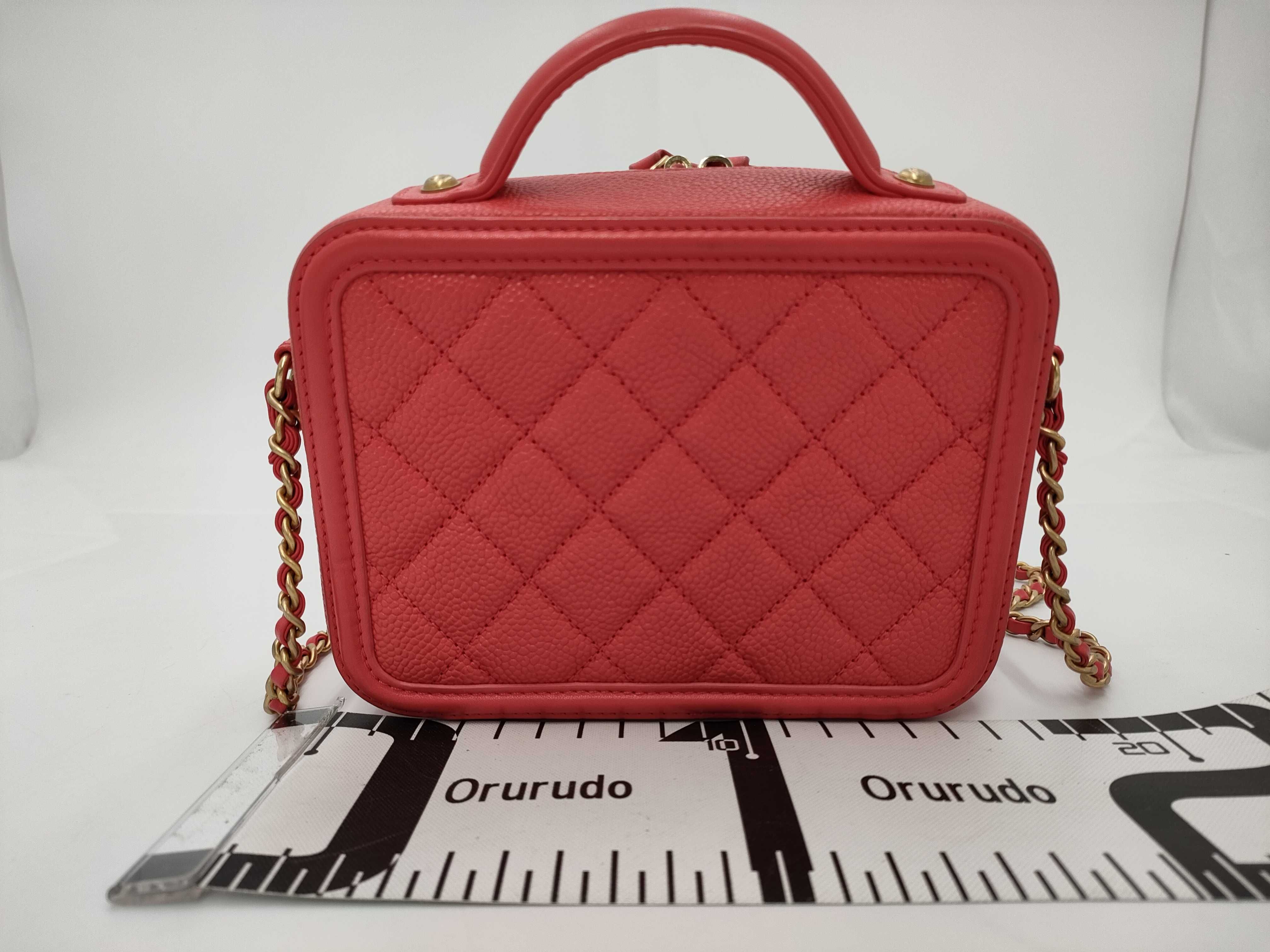 (B_0024)CHANEL シャネル スモール CC フィリグリー バニティケース バッグ レッド キルティング カーフスキン ゴールド金具 ショルダーバッグ