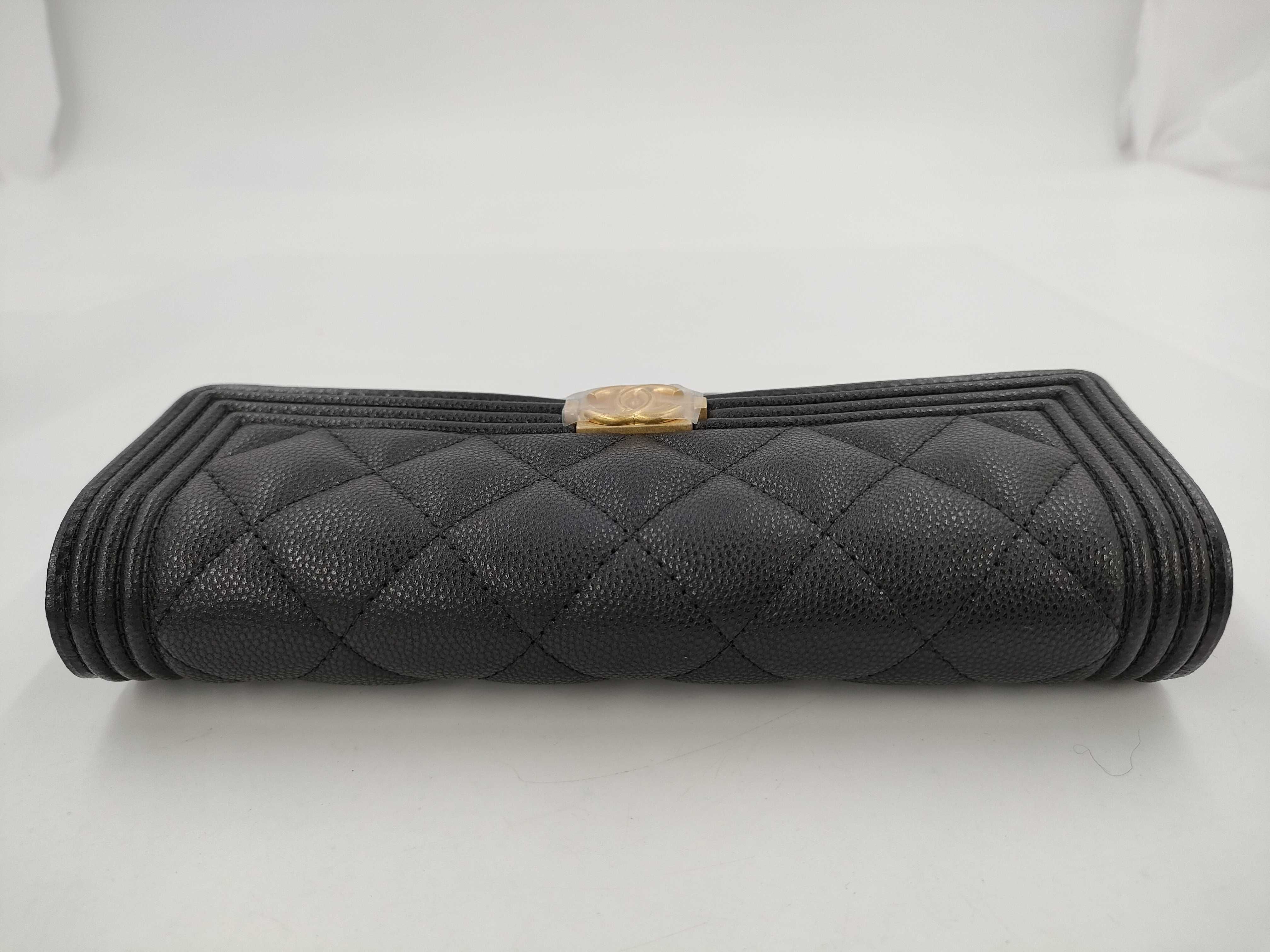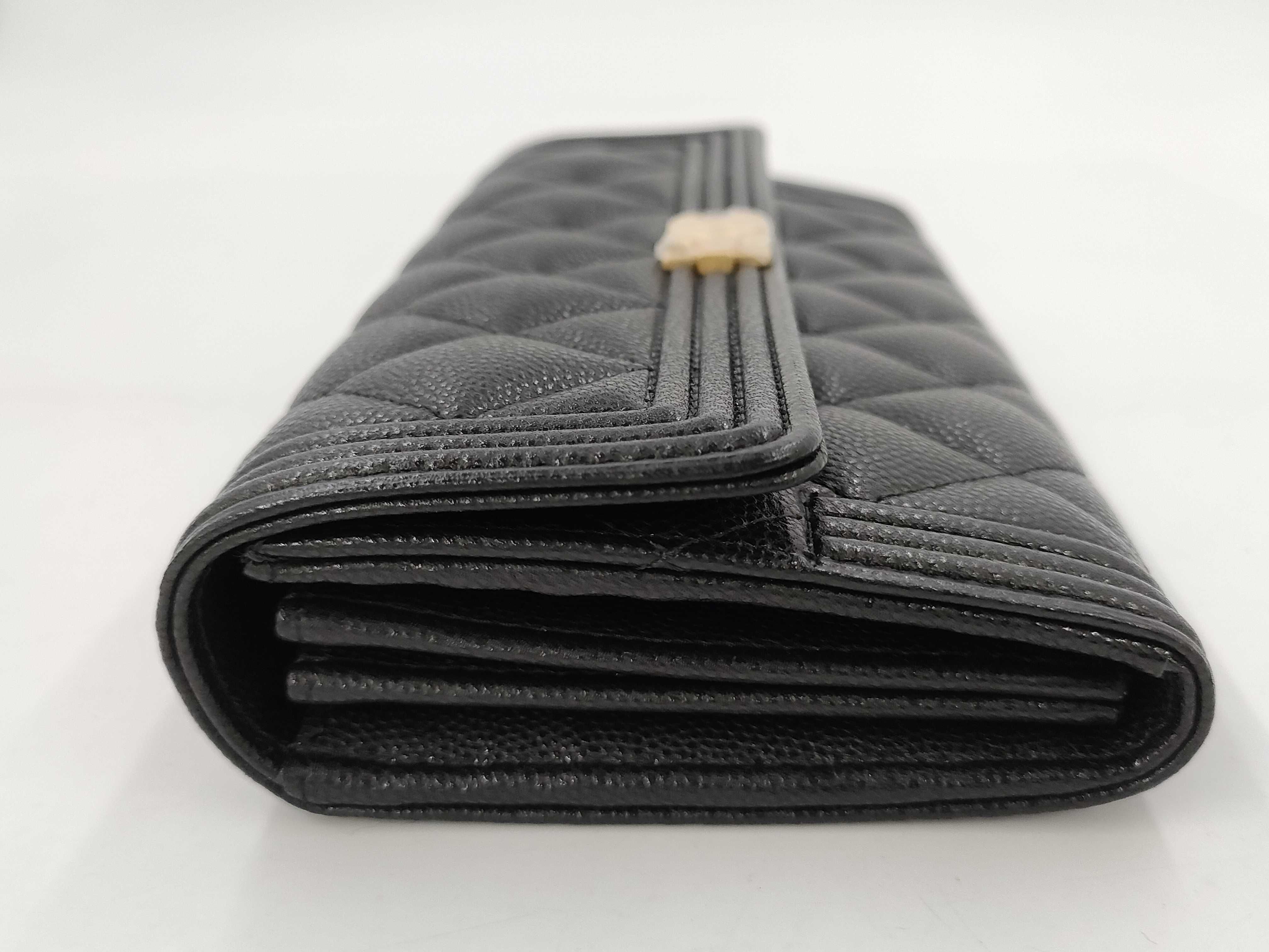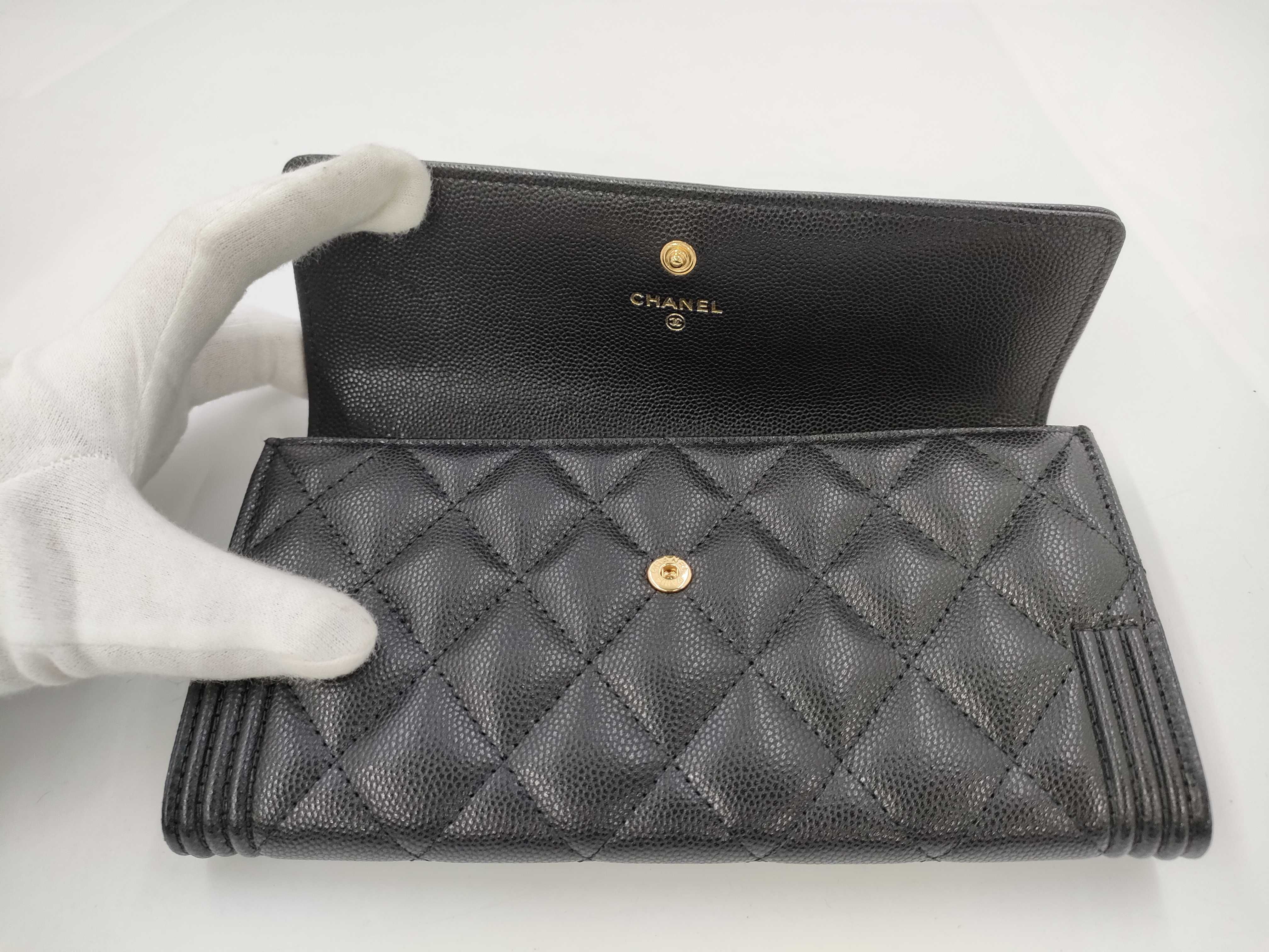 (B_0053)CHANEL シャネル ボーイ A80286 ブラック キャビアスキン GP金具 フラップ 長財布 財布