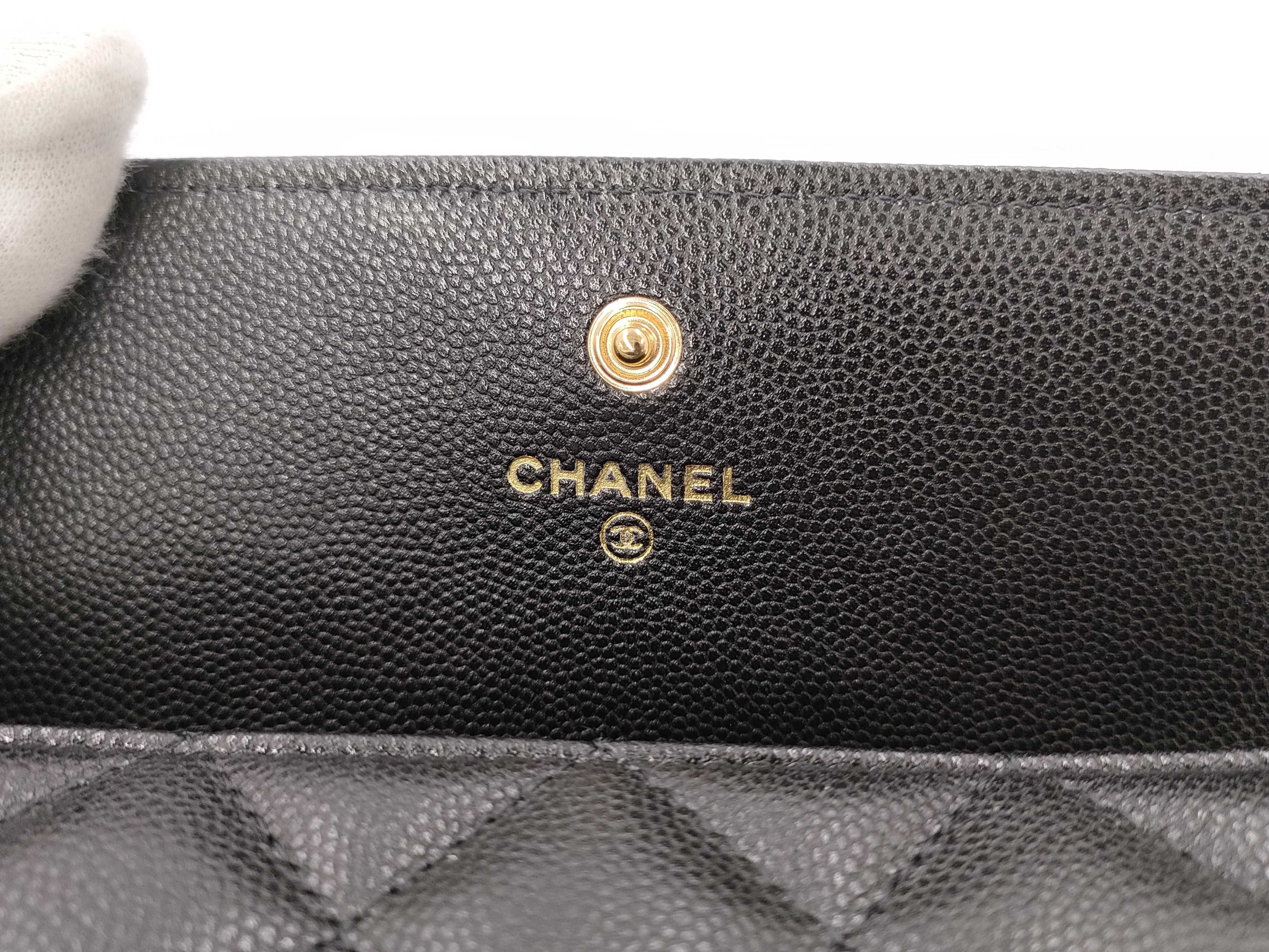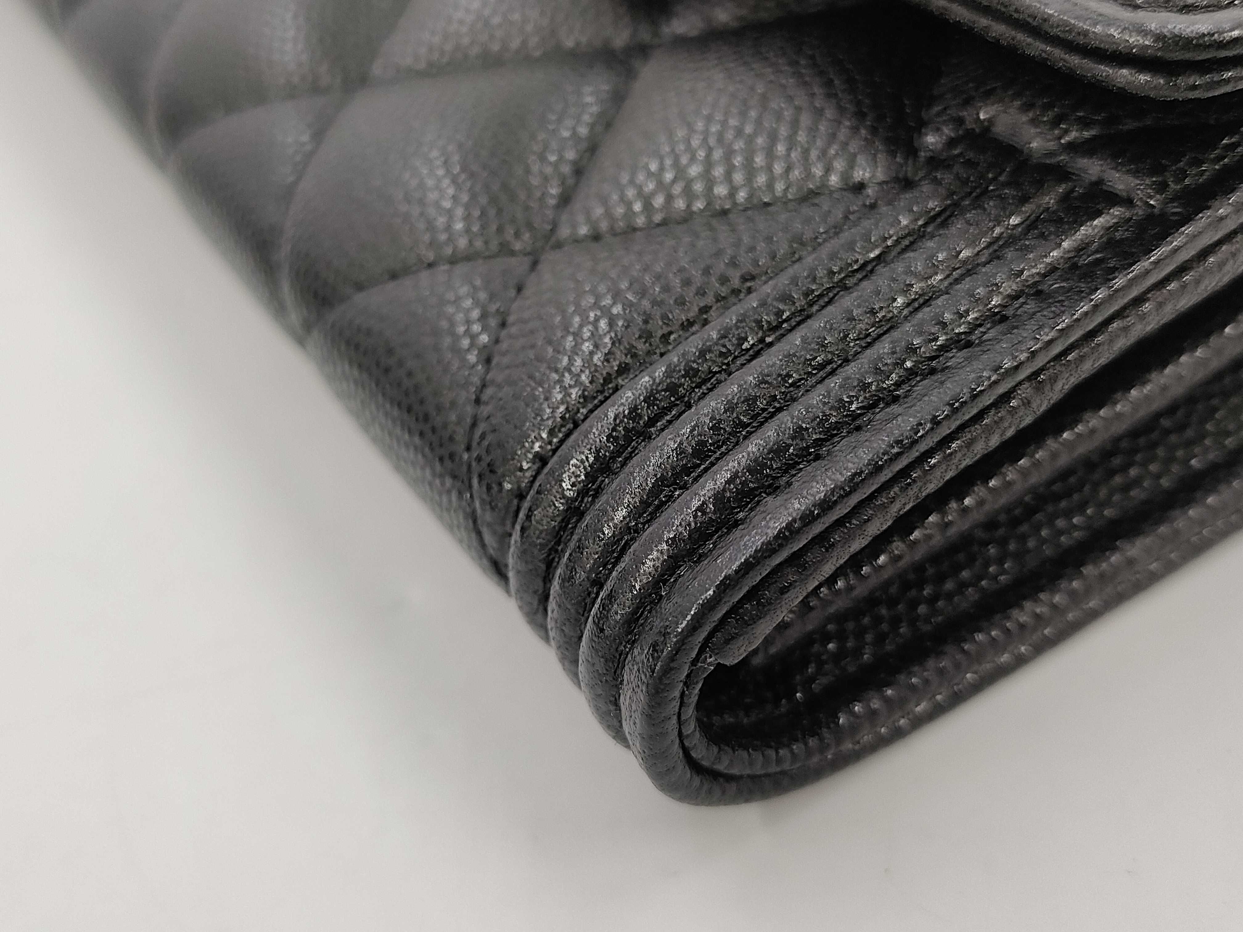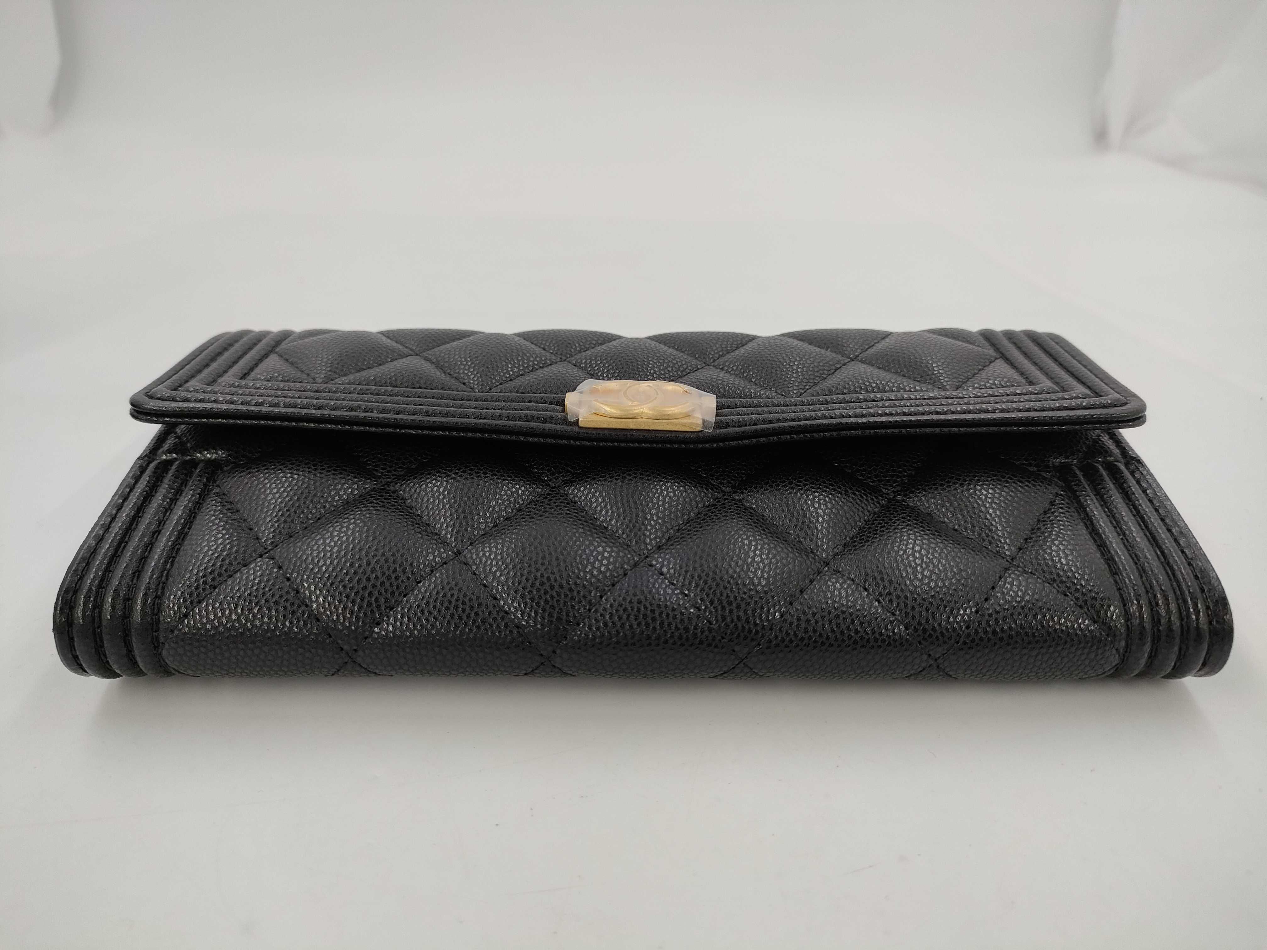 (B_0053)CHANEL シャネル ボーイ A80286 ブラック キャビアスキン GP金具 フラップ 長財布 財布