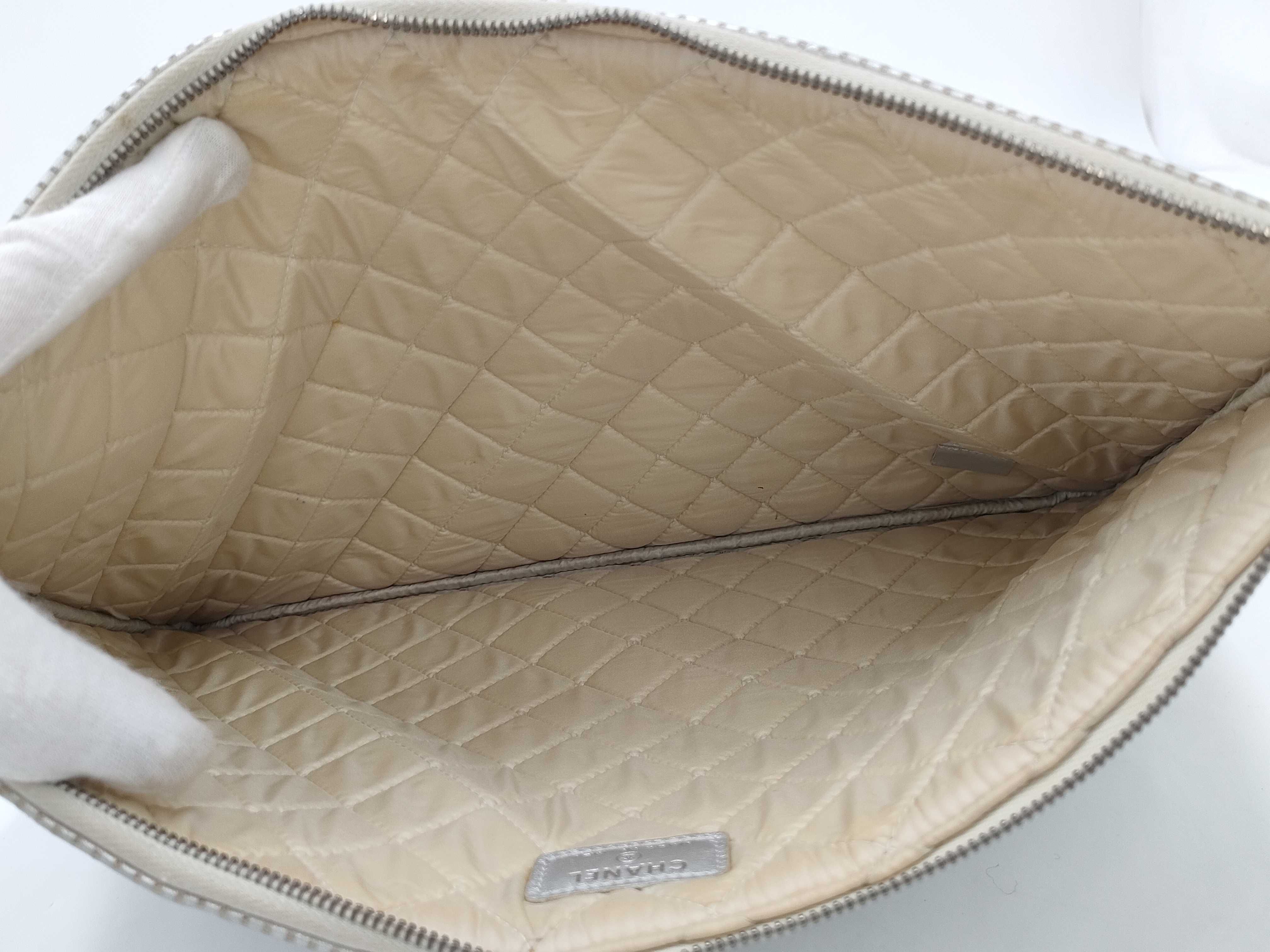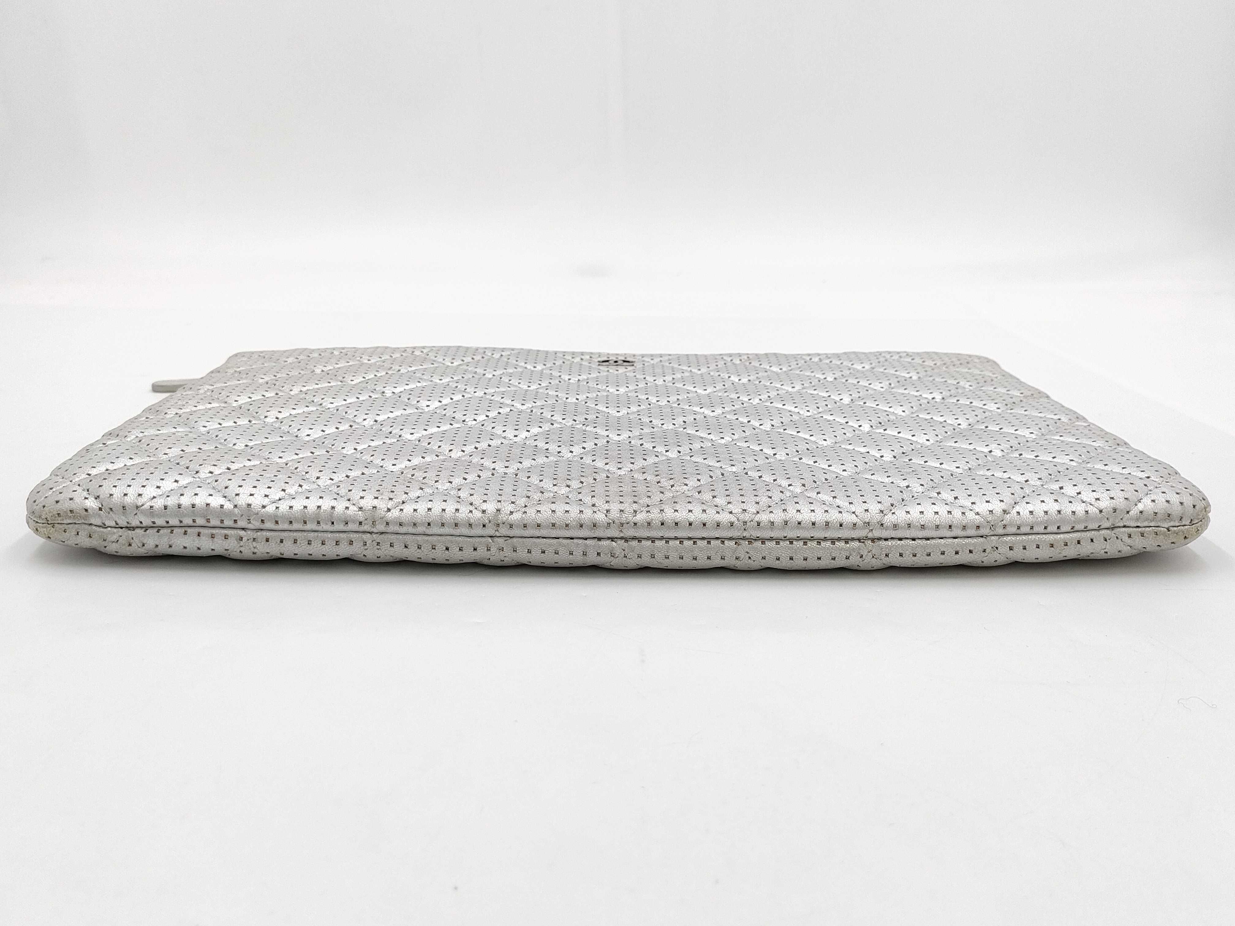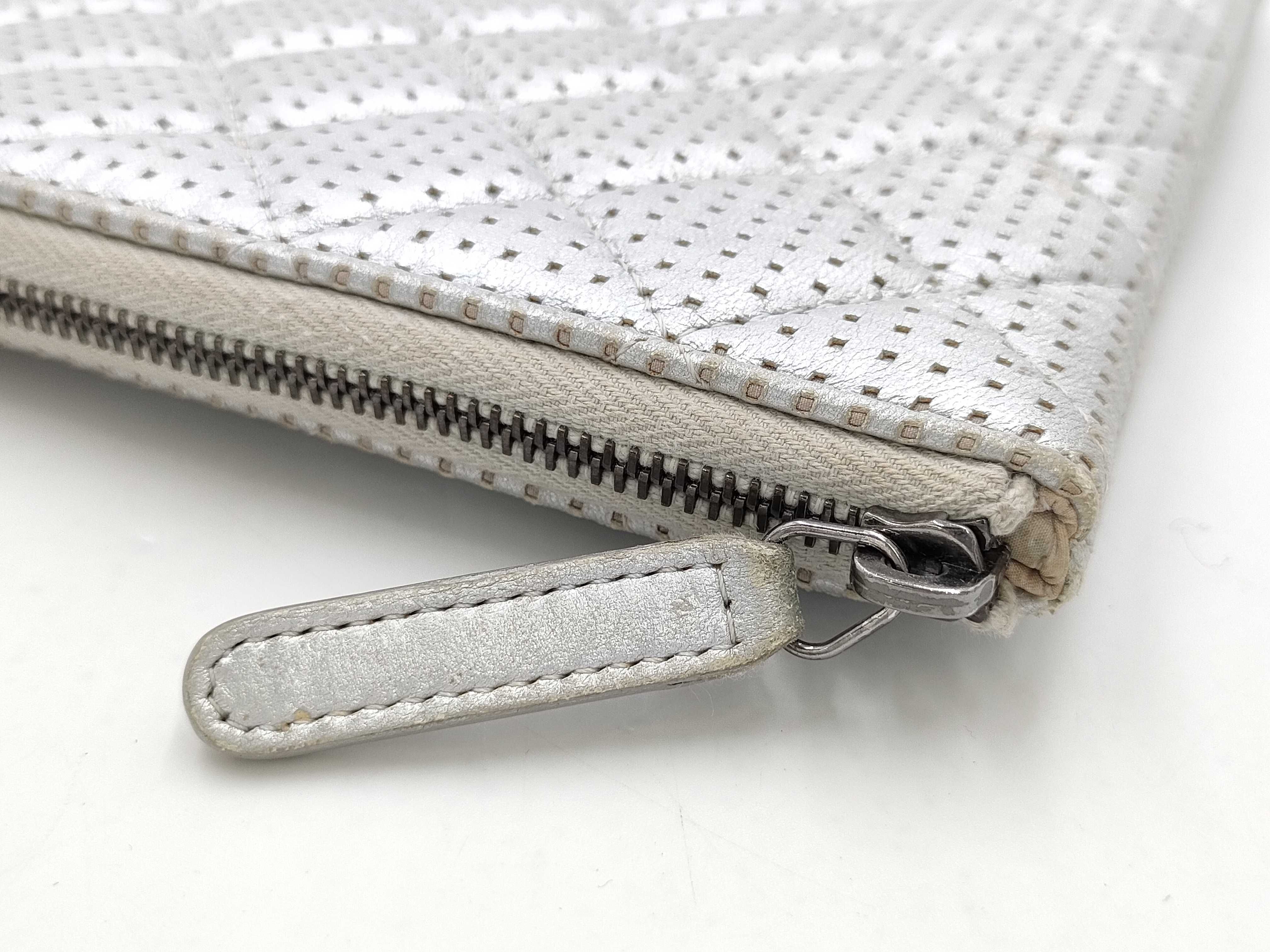(B_0098)CHANEL シャネル シルバー パンチング ラムスキン SV金具 20番台 クラッチバッグ