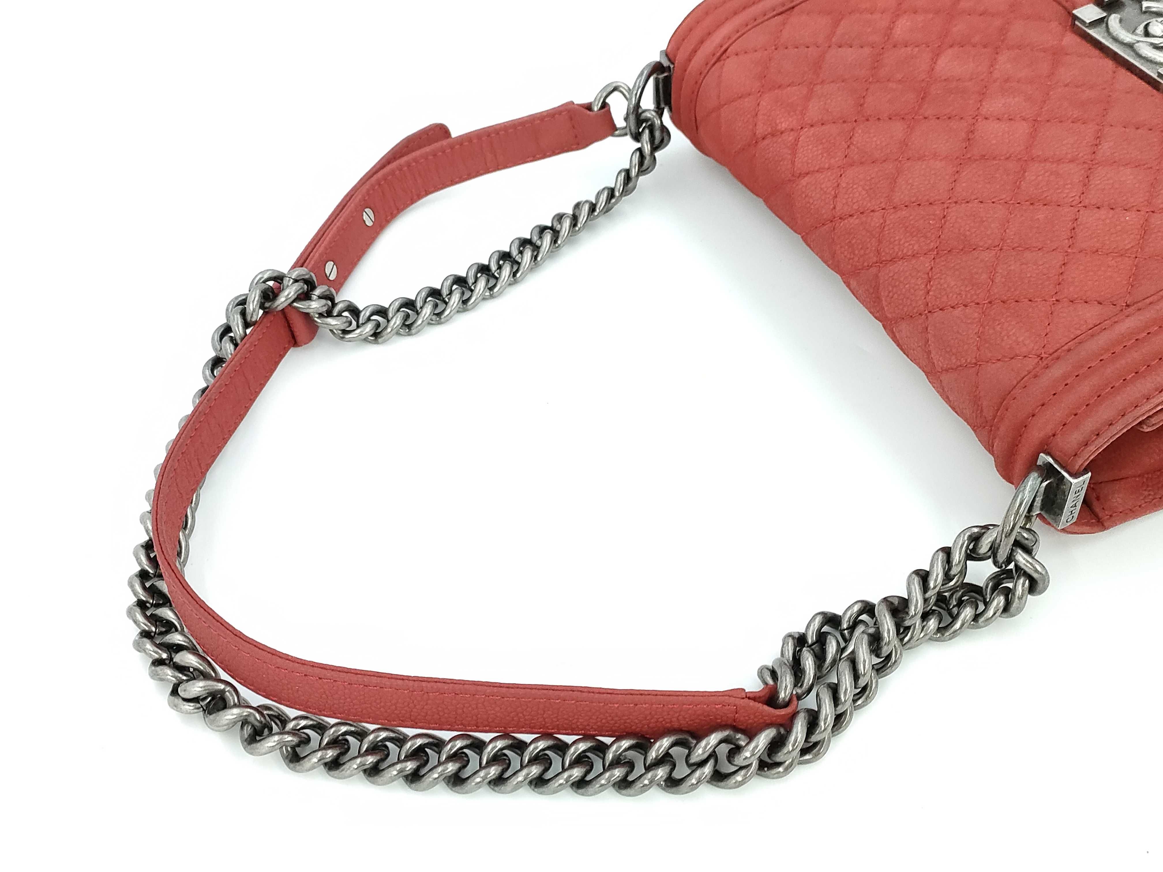 (B_0144)CHANEL ボーイシャネル レッド ソフキャビ ショルダーバッグ