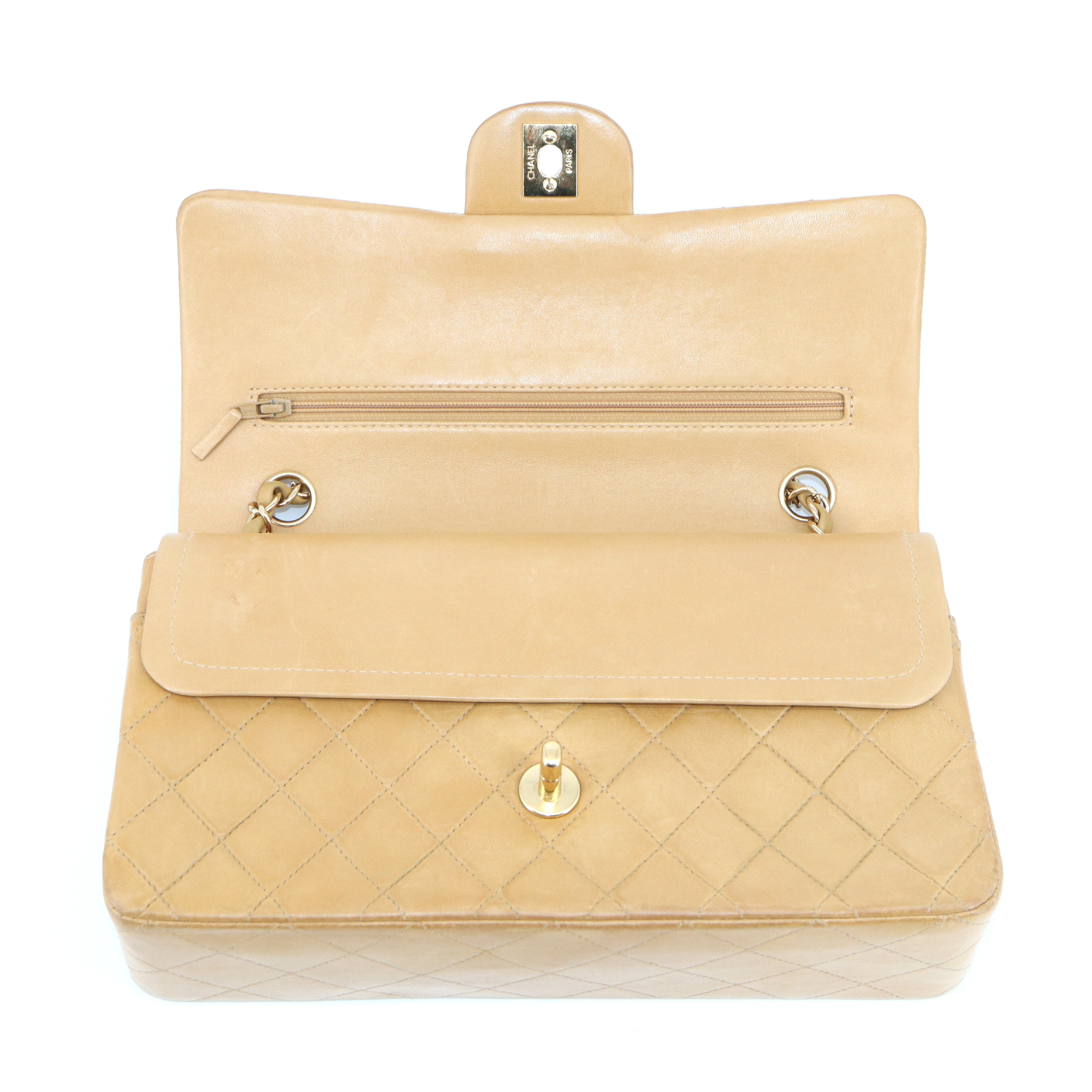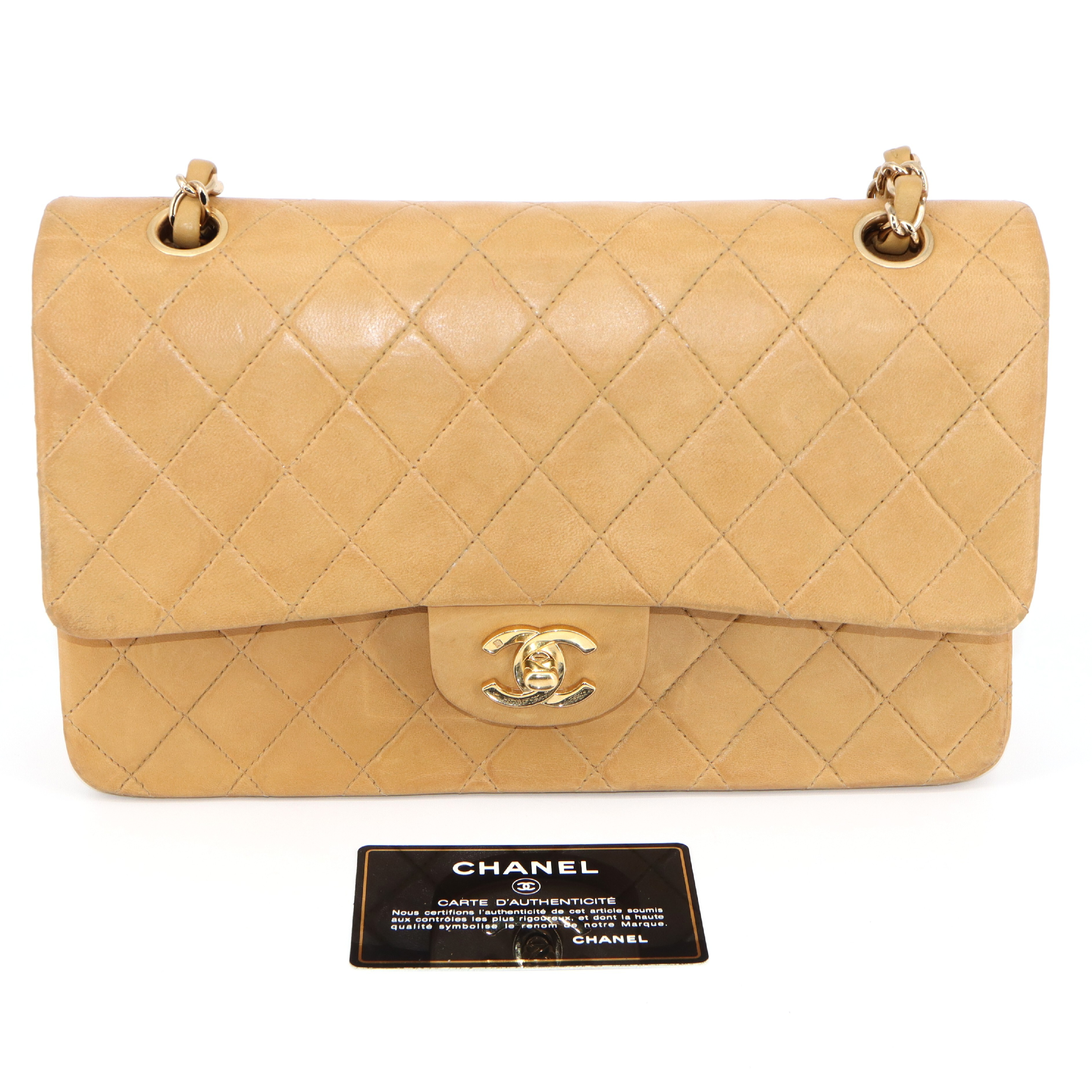 (B_0208)CHANEL CHANEL マトラッセ 25 チェーンショルダー ベージュ系 ゴールド金具 ショルダーバッグ
