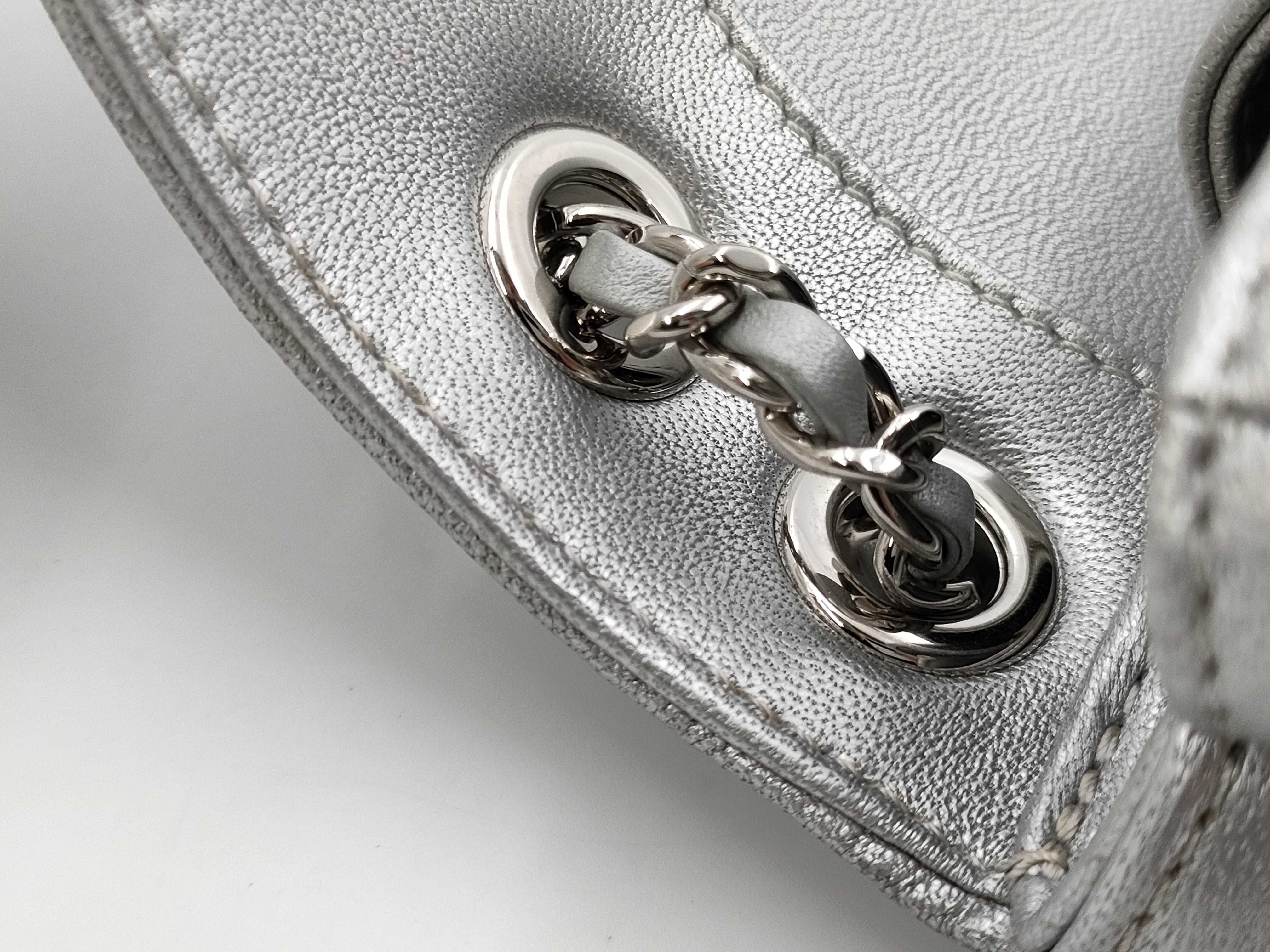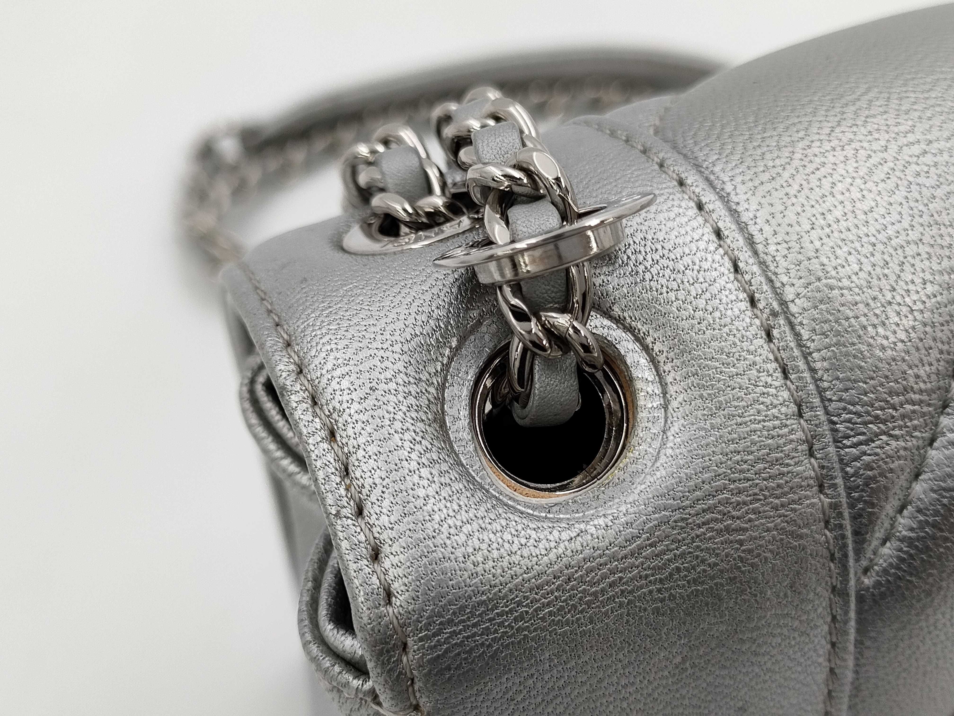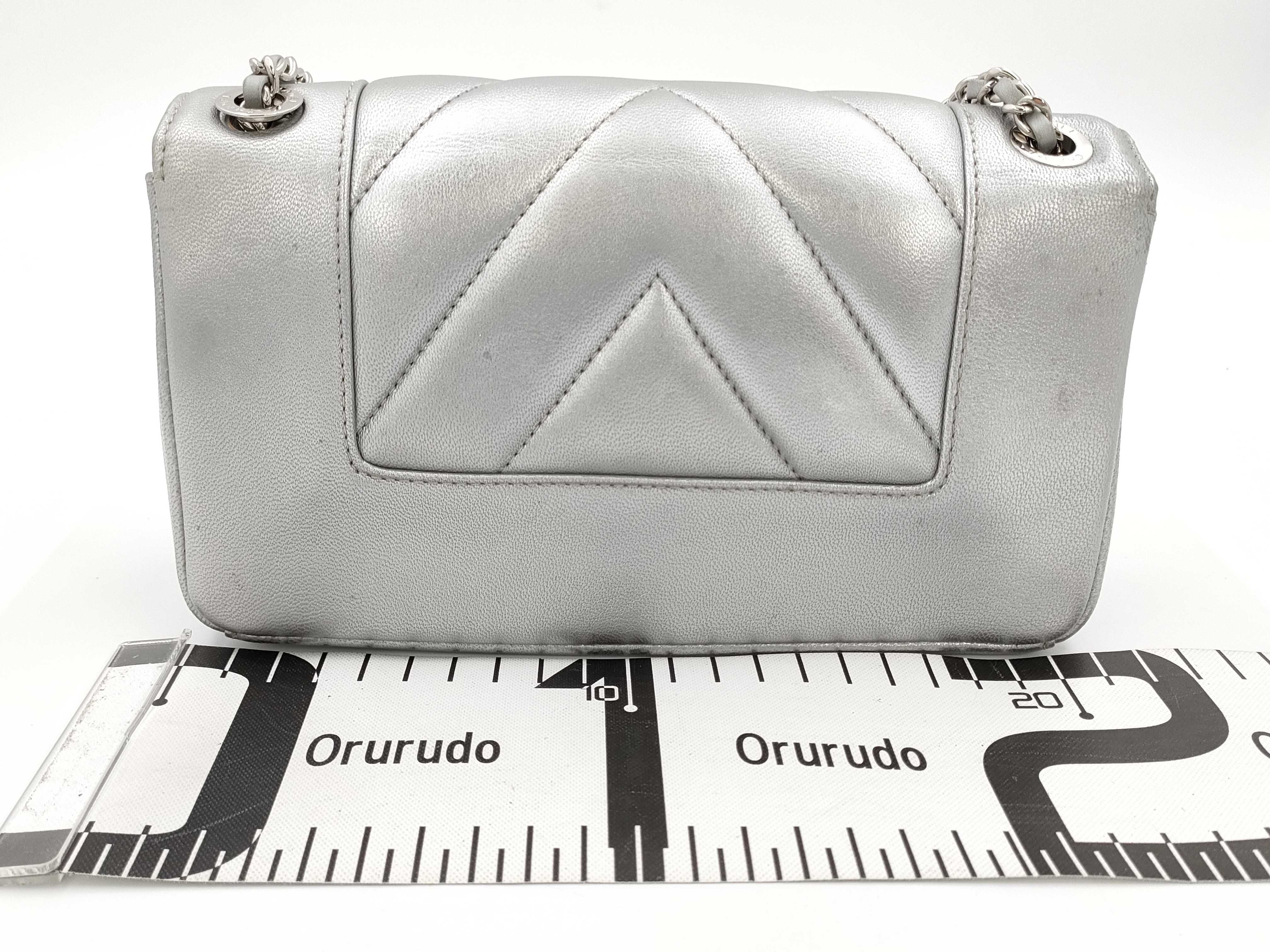 (B_0226)CHANEL シャネル Vステッチ チェーンショルダー ラム シルバー ショルダーバッグ