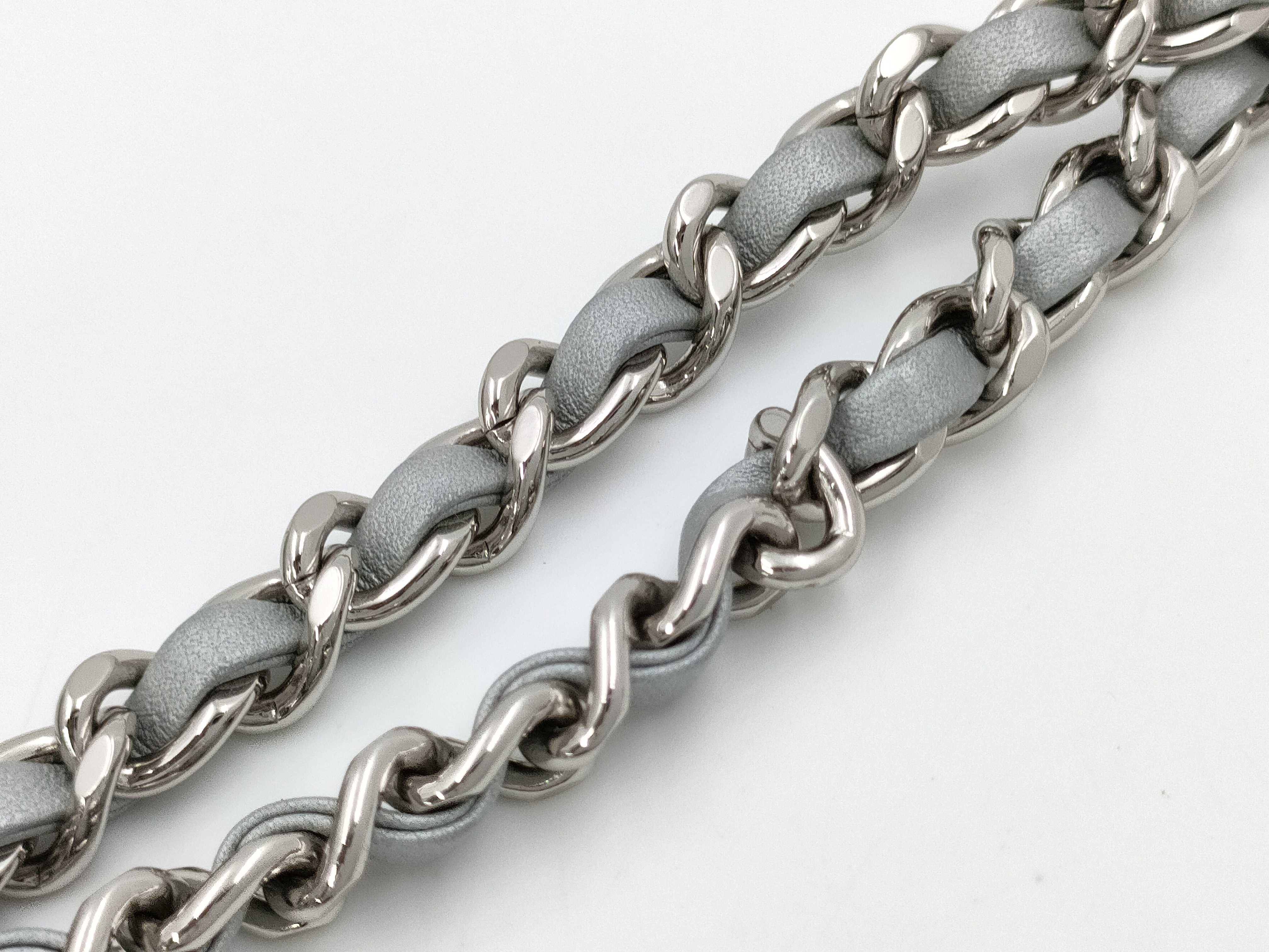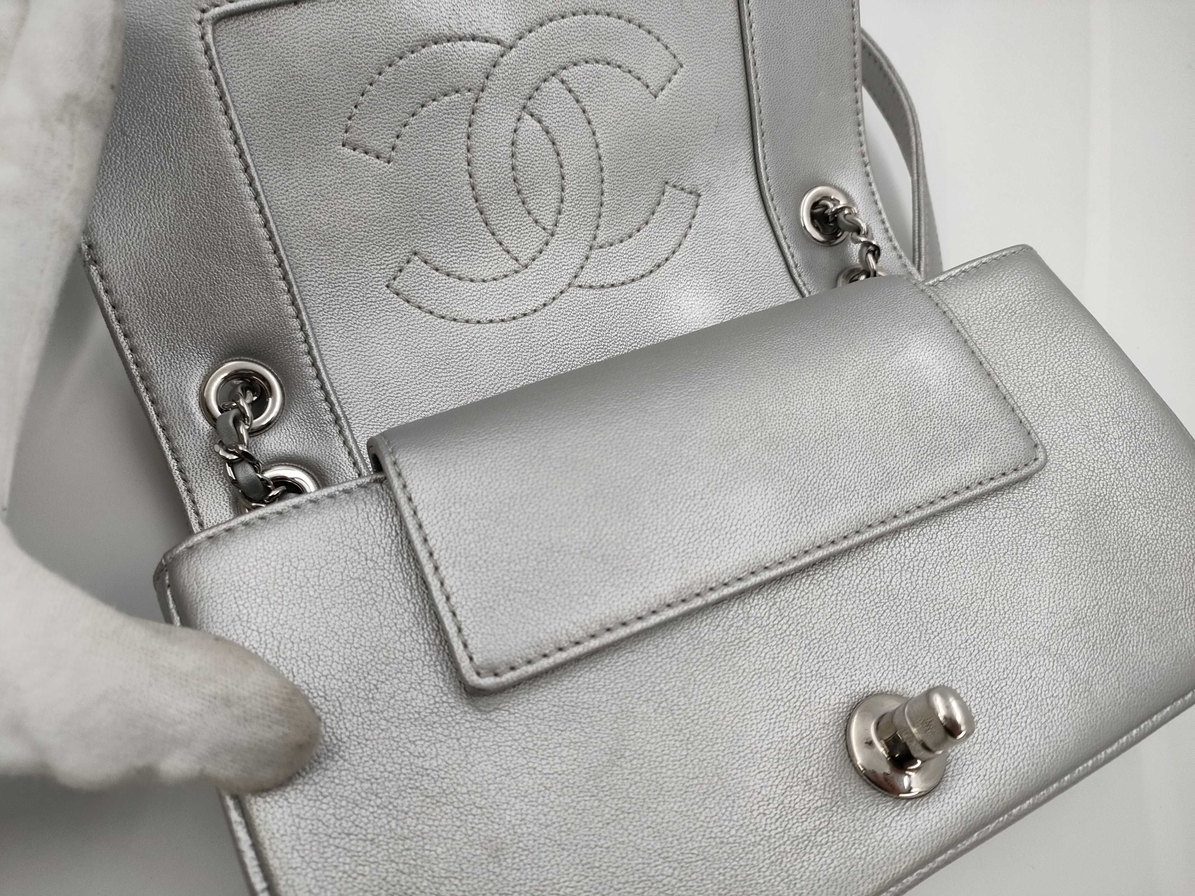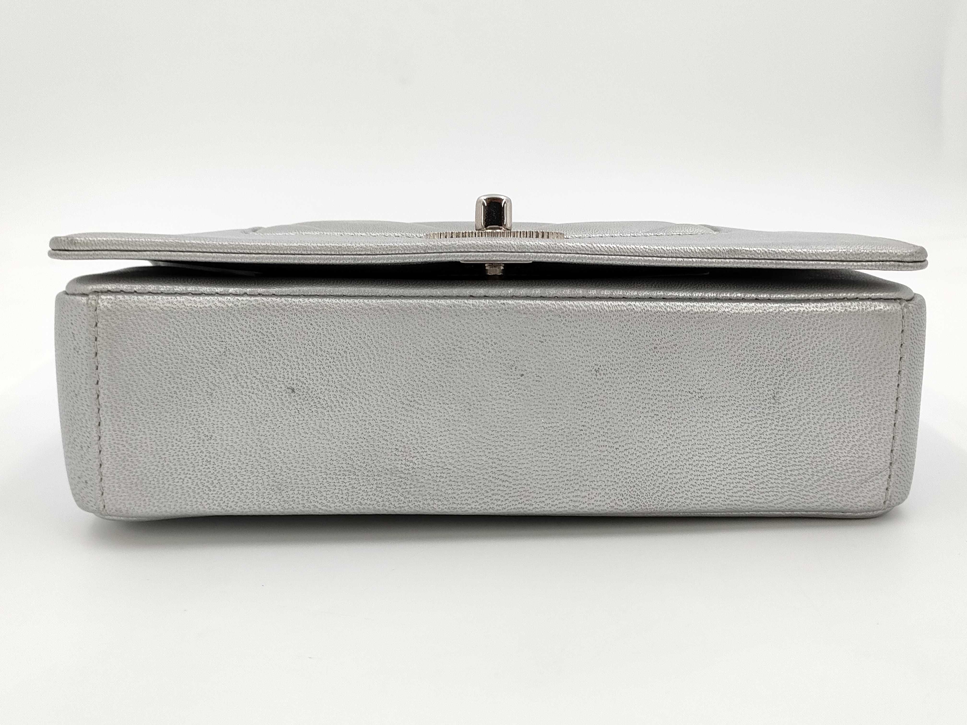 (B_0226)CHANEL シャネル Vステッチ チェーンショルダー ラム シルバー ショルダーバッグ