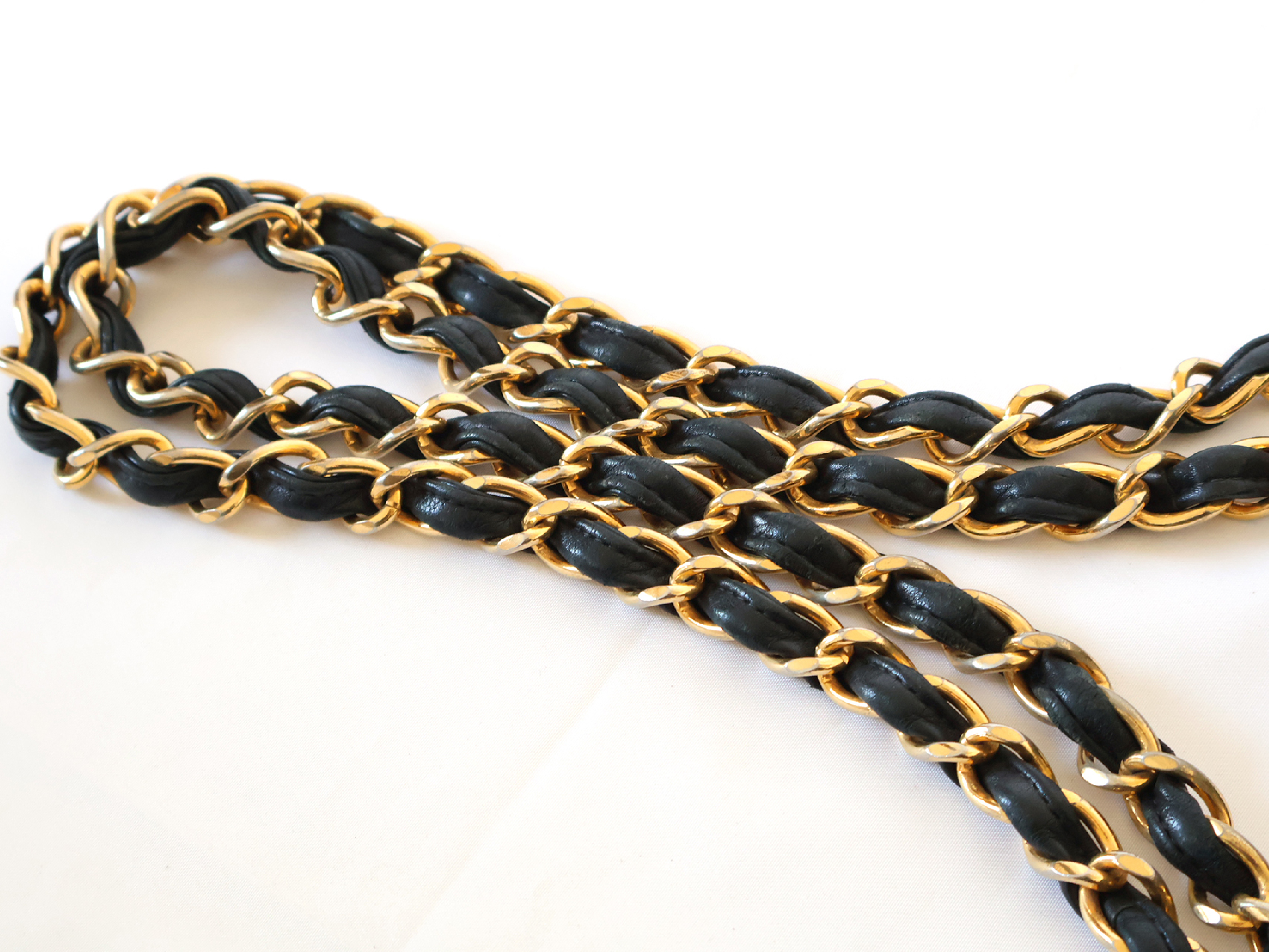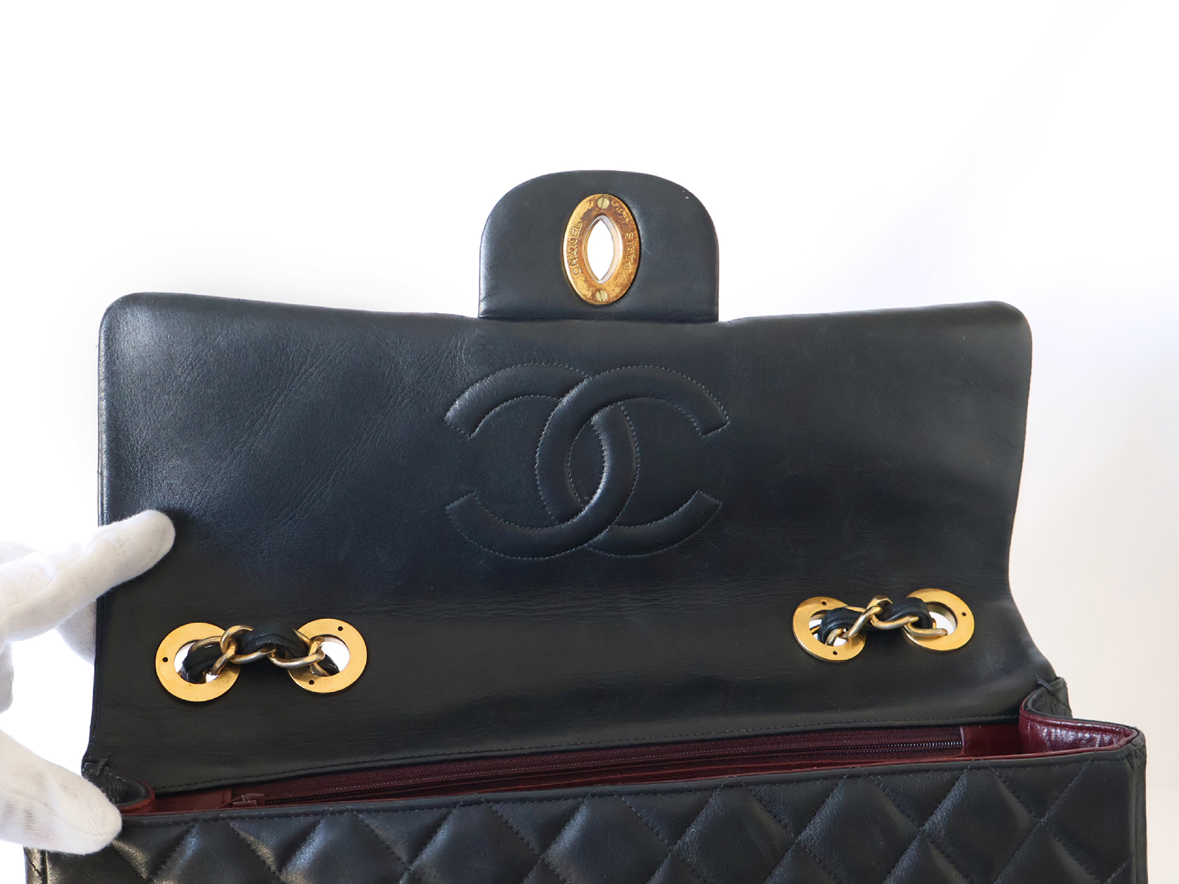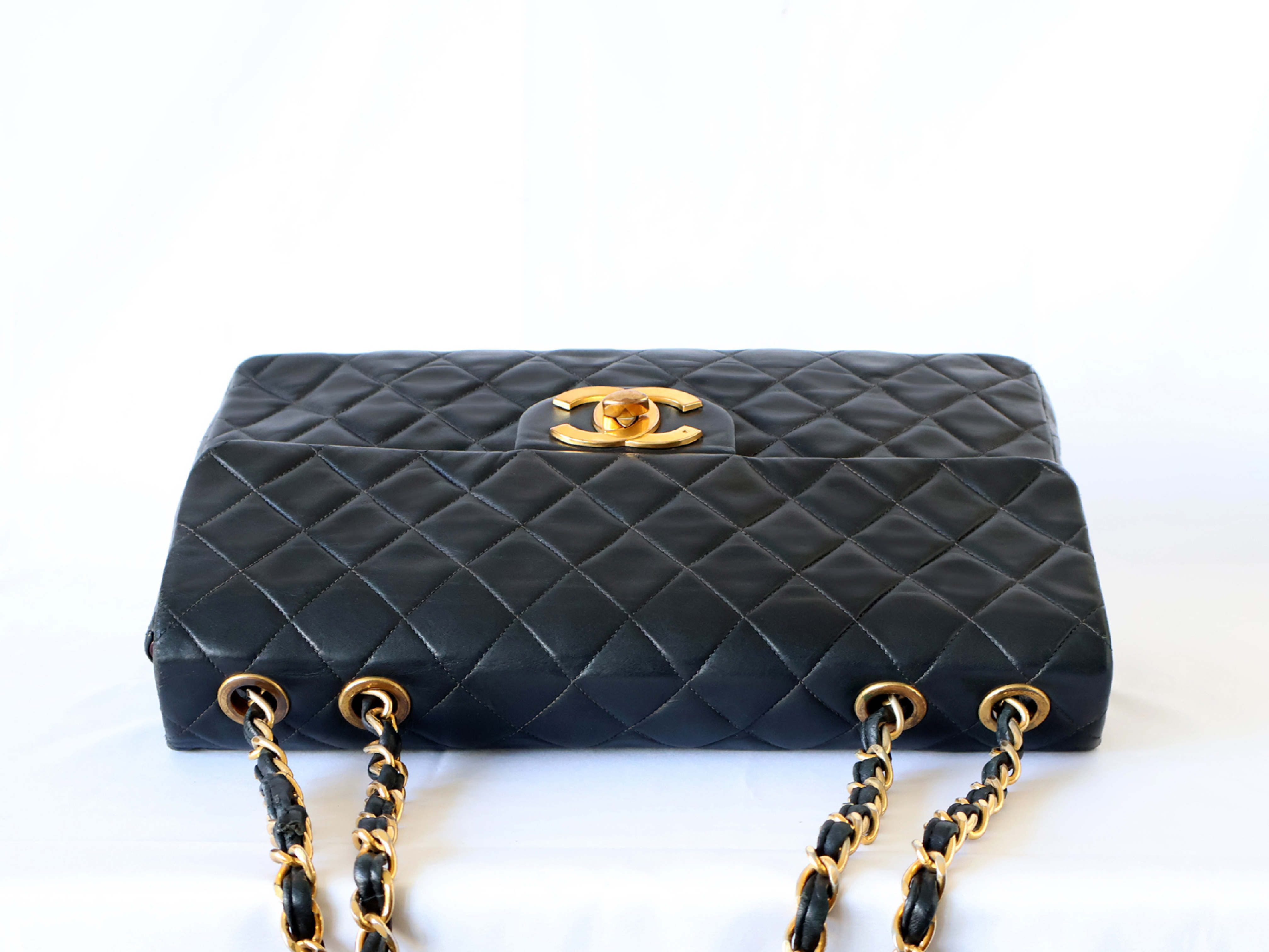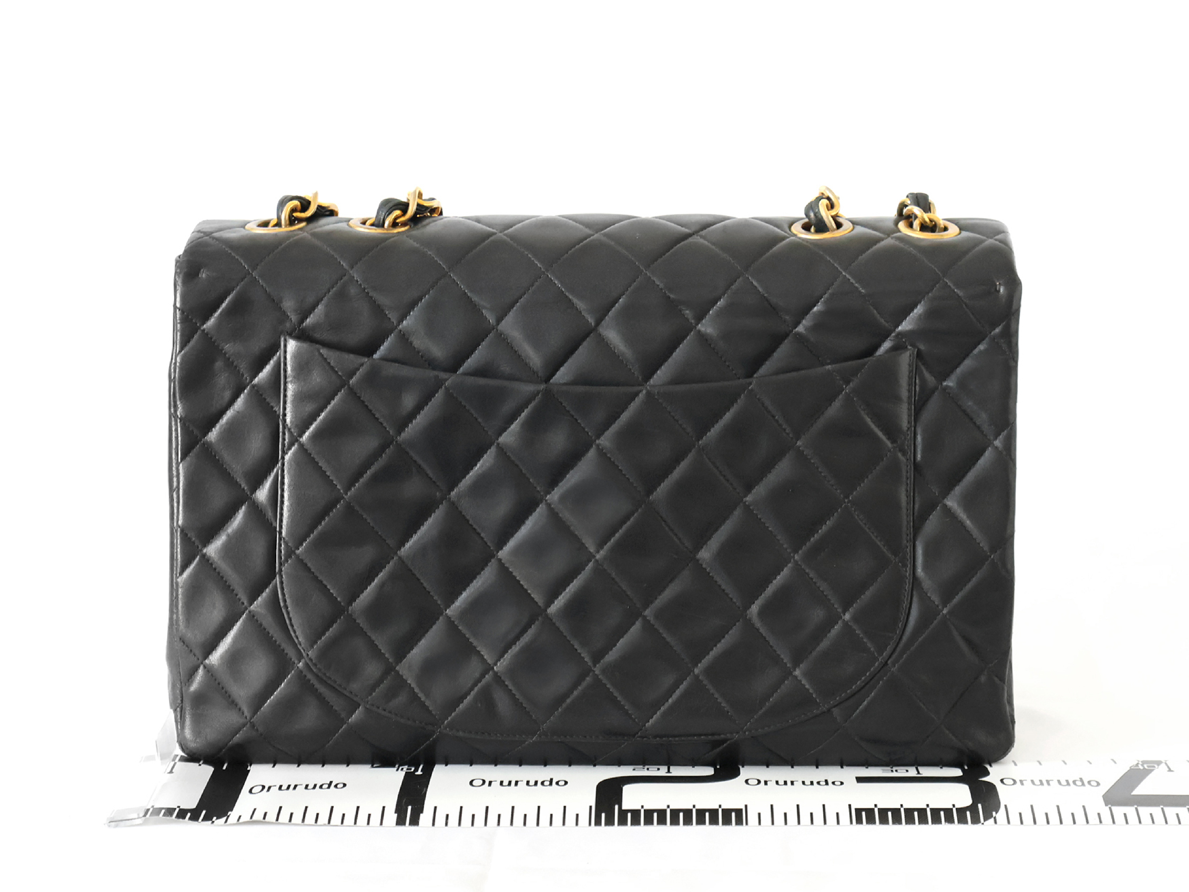 (B_0349)CHANEL デカトラッセ ラムスキン Wチェーン ショルダー ブラック ショルダーバッグ