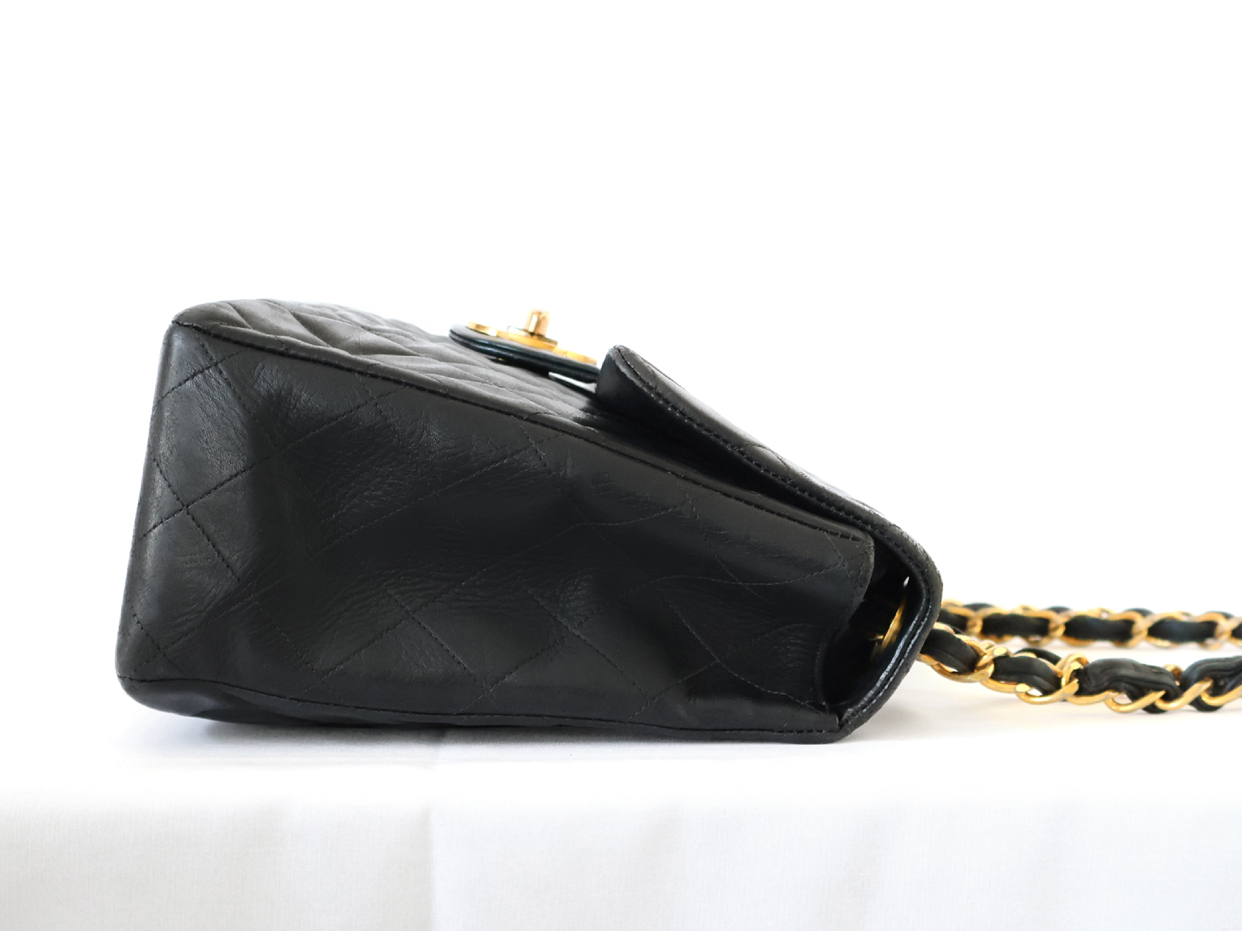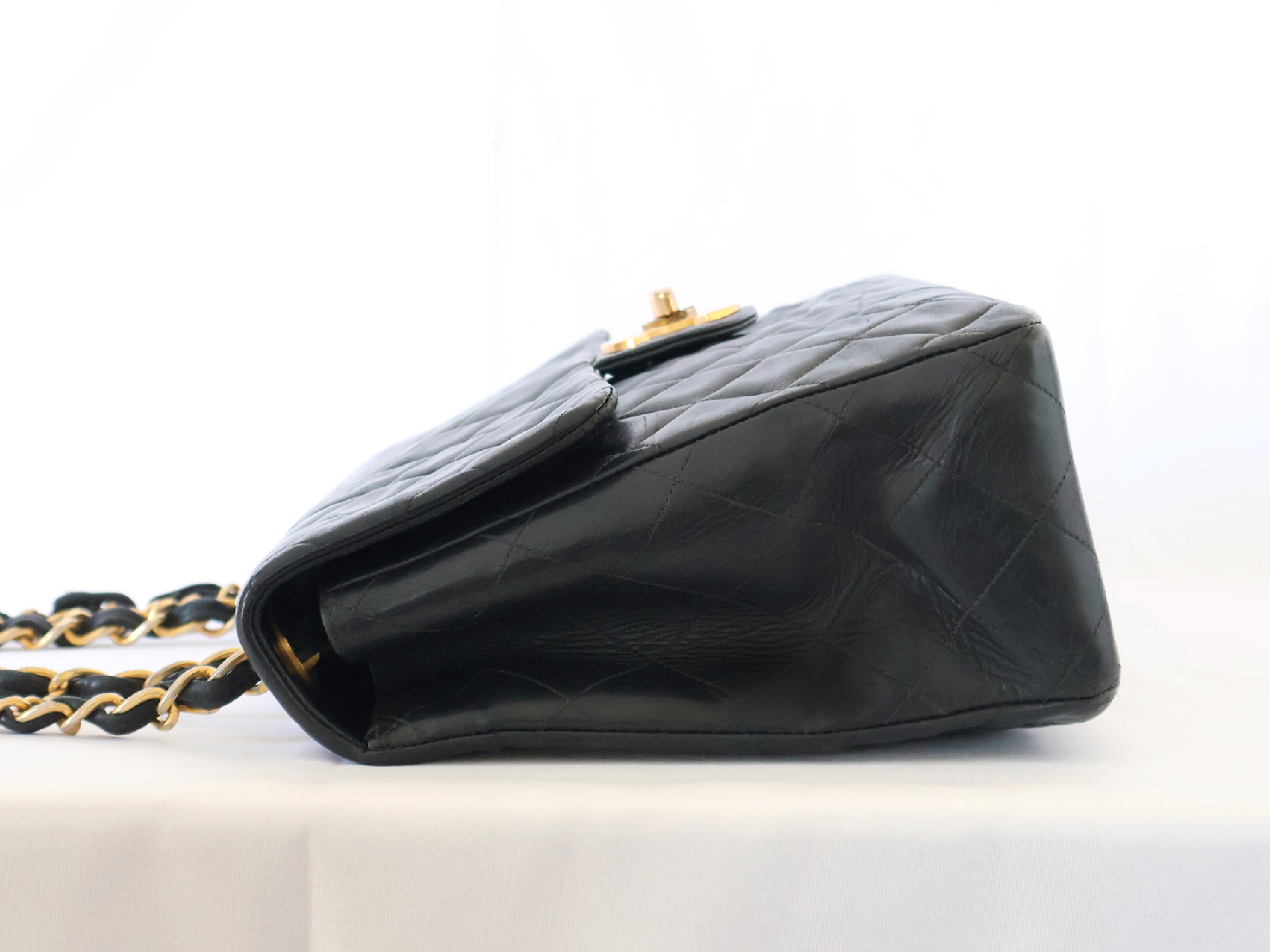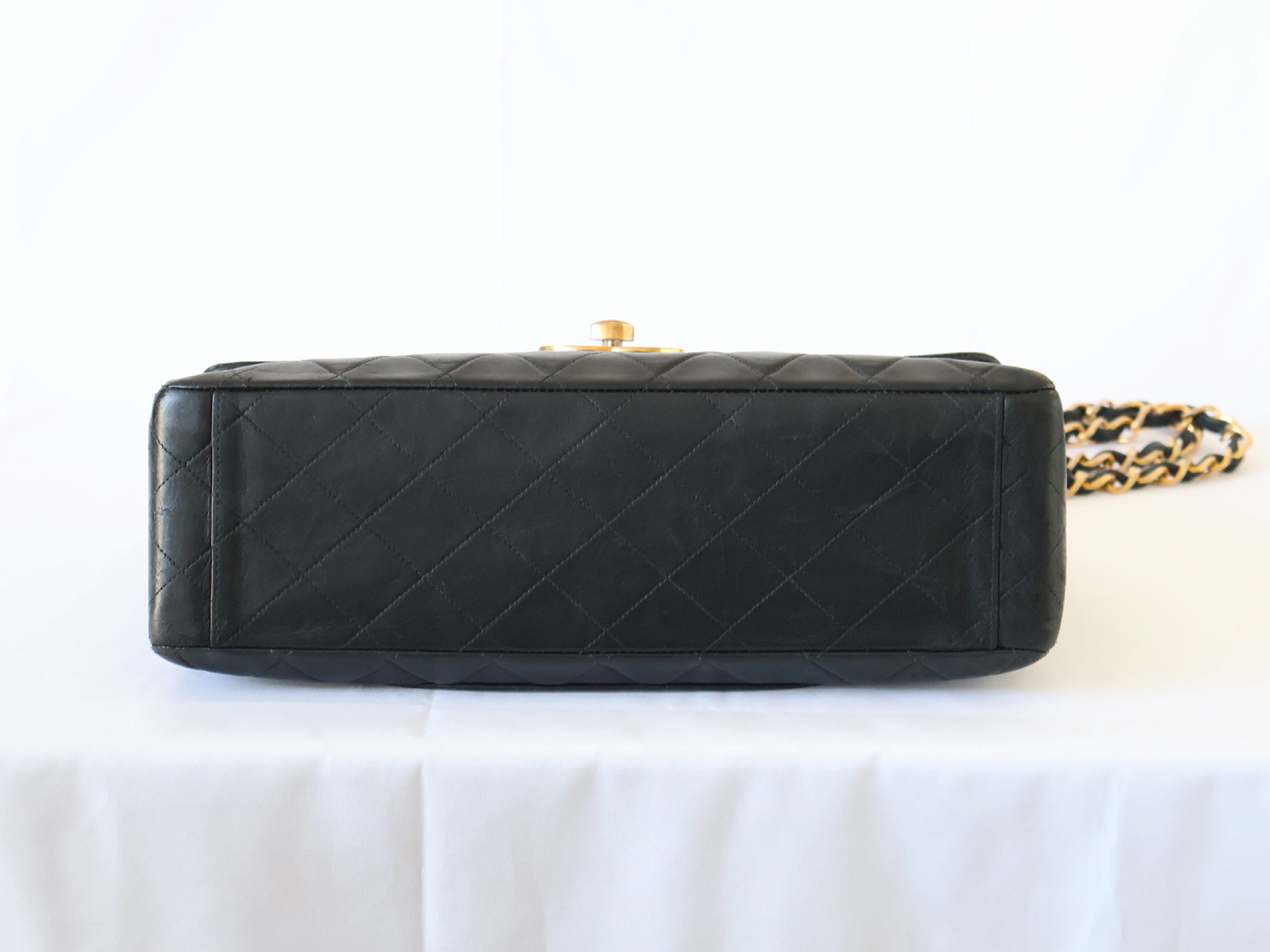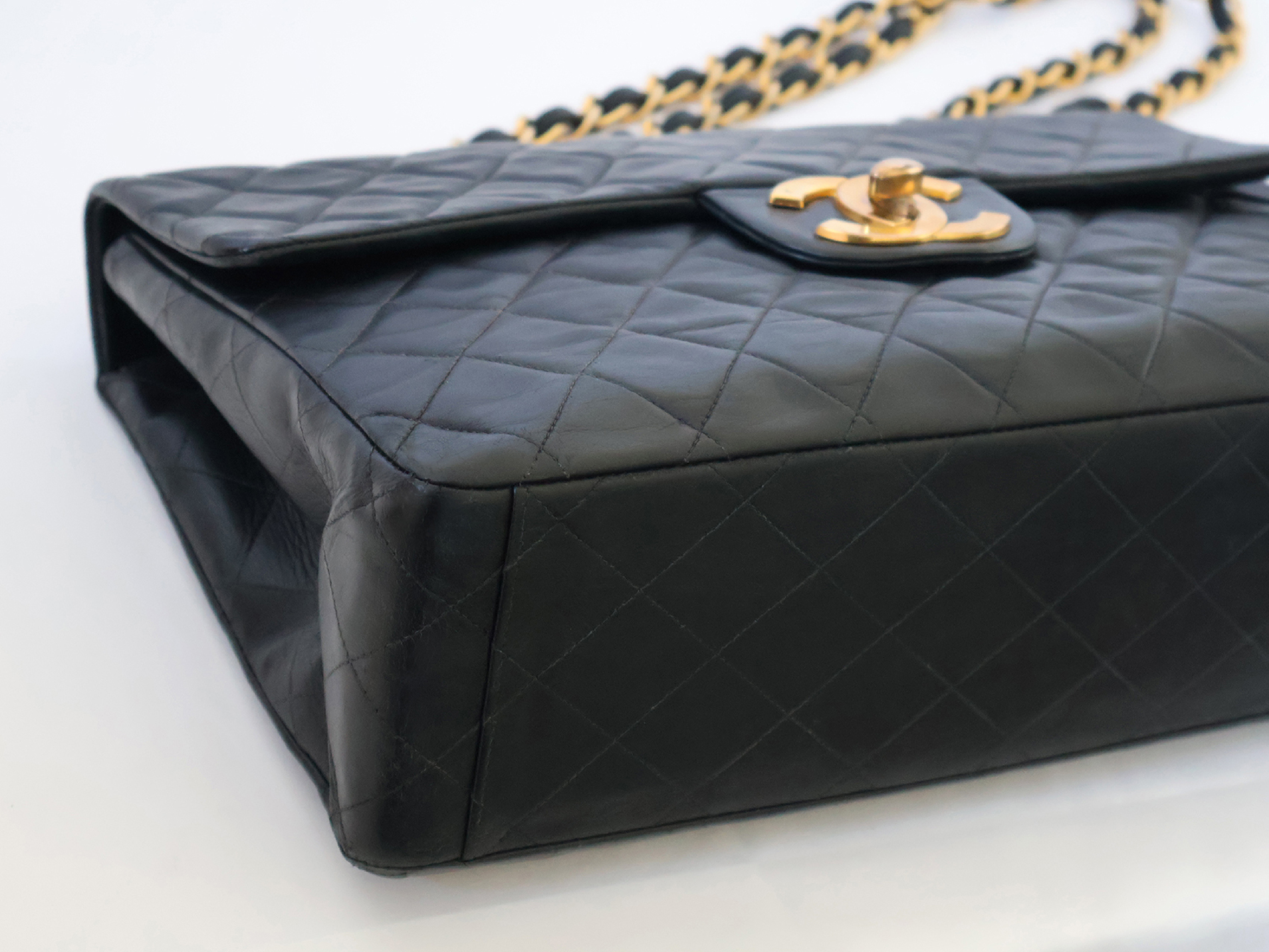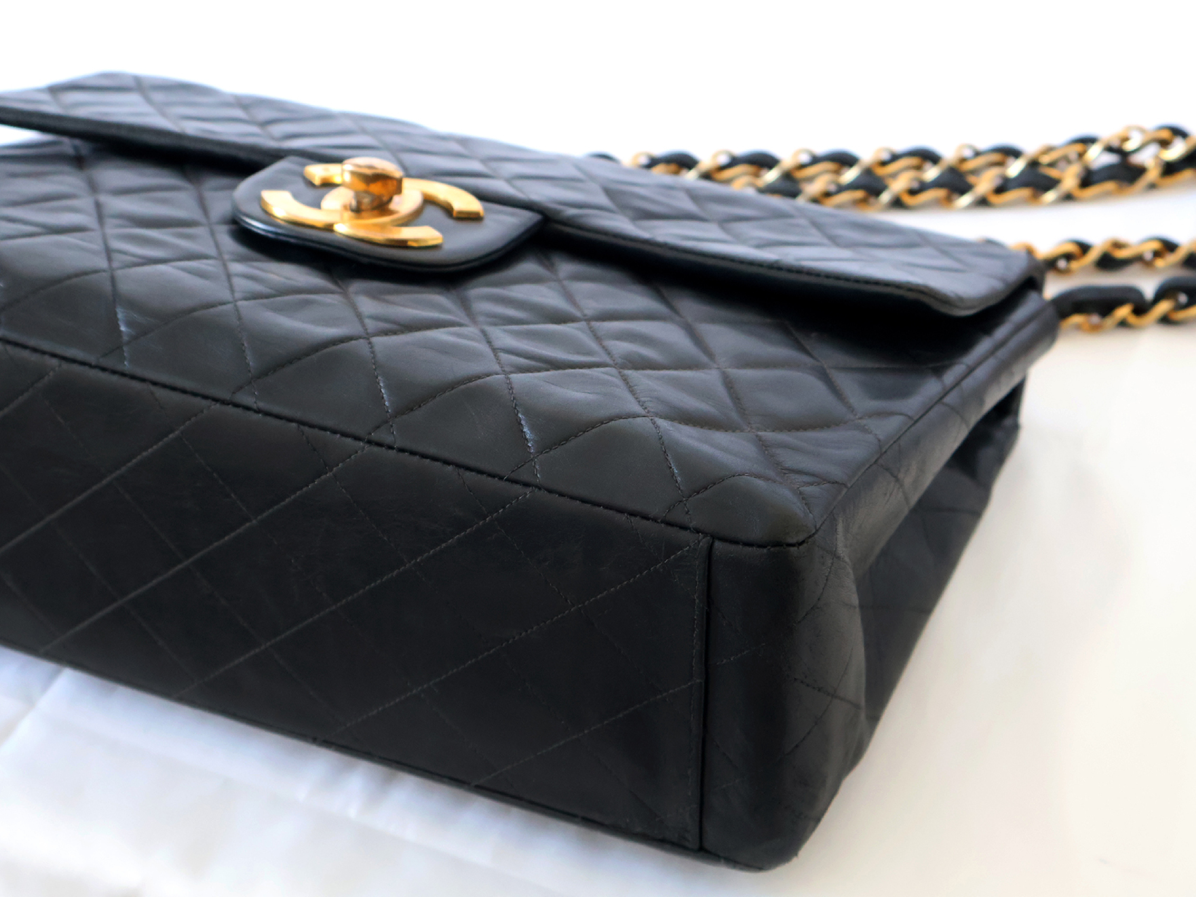 (B_0349)CHANEL デカトラッセ ラムスキン Wチェーン ショルダー ブラック ショルダーバッグ
