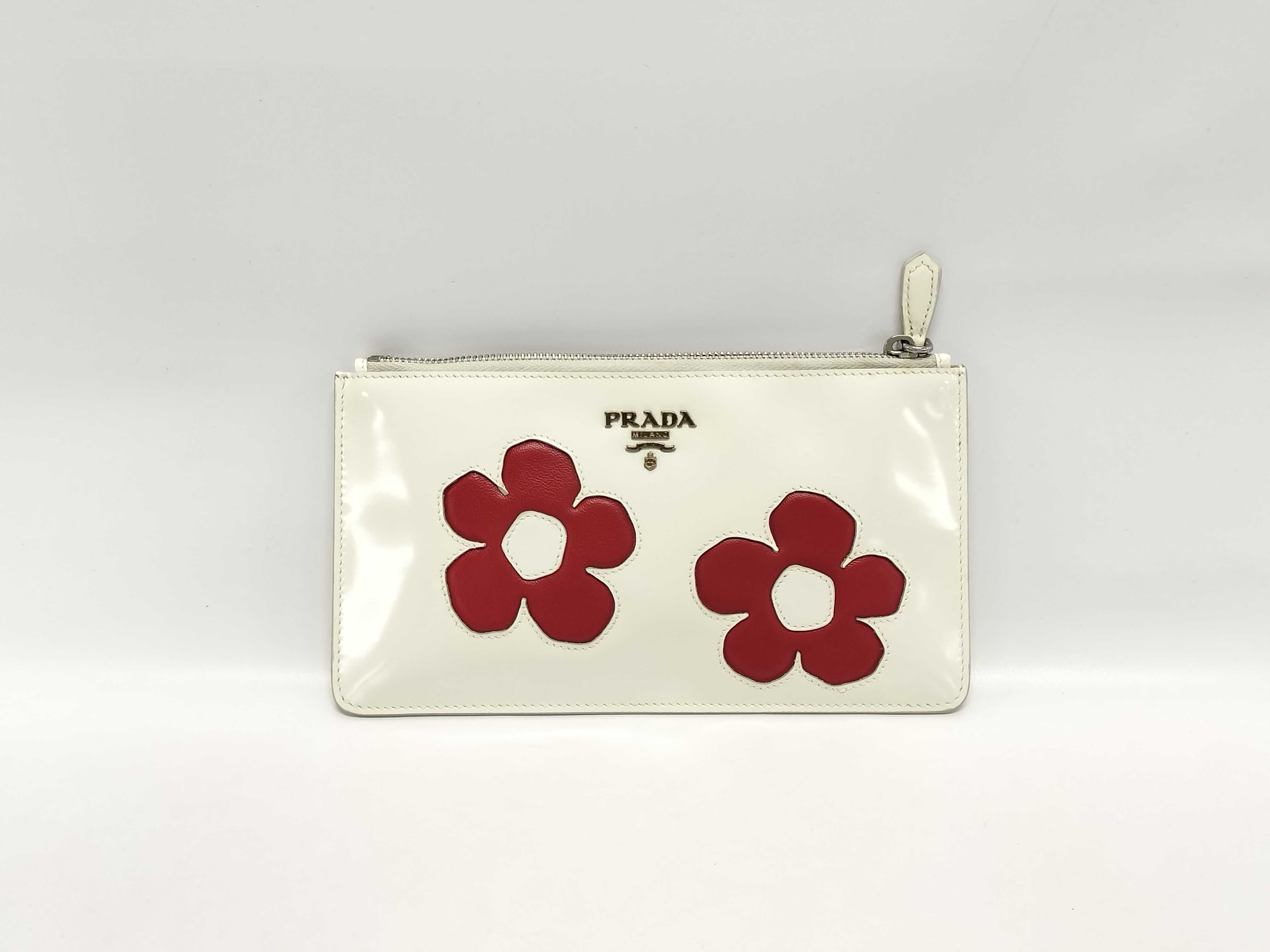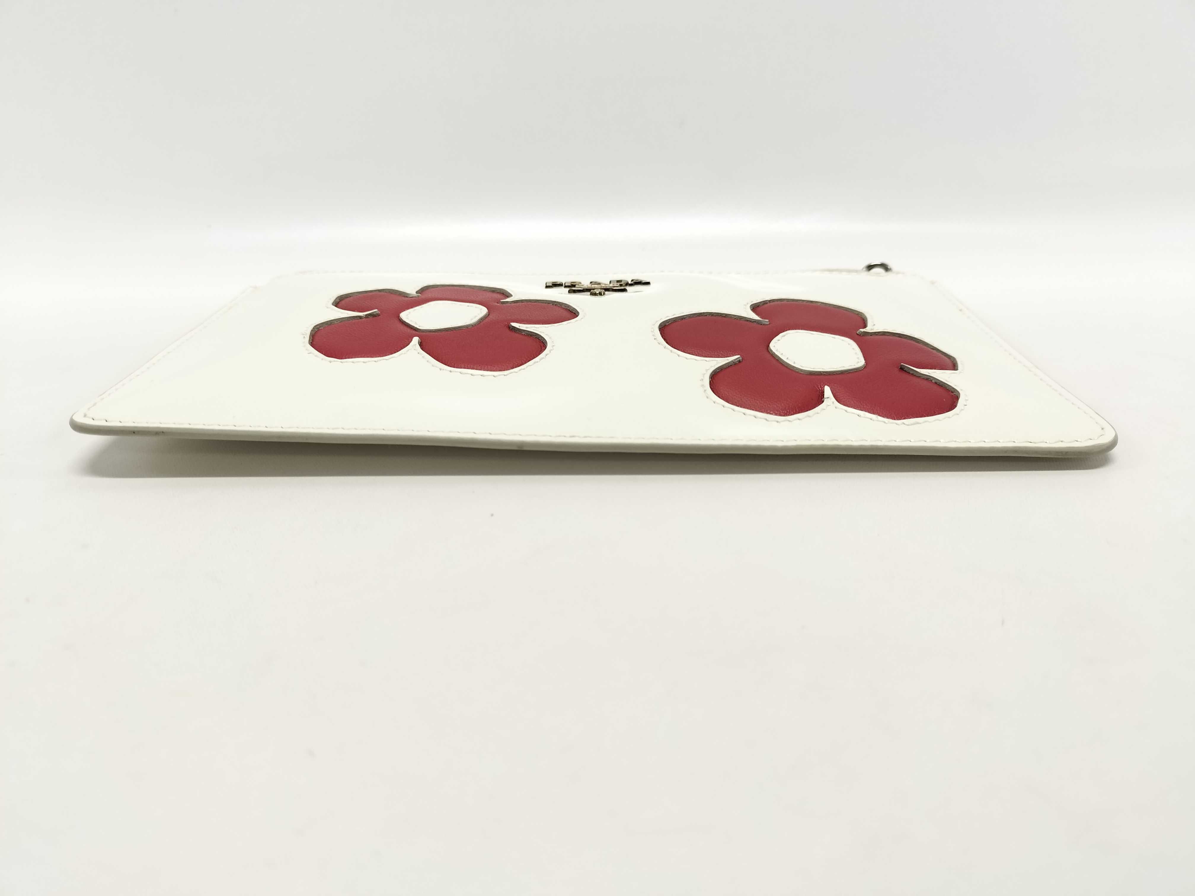 (F_0125)PRADA プラダ ポーチ フラワーモチーフ レザー 花柄 ホワイト コインケース
