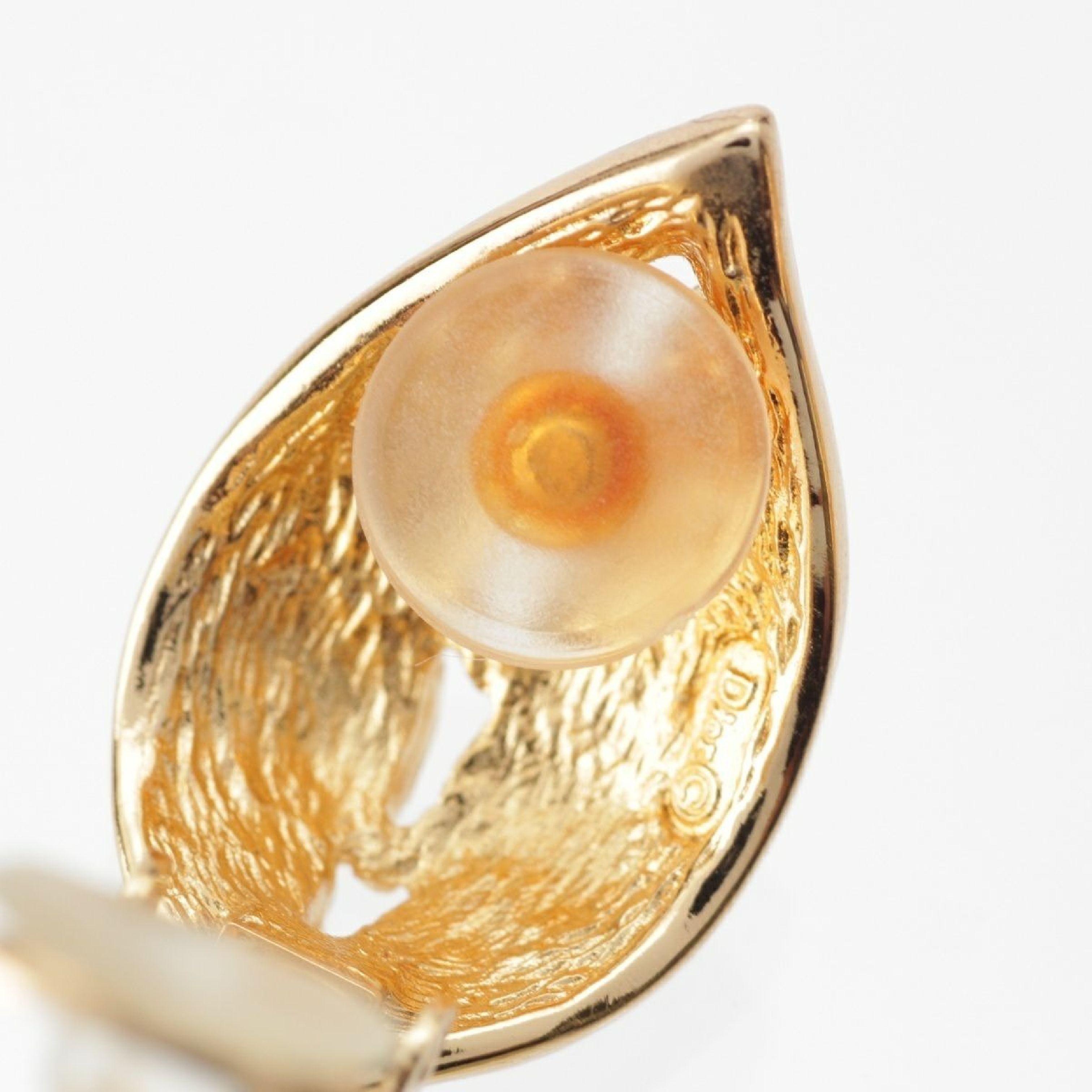 (F_0243)Dior GP リーフモチーフ ラインストーン イヤリング ゴールド オレンジ イヤリング