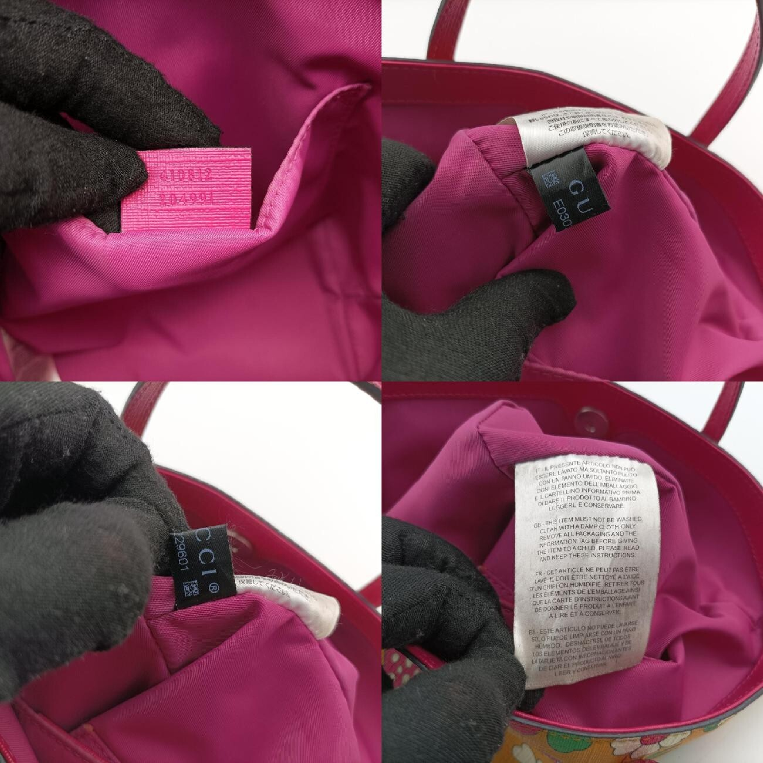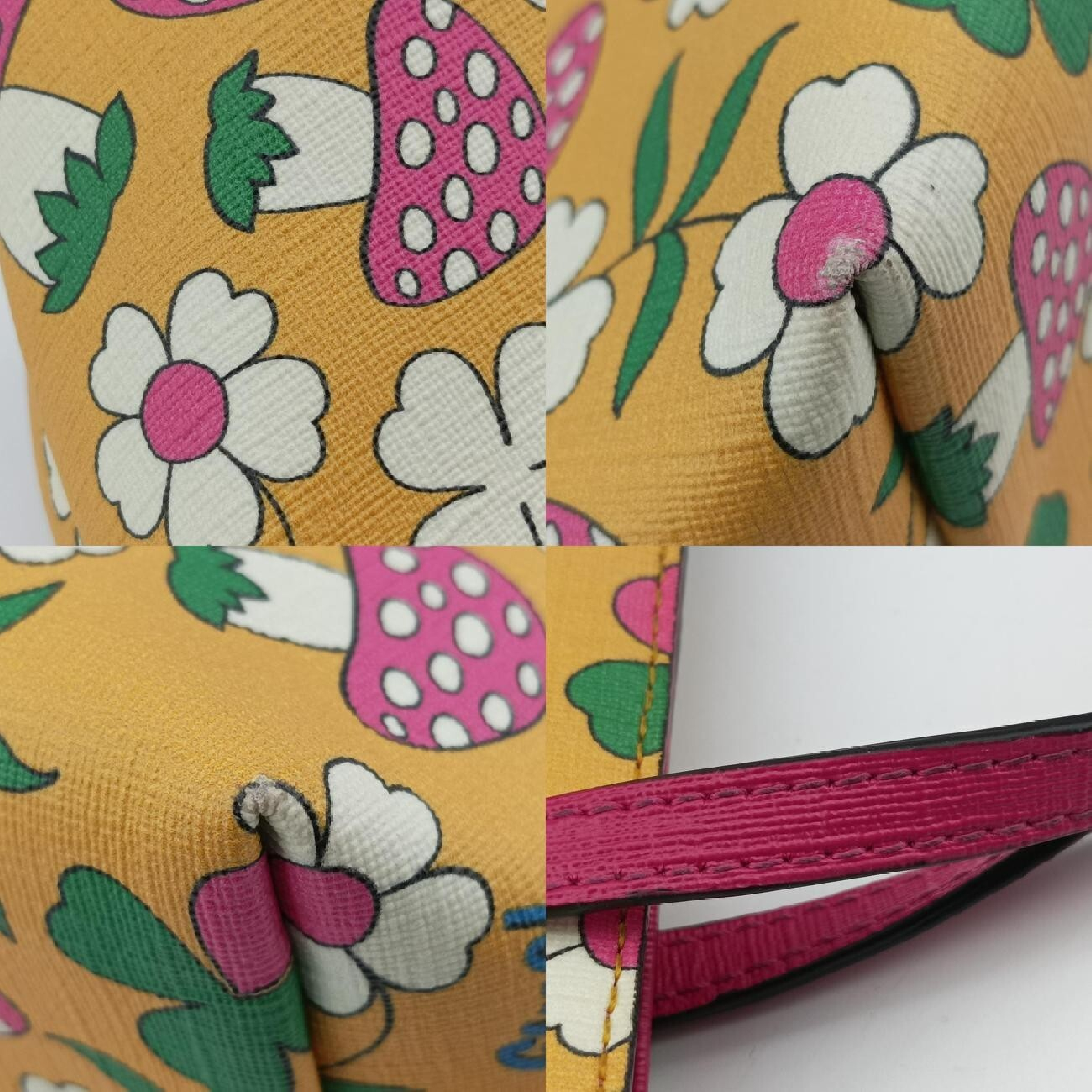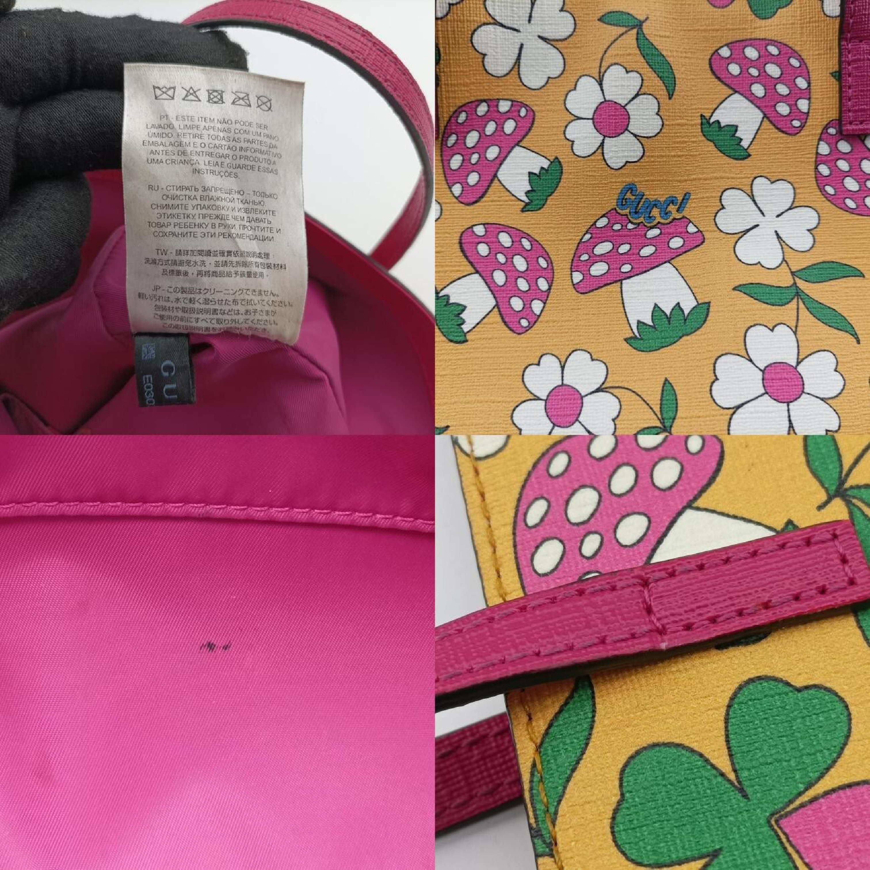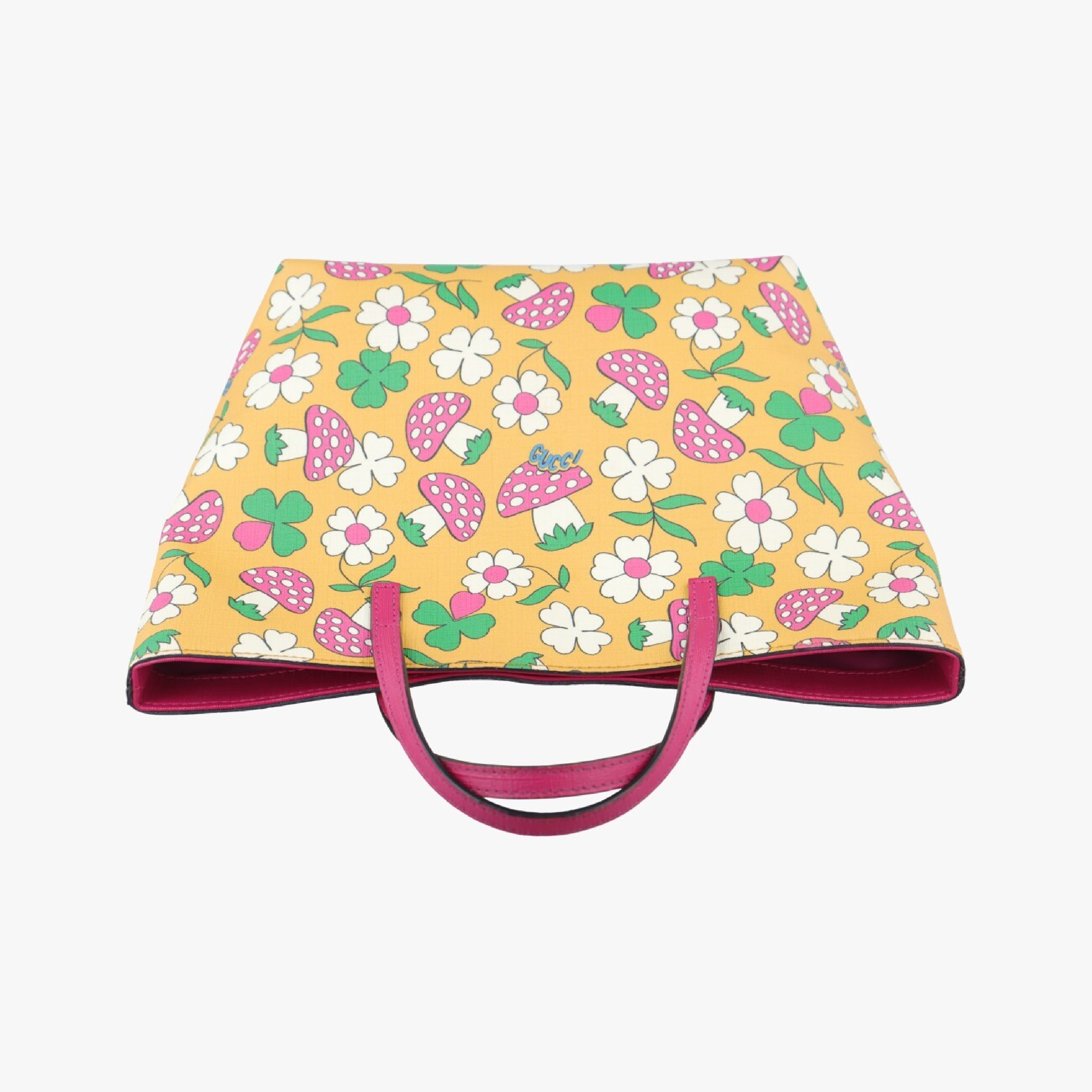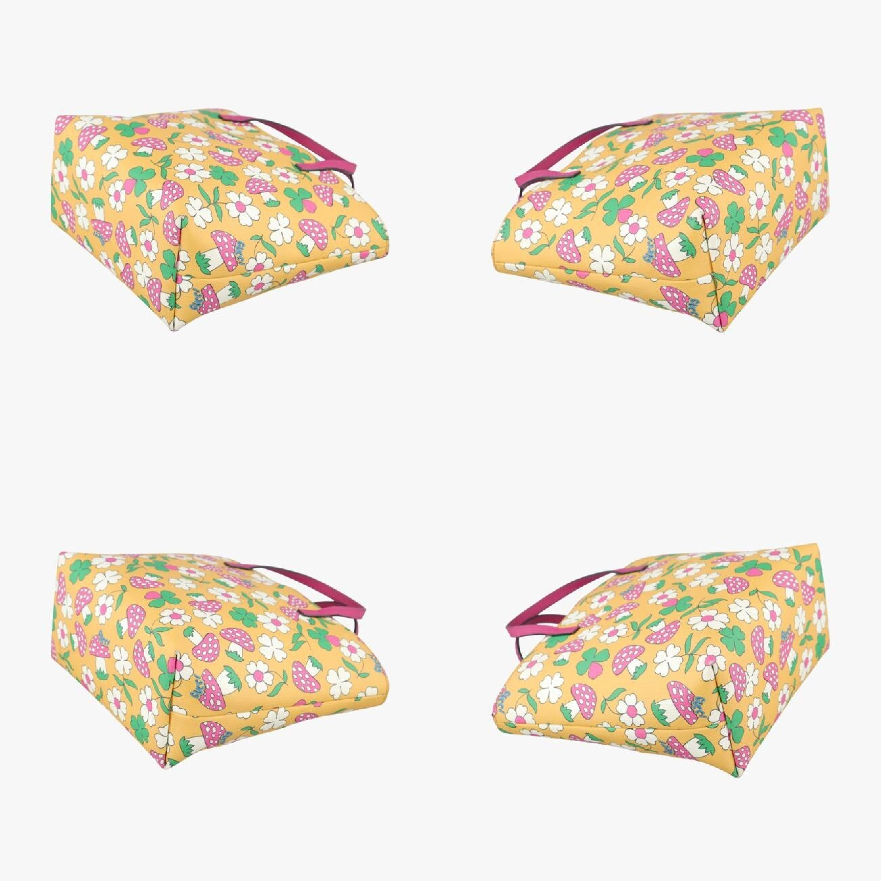 (D_0058)GUCCI 花柄 キノコ柄 イエロー×マルチカラー PVCコーティングキャンバス 410812 E030229601 ハンドバッグ