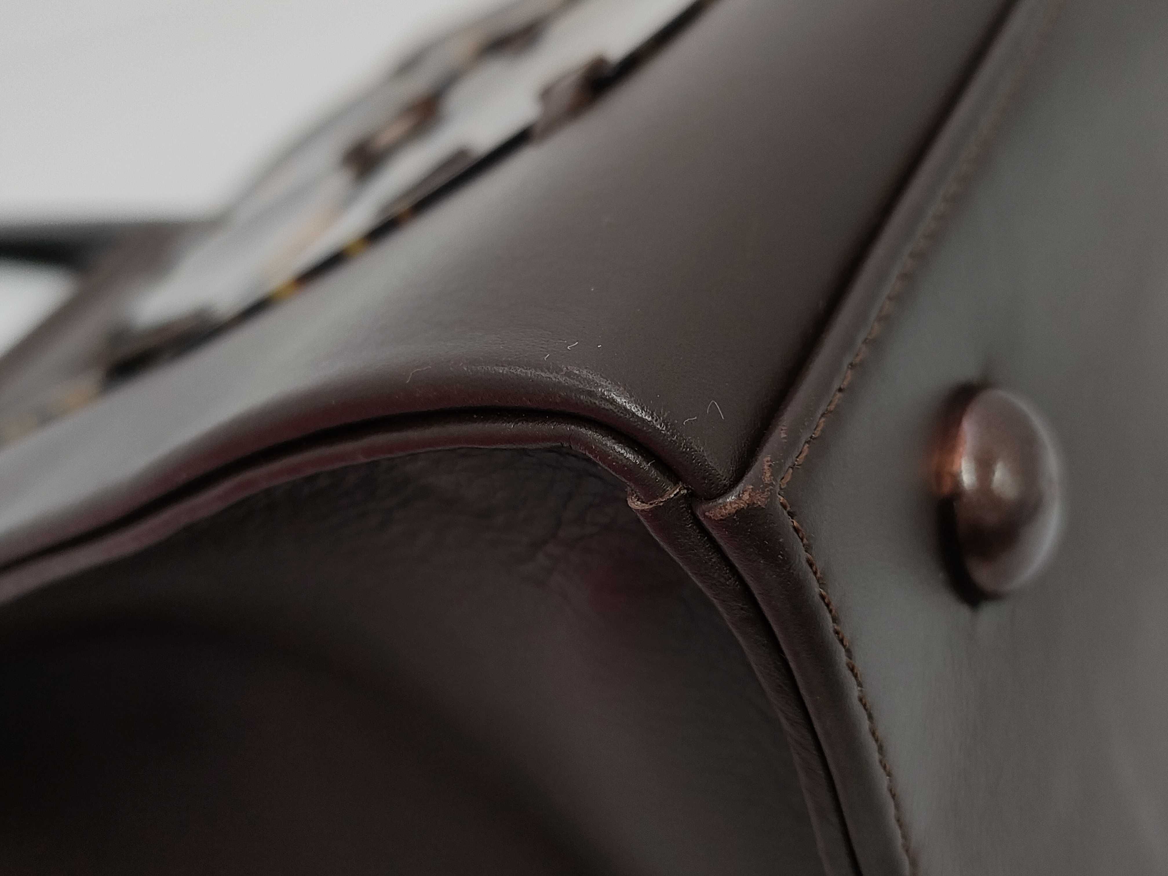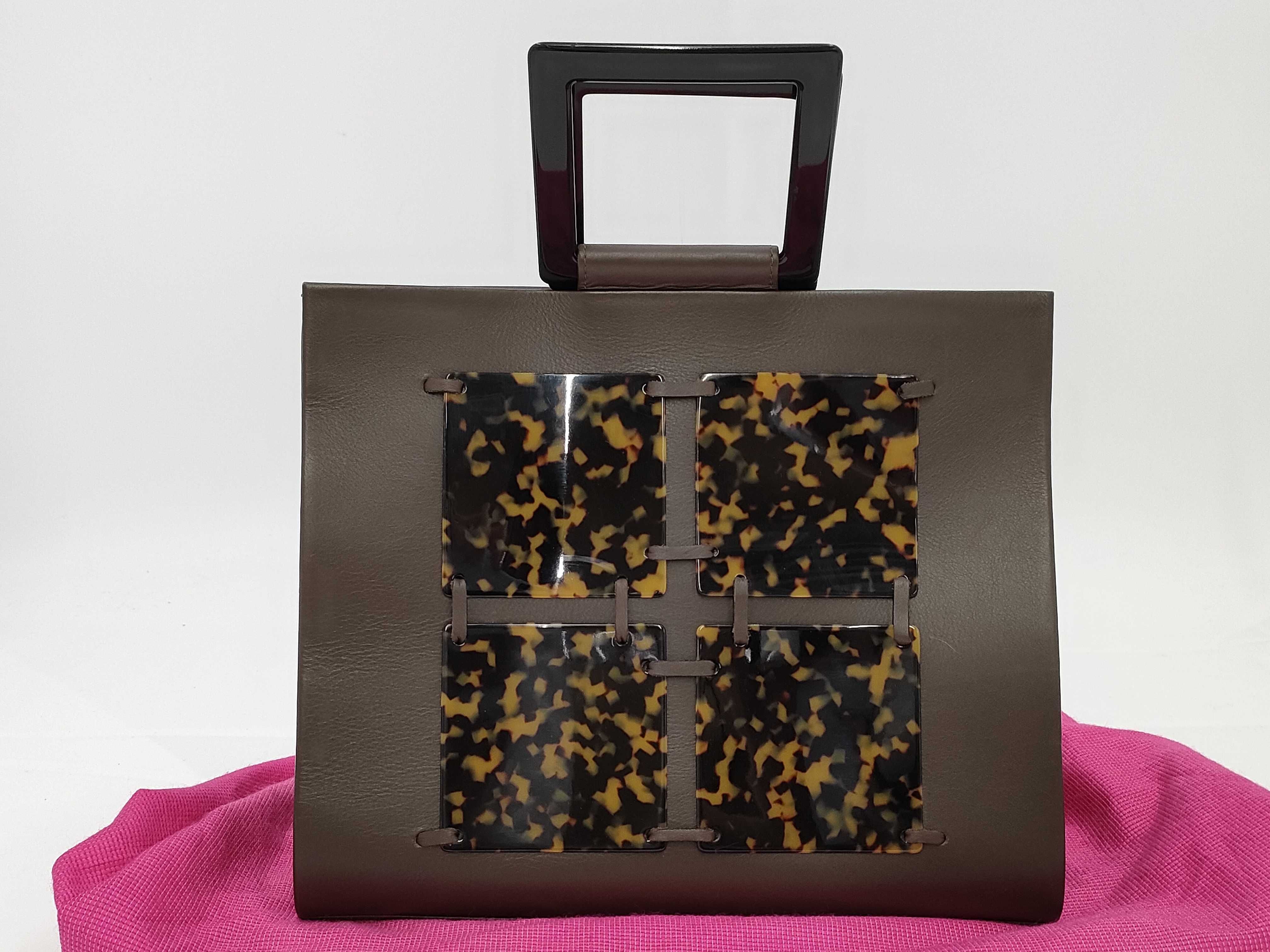 (D_0142)▼Yves Saint Laurent イヴサンローラン レザー べっこう ハンドバッグ ダークブラウン ハンドバッグ