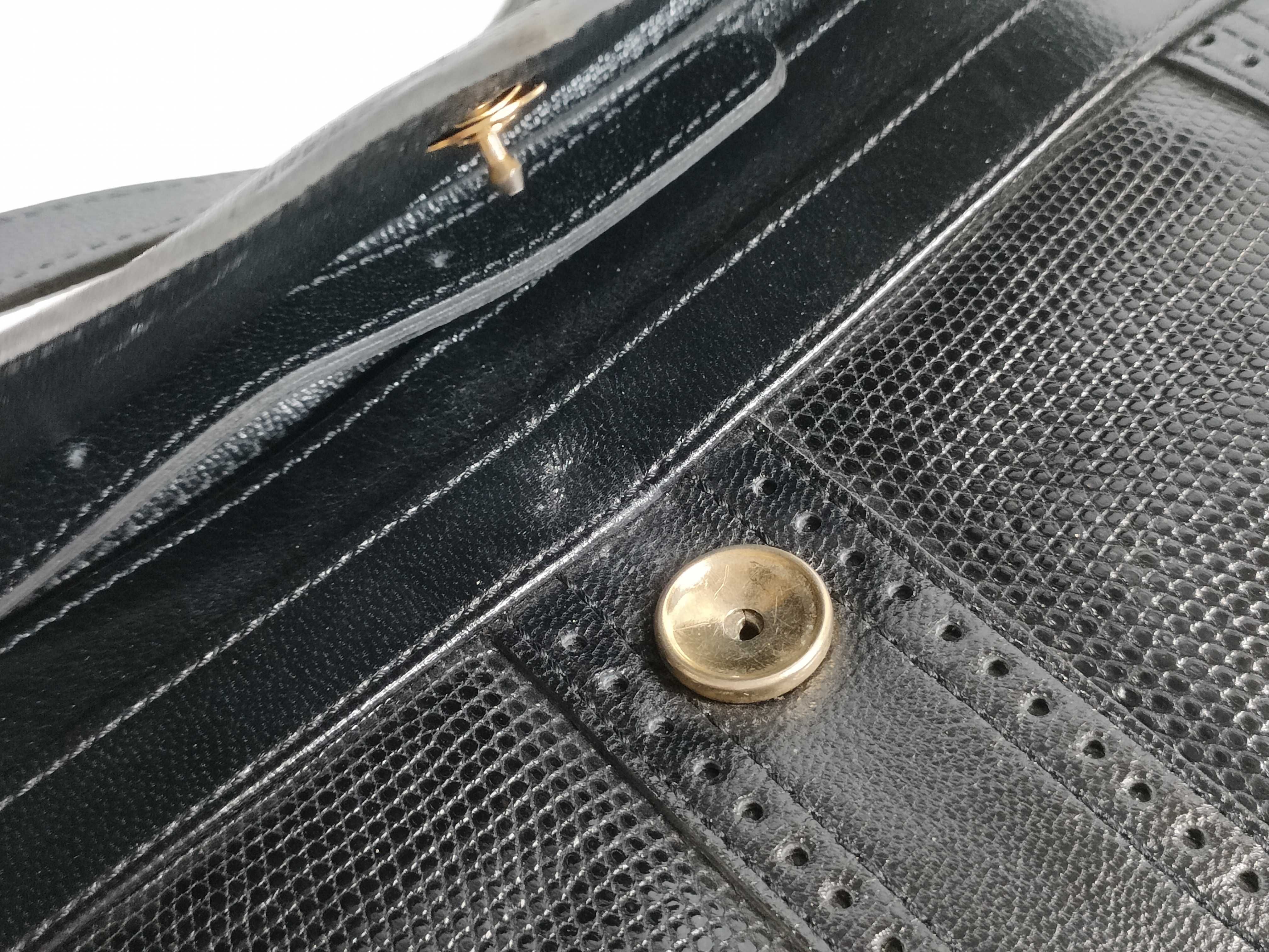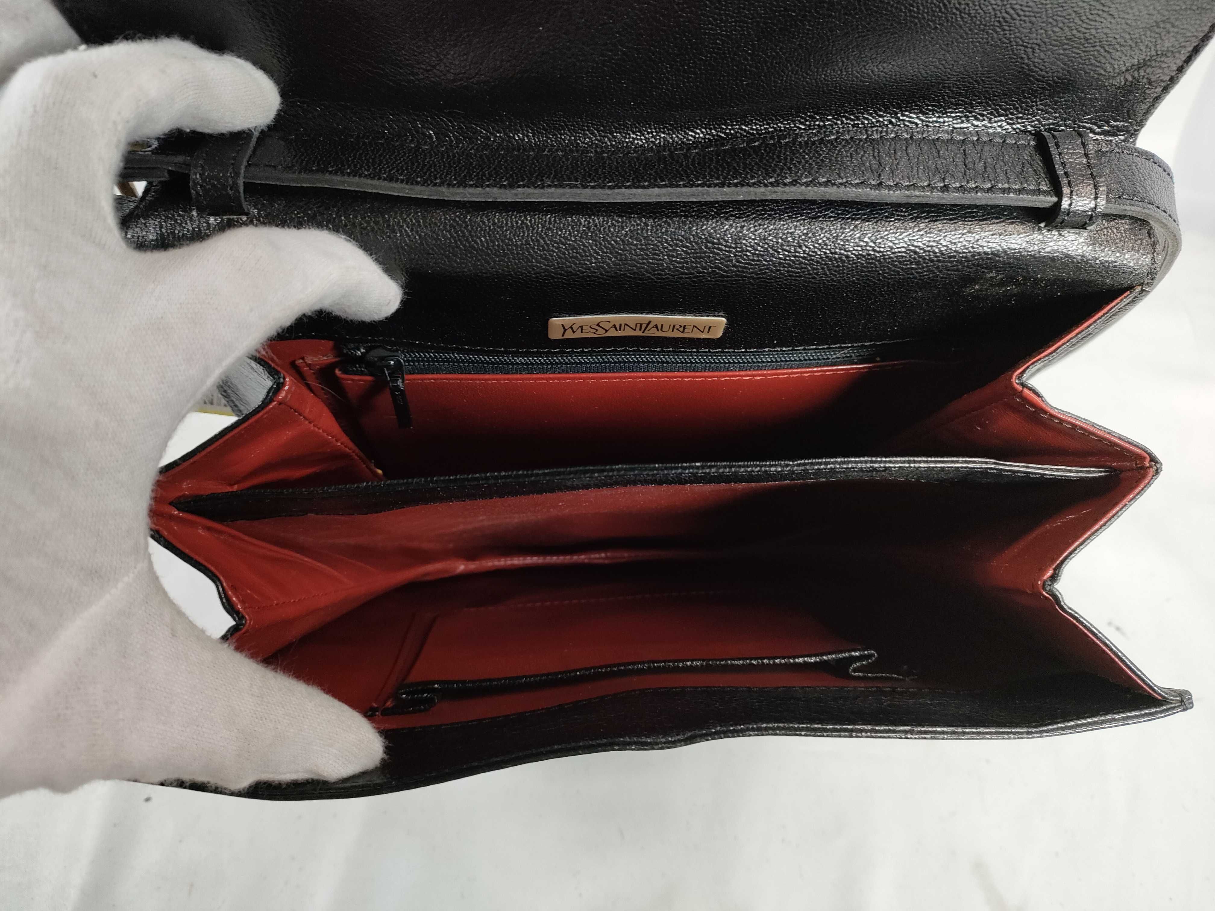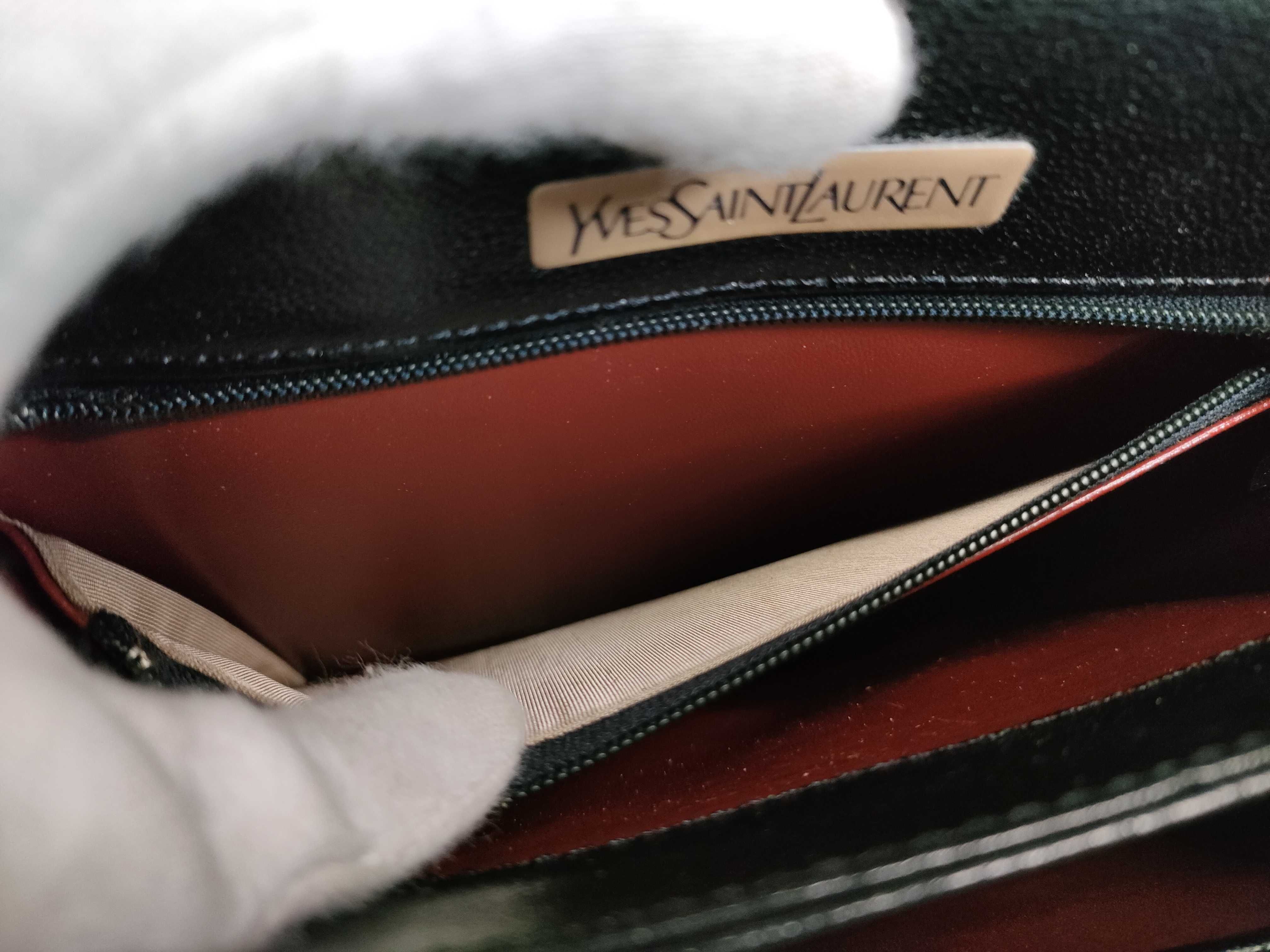 (D_0144)▼Yves Saint Laurent Yロゴ/パンチング/レザー×リザード型押し/ショルダーバッグ ショルダーバッグ