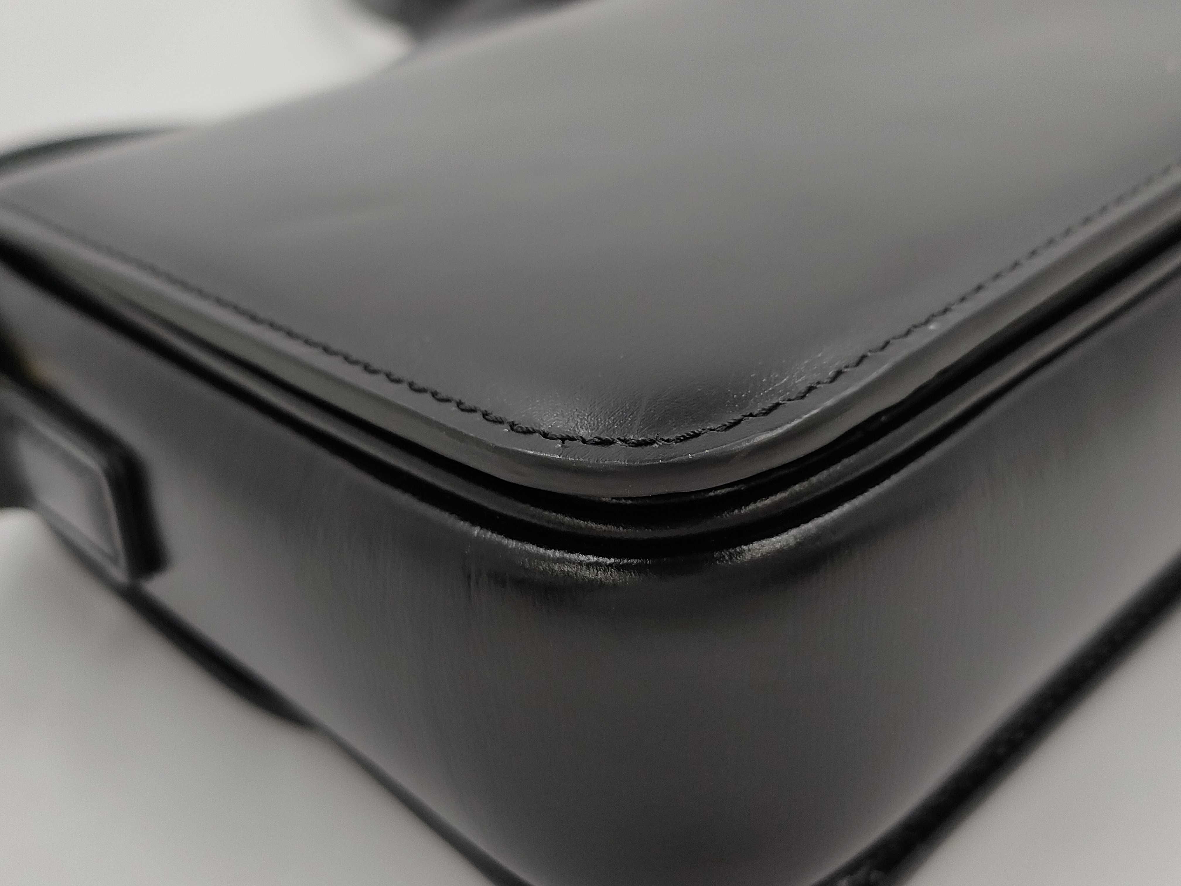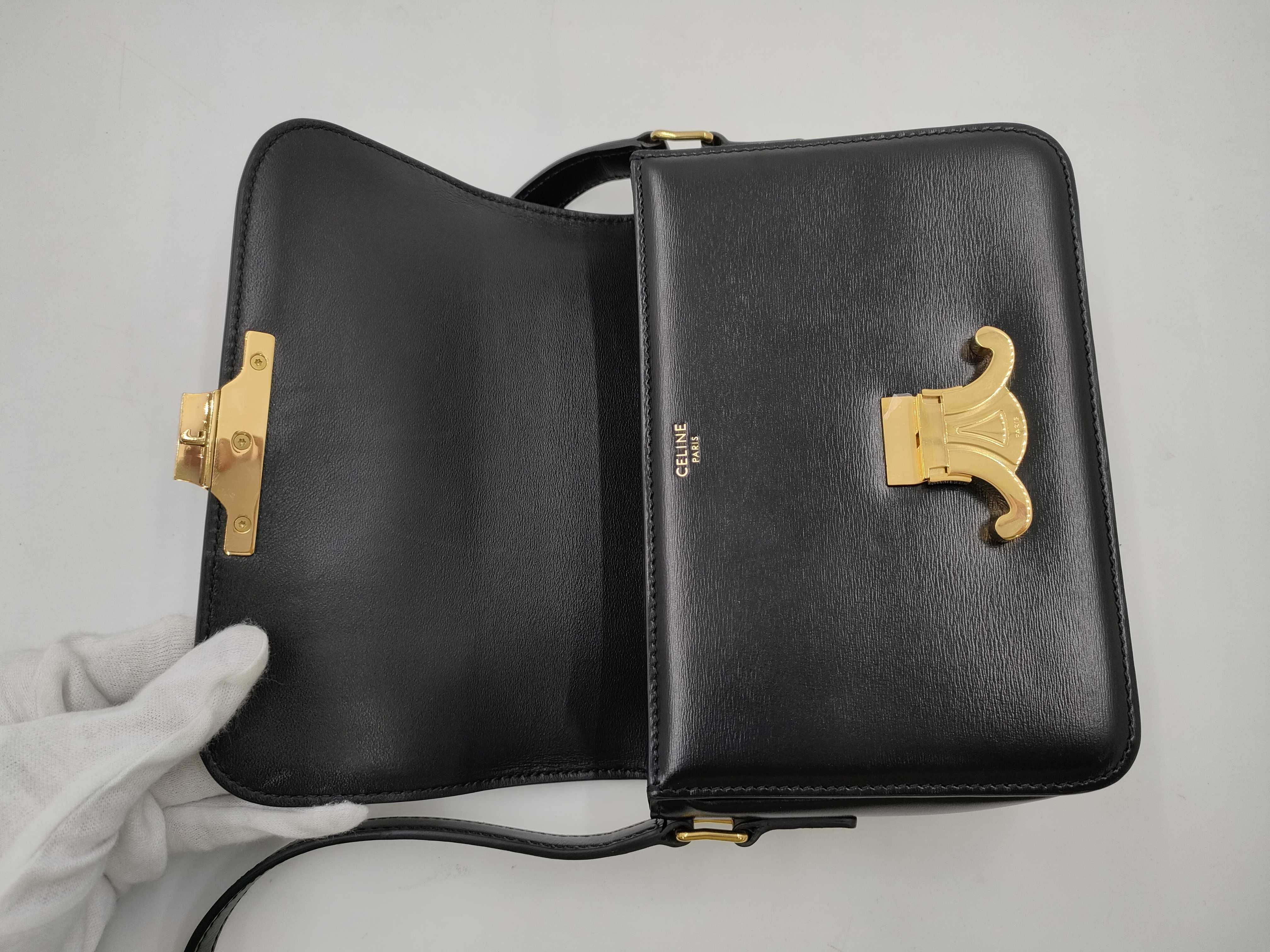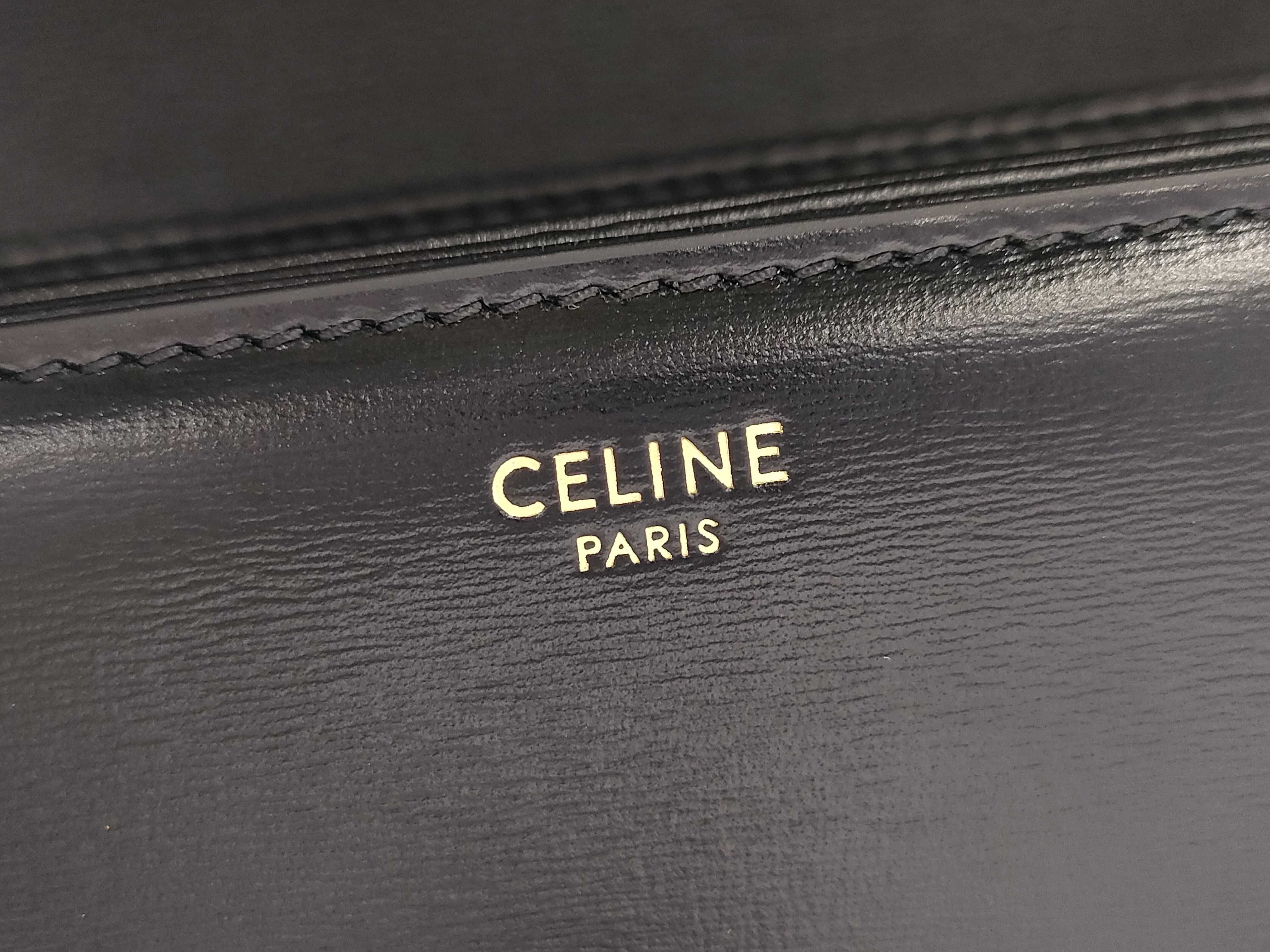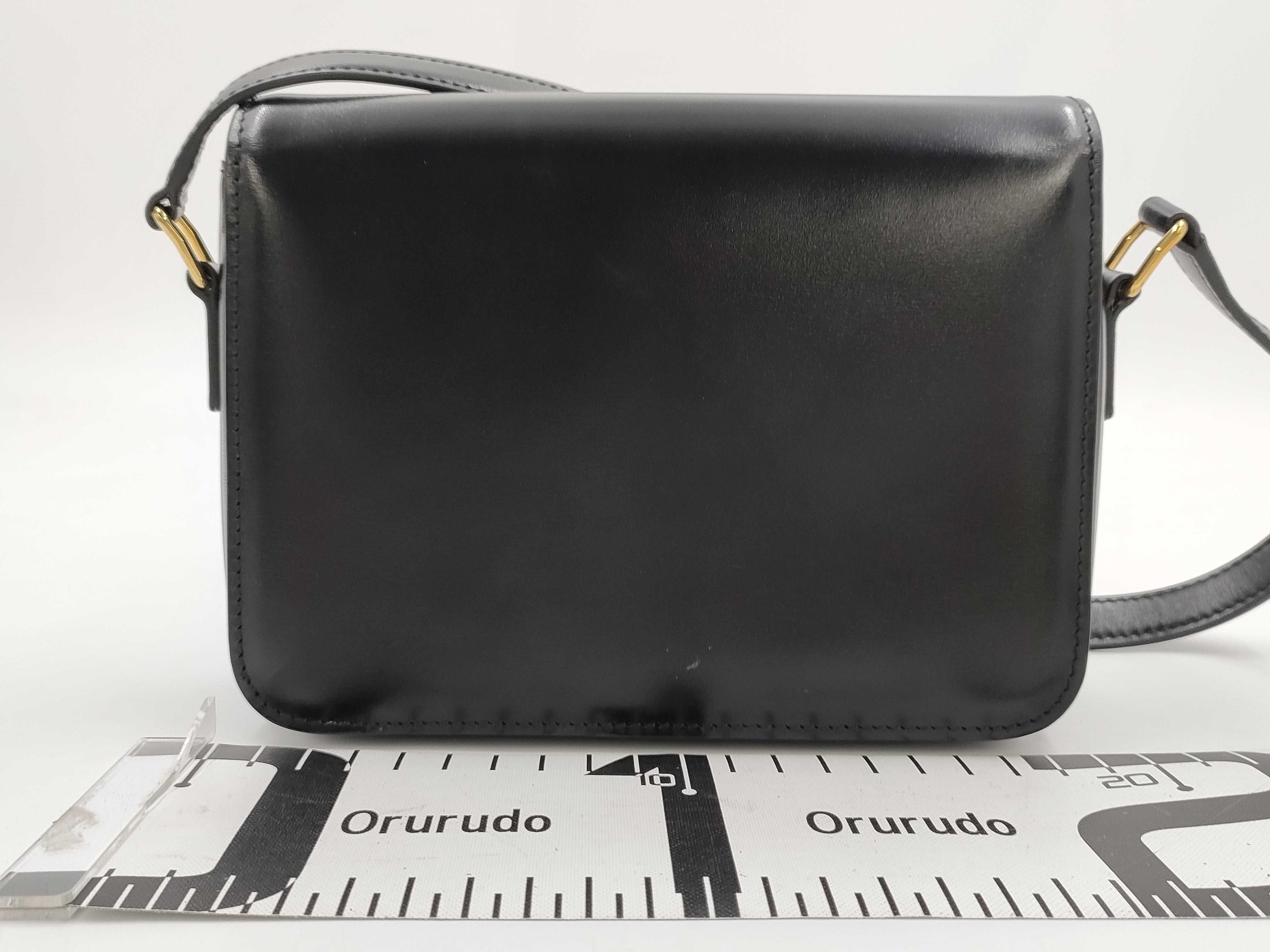 (D_0170)CELINE セリーヌ ティーントリオンフ シャイニーカーフスキン ブラック ショルダーバッグ