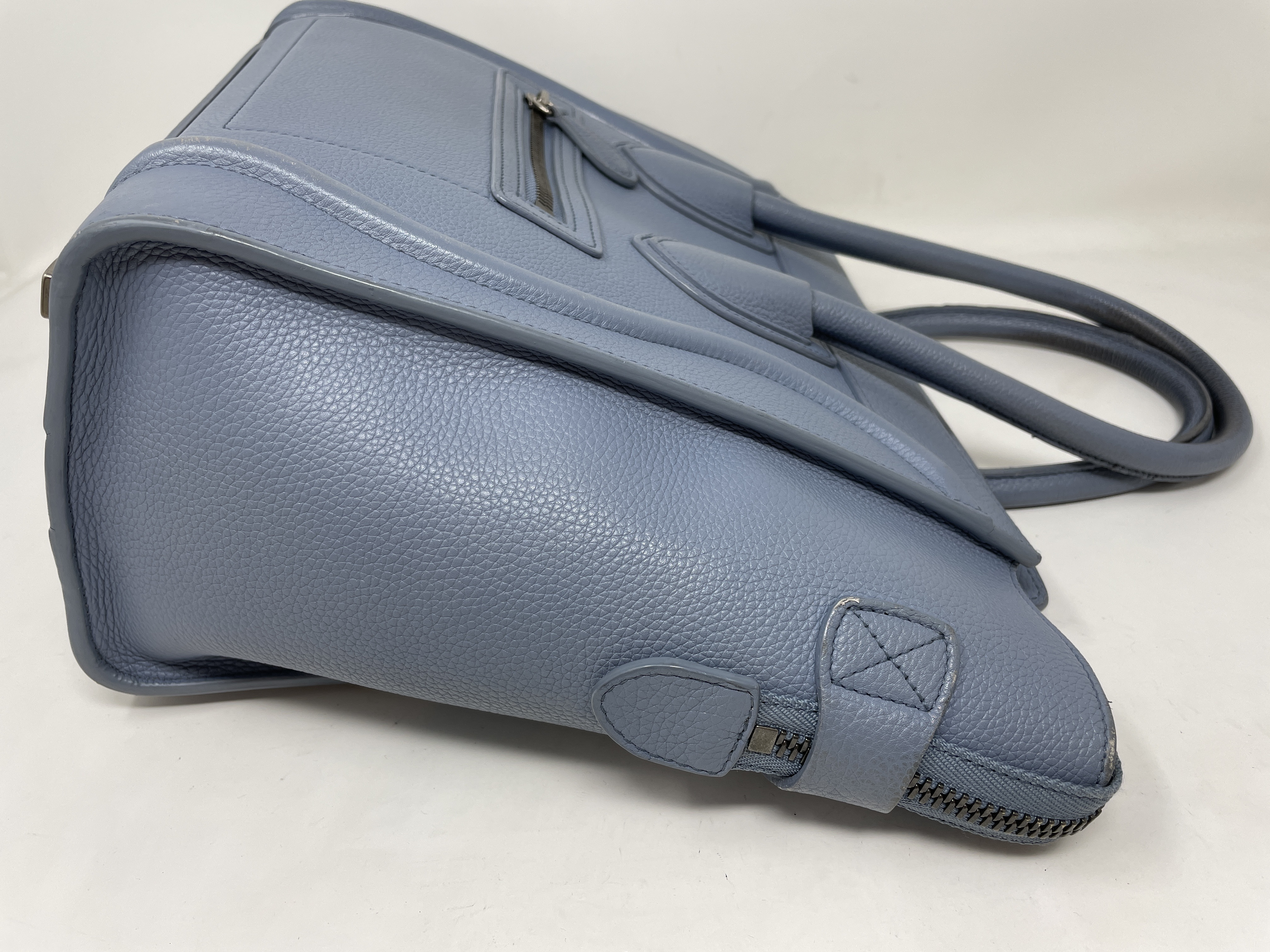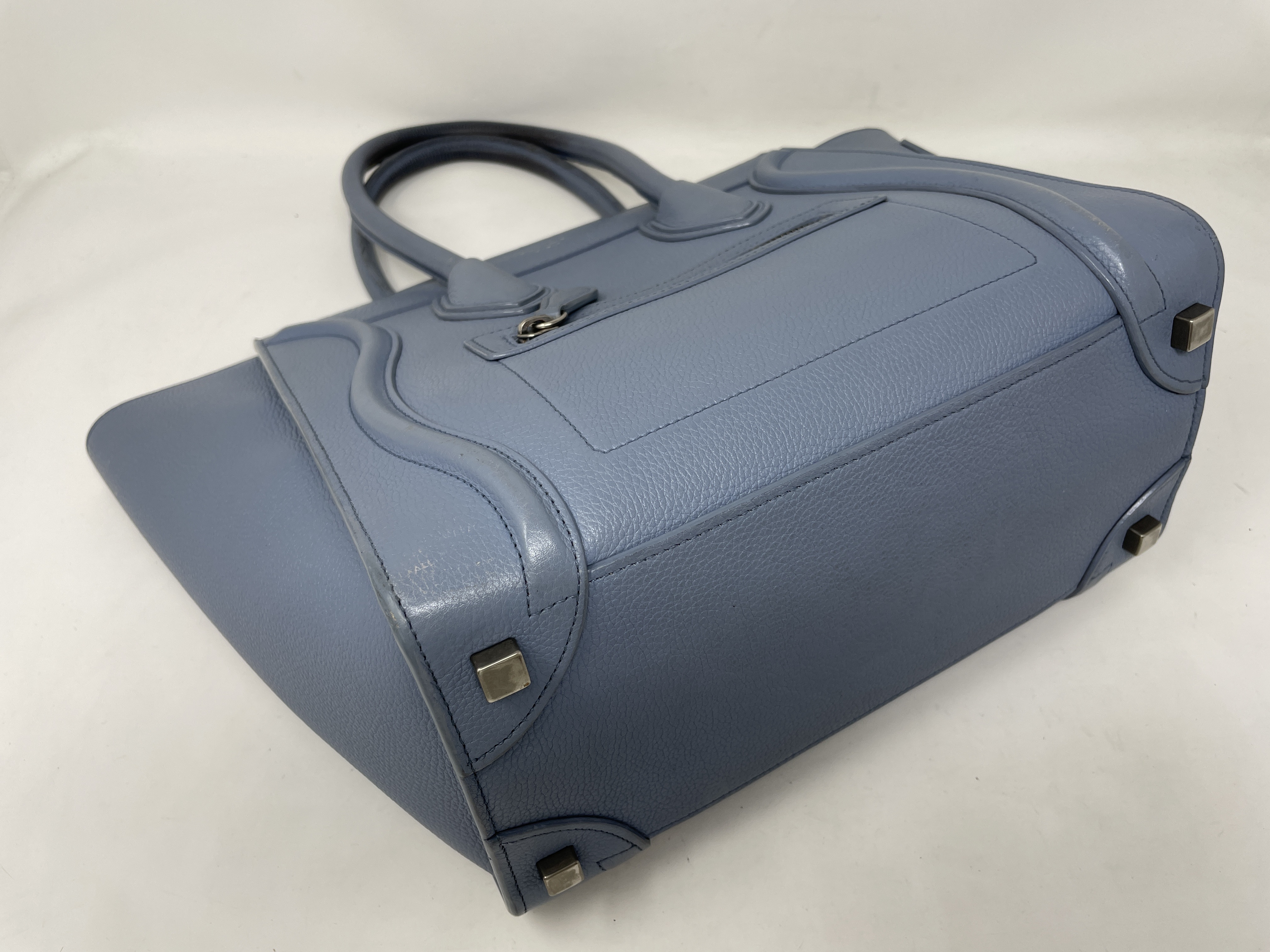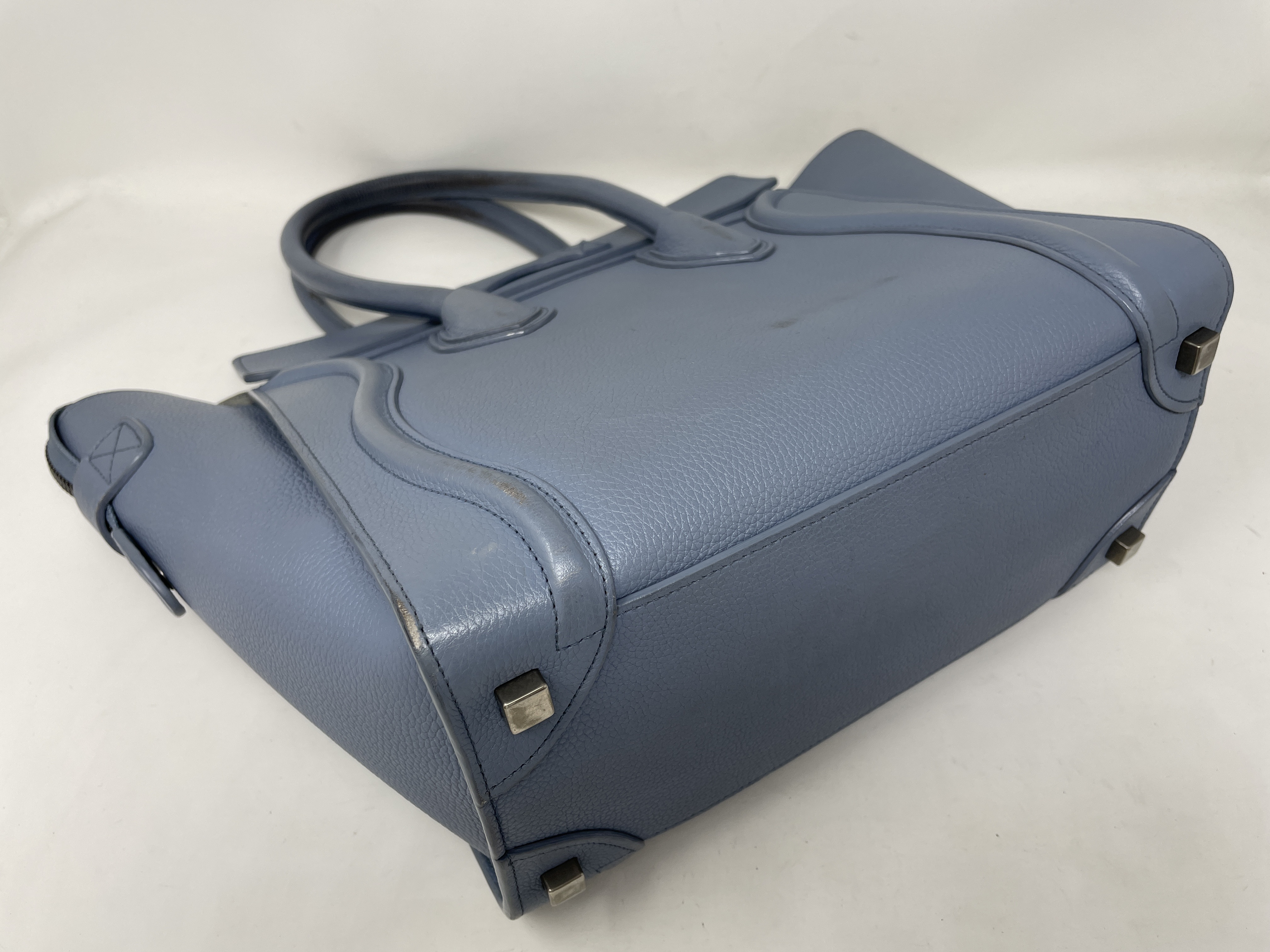 (D_0195)CELINE ラゲージ マイクロショッパー ブルー レザー ハンドバッグ