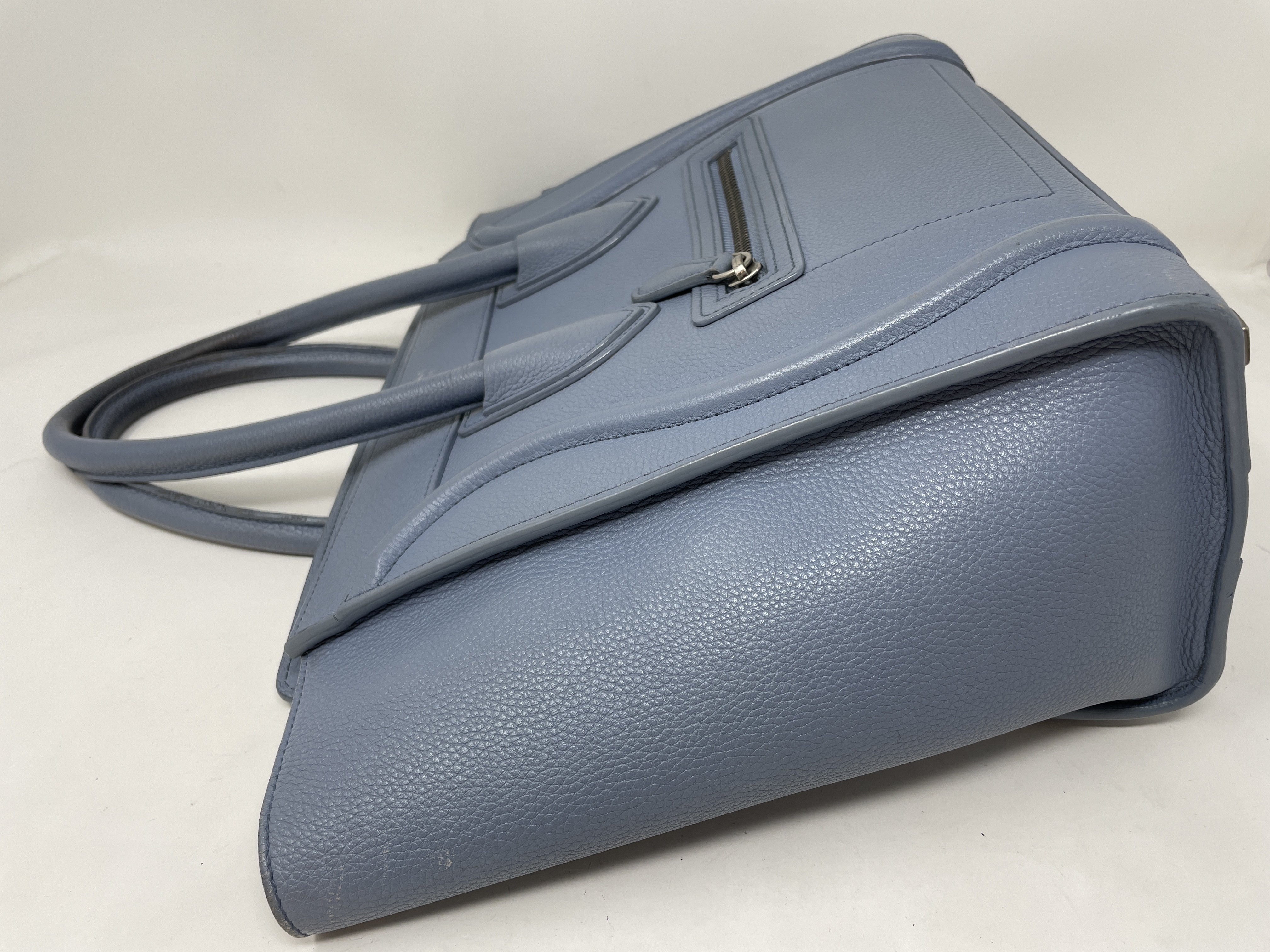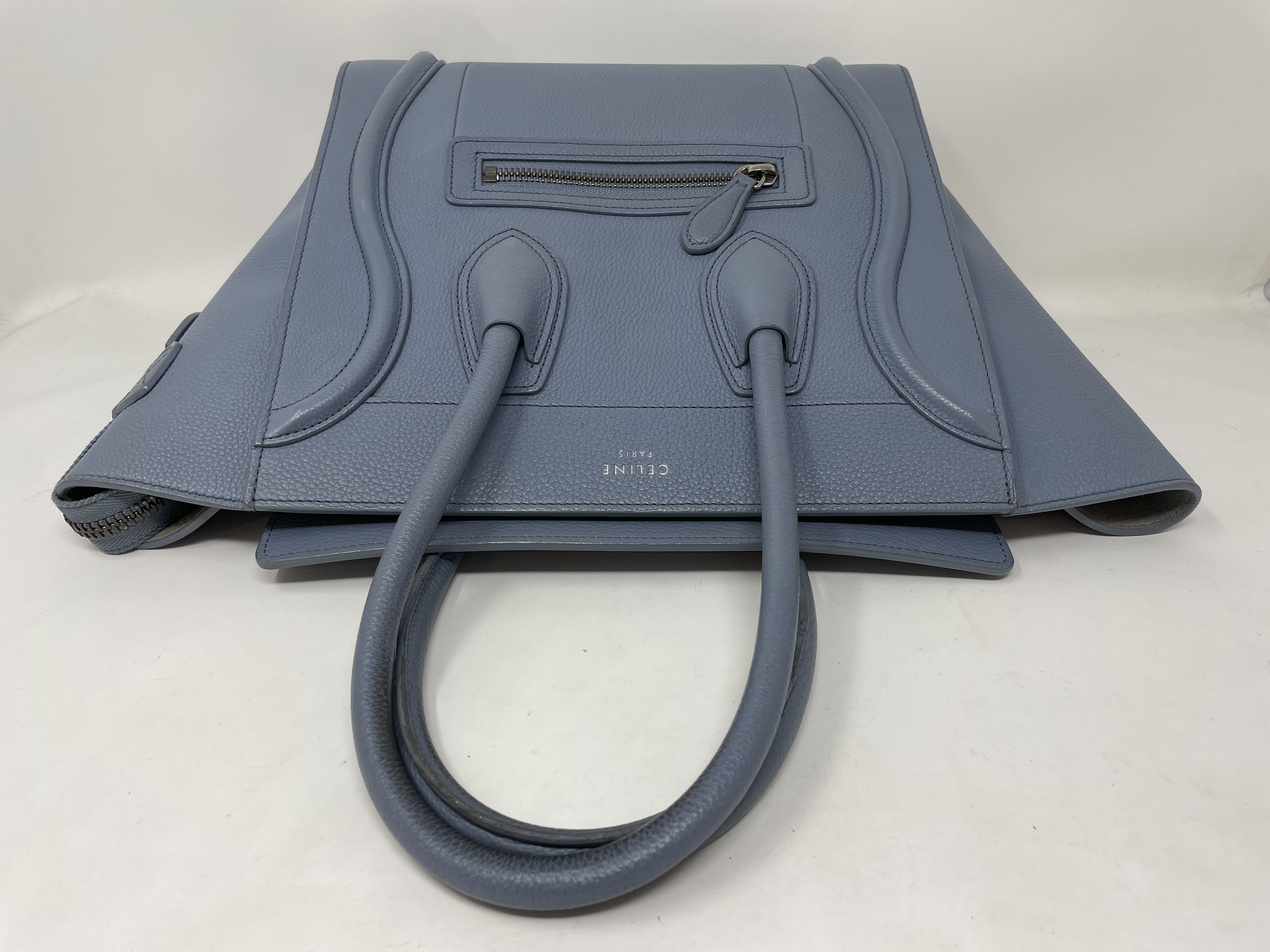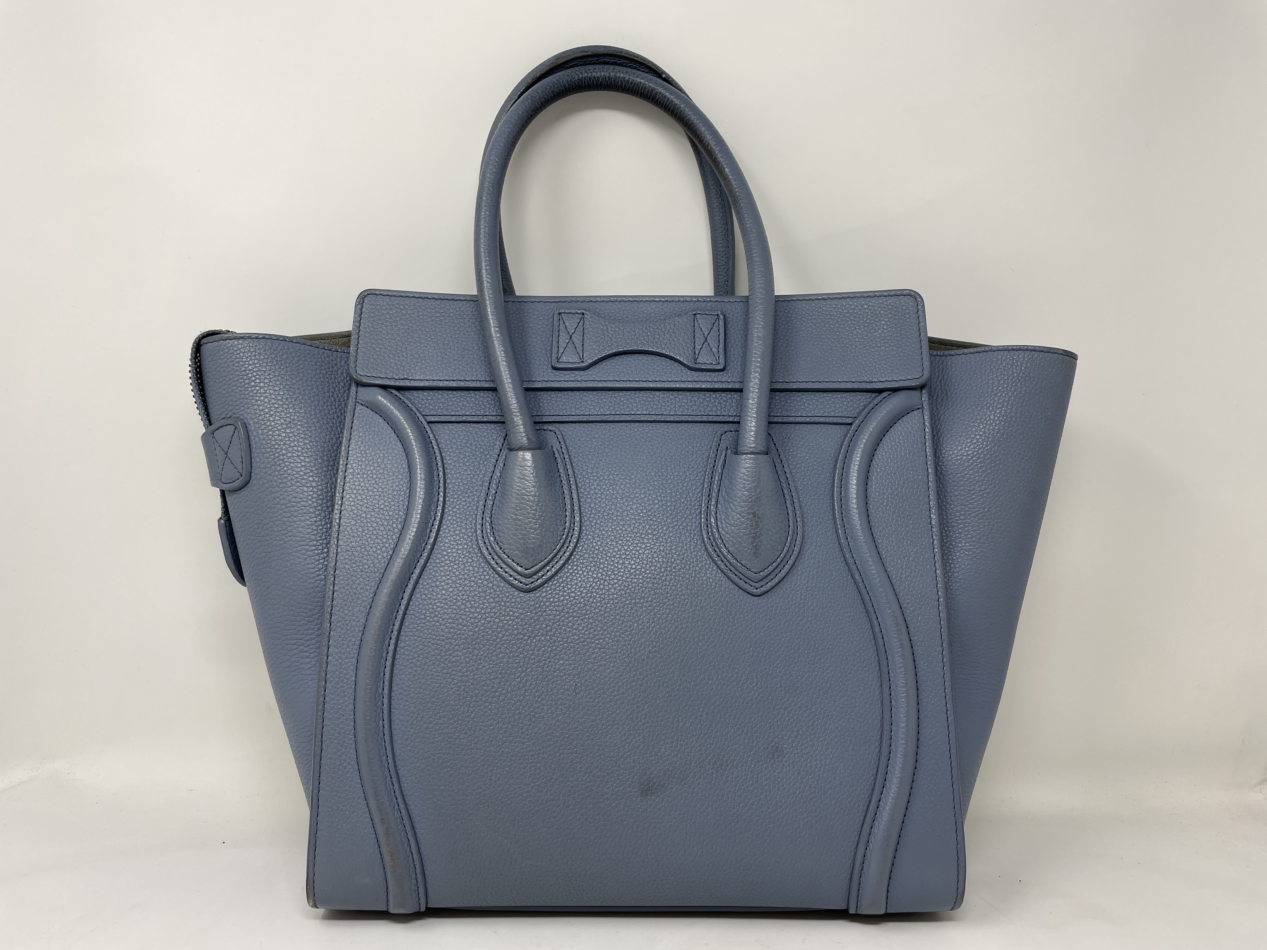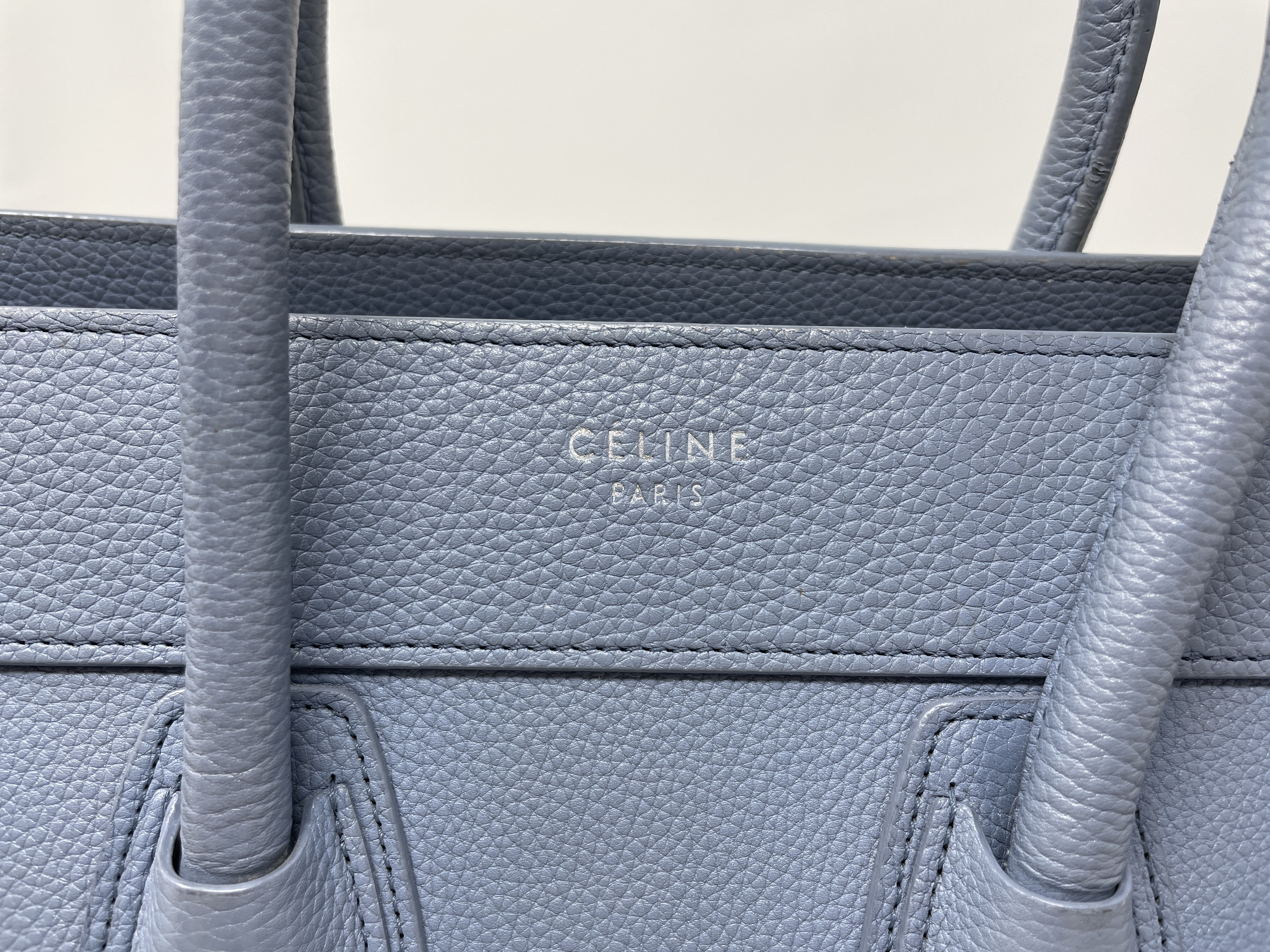(D_0195)CELINE ラゲージ マイクロショッパー ブルー レザー ハンドバッグ