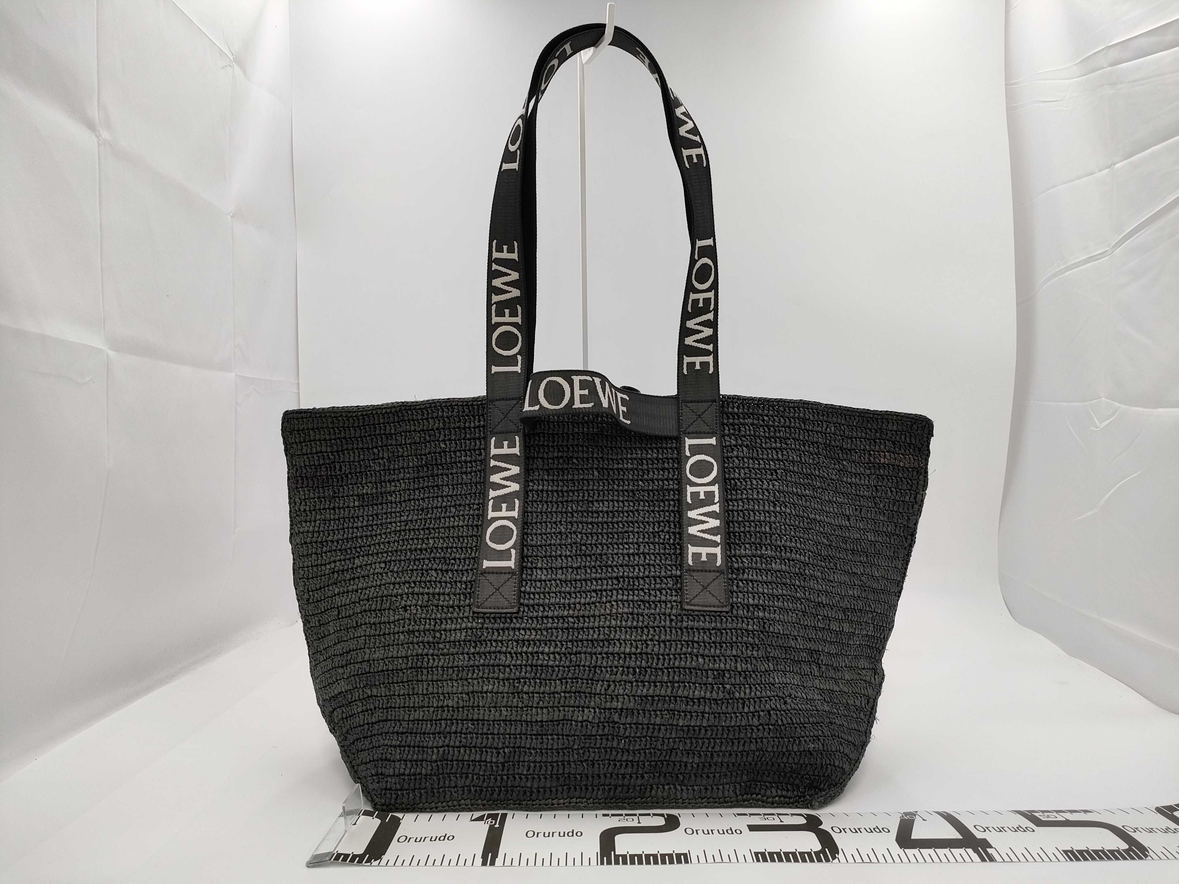 (D_0238)LOEWE ロエベ バッグ フォールドショッパー トートバッグ ラフィア ブラック ストロー トートバッグ