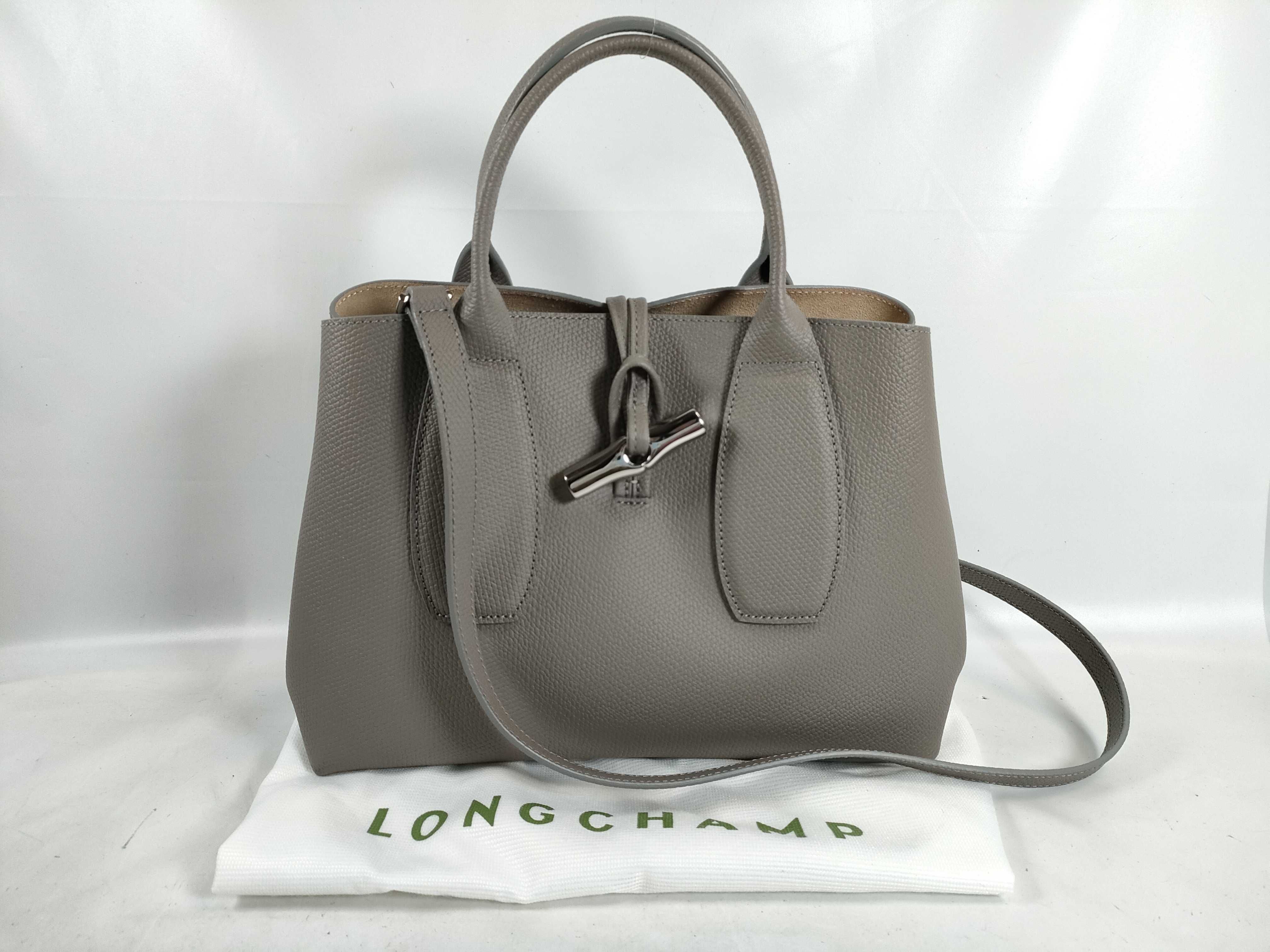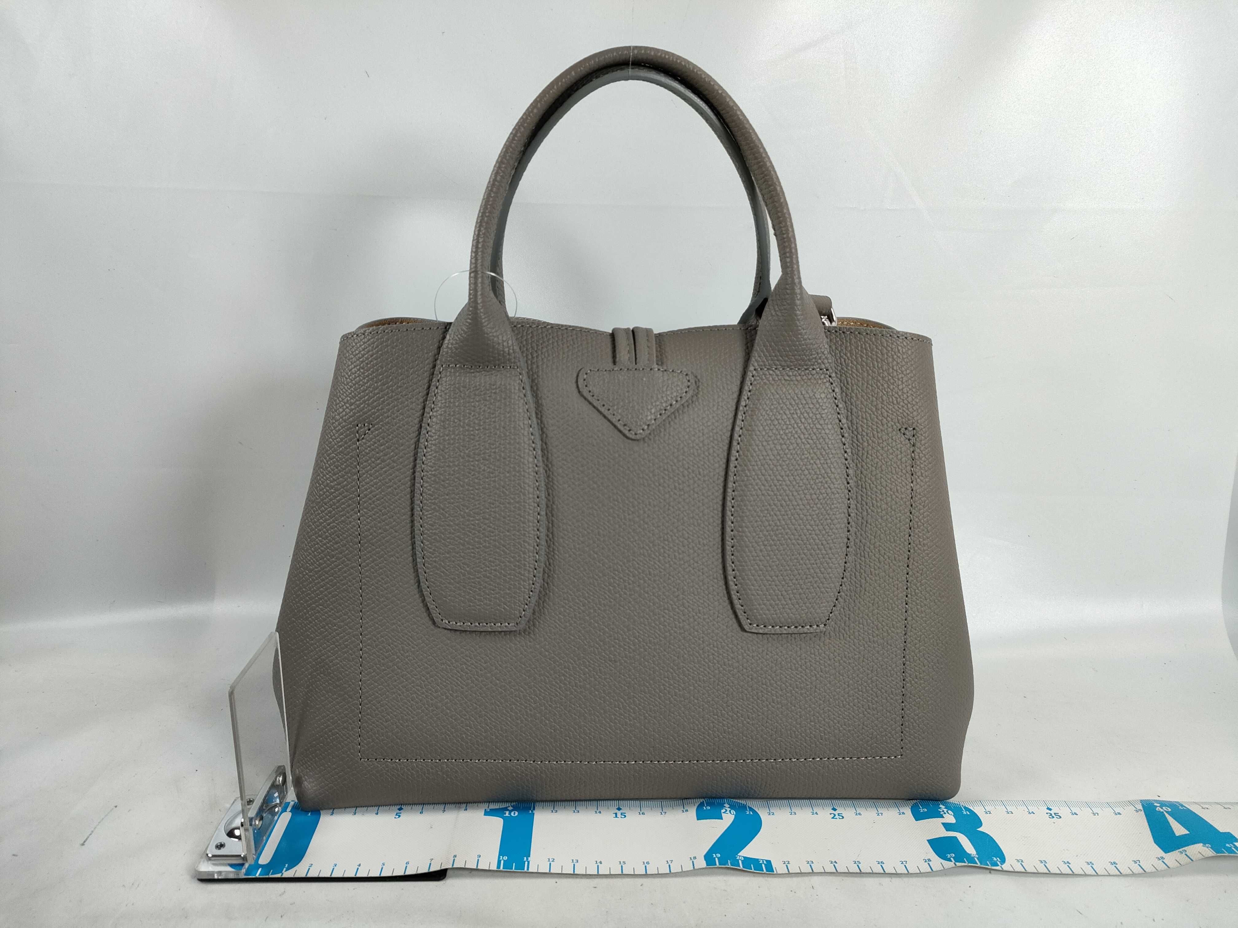 (D_0255)LONG CHAMP ロゾ 2wayバッグ レザー グレージュ ハンドバッグ