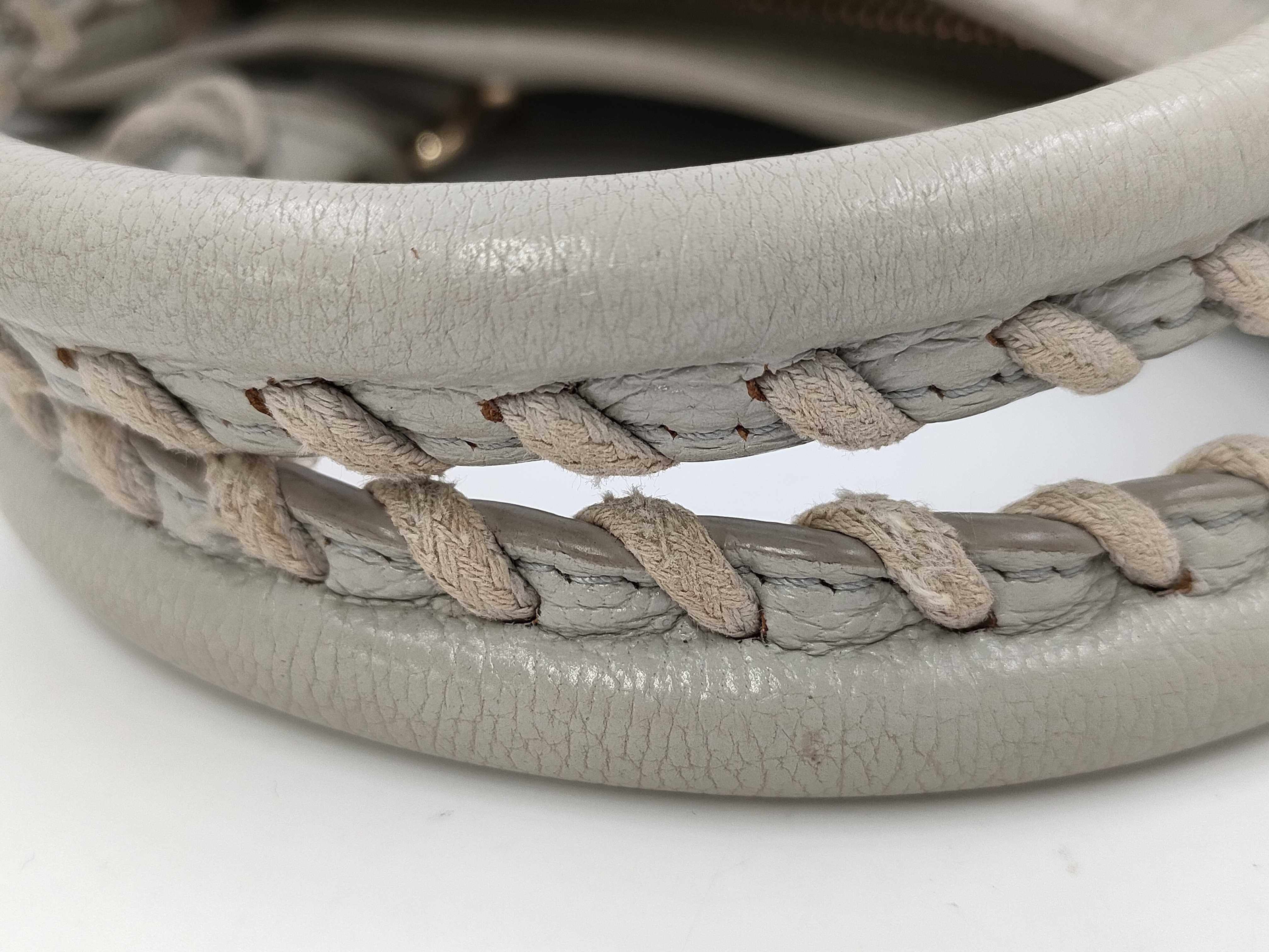 全体ヤケ擦れ(中) 角縁擦れ(中) 金具擦れ剥げ(中) 持ち手擦れ汚れ(中) 湿り気有 コバヒビ割れ(中) 間口縁コバヒビ(中) 内側・内ポケット擦れ汚れ(中) ミラー付き【付属品
