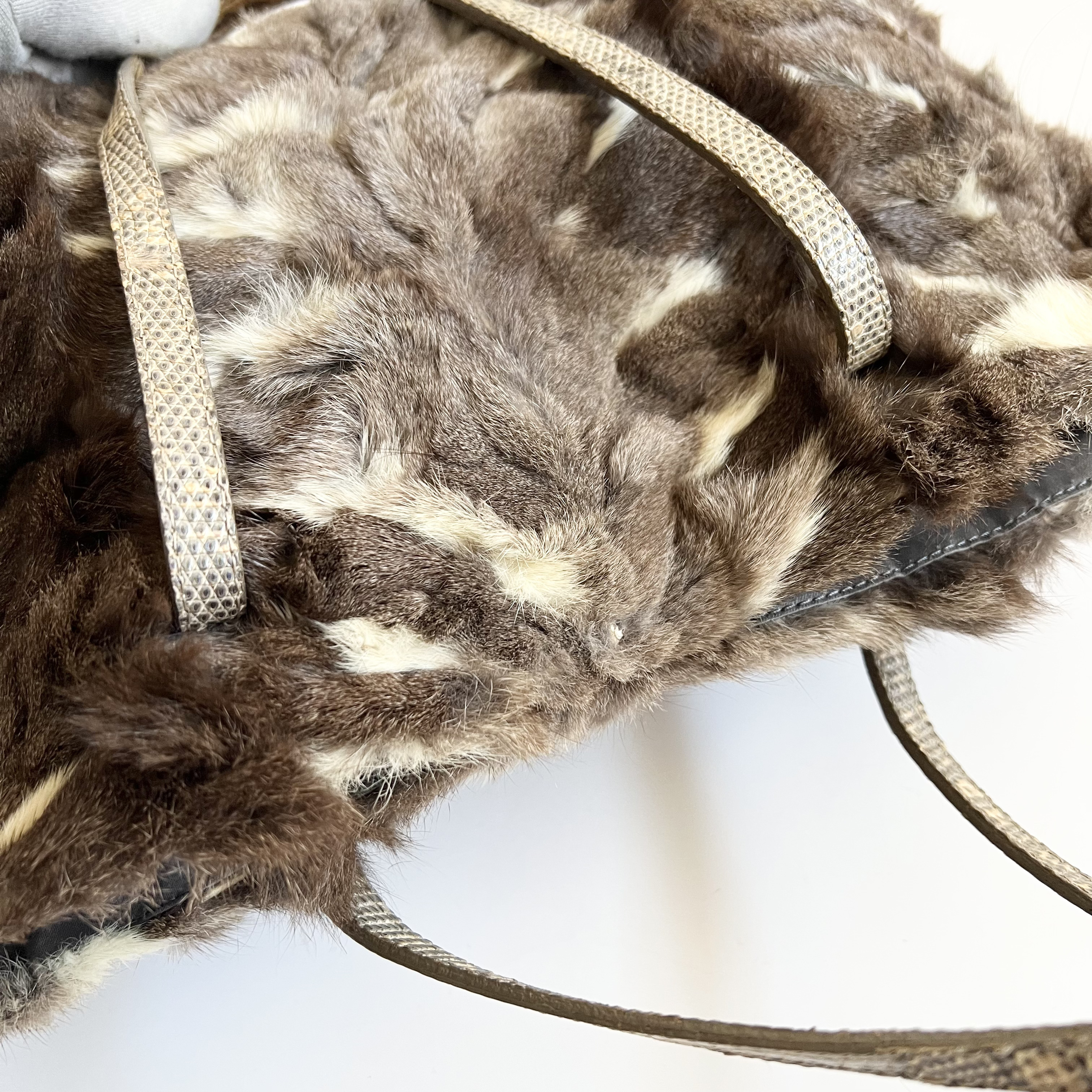 (D_0336)▼FENDI FENDI フェンディ ファー パイソン レザー トートバッグ ハンドバッグ トートバッグ