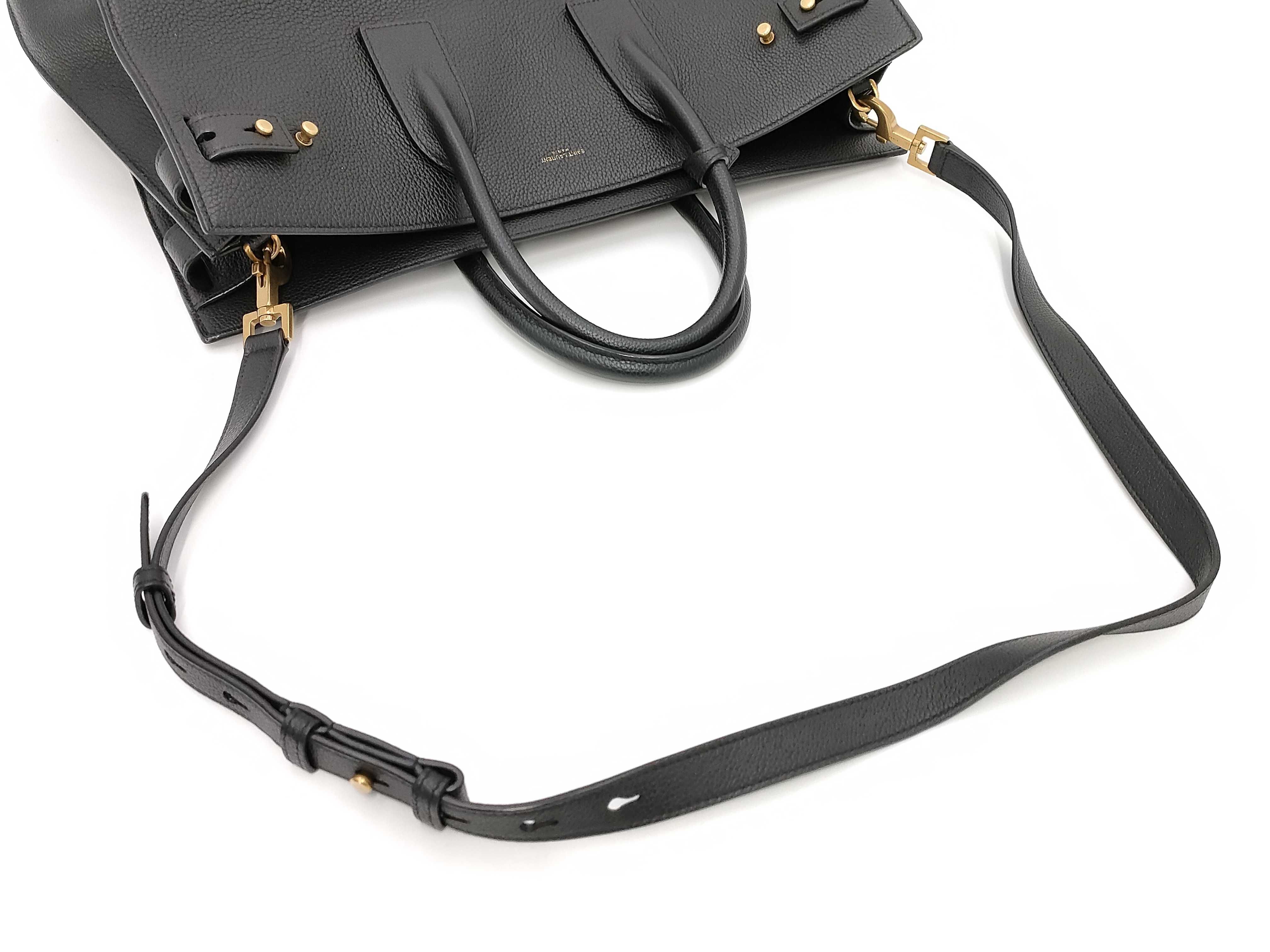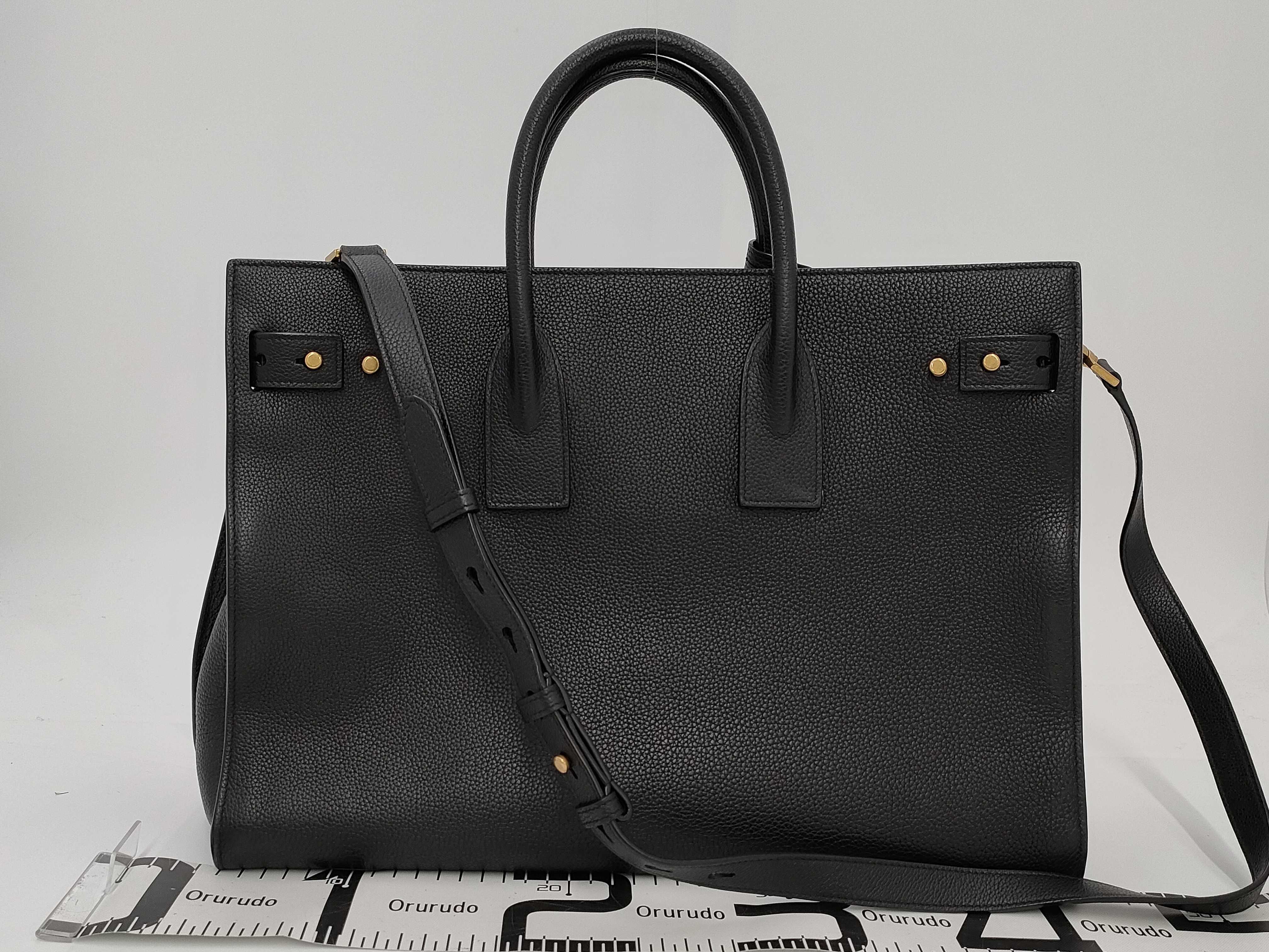 (D_0426)SAINT LAURENT サンローランパリ バッグ ラージ サック ド ジュール レザー 2WAYハンドバッグ ブラック トートバッグ