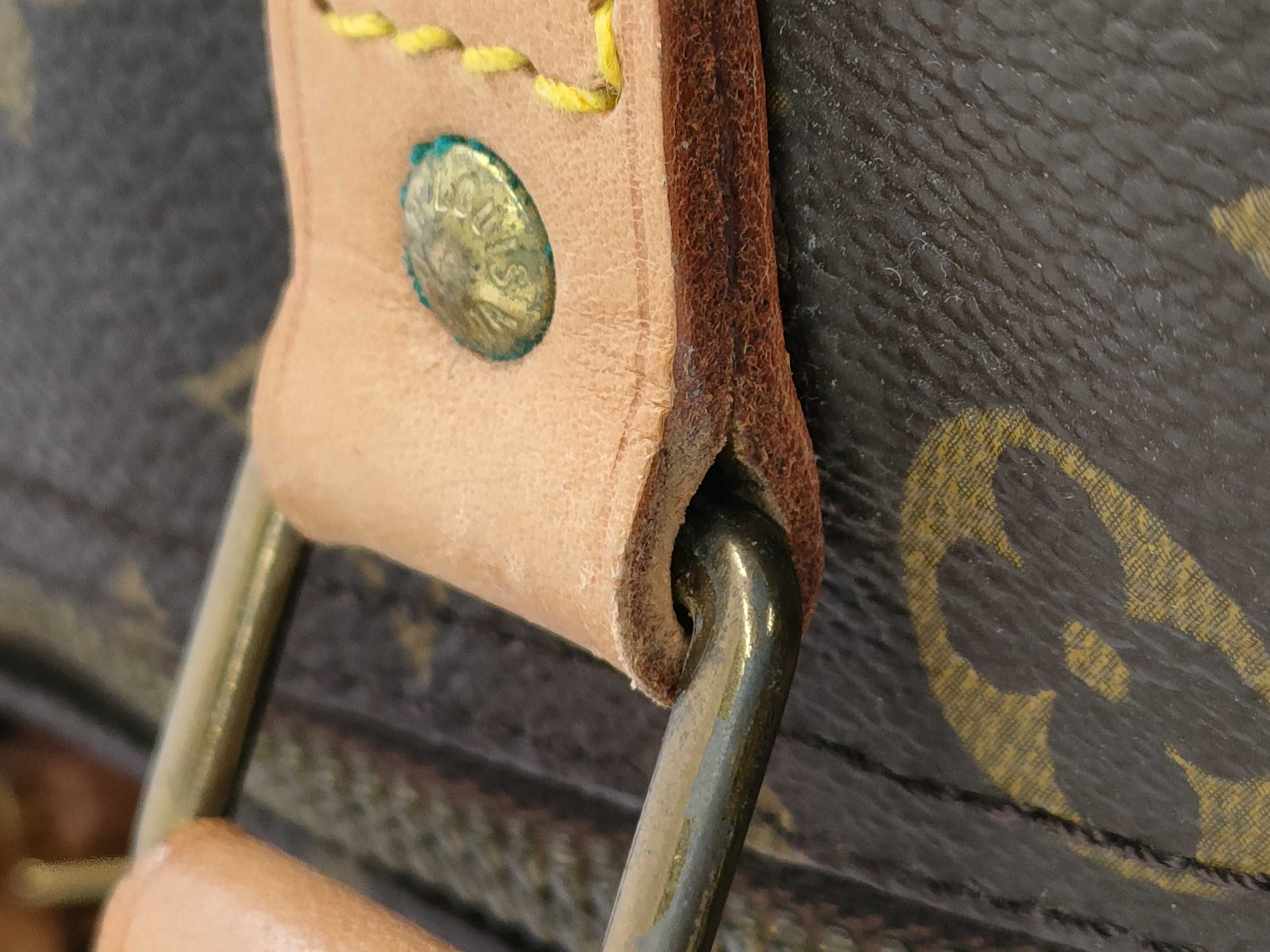 全体擦れ汚れ(中) ヌメ革薄ヒビ(小) ヤケシミ(中) 型崩れ(中) 角縁擦れ(中) 金具擦れくすみ(中) 持ち手黒ずみ擦れ(中) コバ擦れ割れ(中) 内側擦れ(中) におい(小) 【シリアル