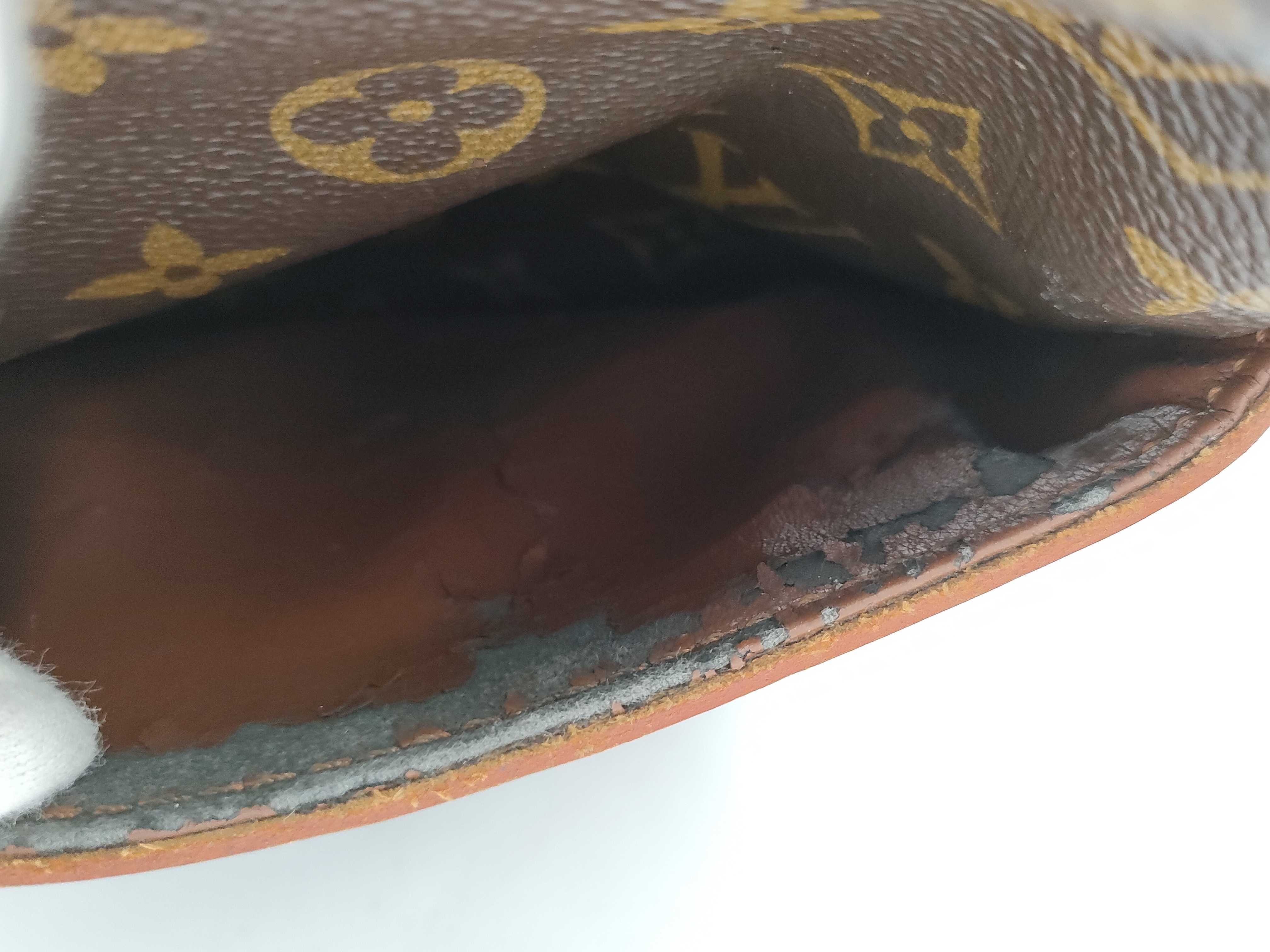 内外ポケット劣化べた剥がれ(中) 角縁擦れ(中) ヌメ革ヤケシミ傷(中) ショルダー付け根ヨレ伸び(大) 内側擦れ傷(小) 【シリアル