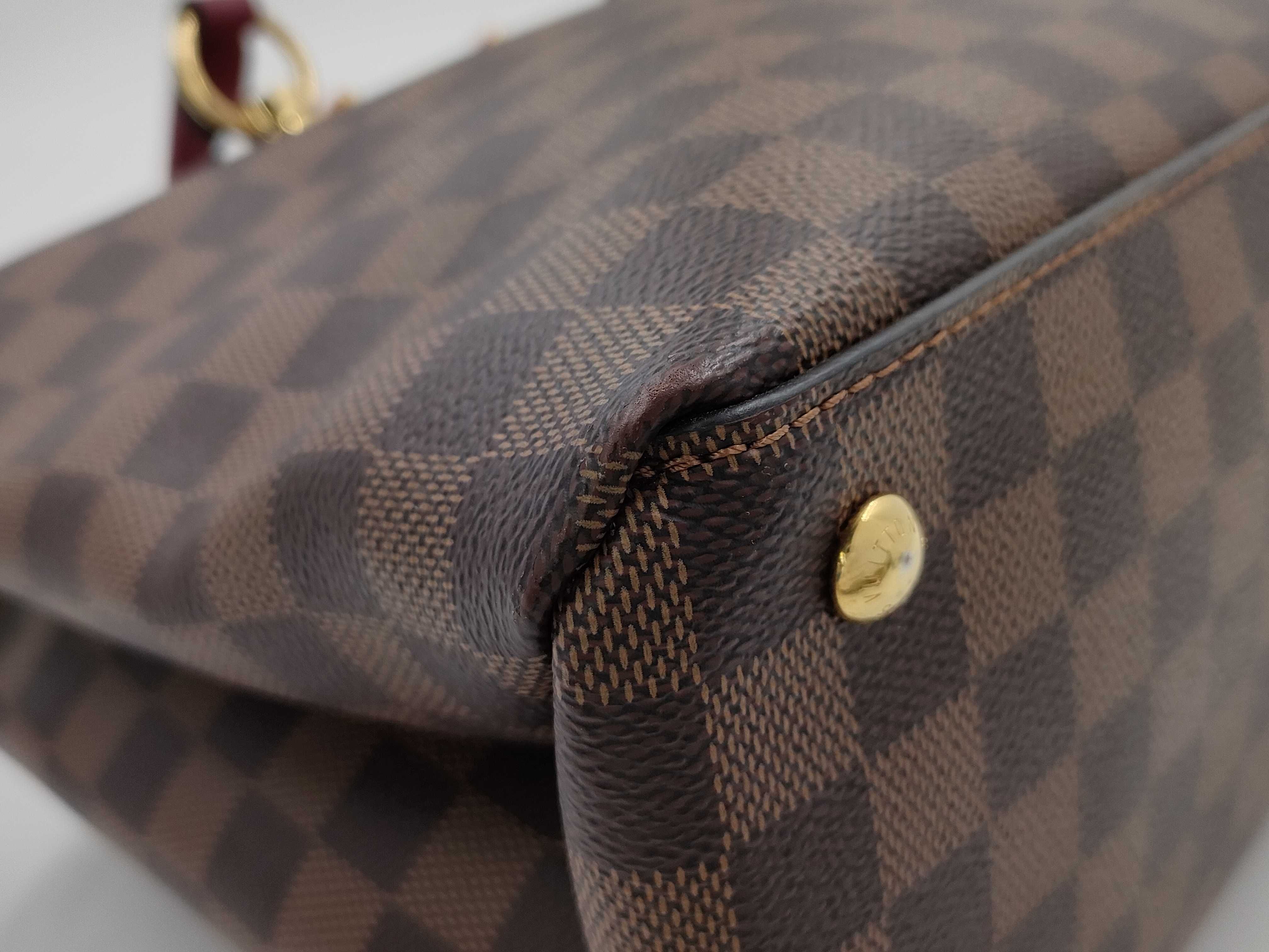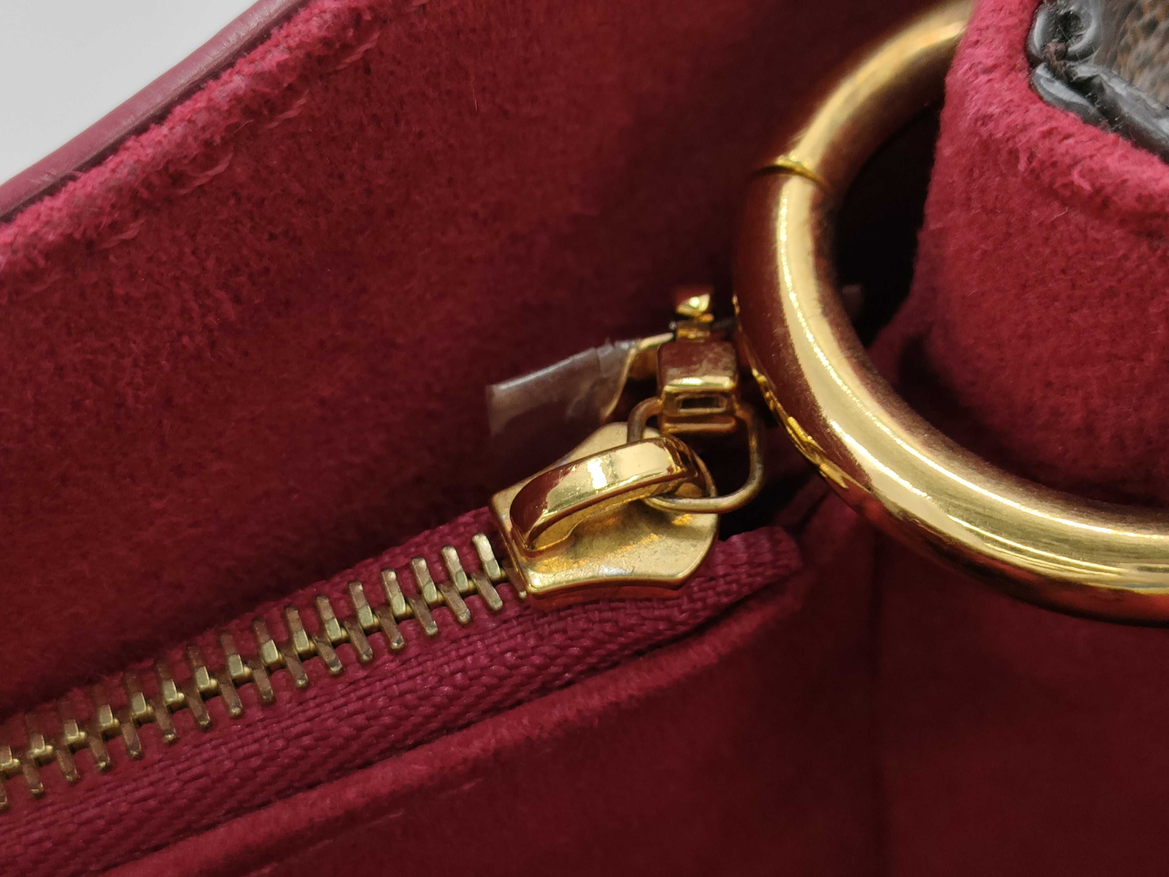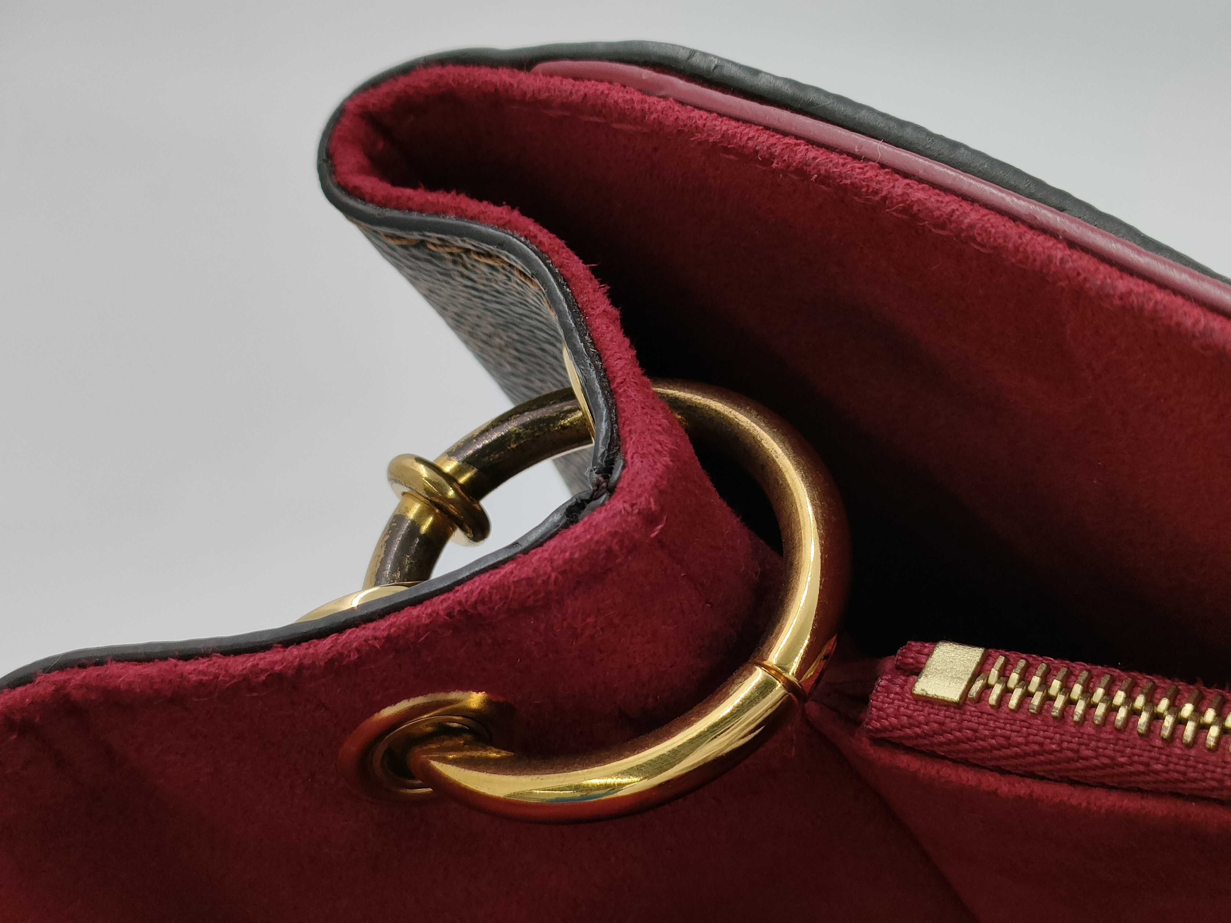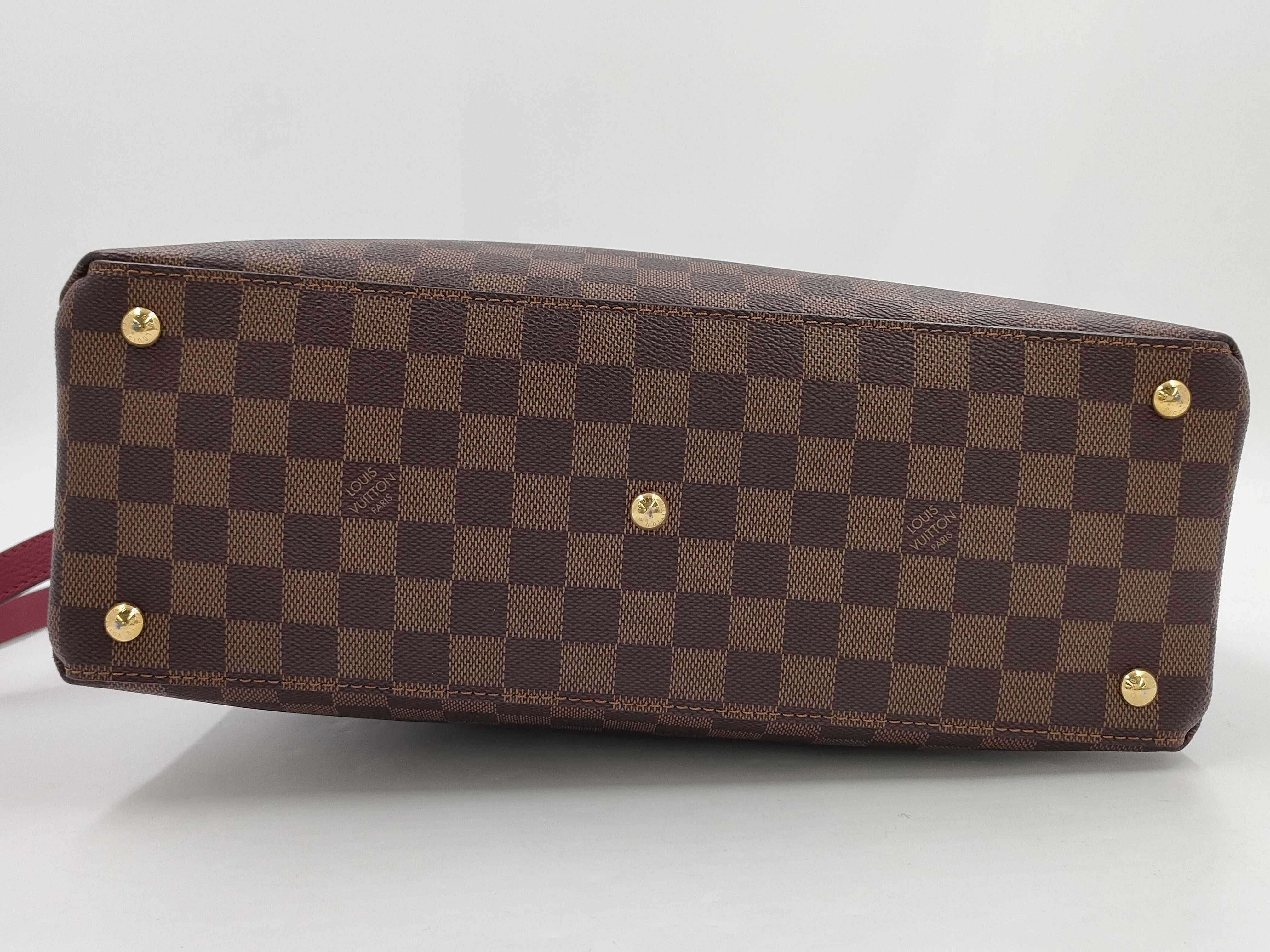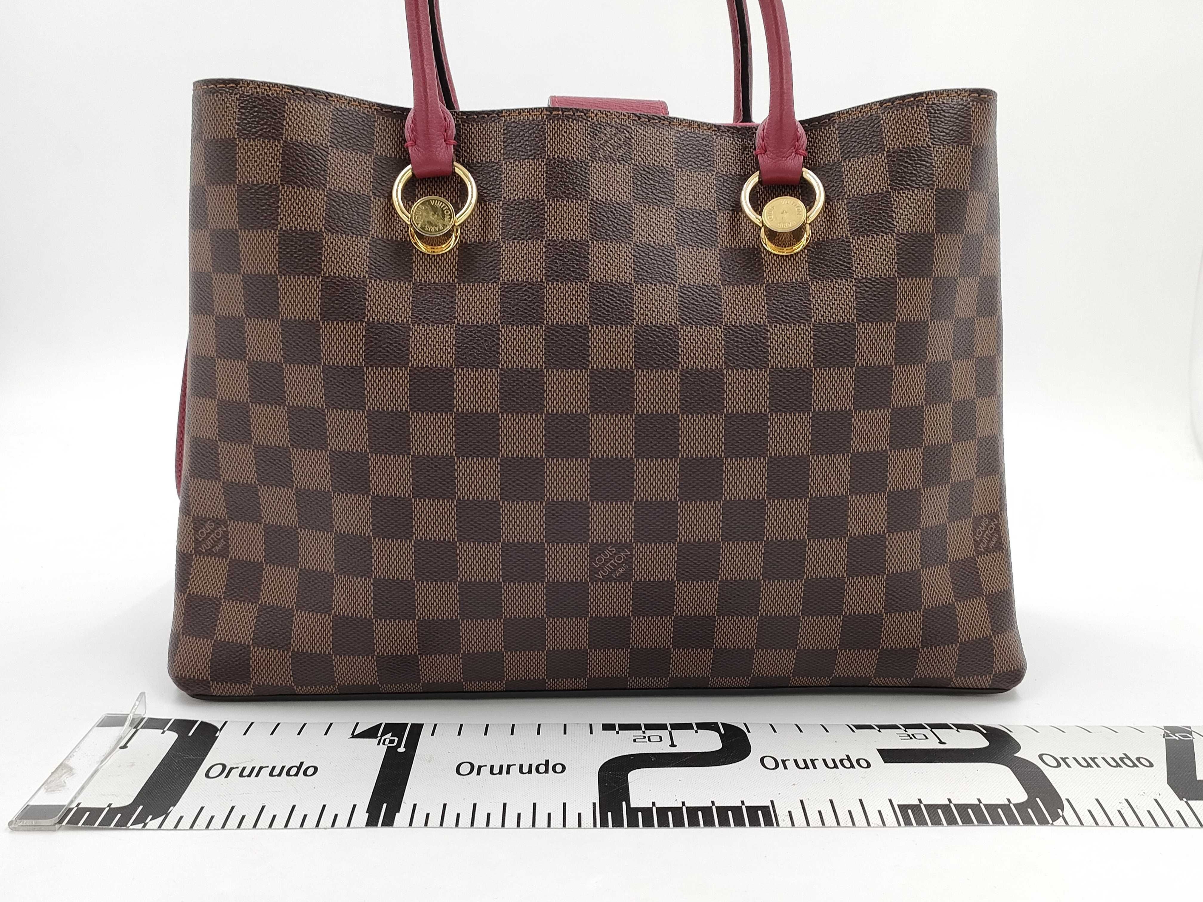 (C_0202)LOUIS VUITTON ダミエ エベヌ リバーサイド N40052 ブラウン レッド ゴールド金具 PVCコーティングキャンバス DU4198 トートバッグ ショルダーバッグ