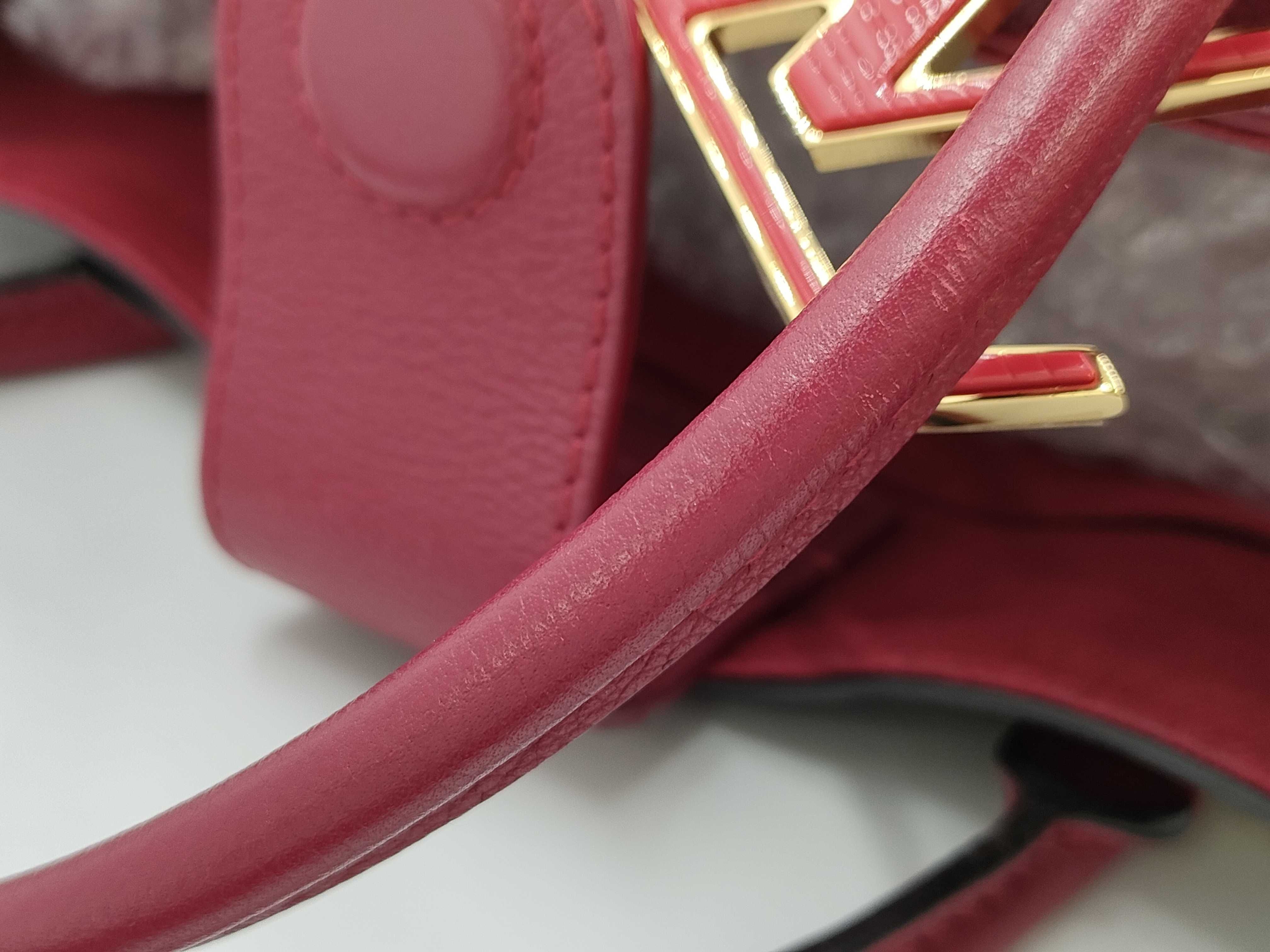 全体焼け擦れ薄汚れ(小) 型崩れ(小) 角・ふち擦れ剥げ変色(中) 金具擦れ傷・メッキ剥げ(中)汚れ(小)・ストラップ取り付け用金具部メッキ剥げ黒ずみ(大) 持ち手擦れ汚れ・コバ溶け擦れ(小) 内側擦れ汚れ(小) /付属・・・ストラップ 【シリアル