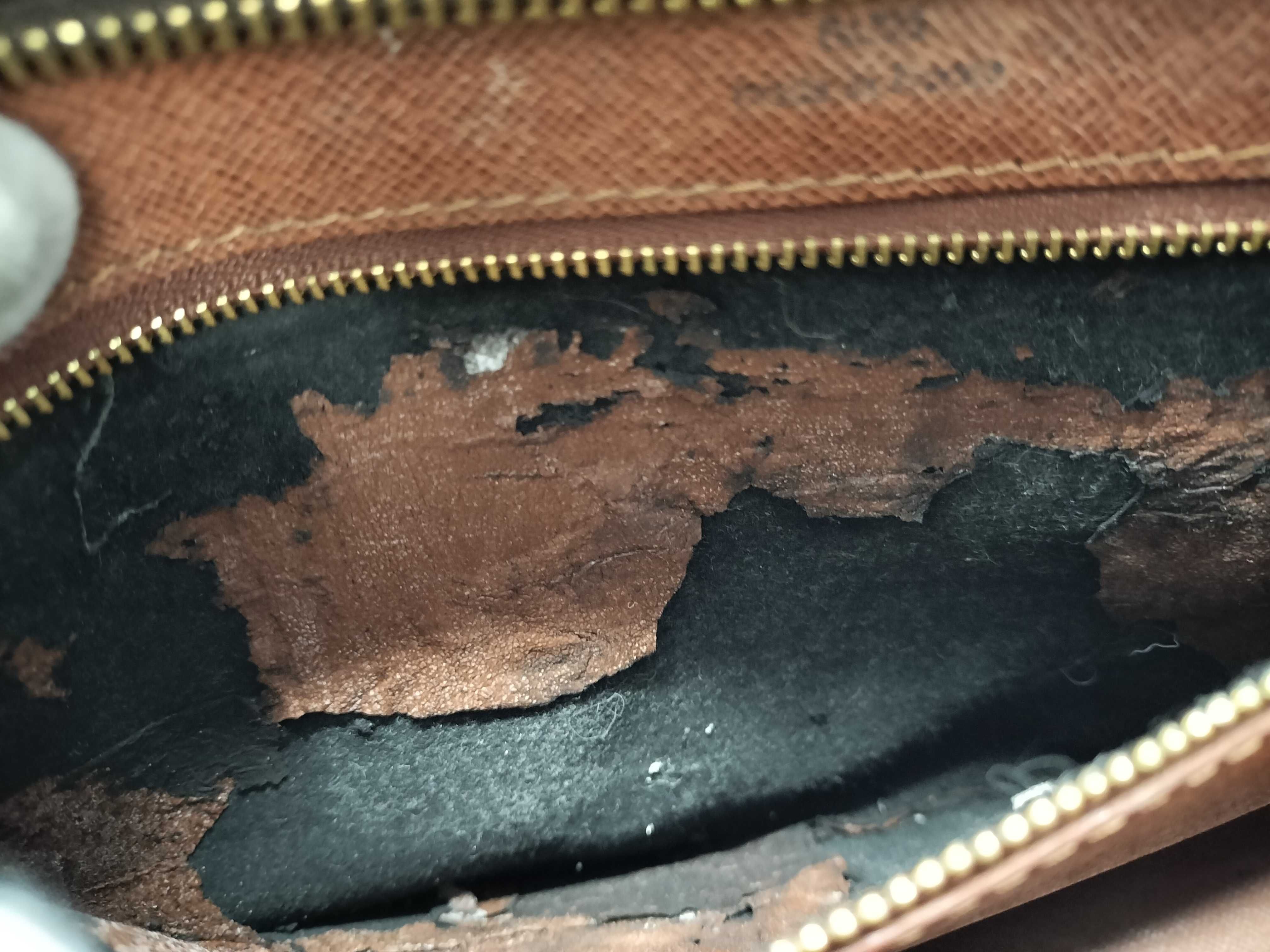 内ポケット劣化べた剥がれ(大) 角縁擦れ(中) 金具擦れ剥げ(中) ヌメ革ヤケシミ(中) ショルダーヨレヒビ(中) 内側・外ポケットカビシミ汚れ(中)【付属品