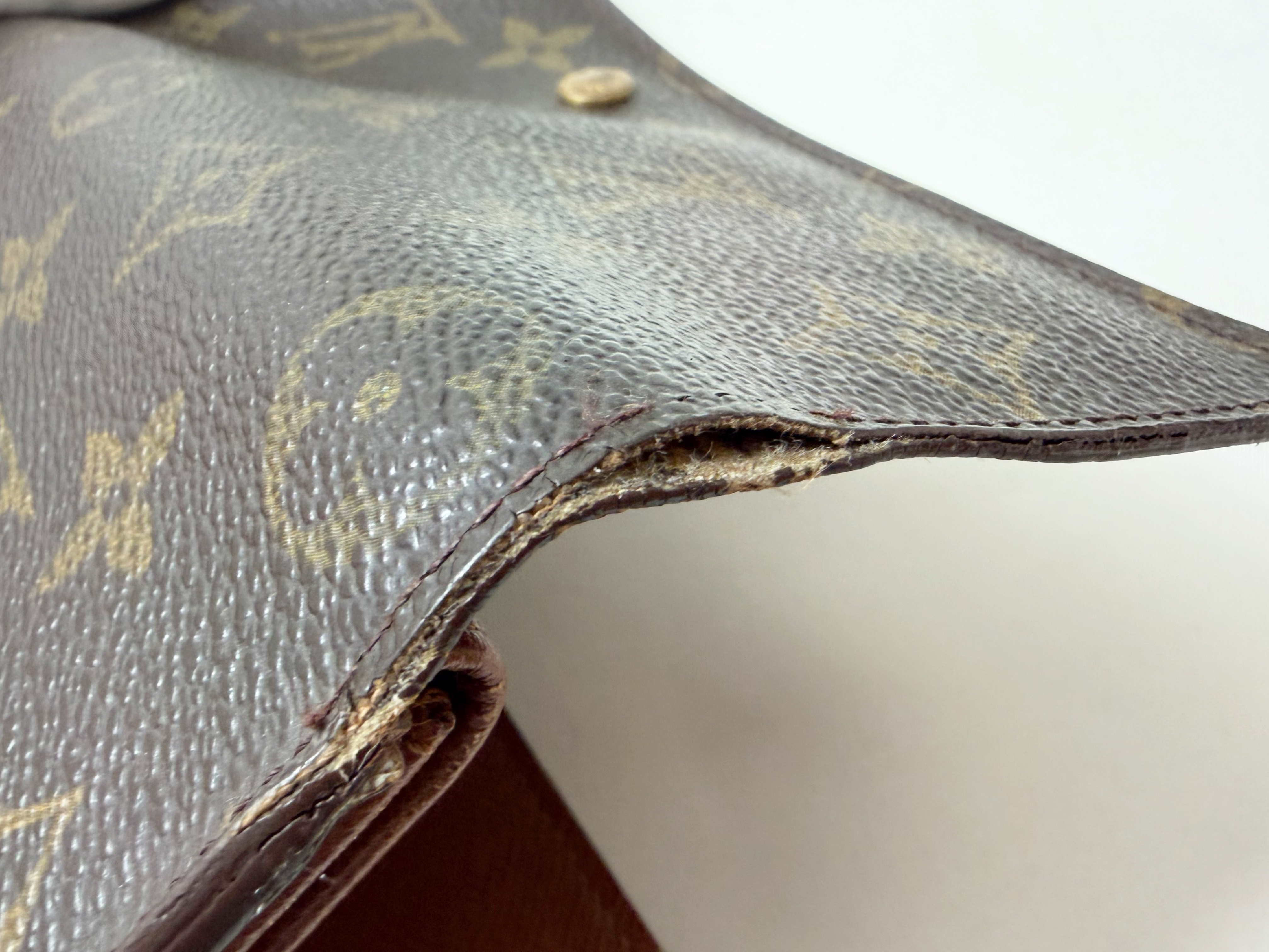 内側ポケット劣化剥がれ有 付け根縁切れ(中) 糸ほつれ有 角縁ワレ(中) 糸切れ・破れ有 内側剥げ(中) カード入れ縁切れ(小) 【シリアル