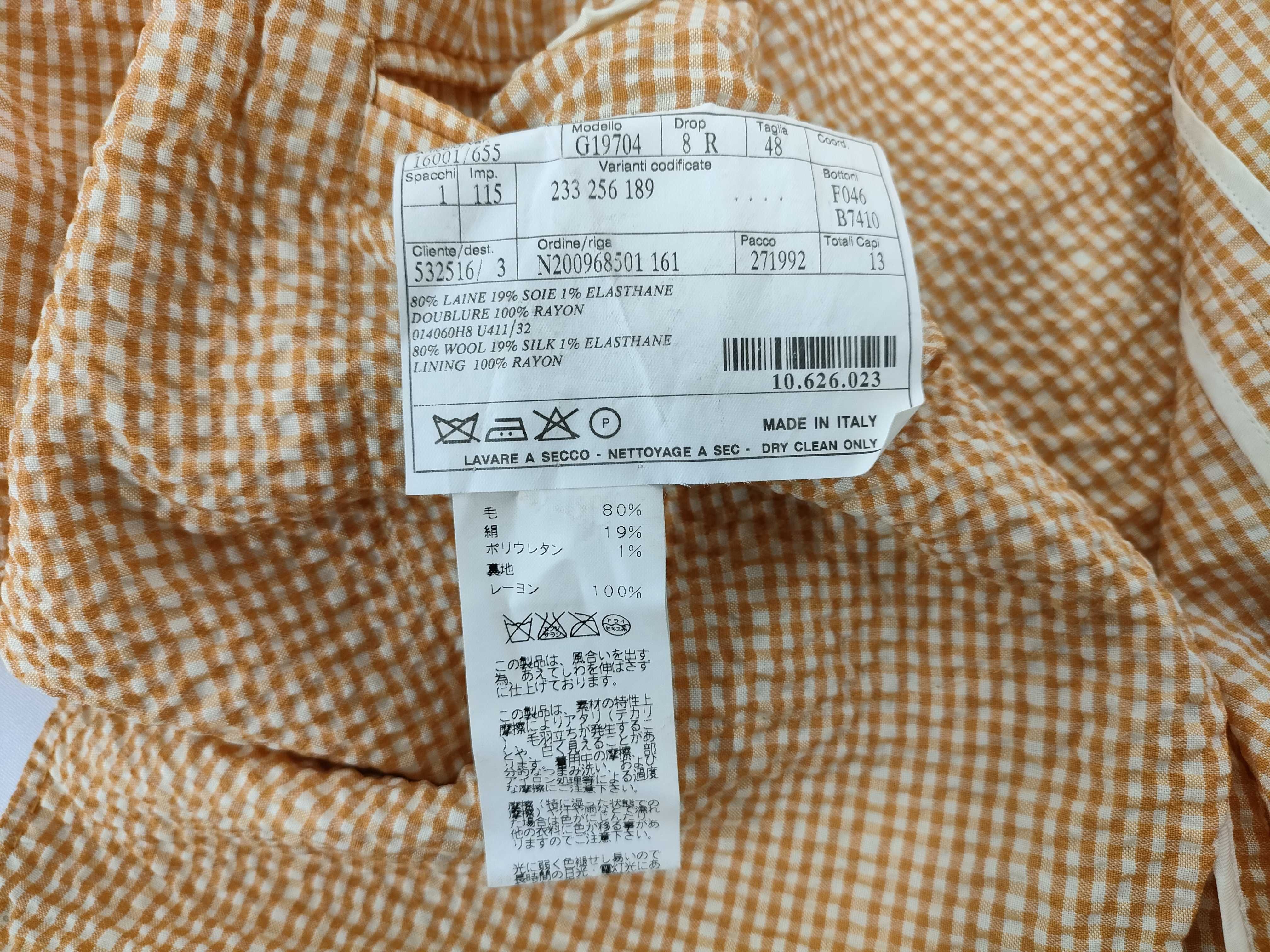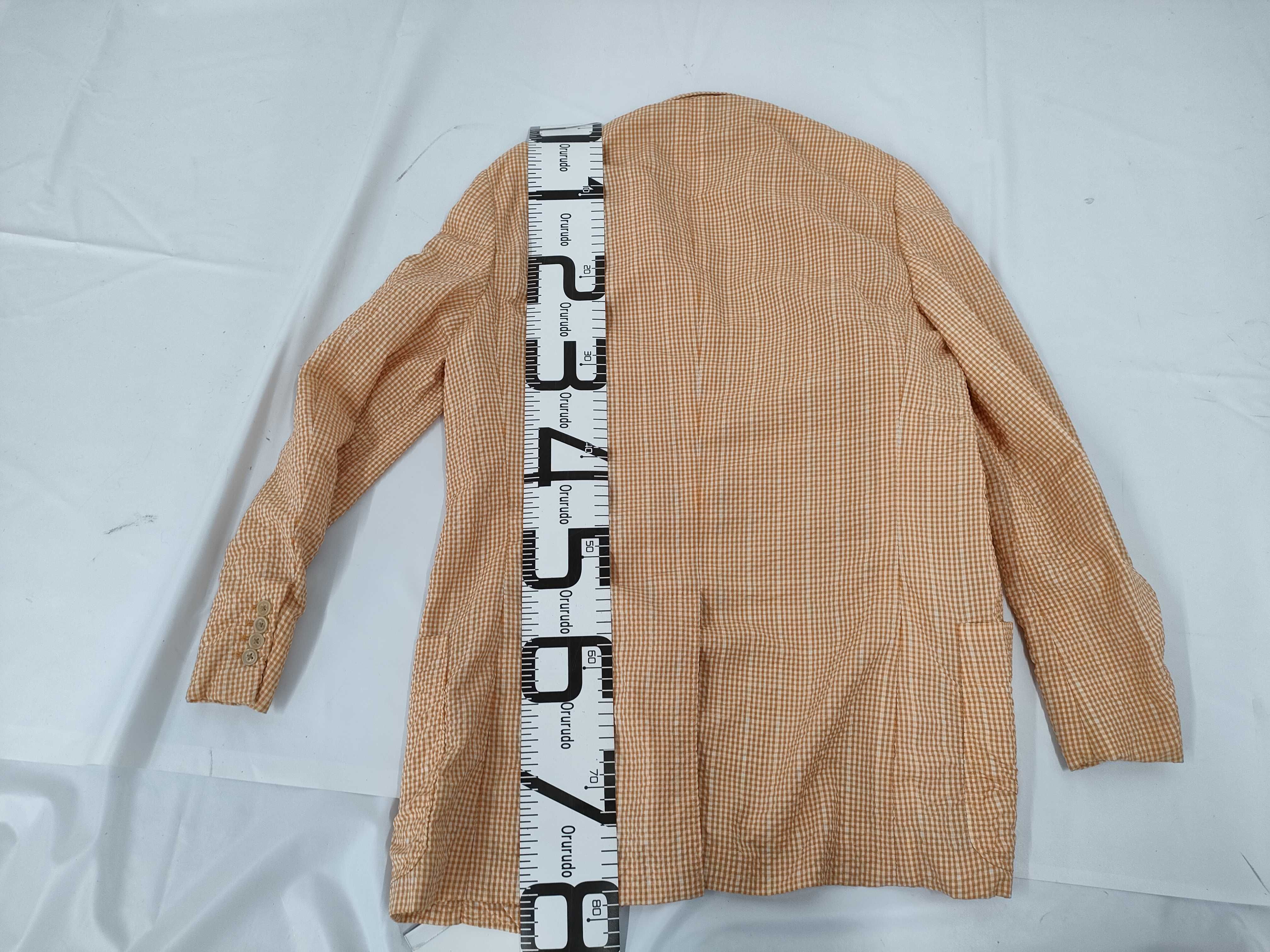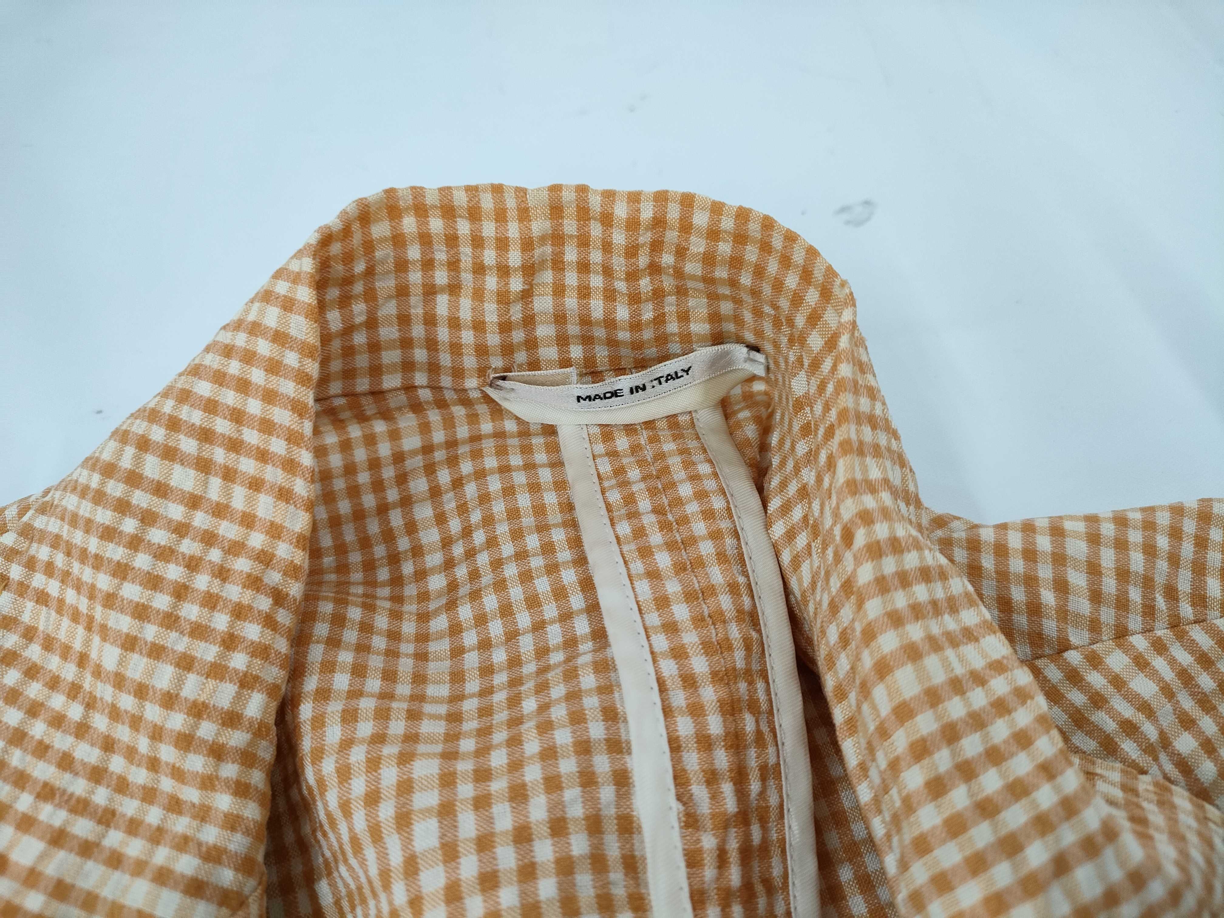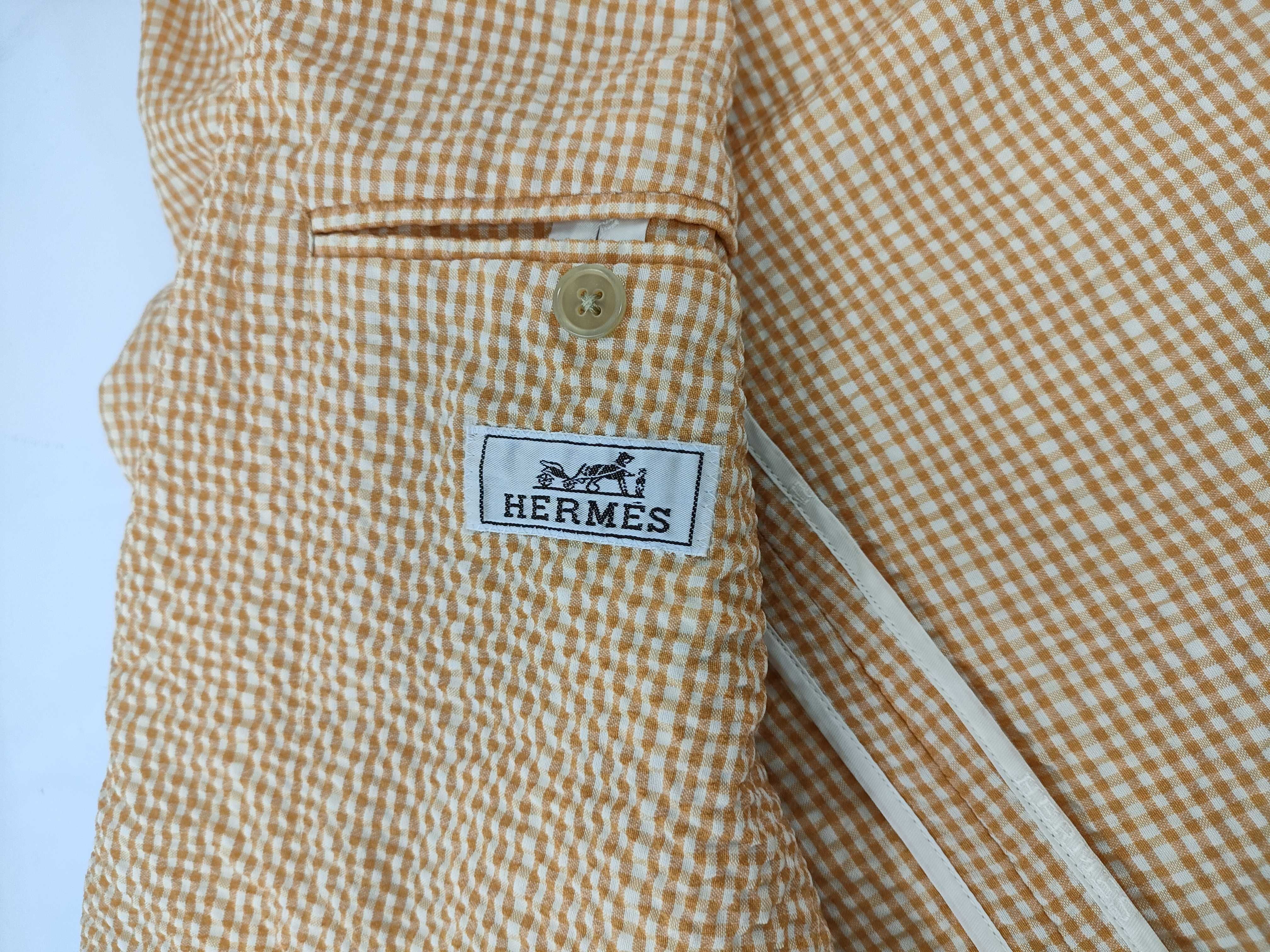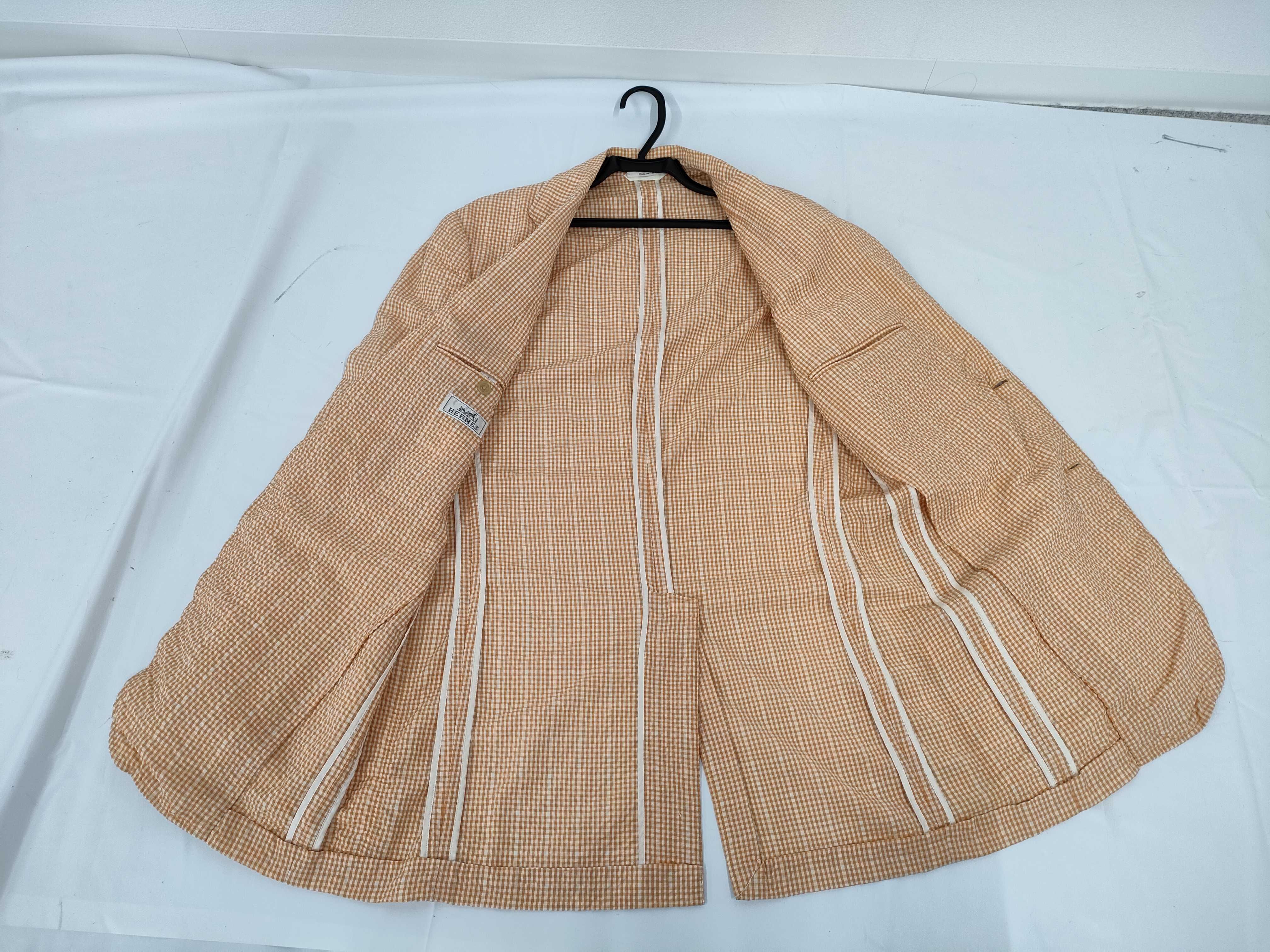 (G_0064)HERMES エルメス ジャケット 毛80% 綿19% ポリウレタン1% オレンジ/ホワイト #48 チェック ジャケット