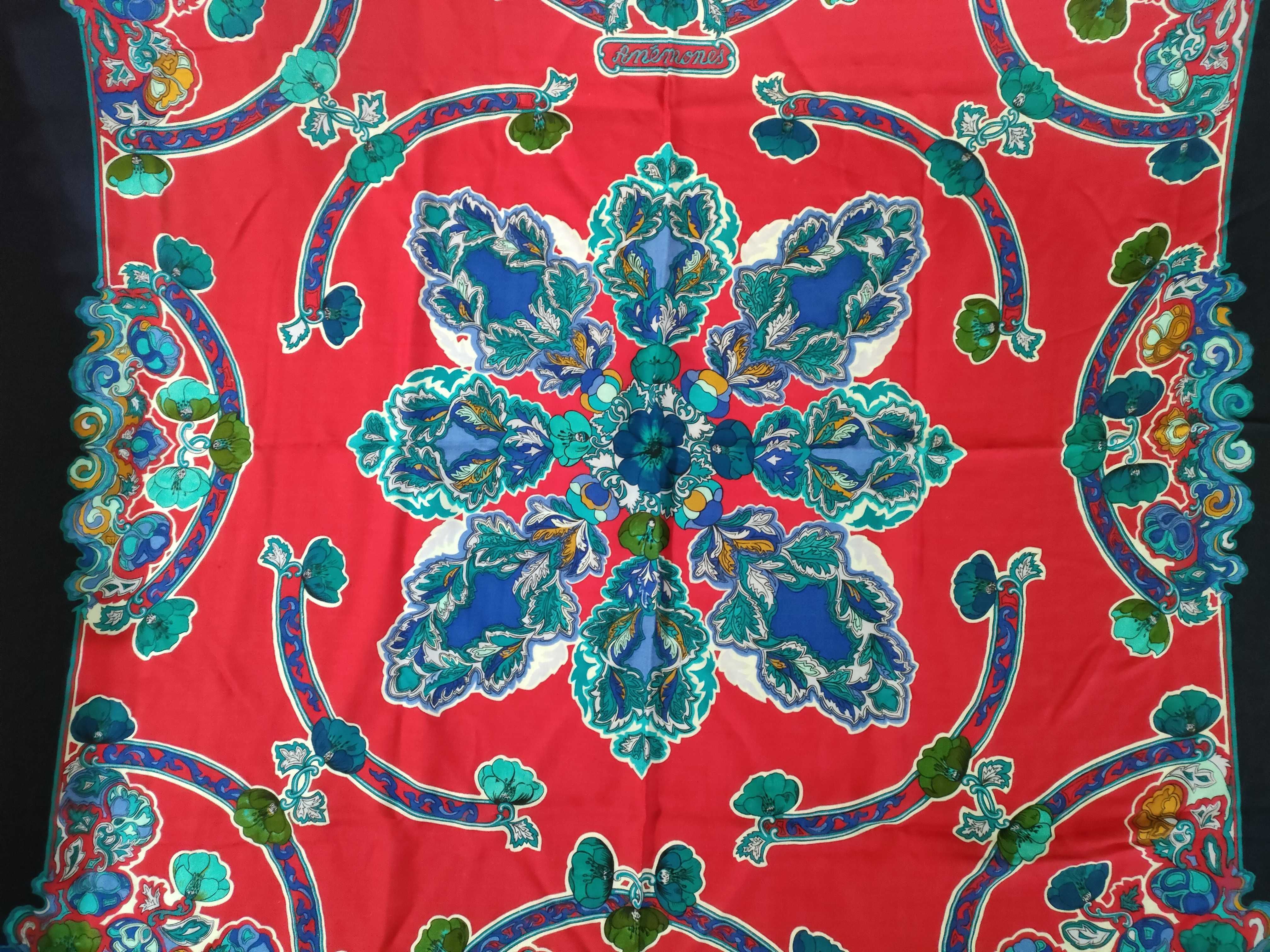 (G_0091)HERMES エルメス カレ140 Anemones アネモネ カシシル スカーフ