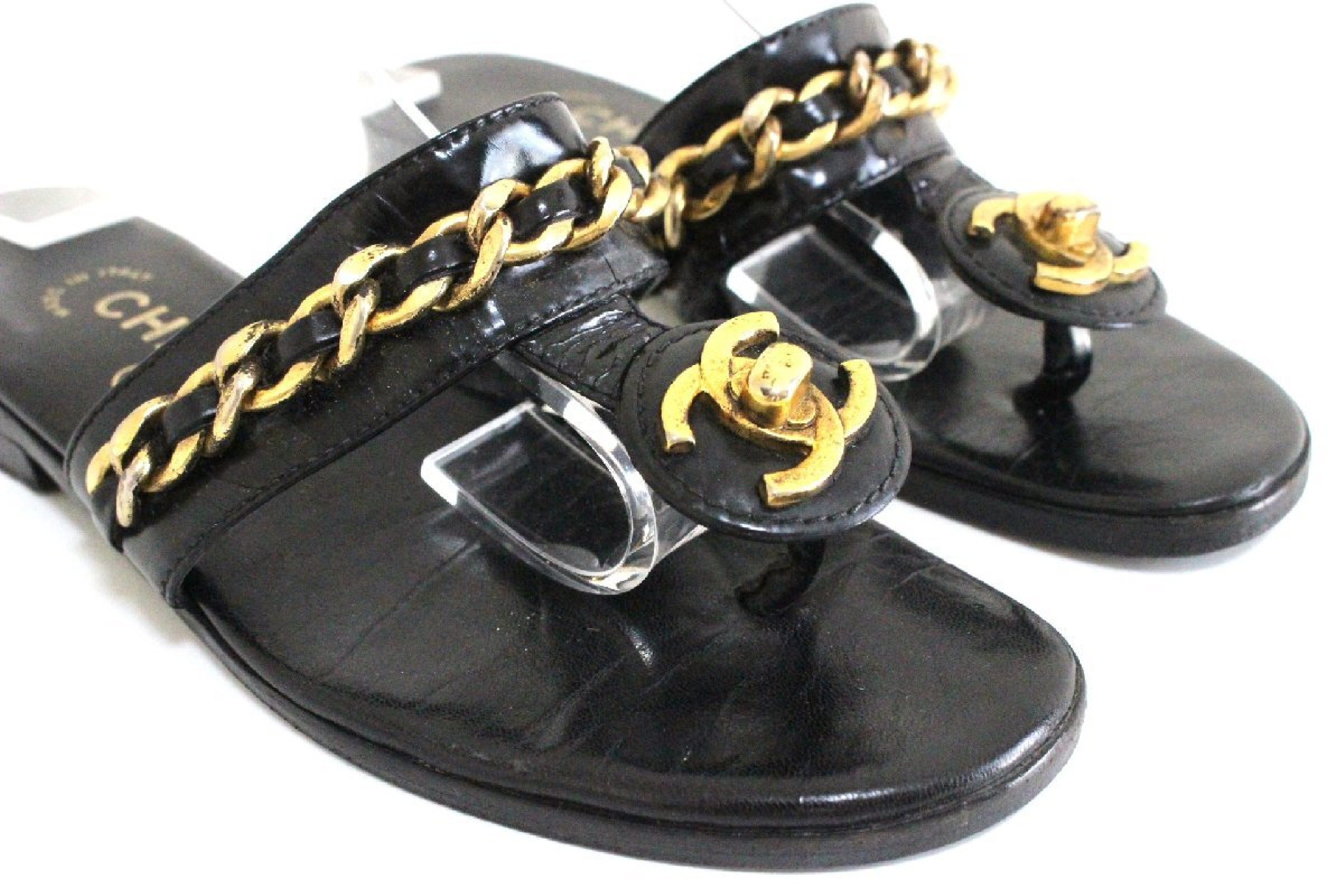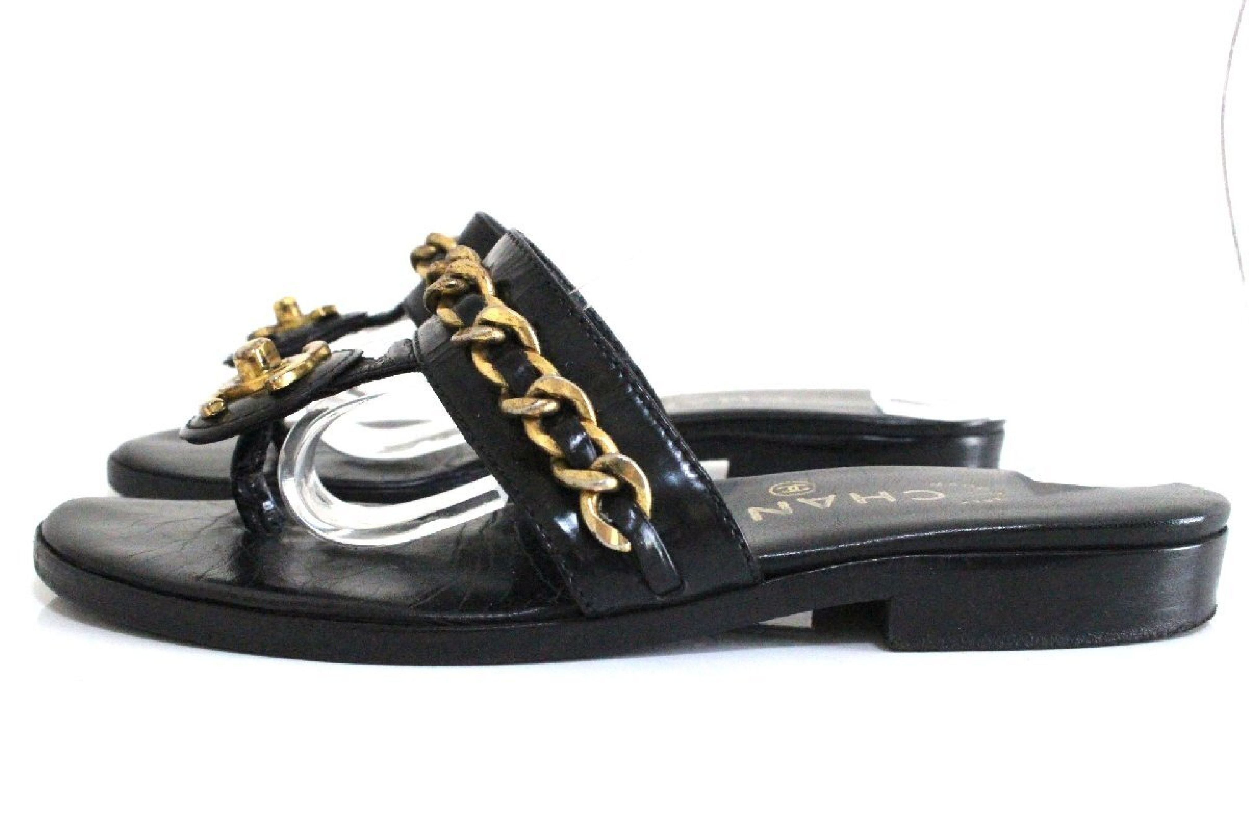 (G_0182)CHANEL シャネル ココマーク チェーン ターンロック サンダル 35 1/2 サンダル