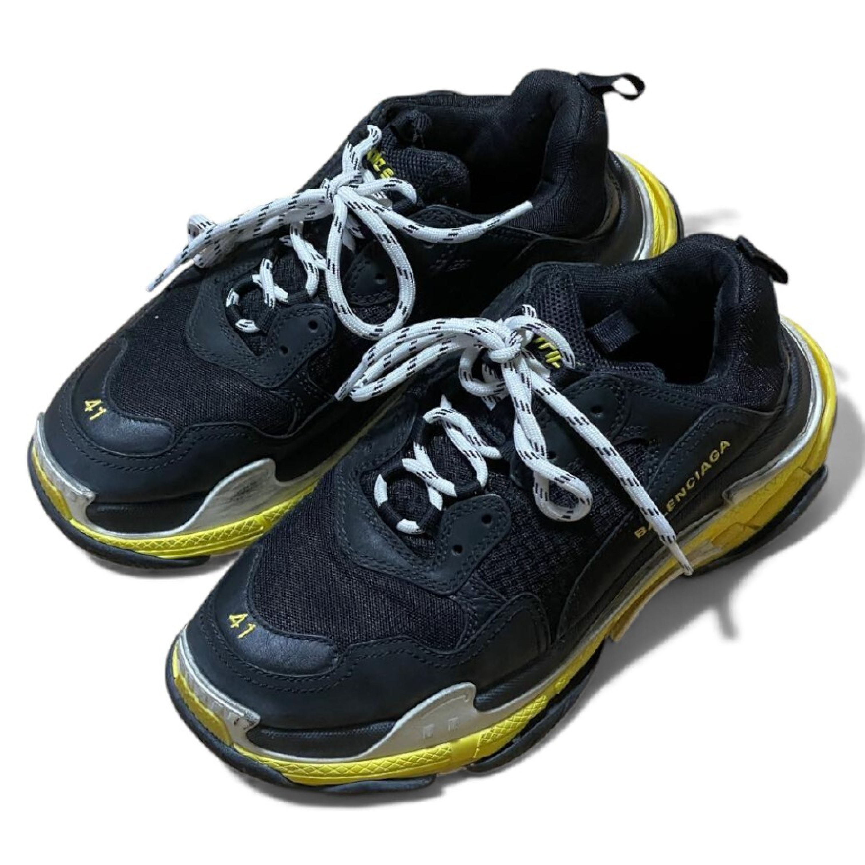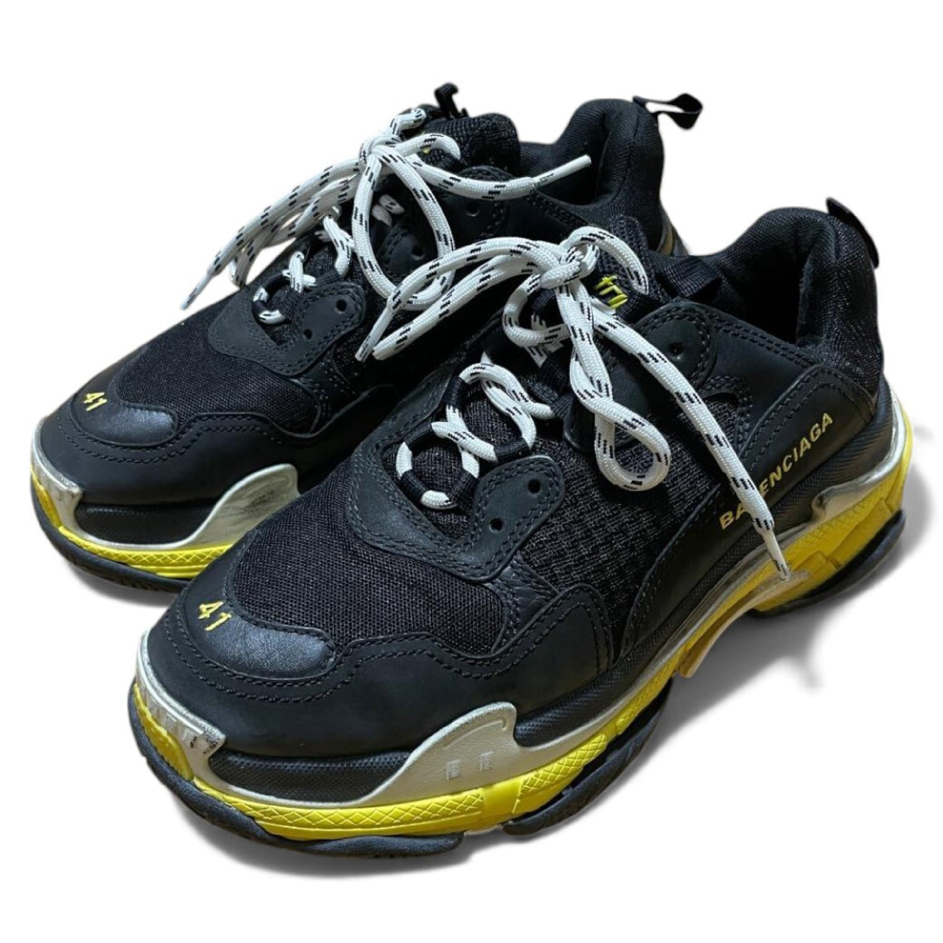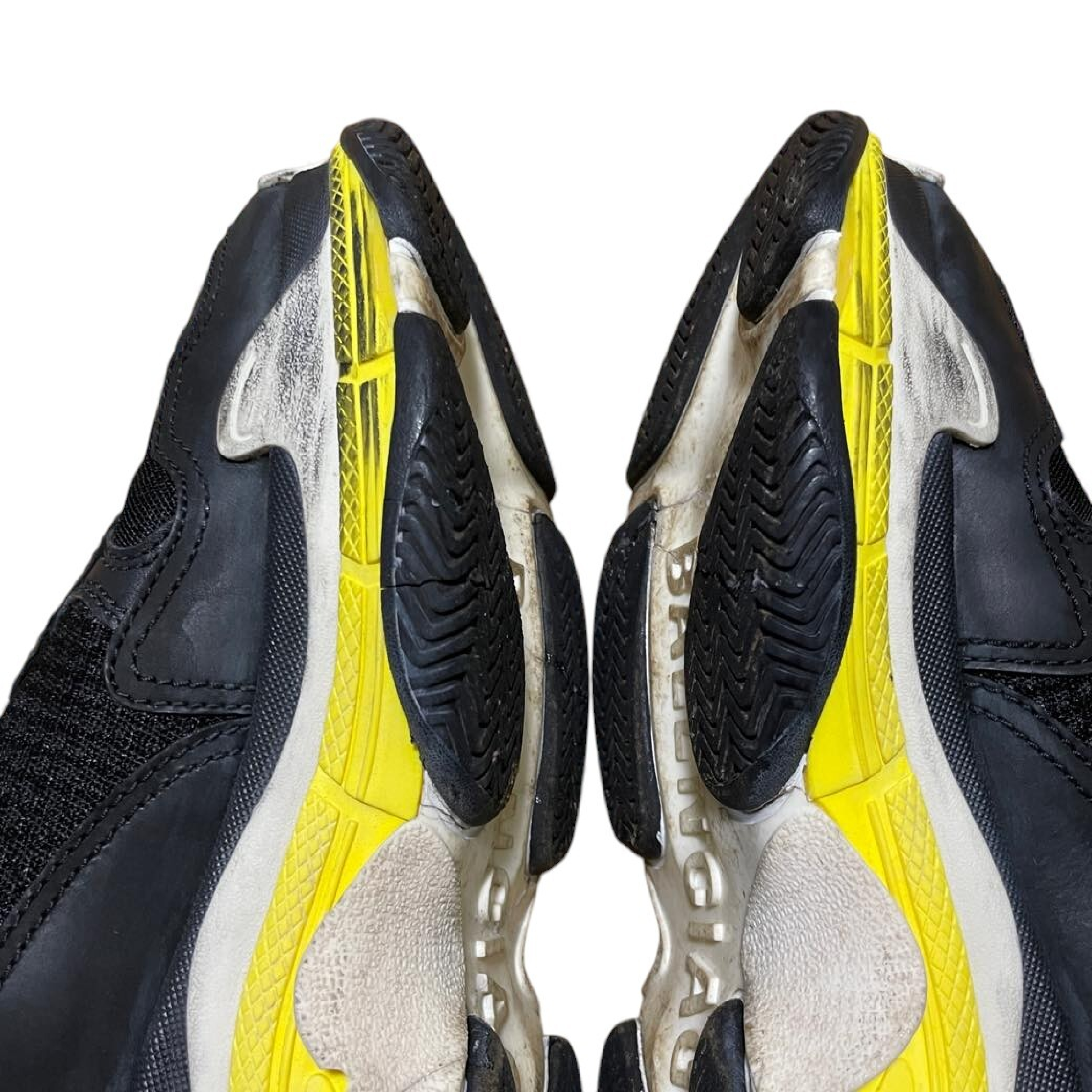 (G_0376)BALENCIAGA 19SS TRIPLE S TRAINERS トリプルエス レースアップローカットスニーカー ブラックxイエロー 27 スニーカー