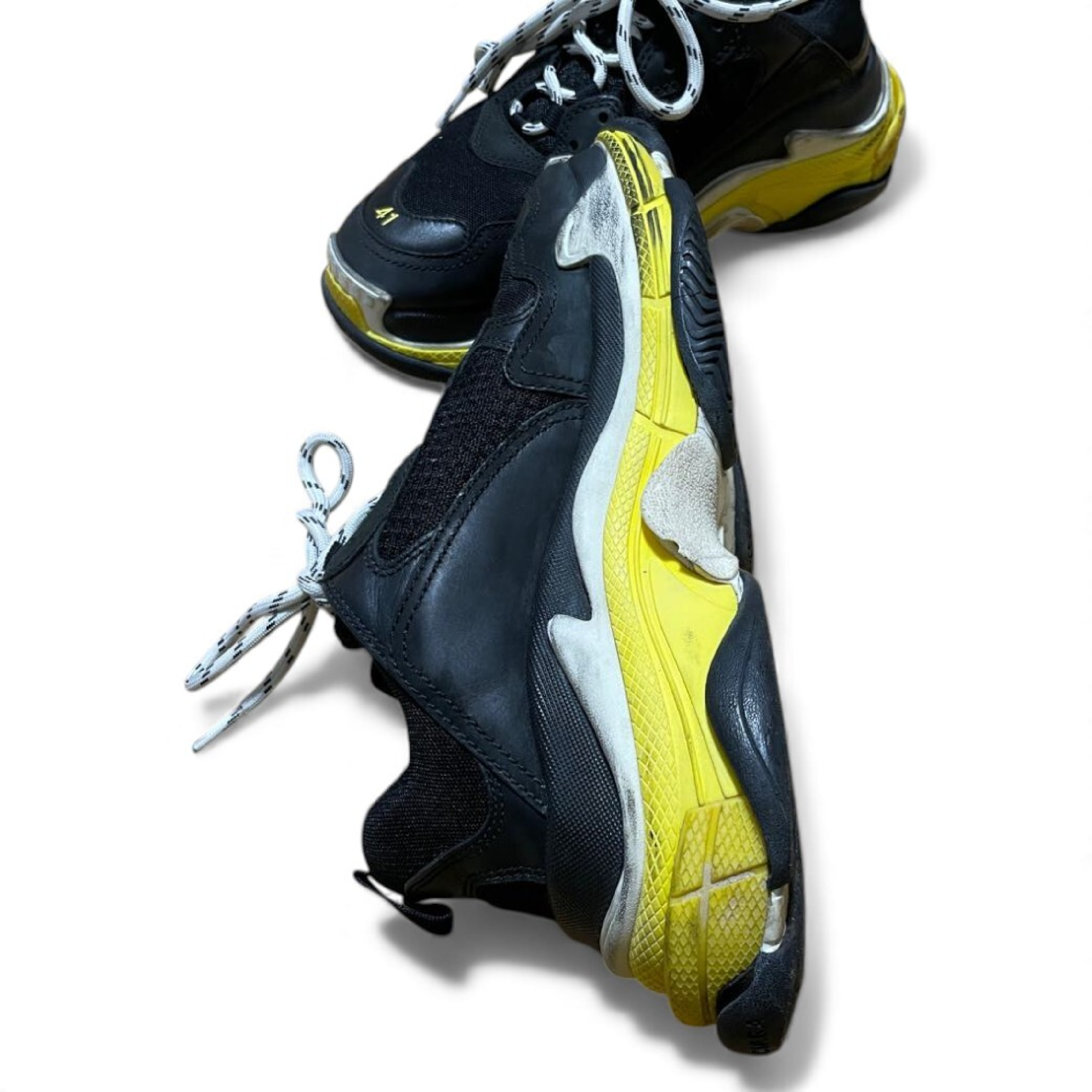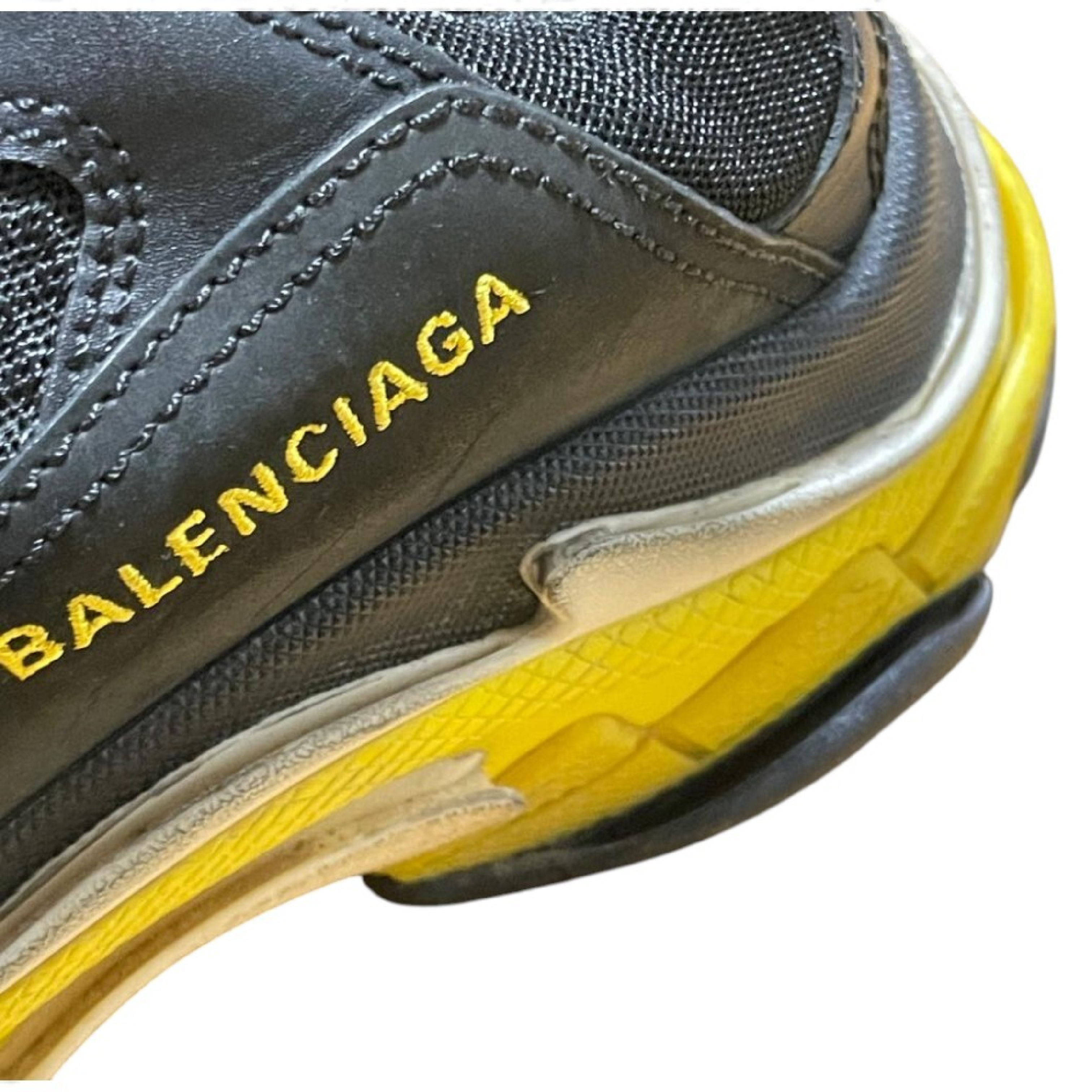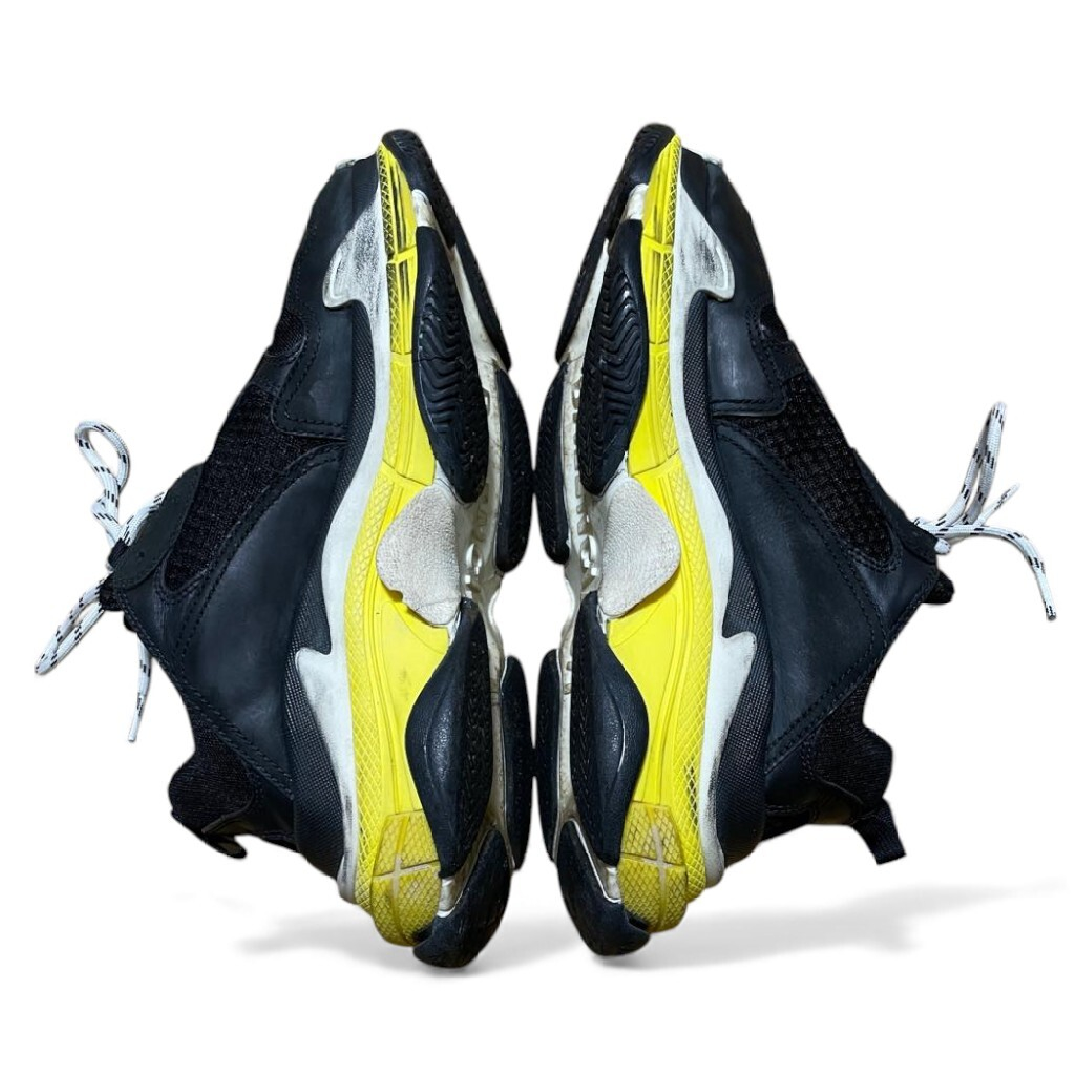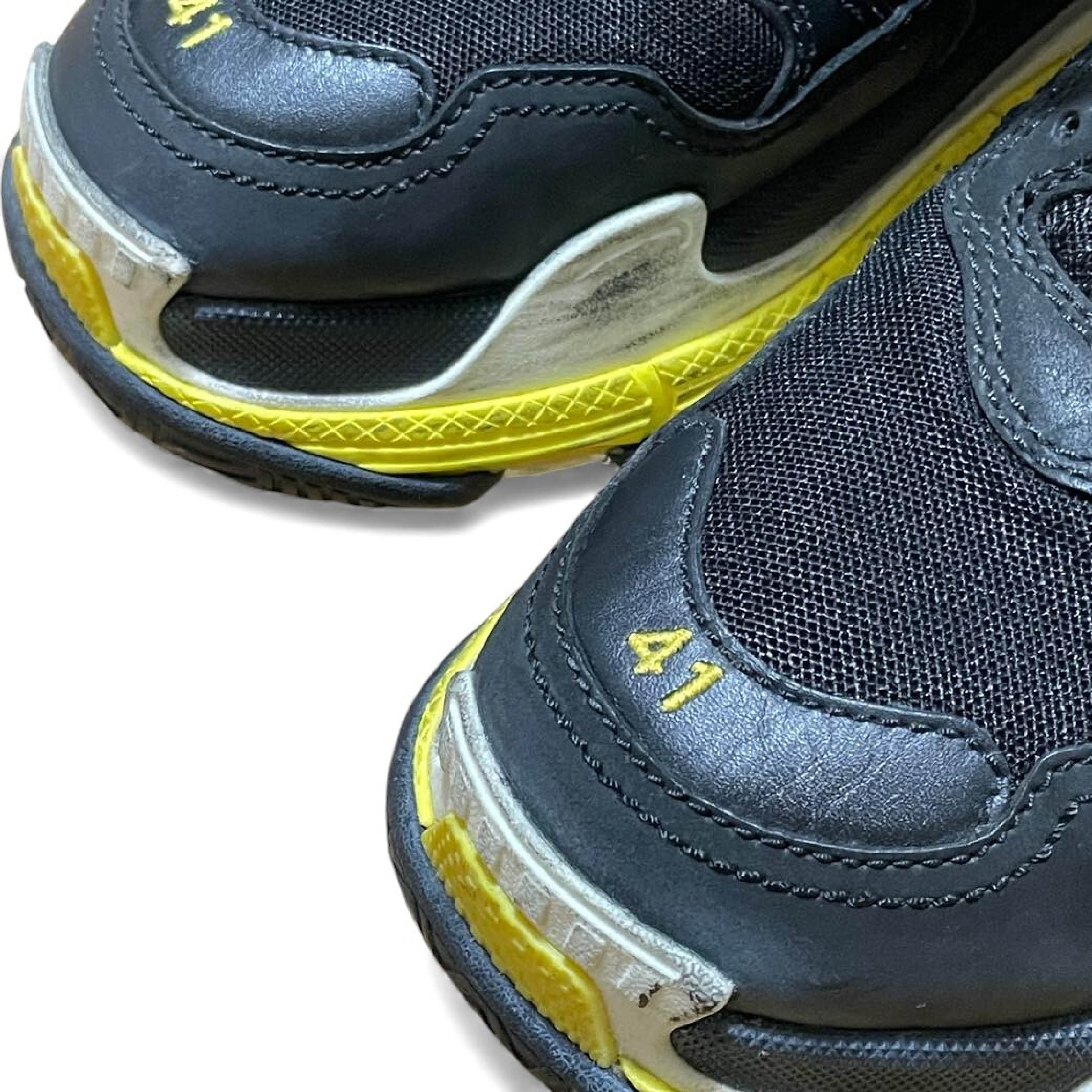 (G_0376)BALENCIAGA 19SS TRIPLE S TRAINERS トリプルエス レースアップローカットスニーカー ブラックxイエロー 27 スニーカー