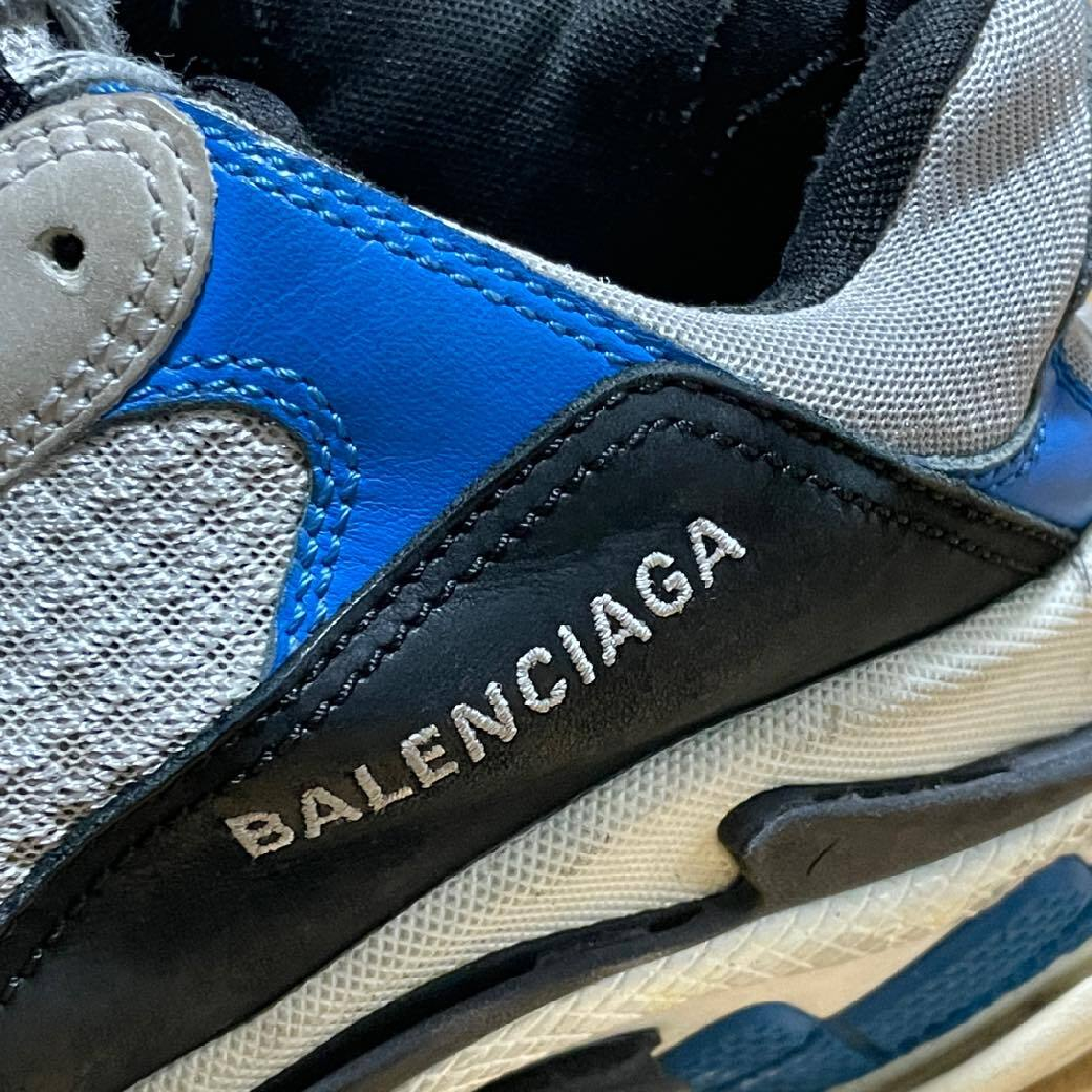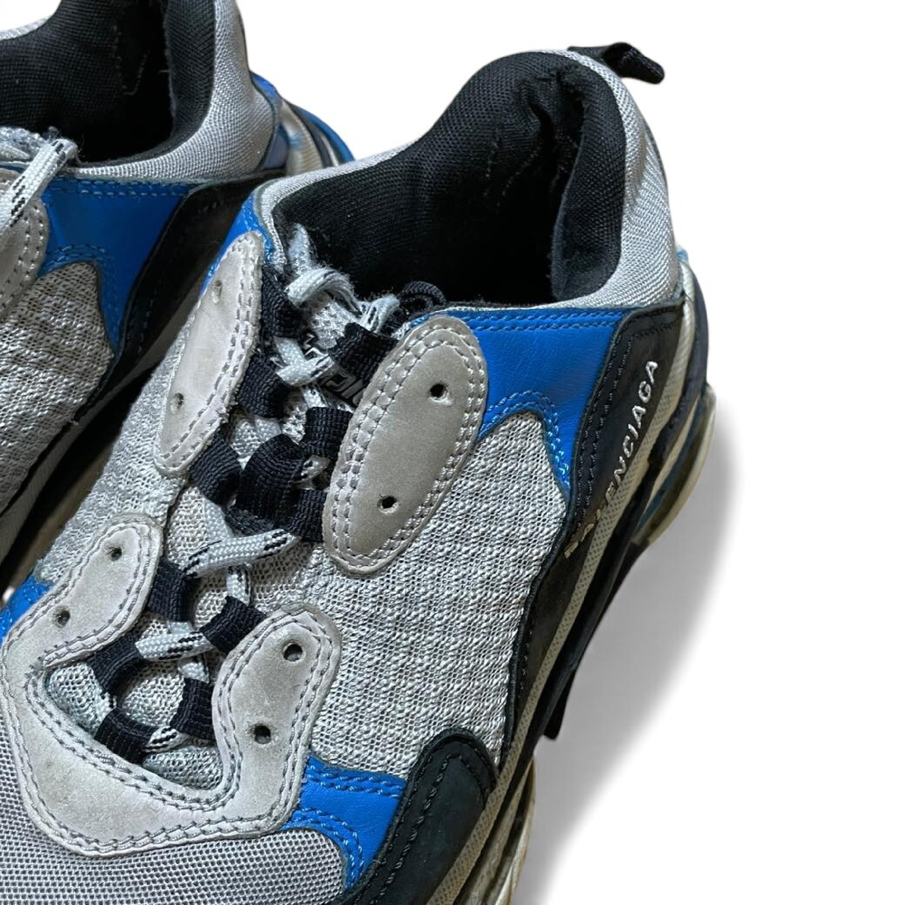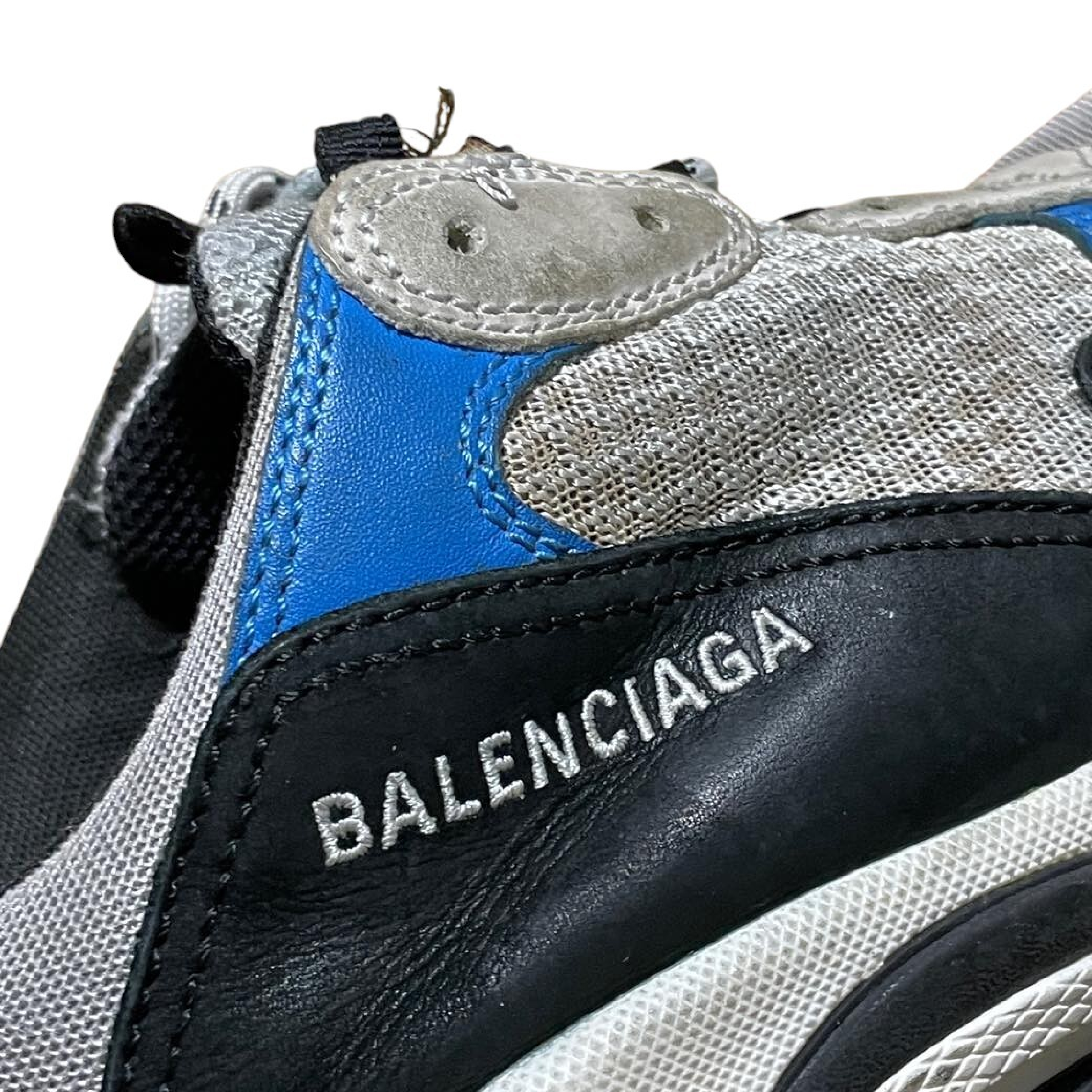 (G_0378)BALENCIAGA 19AW TRIPLE S TRAINERS トリプルエス レースアップローカットスニーカー ブルー 27.5 スニーカー