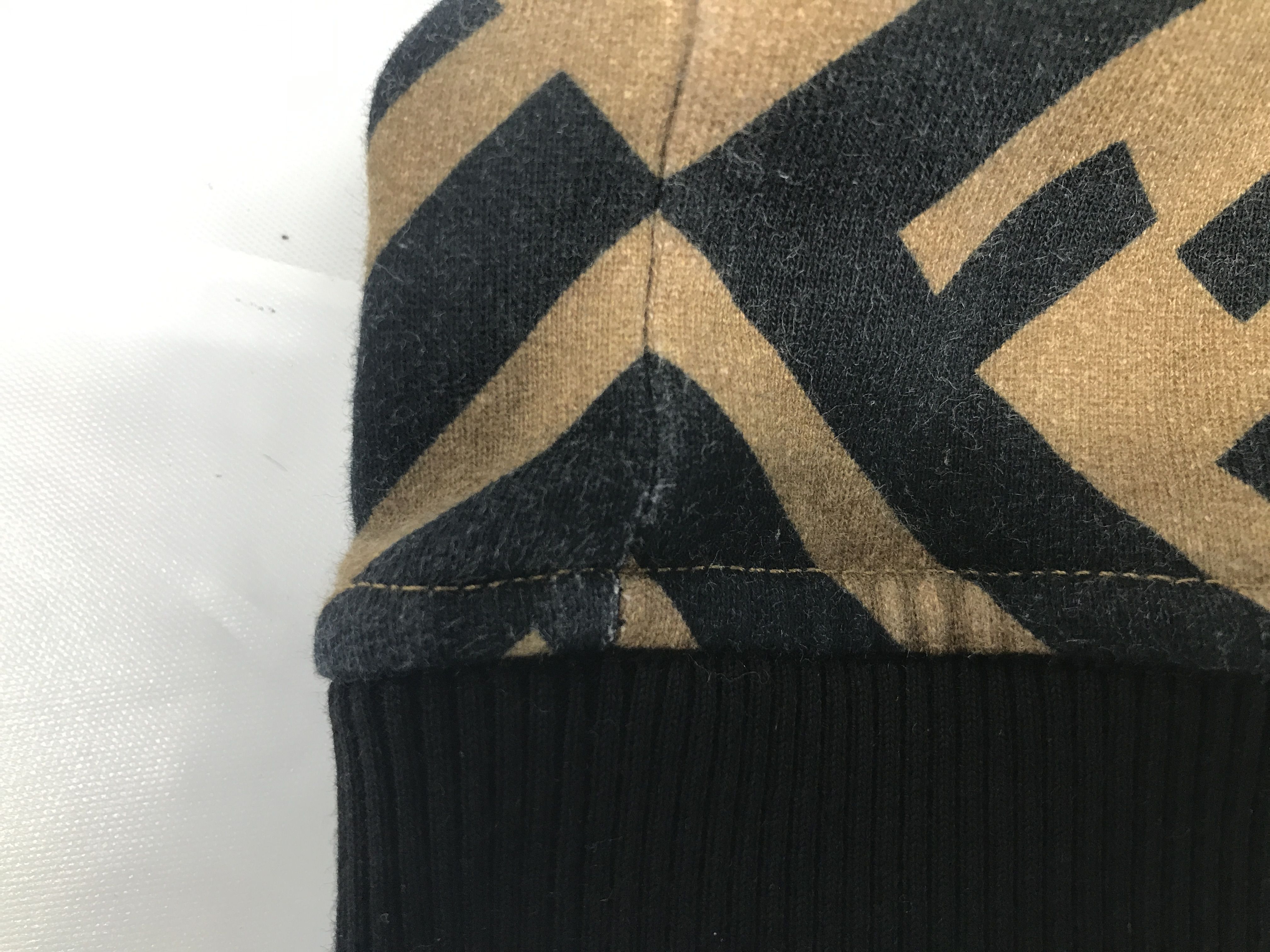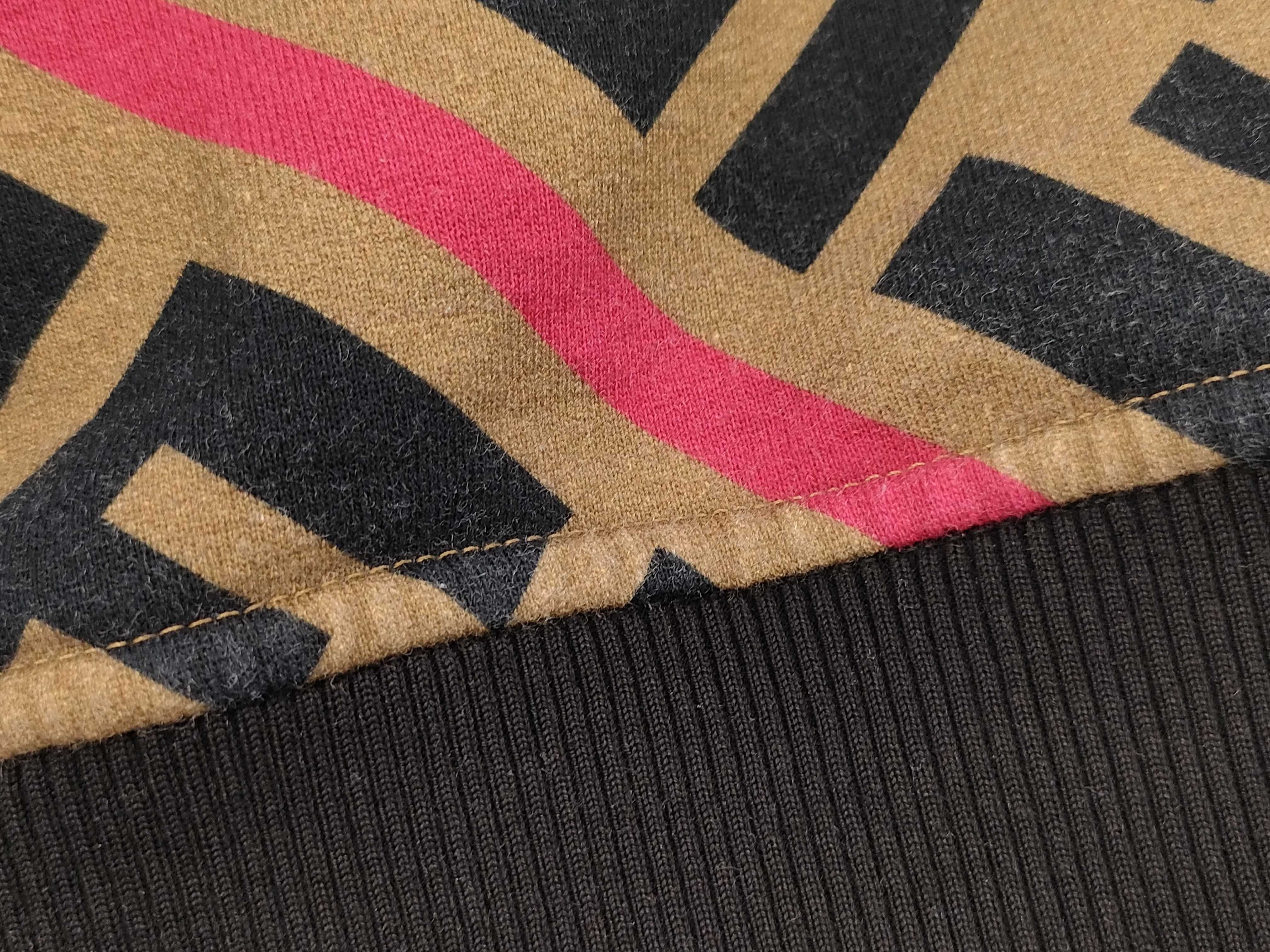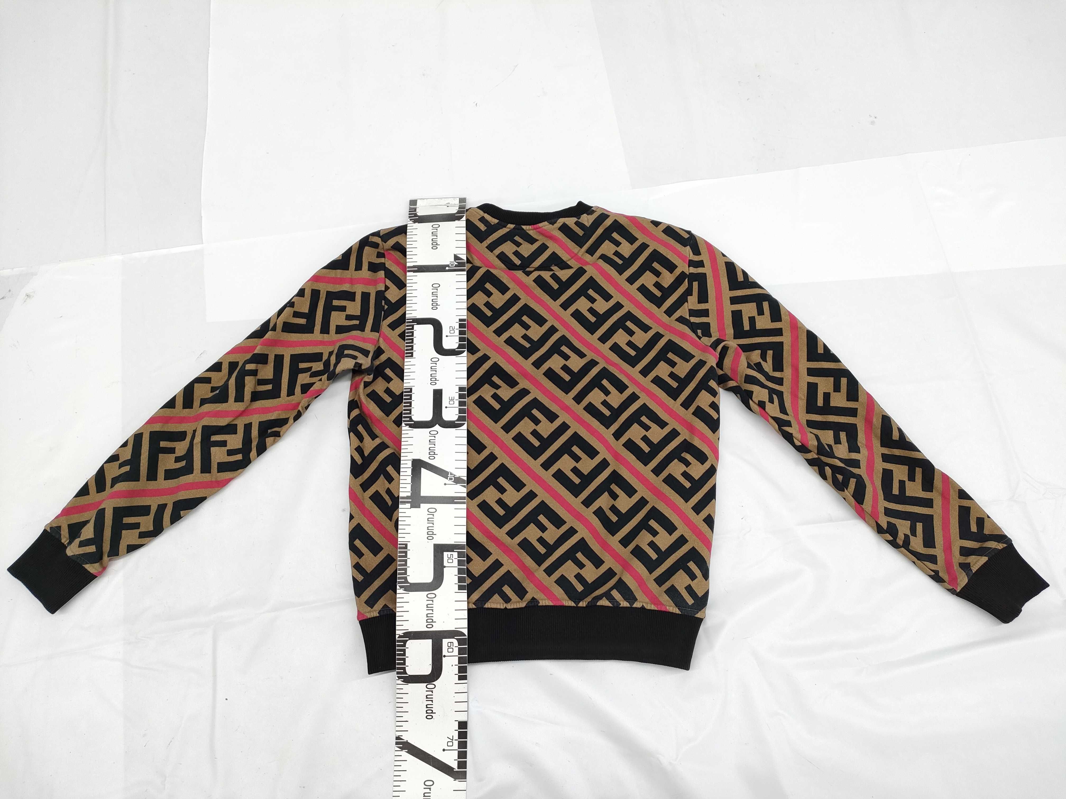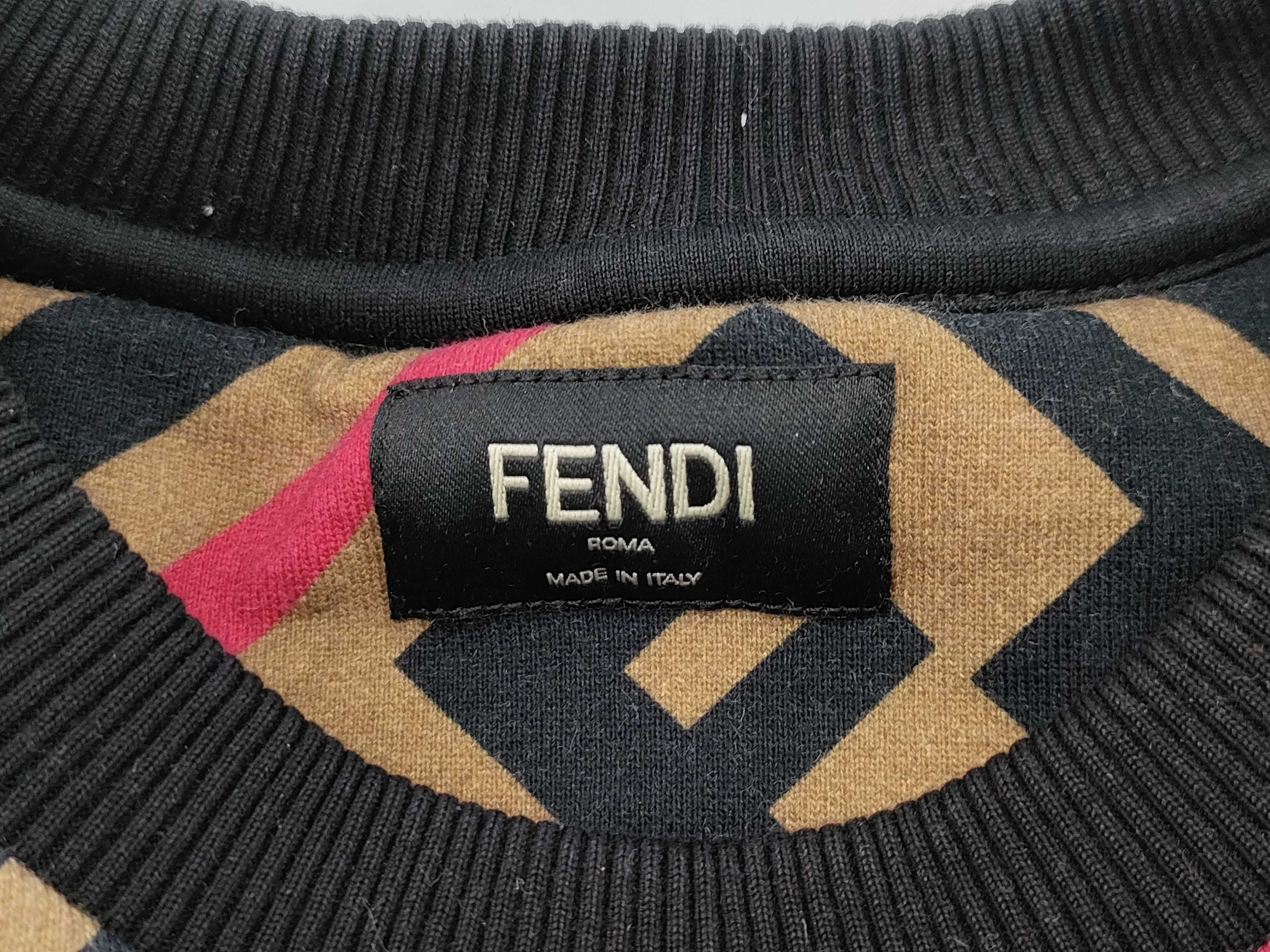 (G_0403)FENDI フェンディ スウェットシャツ FY0649A74B ロゴ総柄 ベージュ×ネイビー×ピンク コットン サイズS トップス