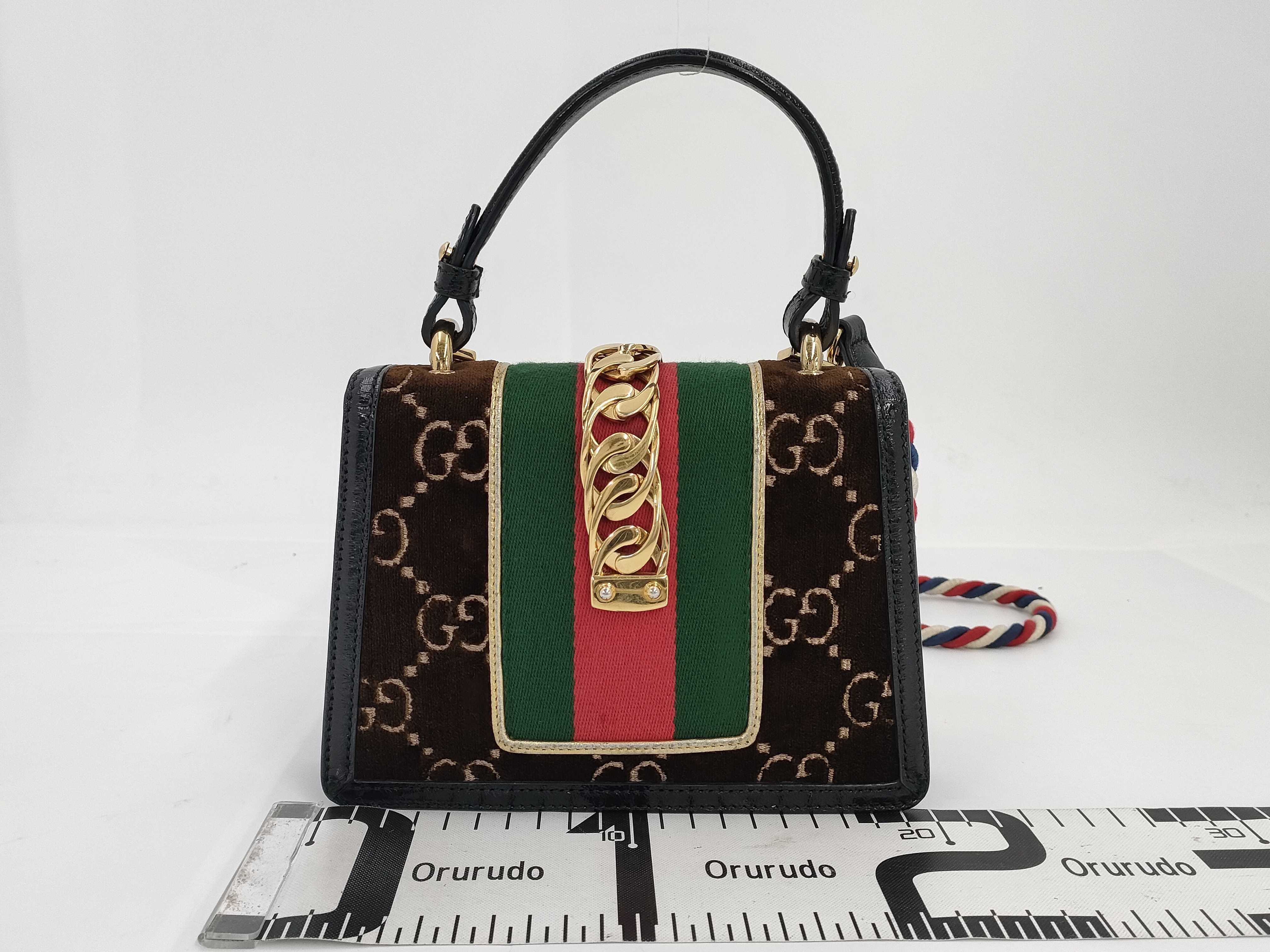 (E_0082)GUCCI グッチシルヴィ ベロア 2wayショルダーバッグ ハンドバッグ