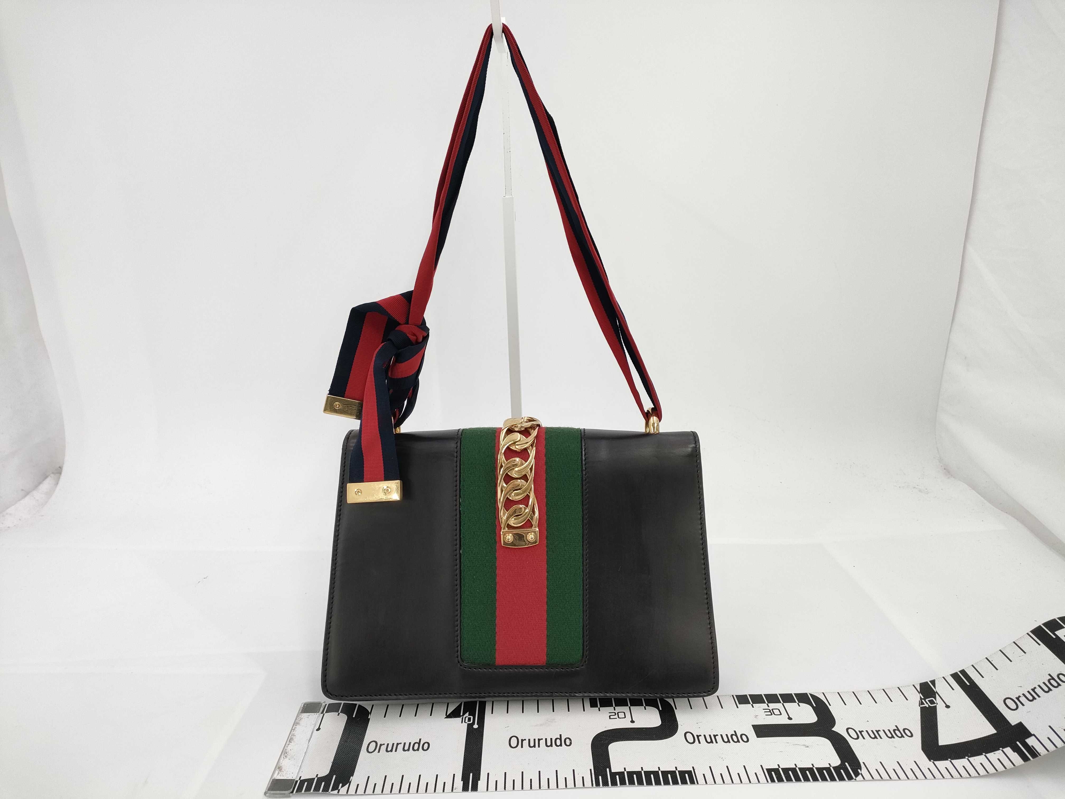 (E_0092)GUCCI グッチ シルヴィ ショルダーバッグ レザー ブラック 421882 ショルダーバッグ
