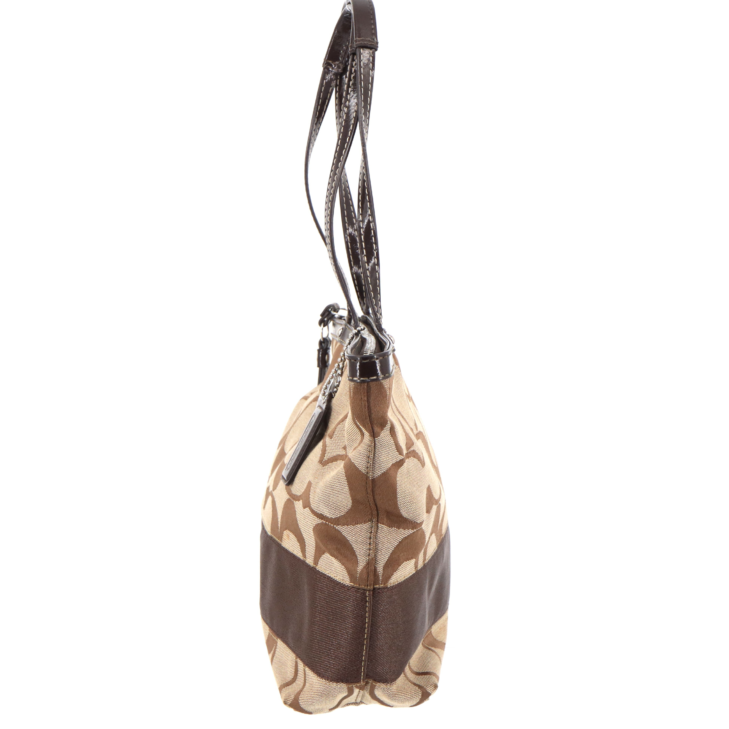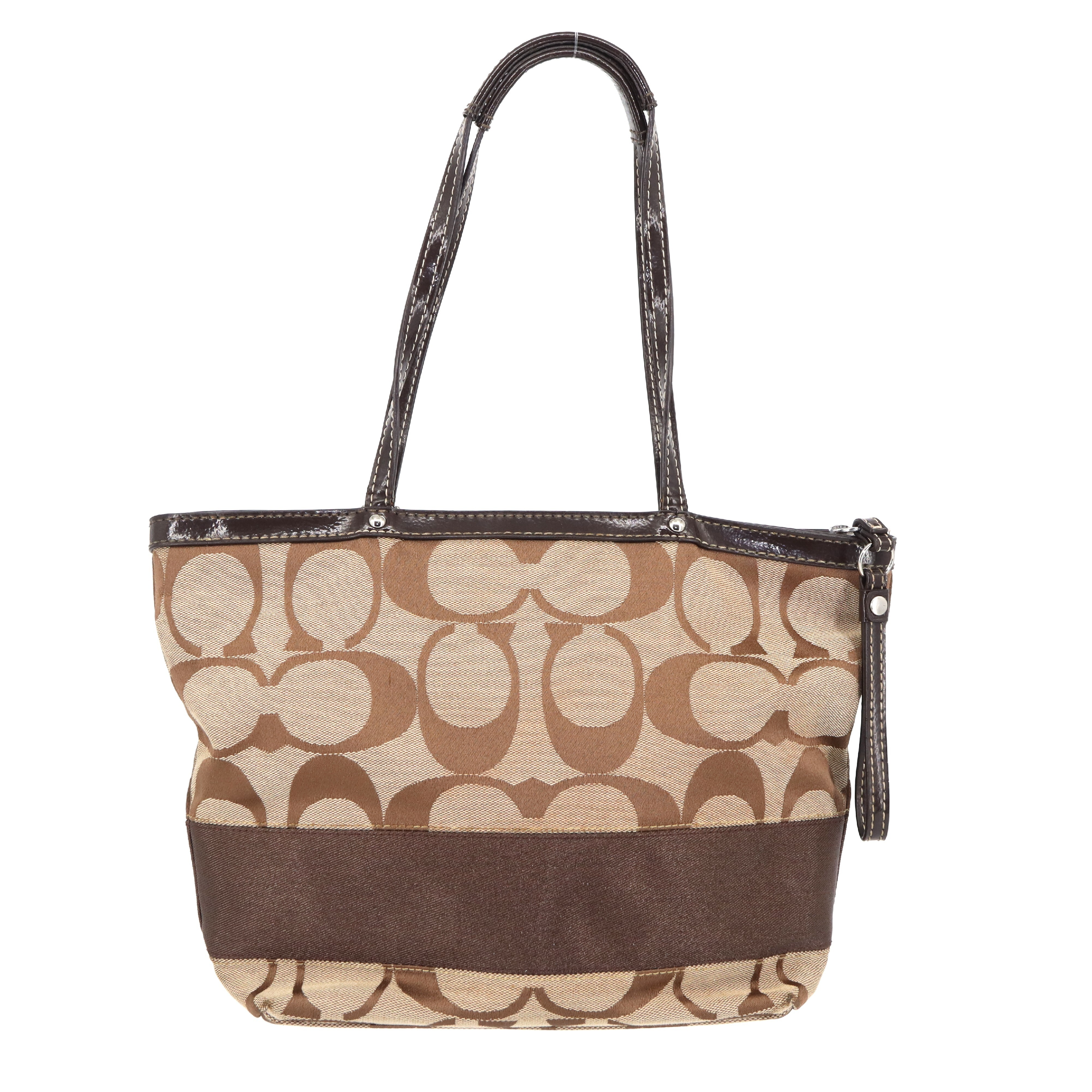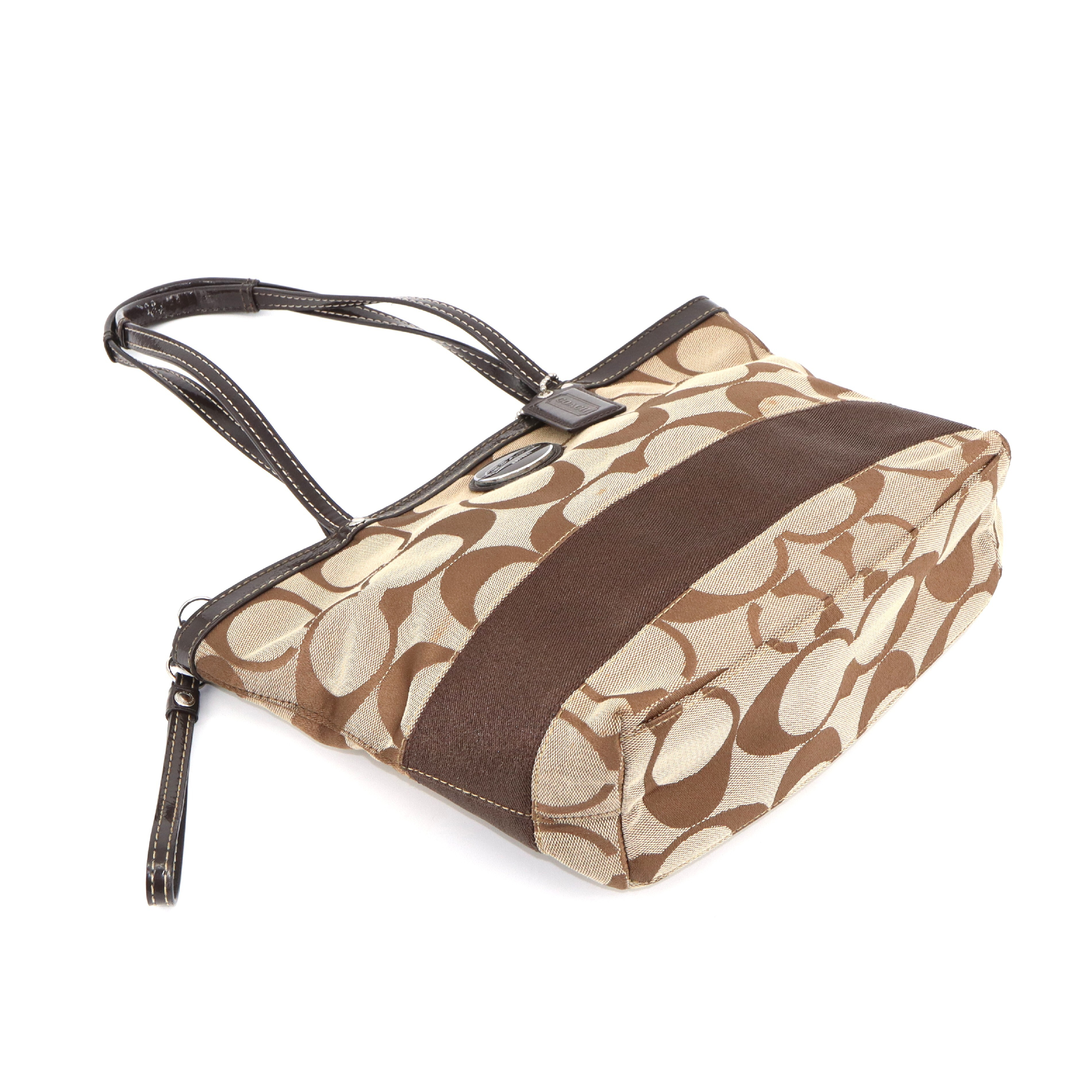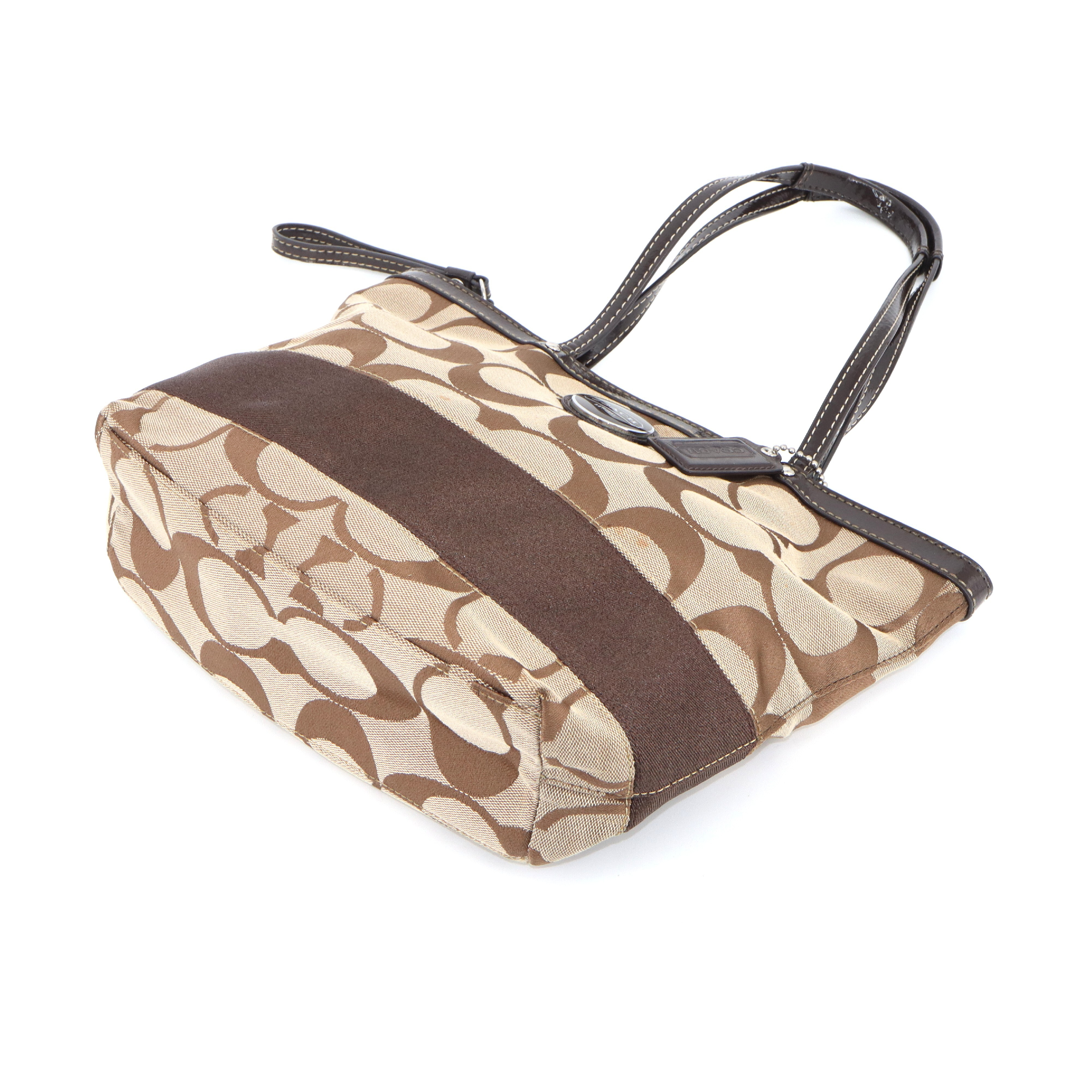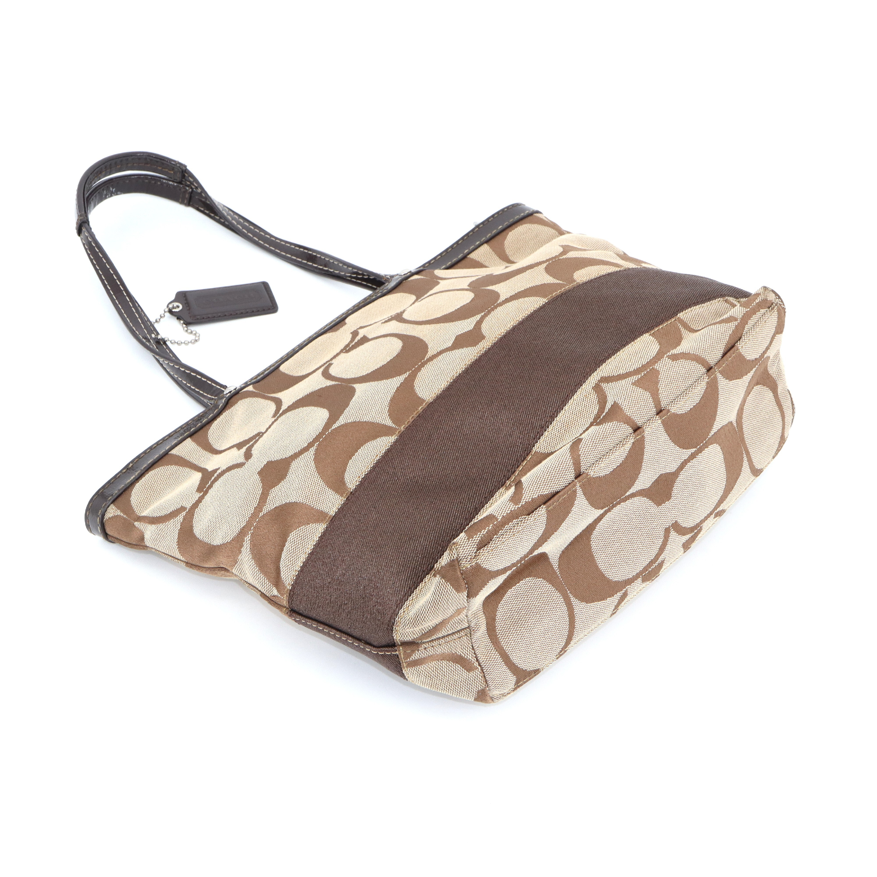 (E_0120)COACH コーチ COACH シグネチャー ロゴチャーム付 セミショルダー 肩掛けトートバッグ トートバッグ