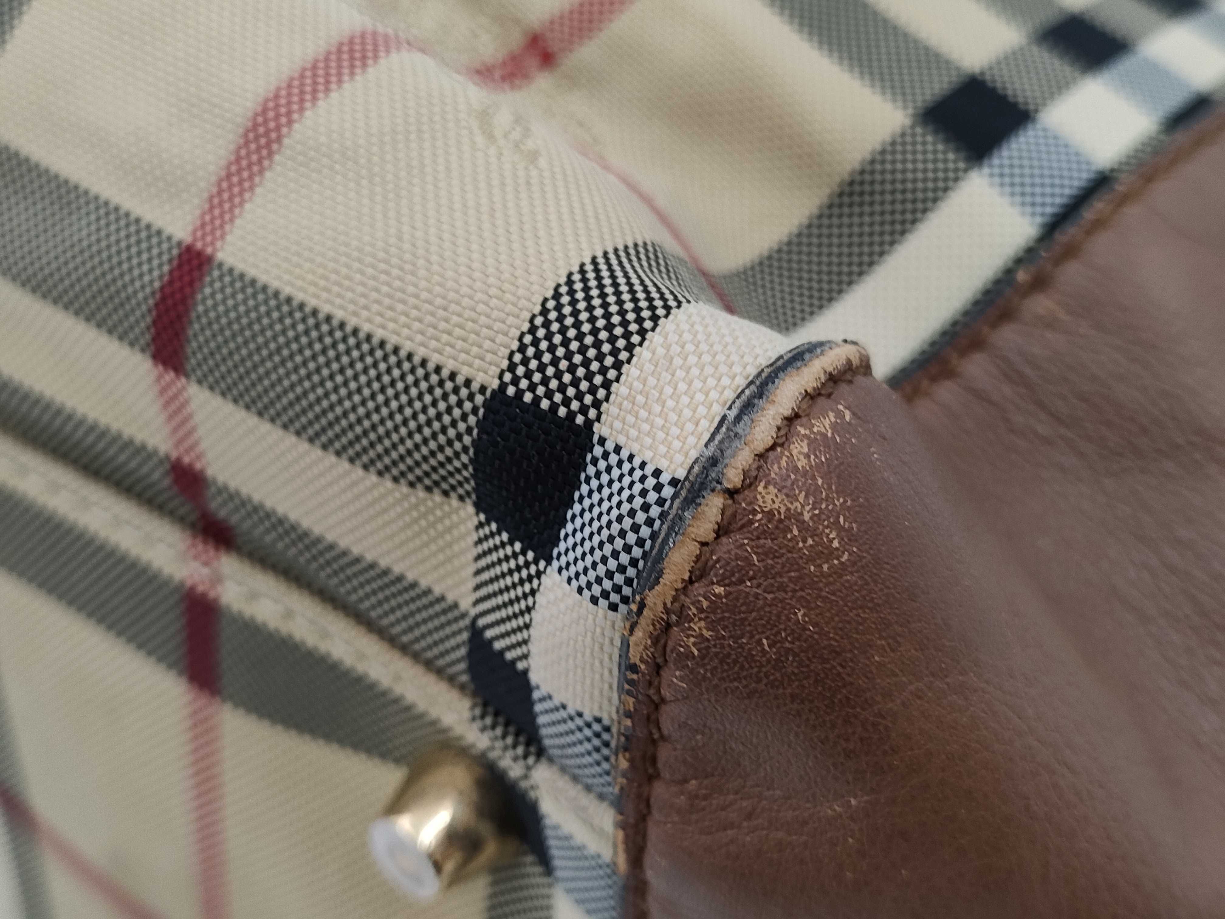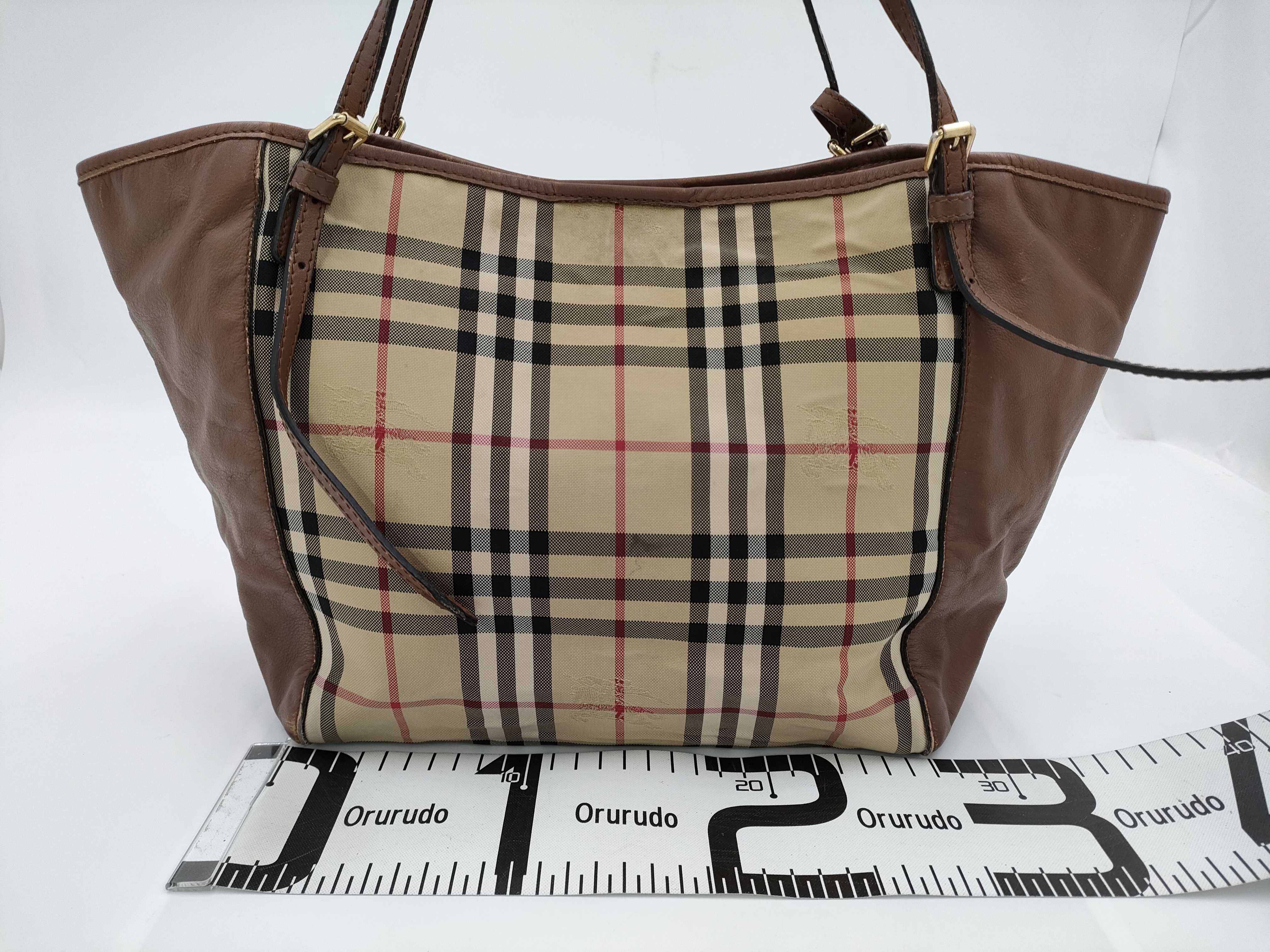(E_0242)BURBERRY バーバリー ナイロン レザー トートバッグ