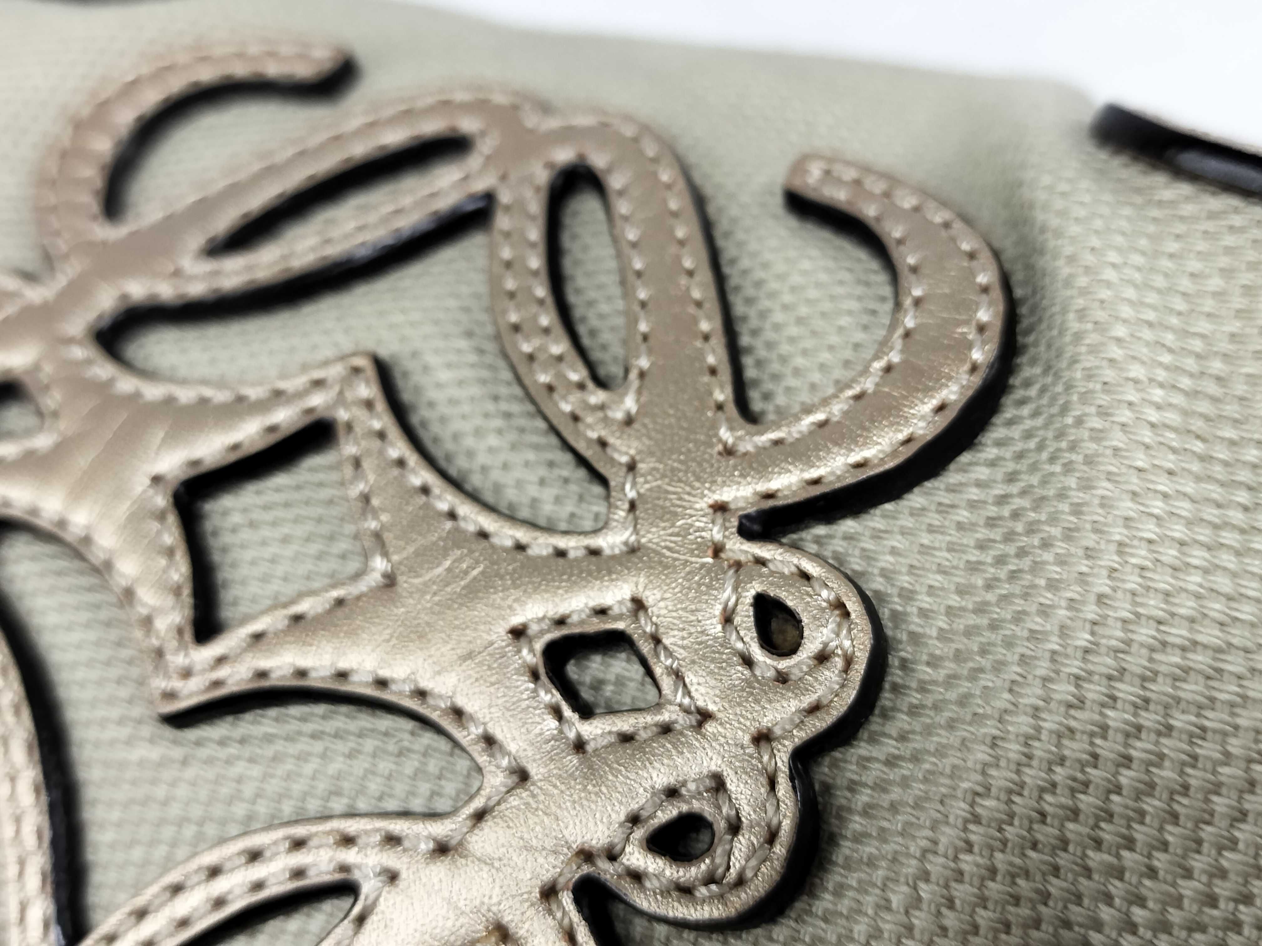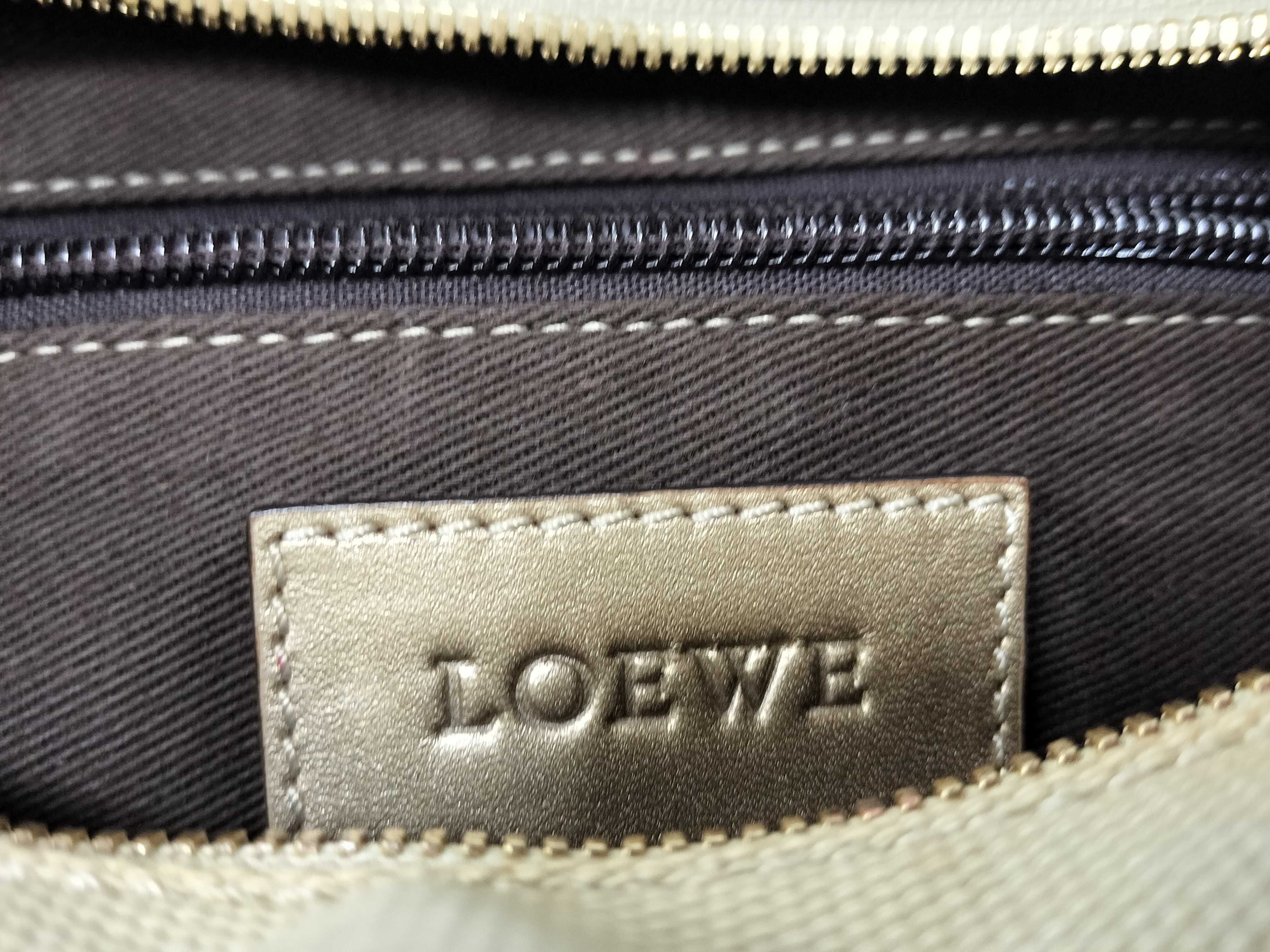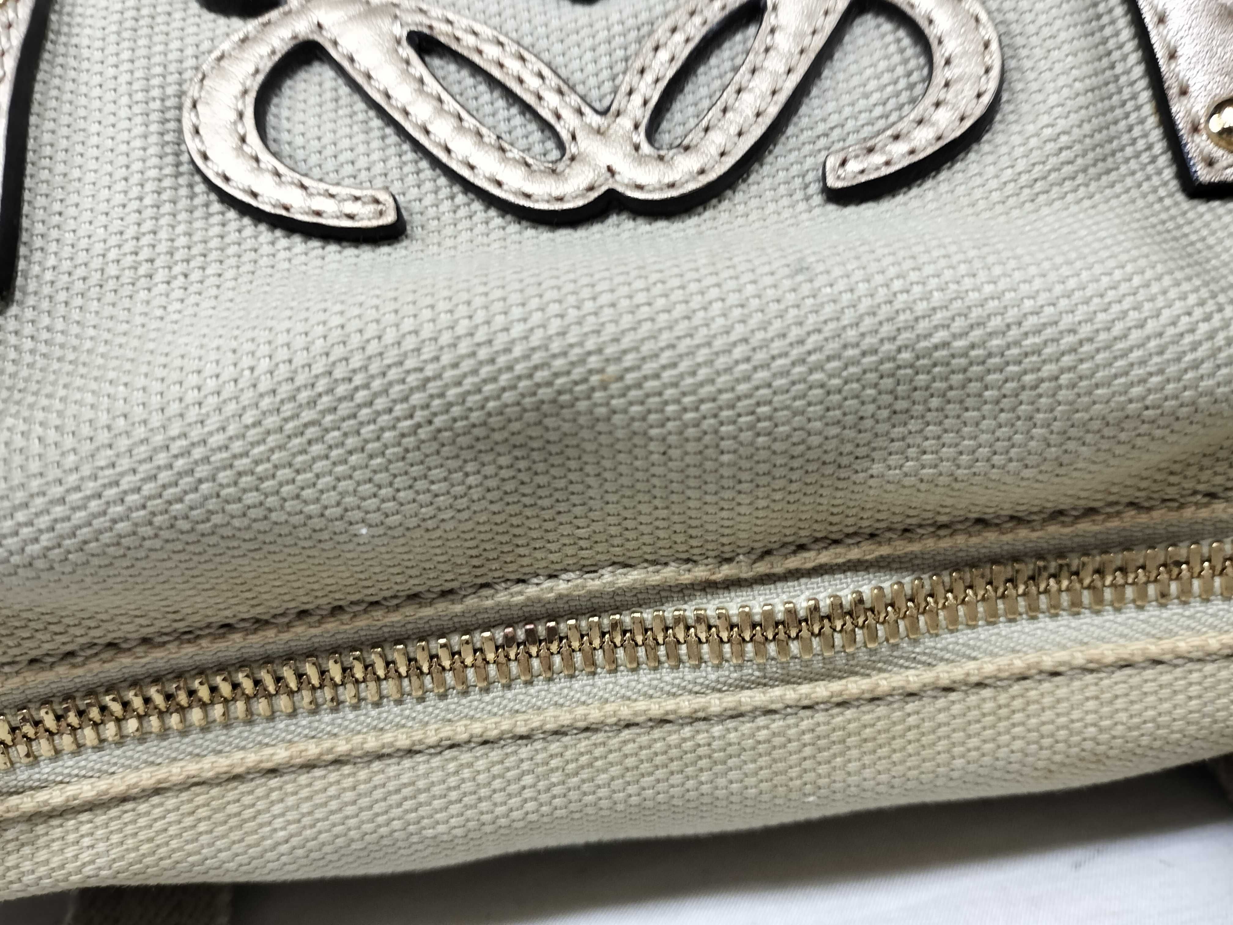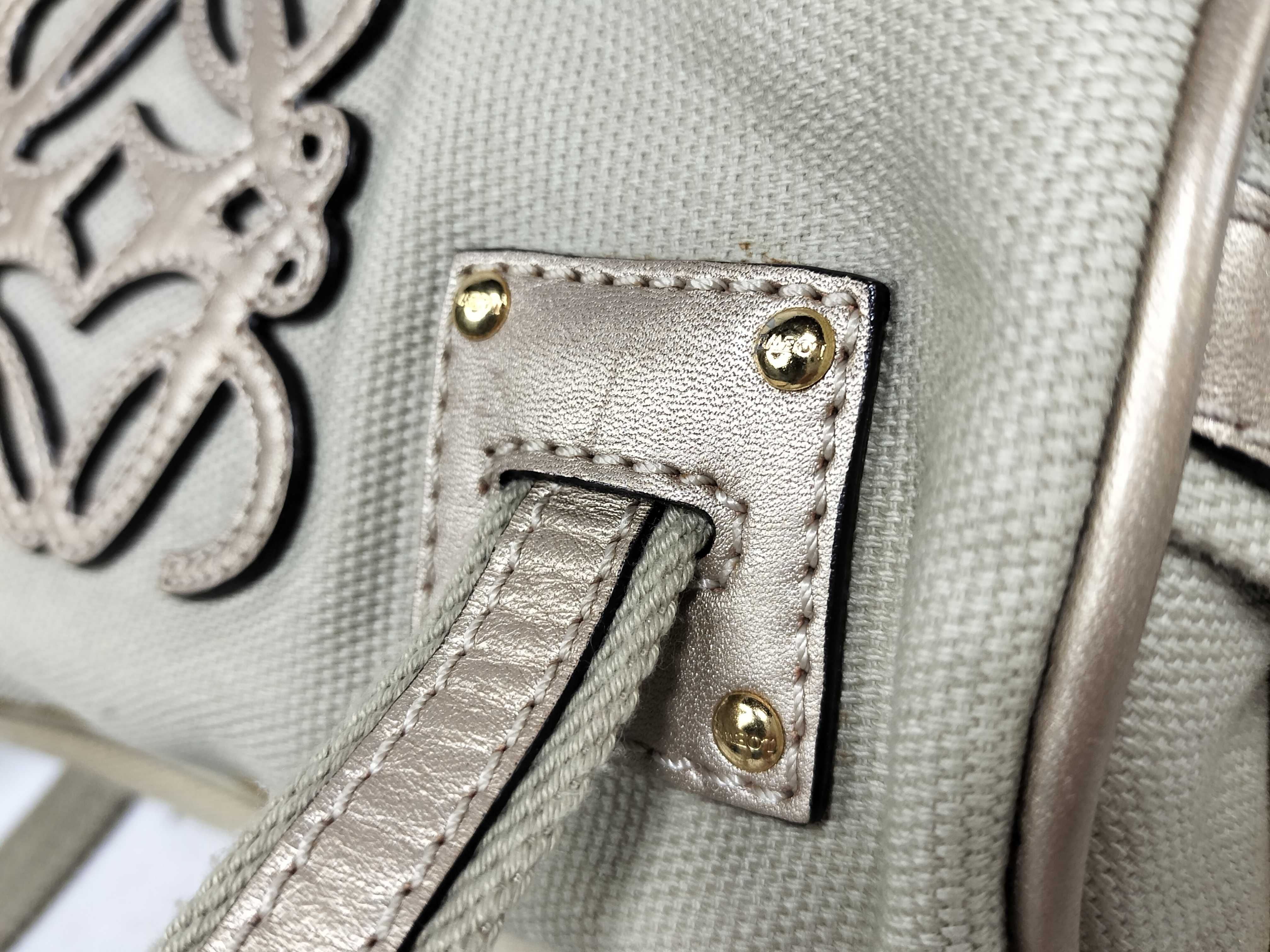 (E_0253)LOEWE ロエベ アナグラム キャンバス×レザー ハンドバッグ シルバー