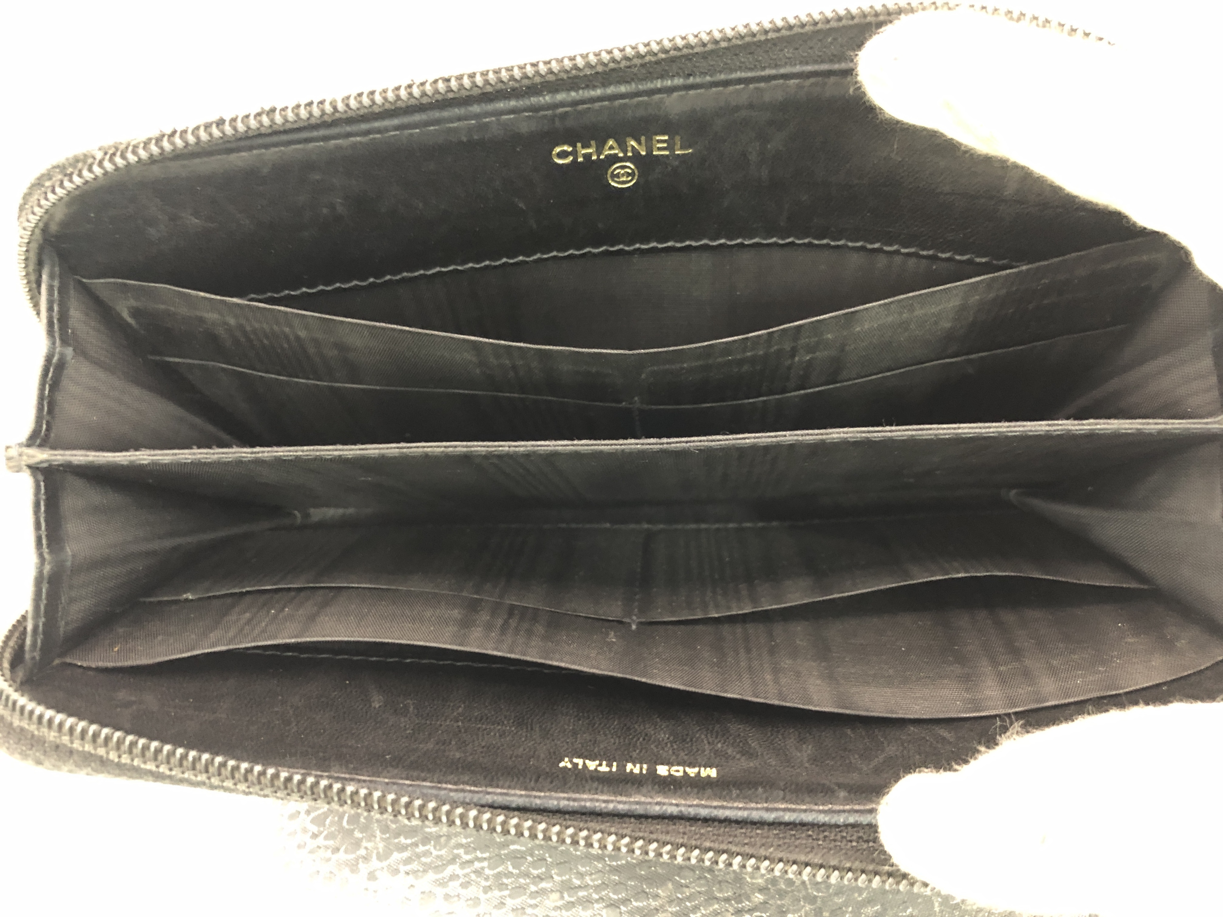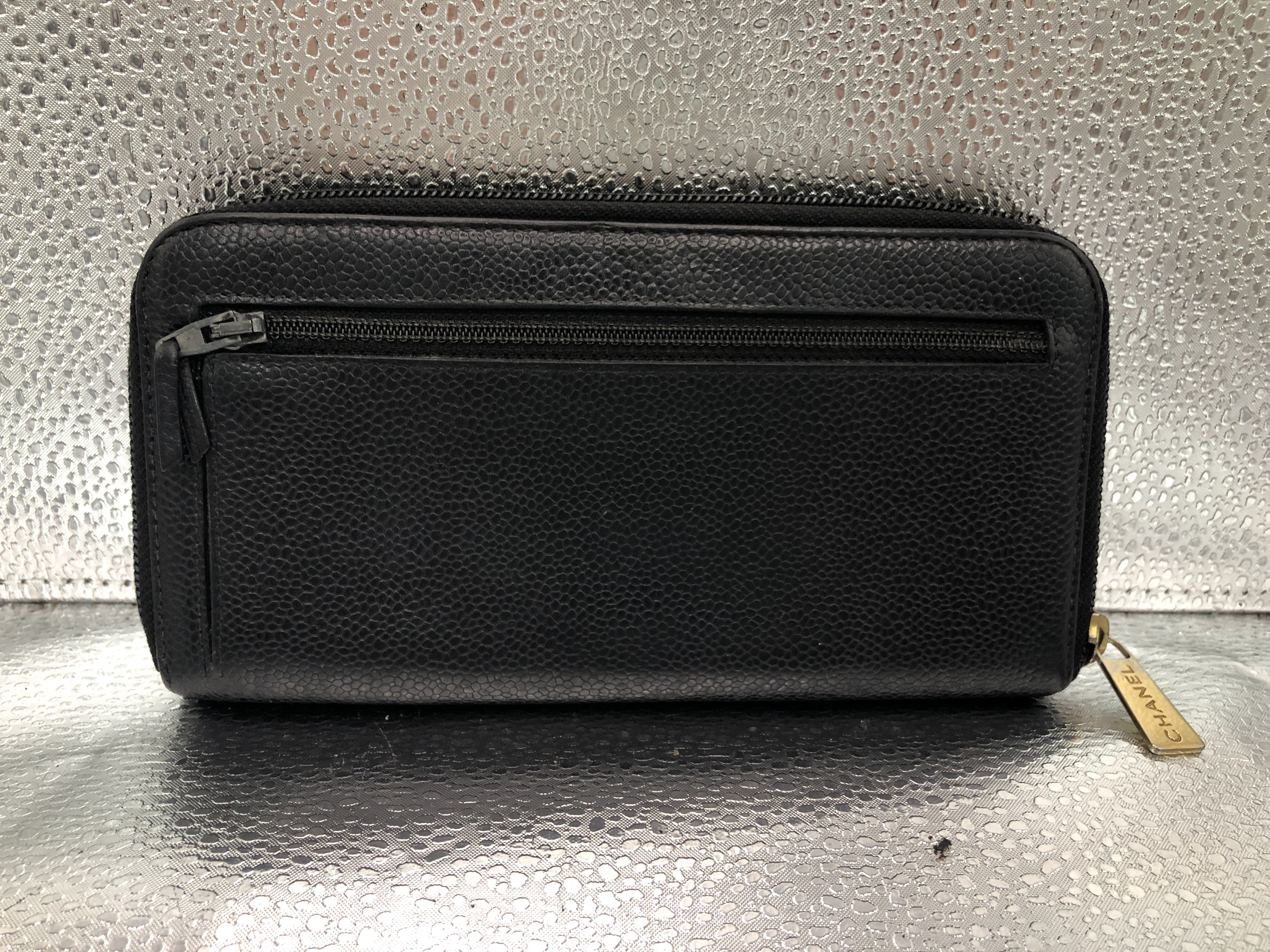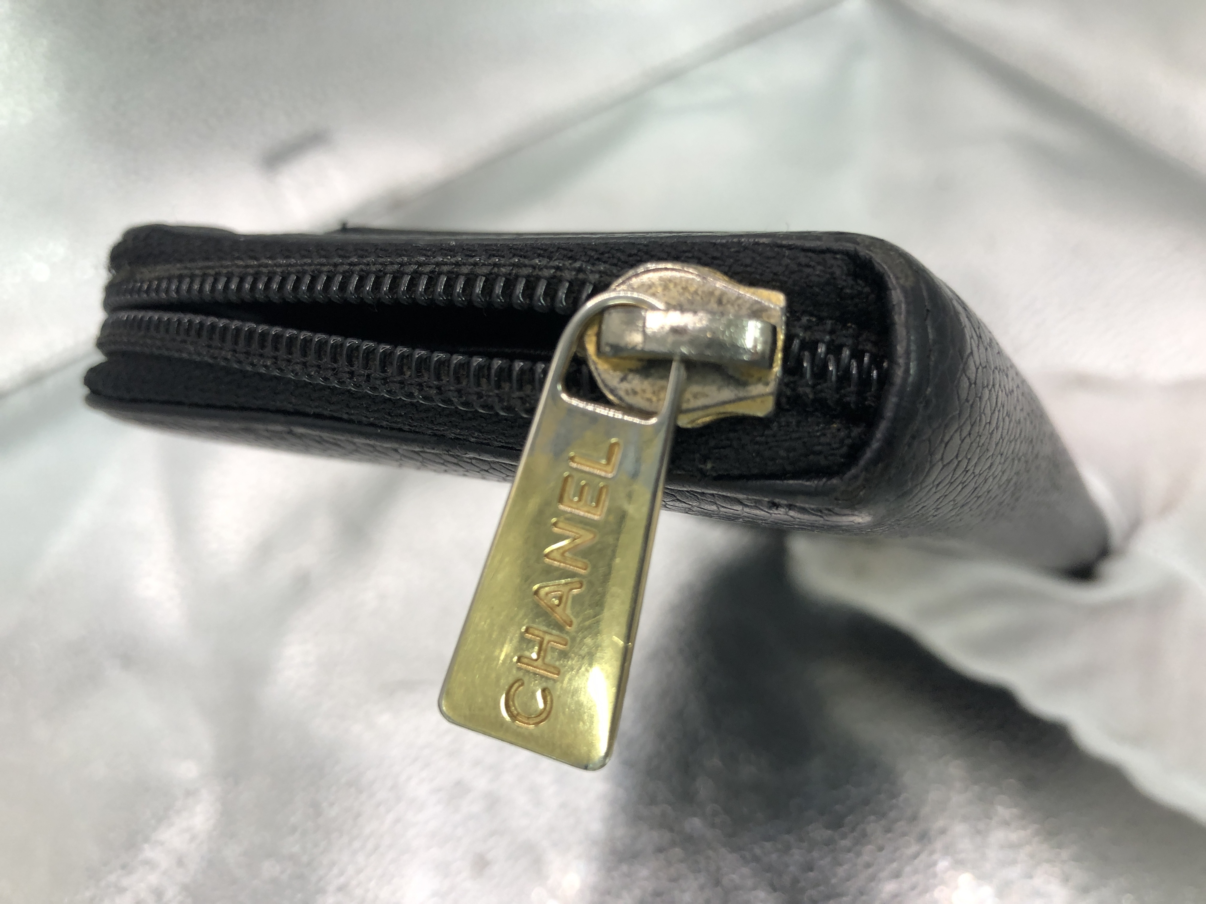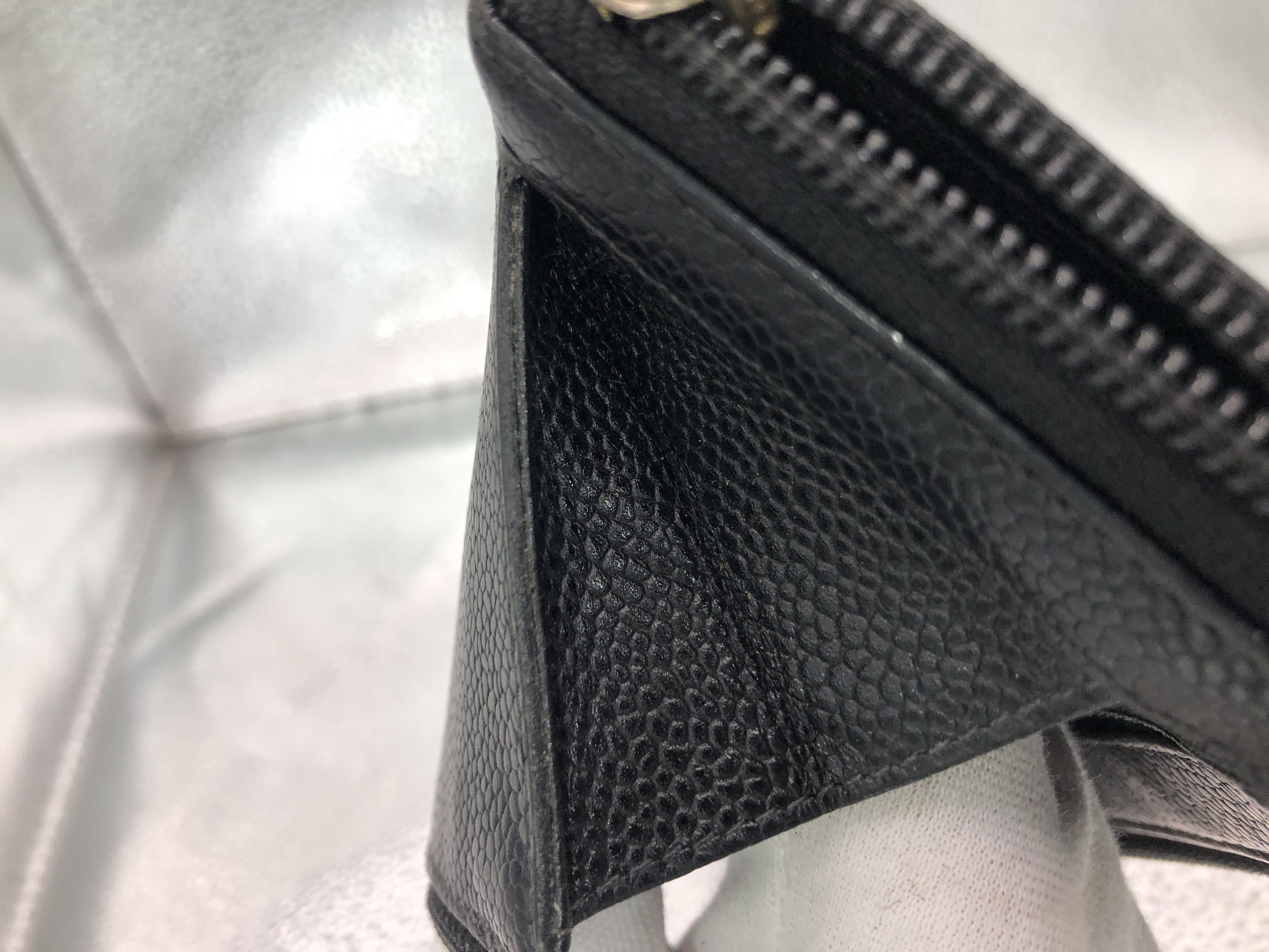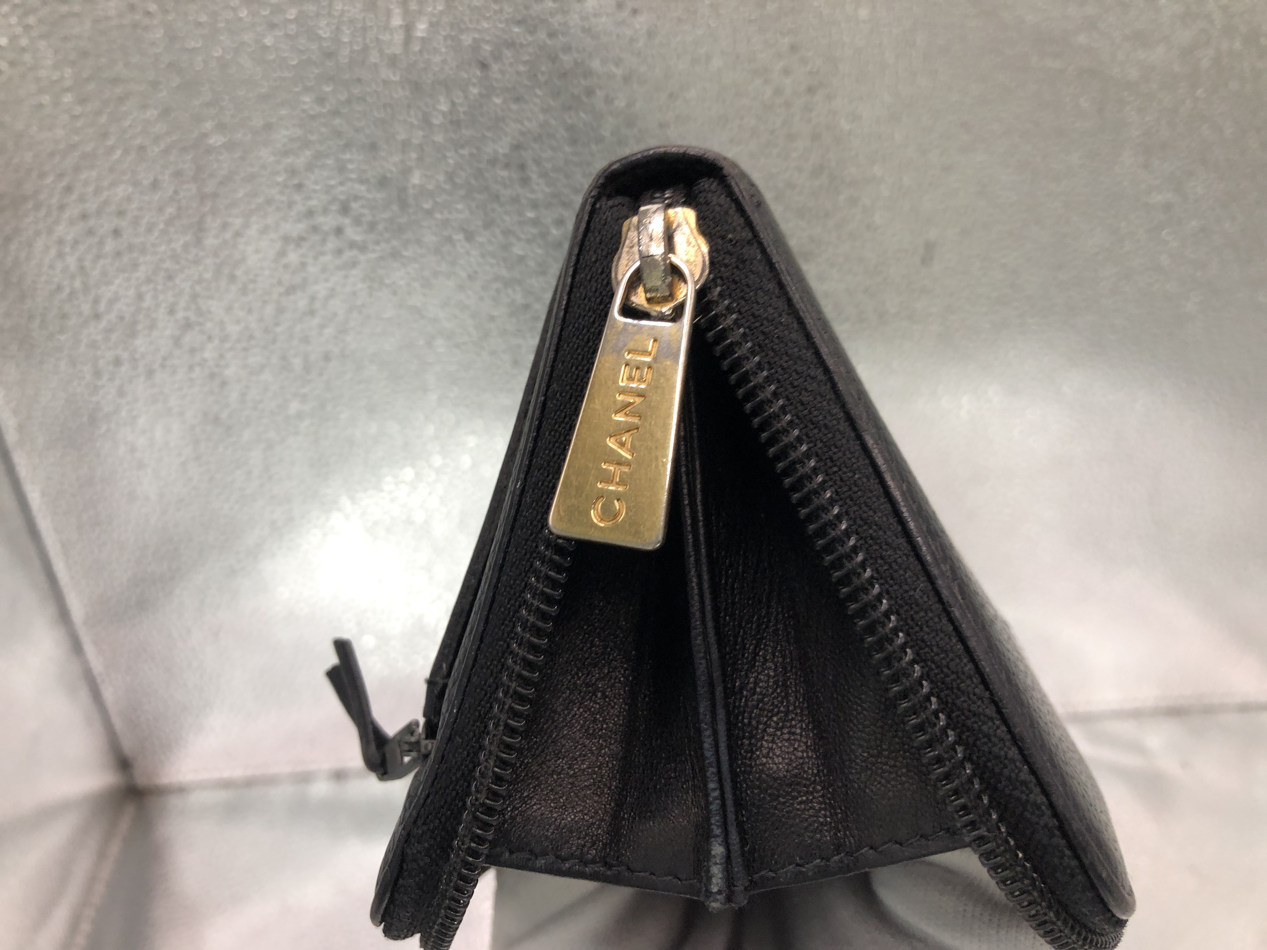 (11004_0020)CHANEL ココマーク ラウンドファスナー長財布 シール有 9750708 キャビアスキン ブラック