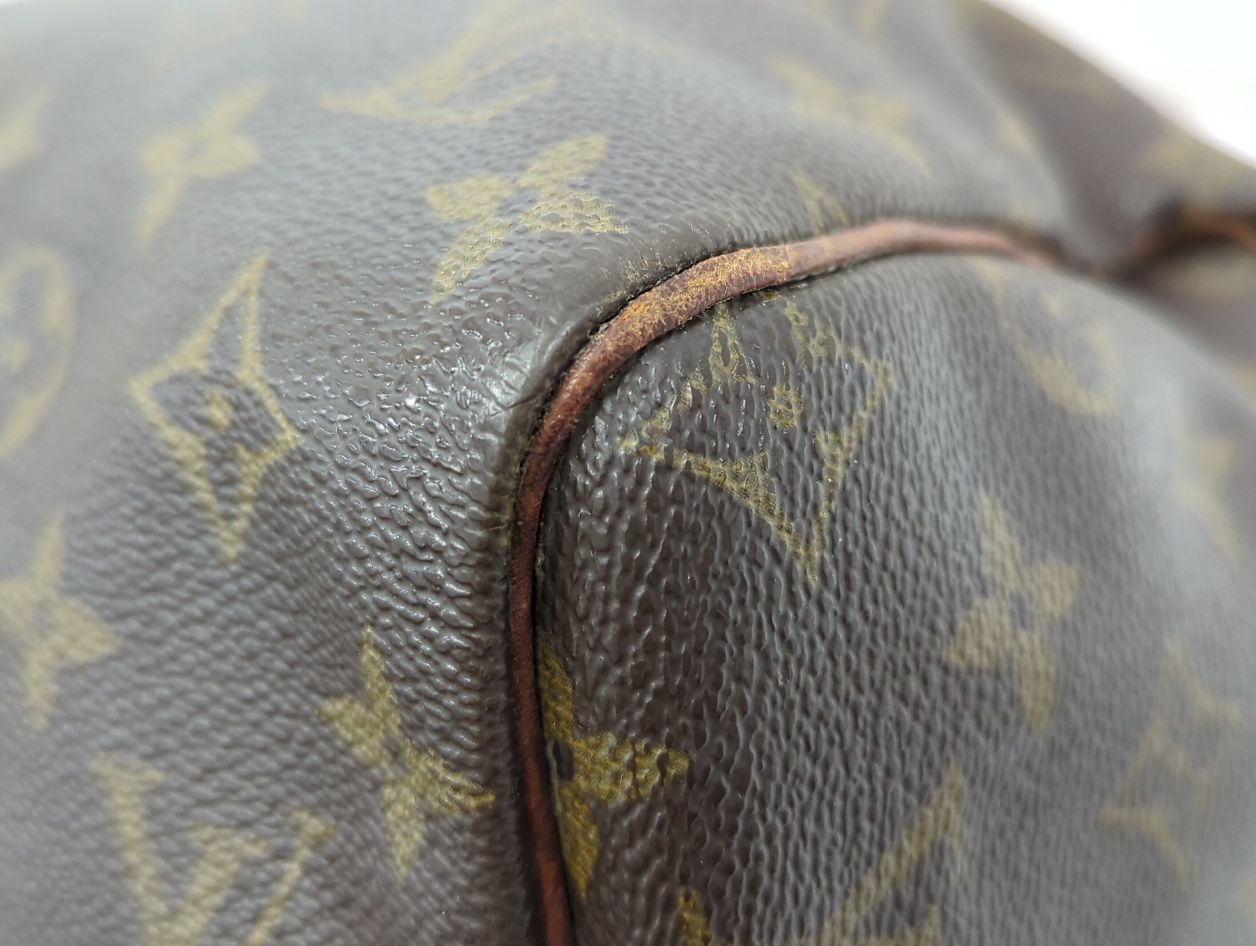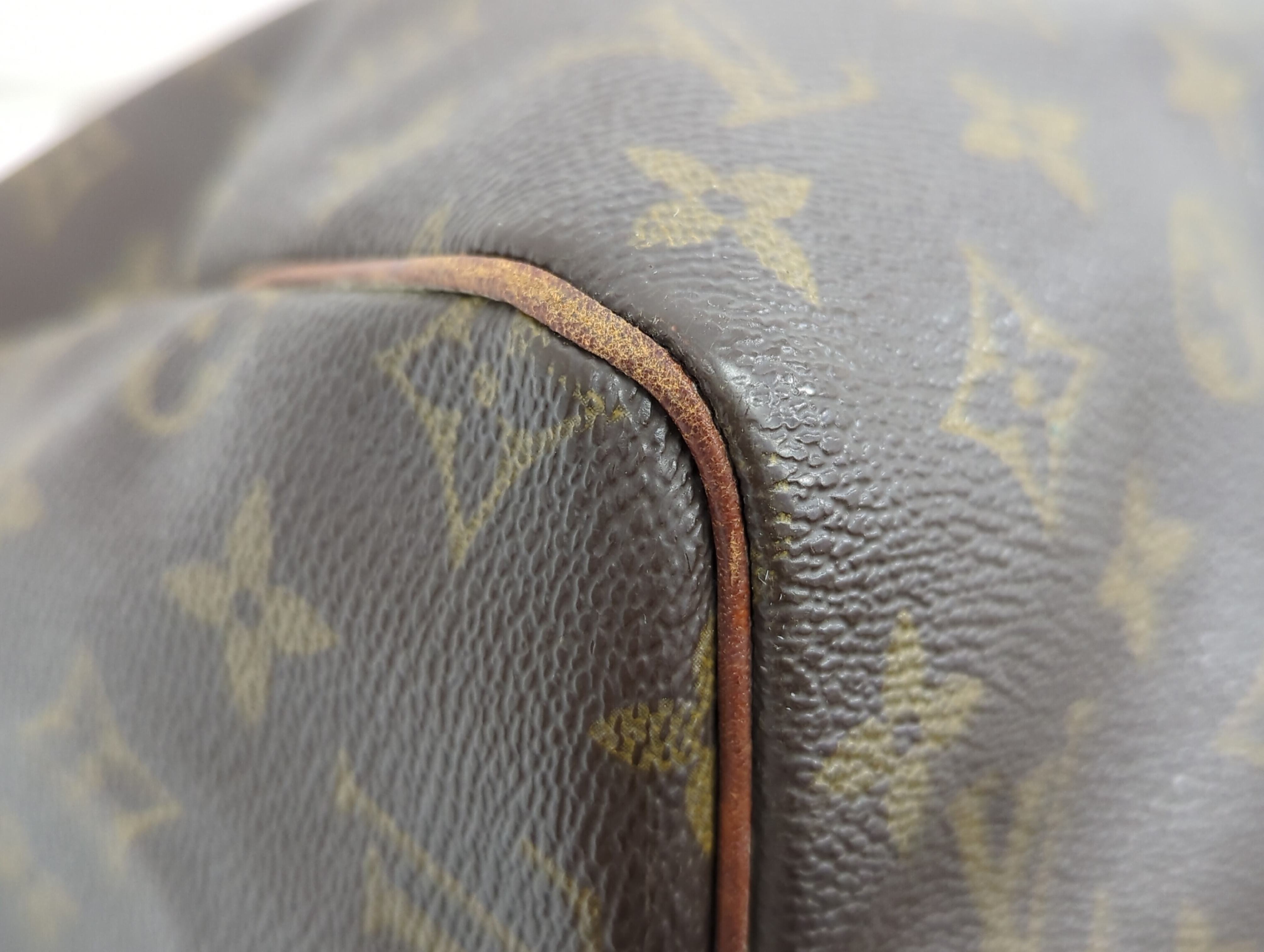 全体ヤケ擦れ(中) 角擦れ(中) 持ち手ヤケ擦れ(中) 耳伸びあり 付け根よれ(中) 金具キズ(中) 内側ペン跡あり 内側破れあり 湿気臭あり【シリアル
