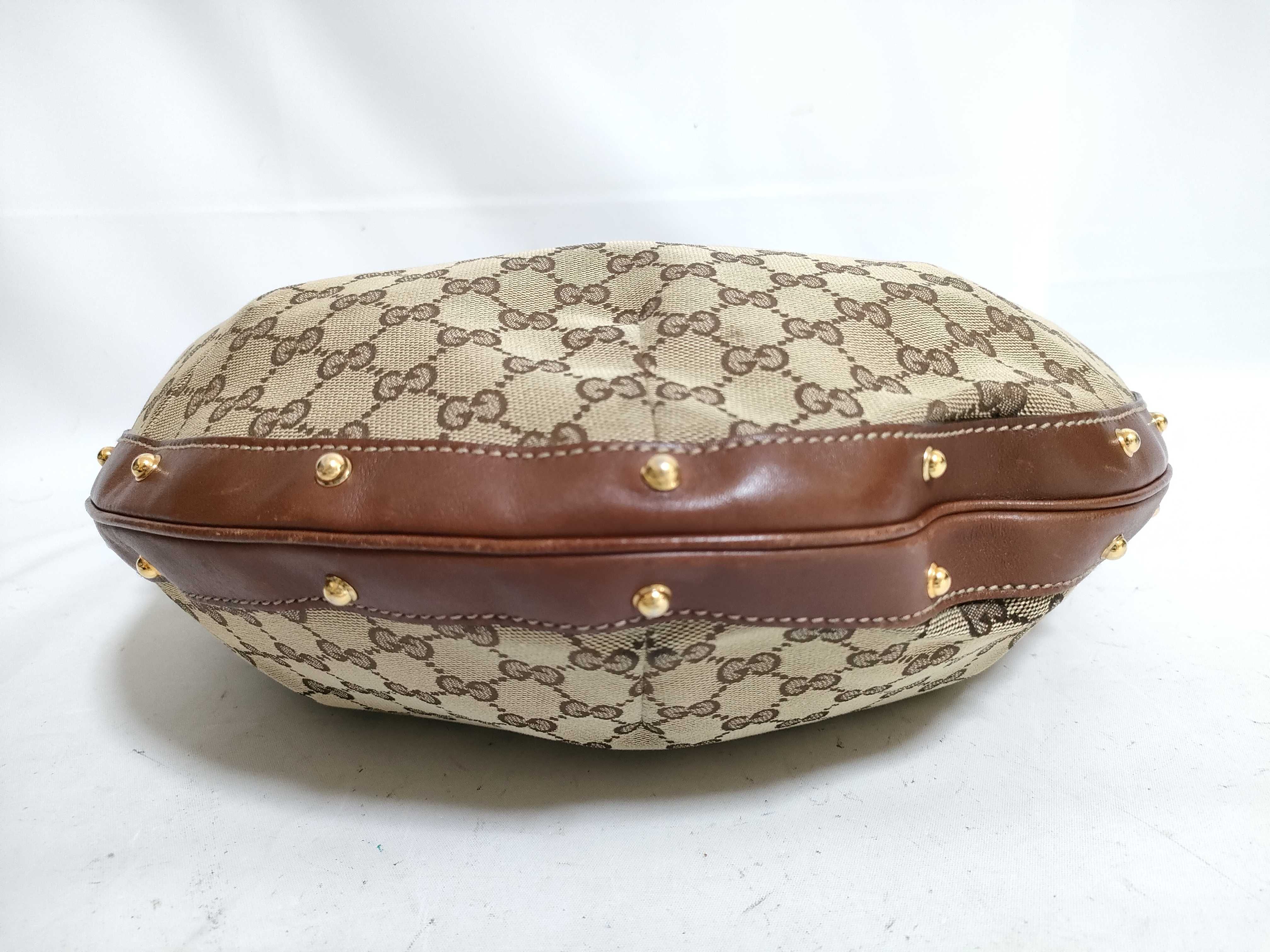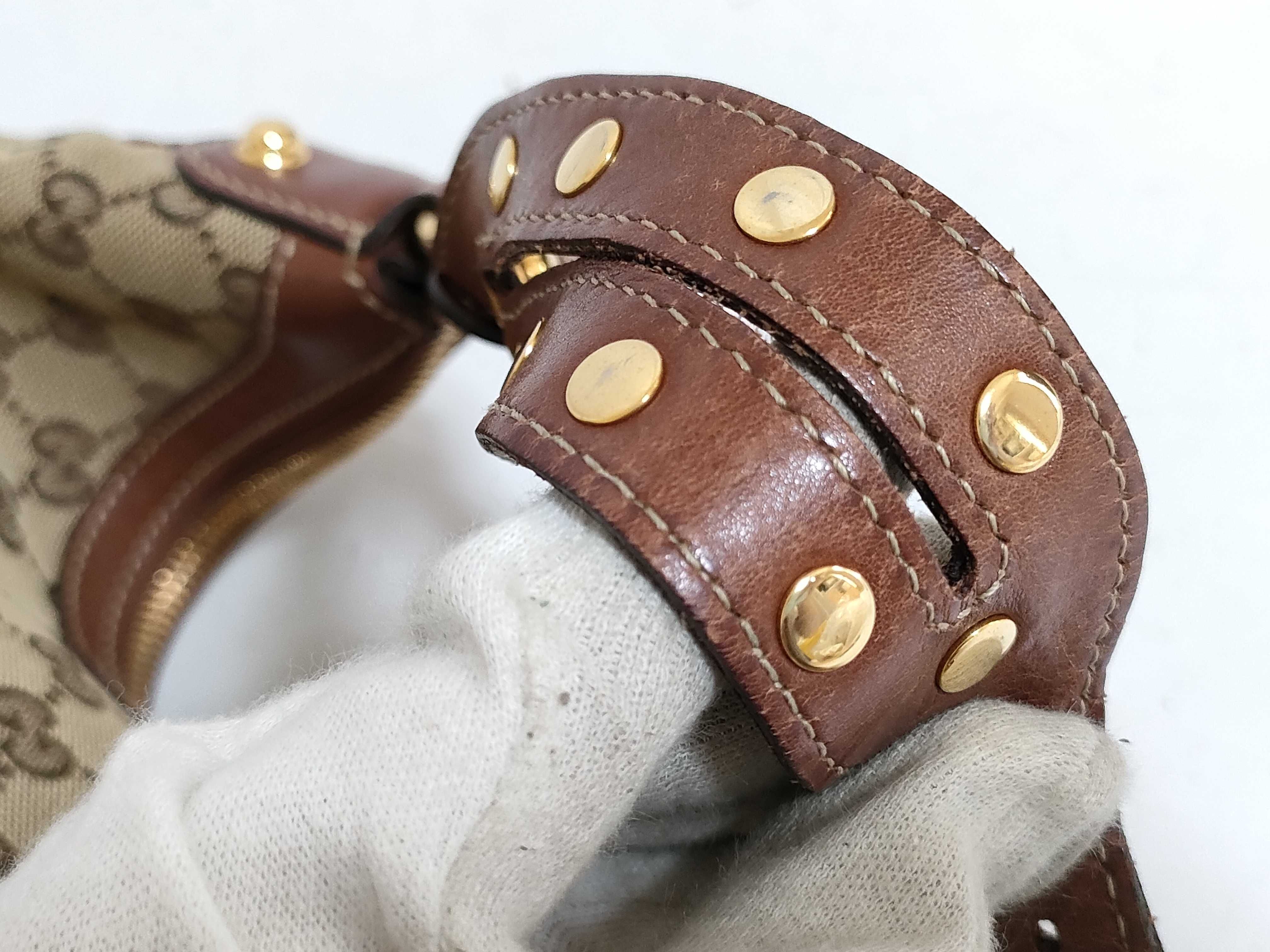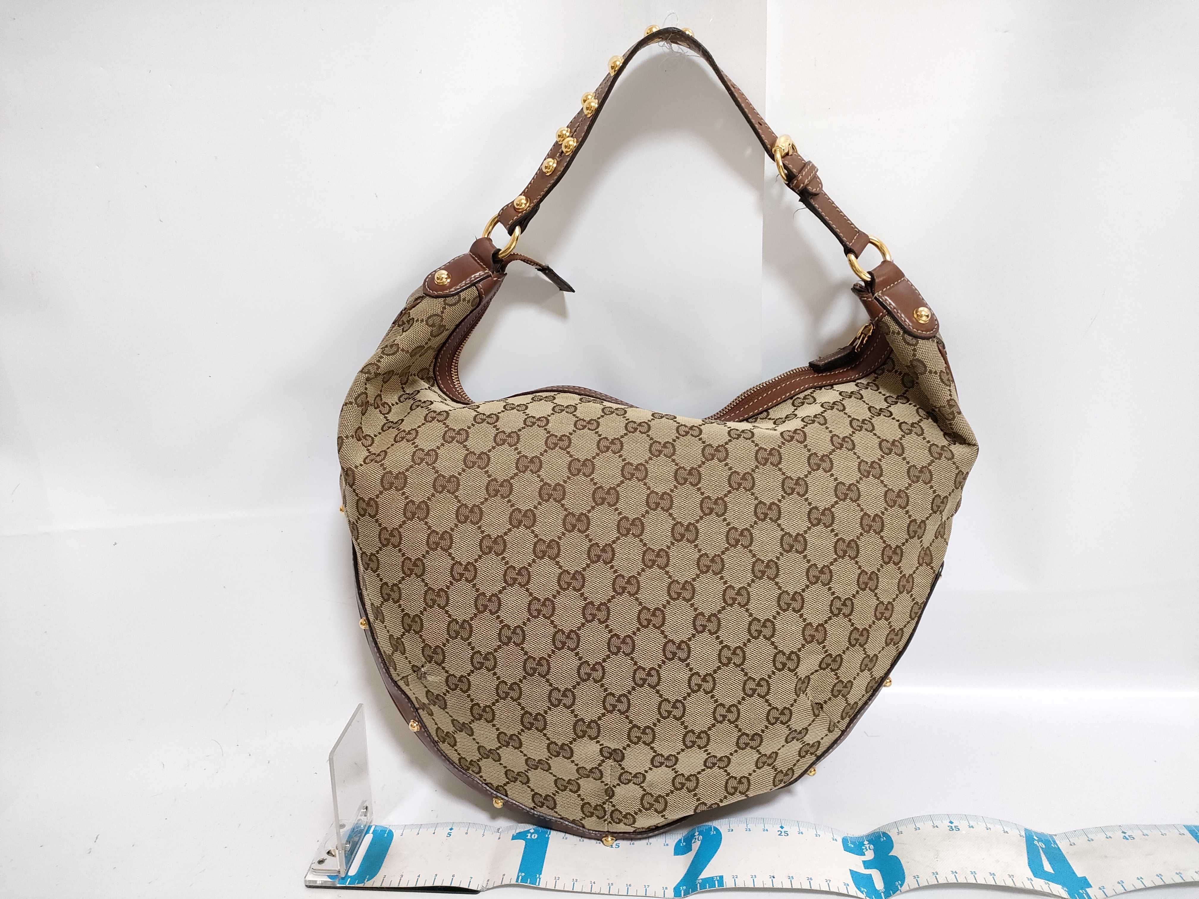 (11006_0035)GUCCI グッチ GGキャンバス キャンバス×レザー ワンショルダーバッグ ブラウン 159406