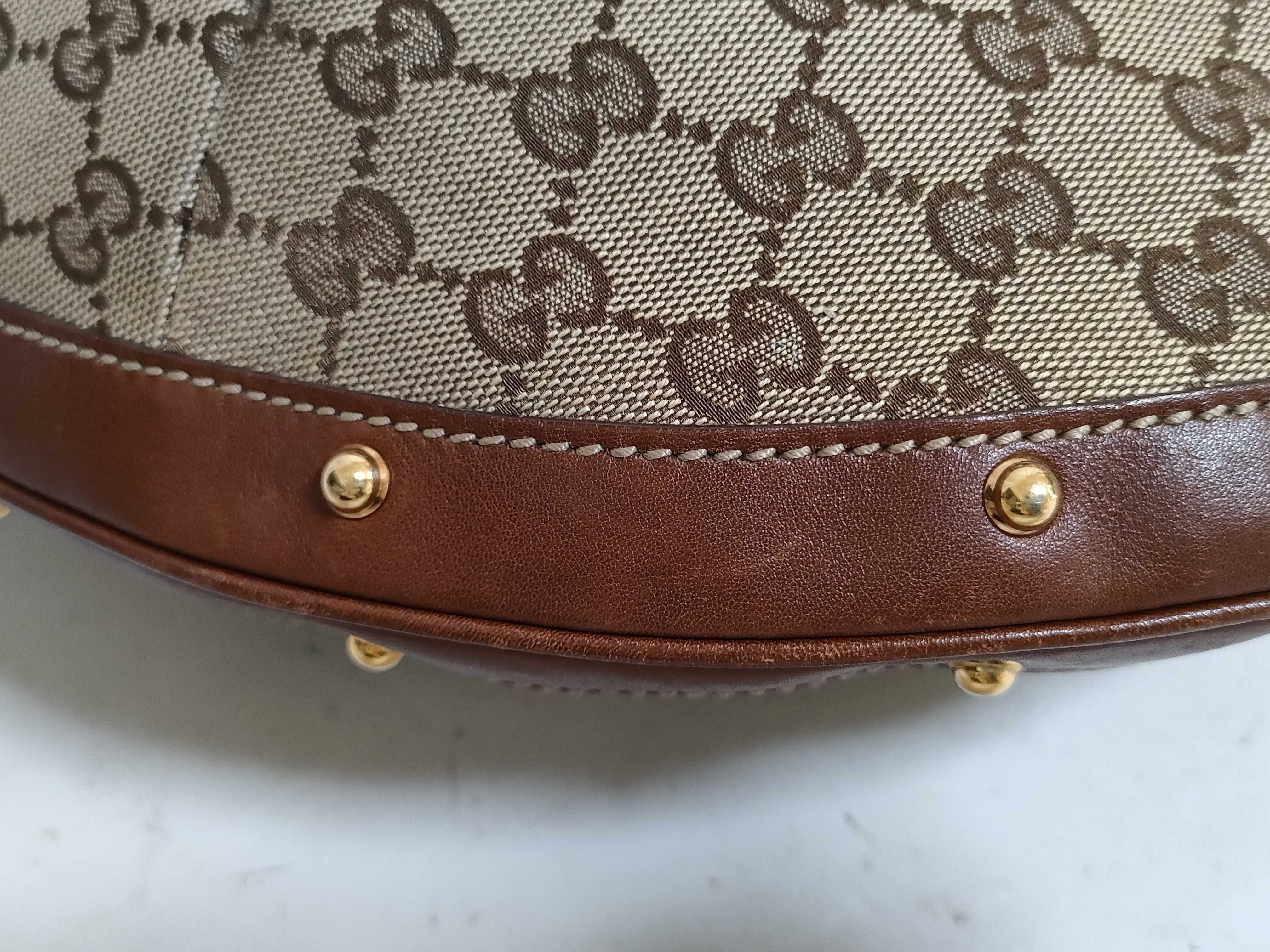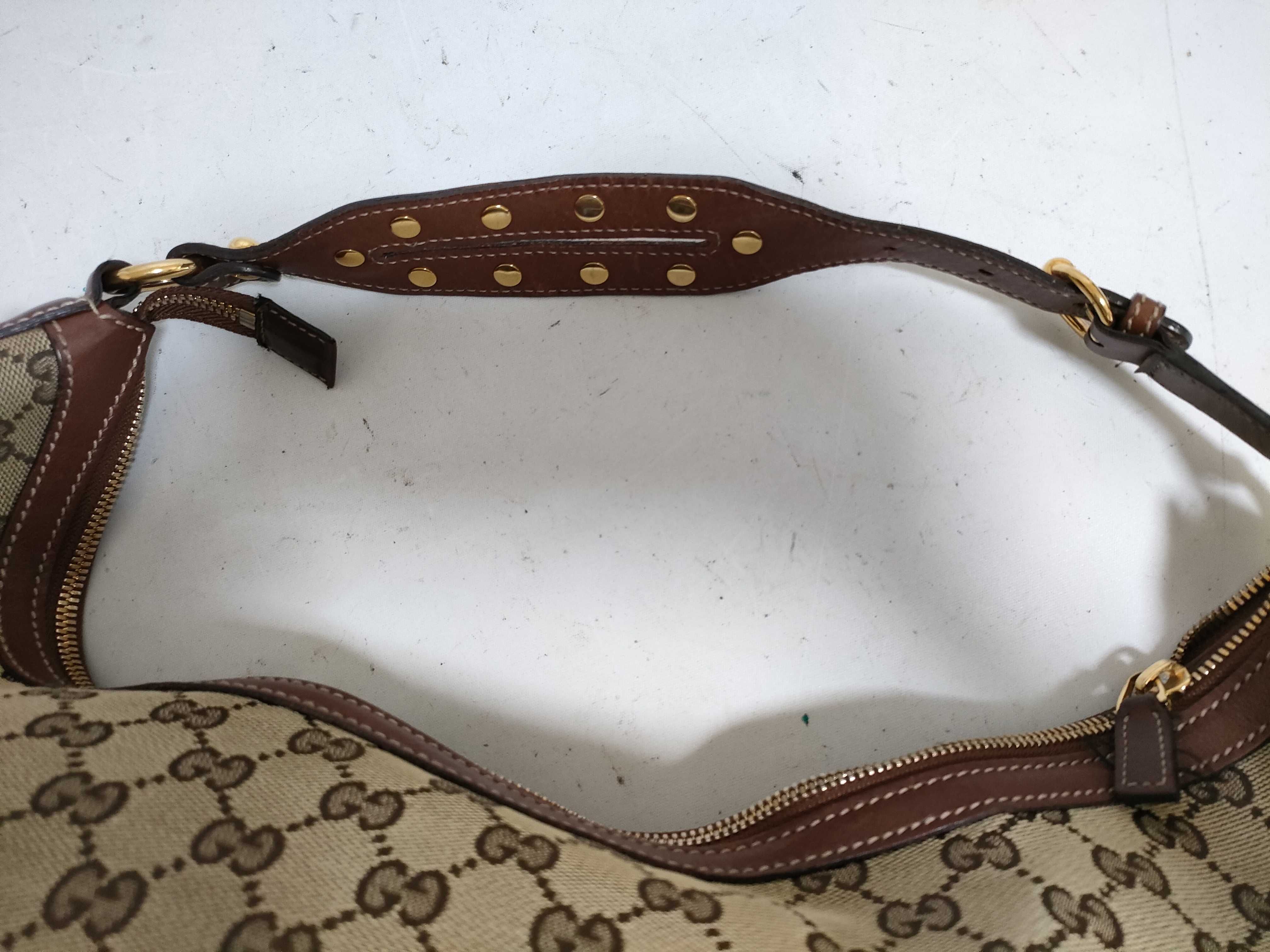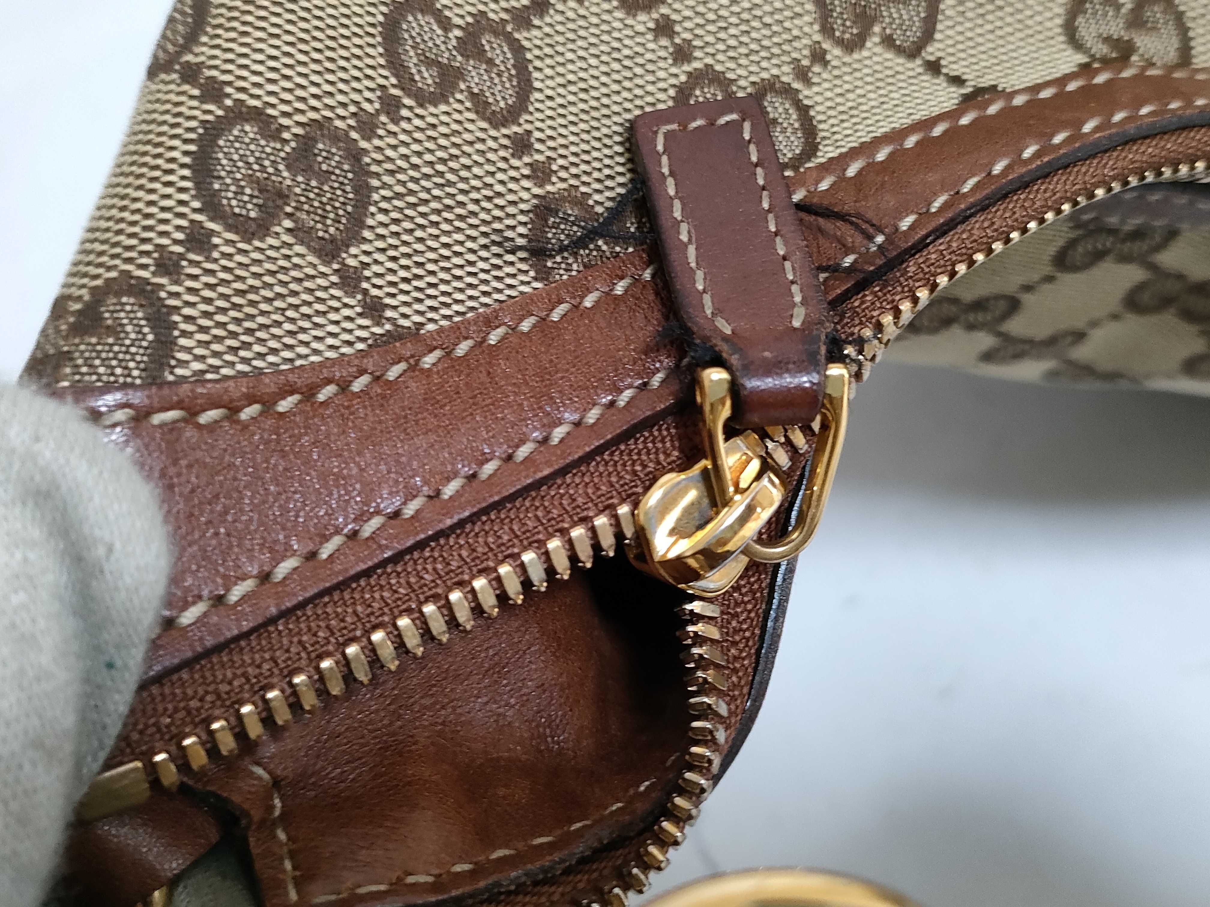 (11006_0035)GUCCI グッチ GGキャンバス キャンバス×レザー ワンショルダーバッグ ブラウン 159406