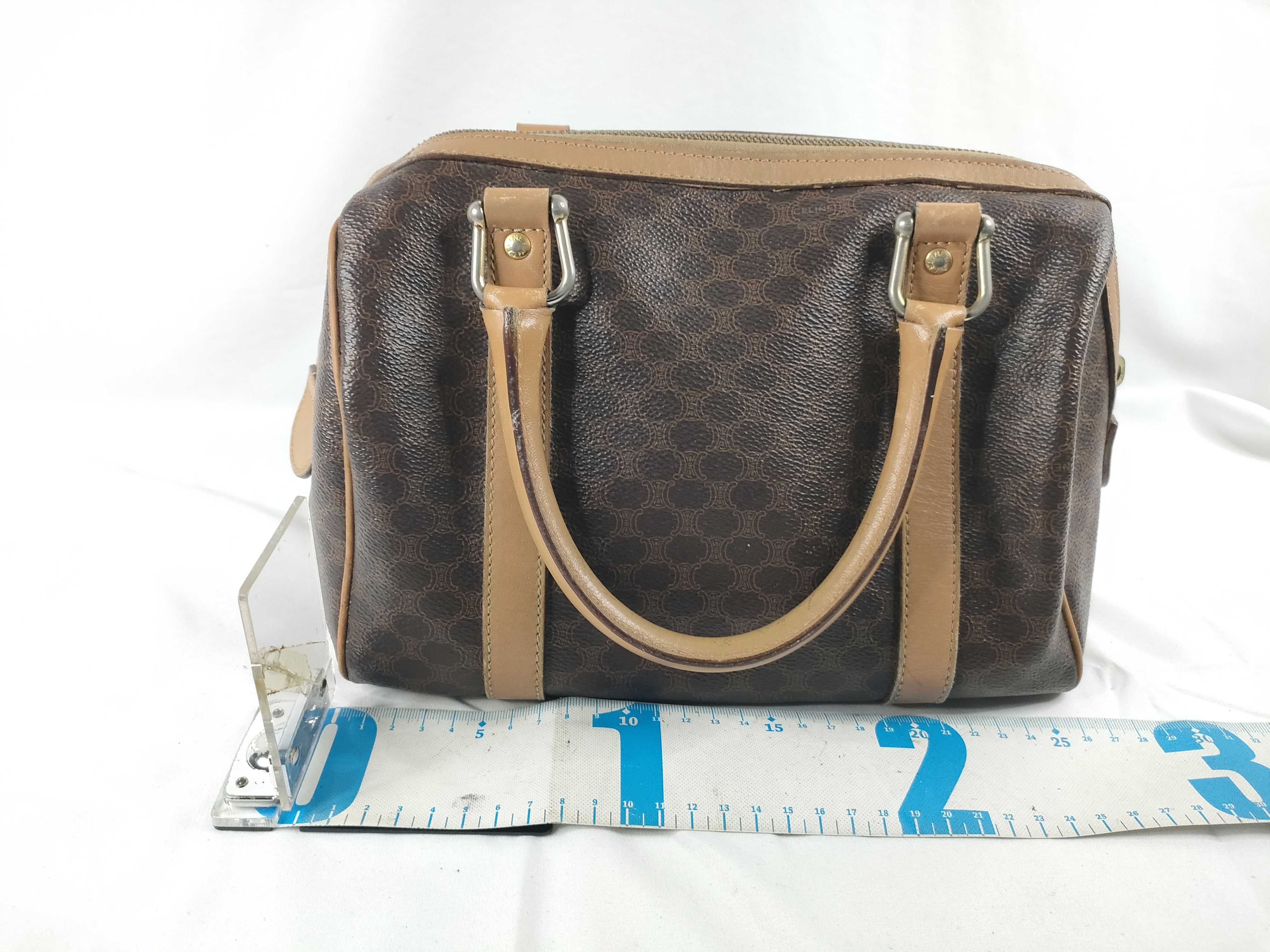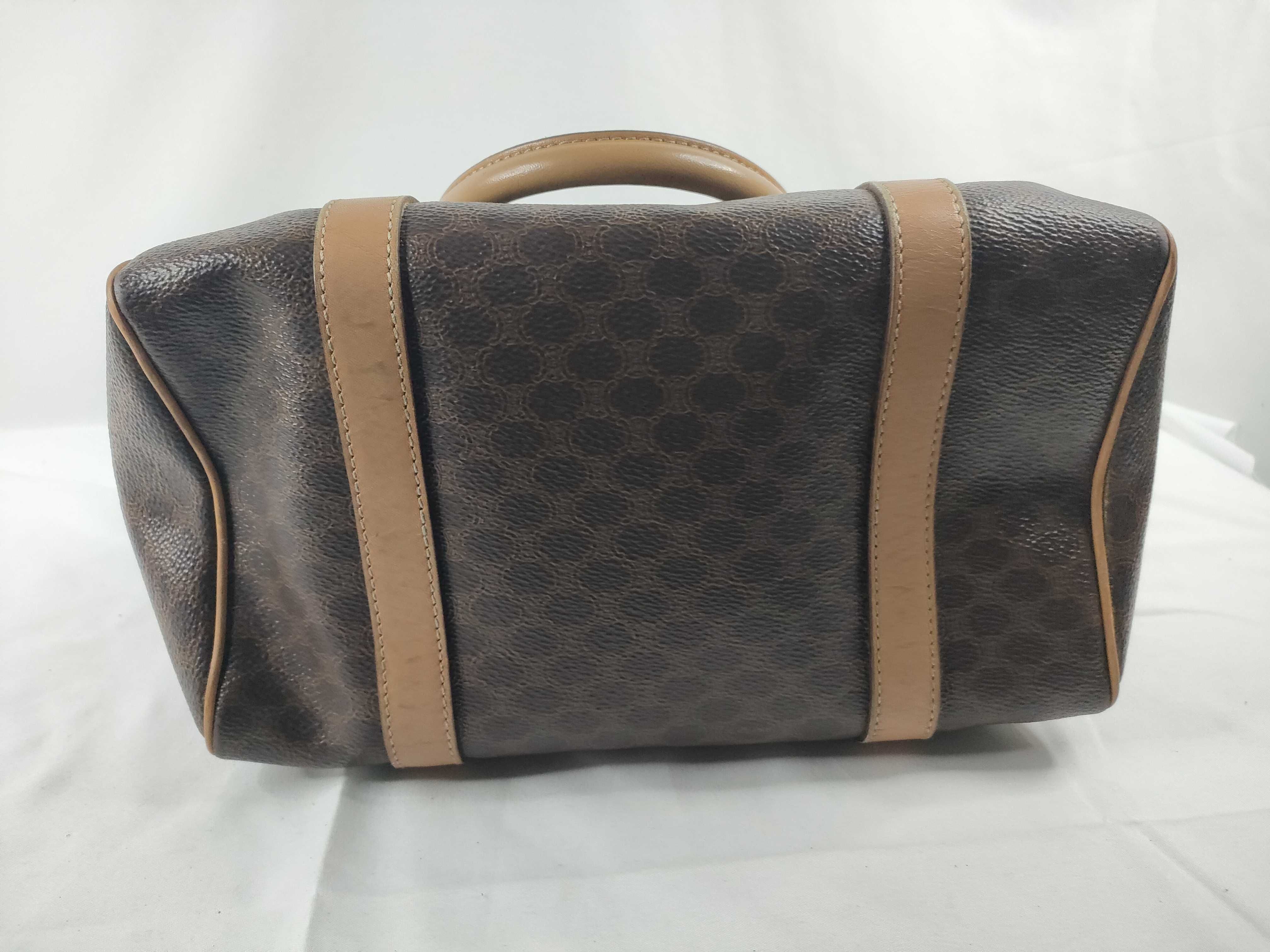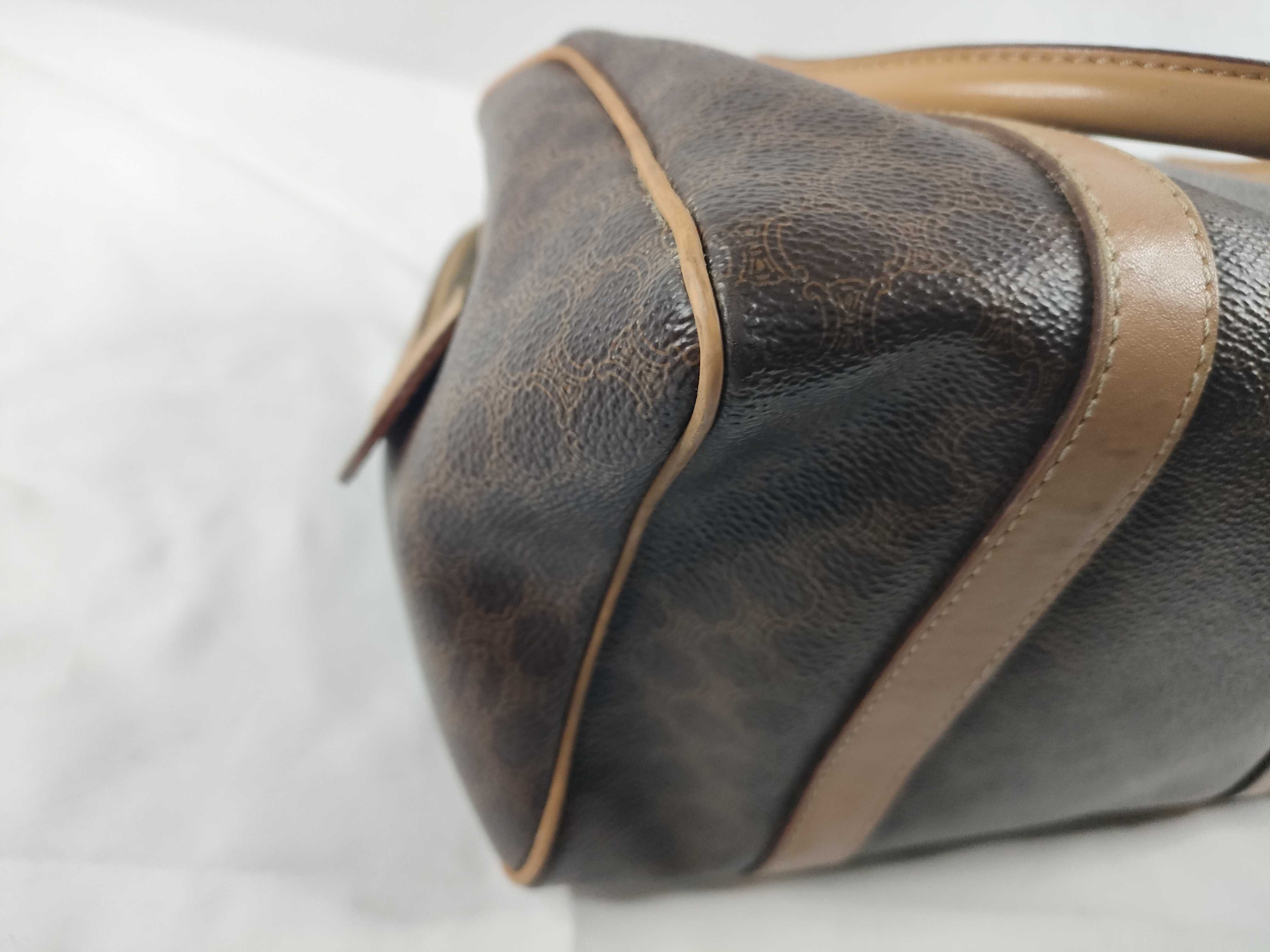 (11006_0091)CELINE セリーヌ マカダム PVC×レザー ハンドバッグ M12 ブラウン×ベージュ