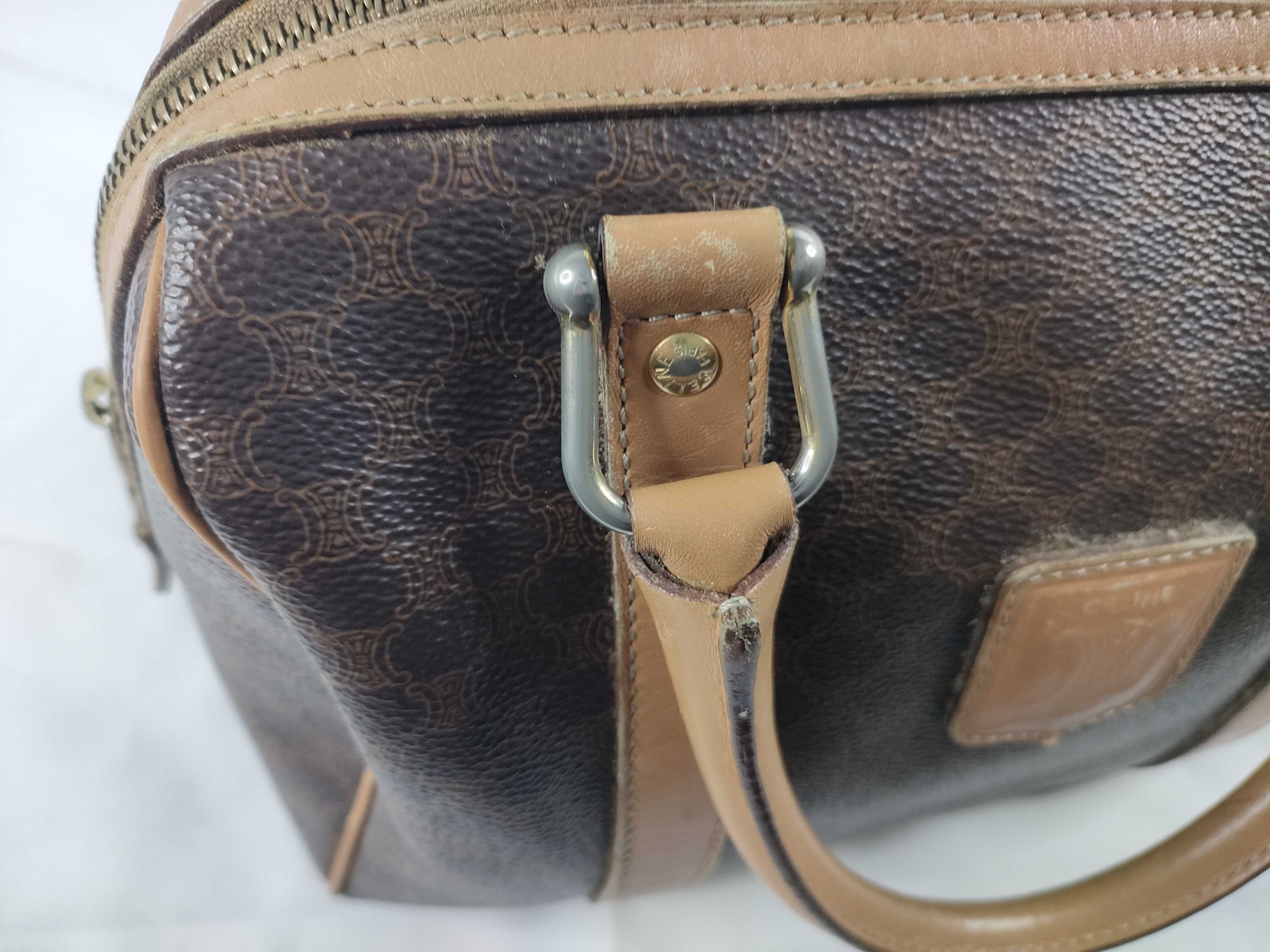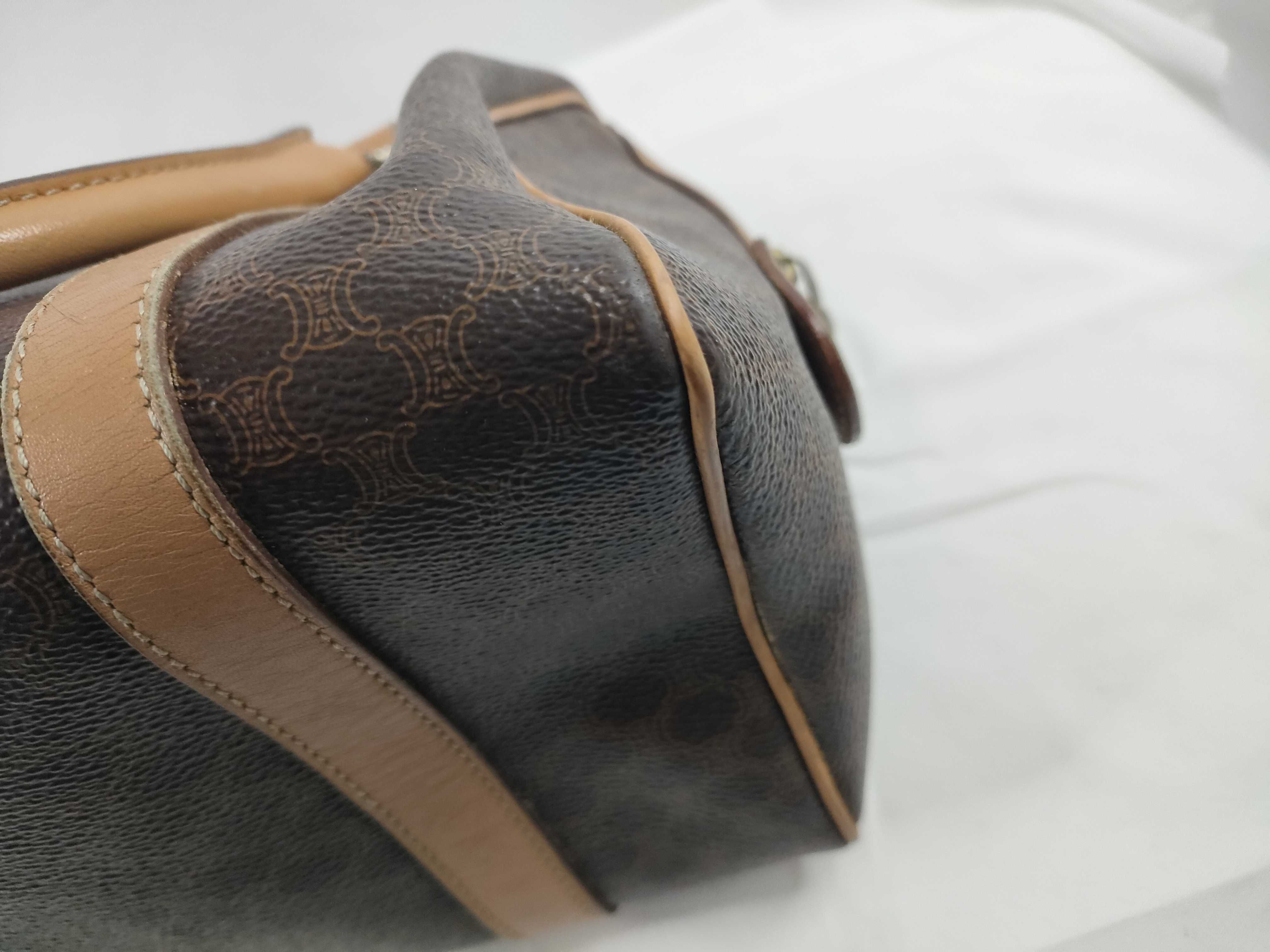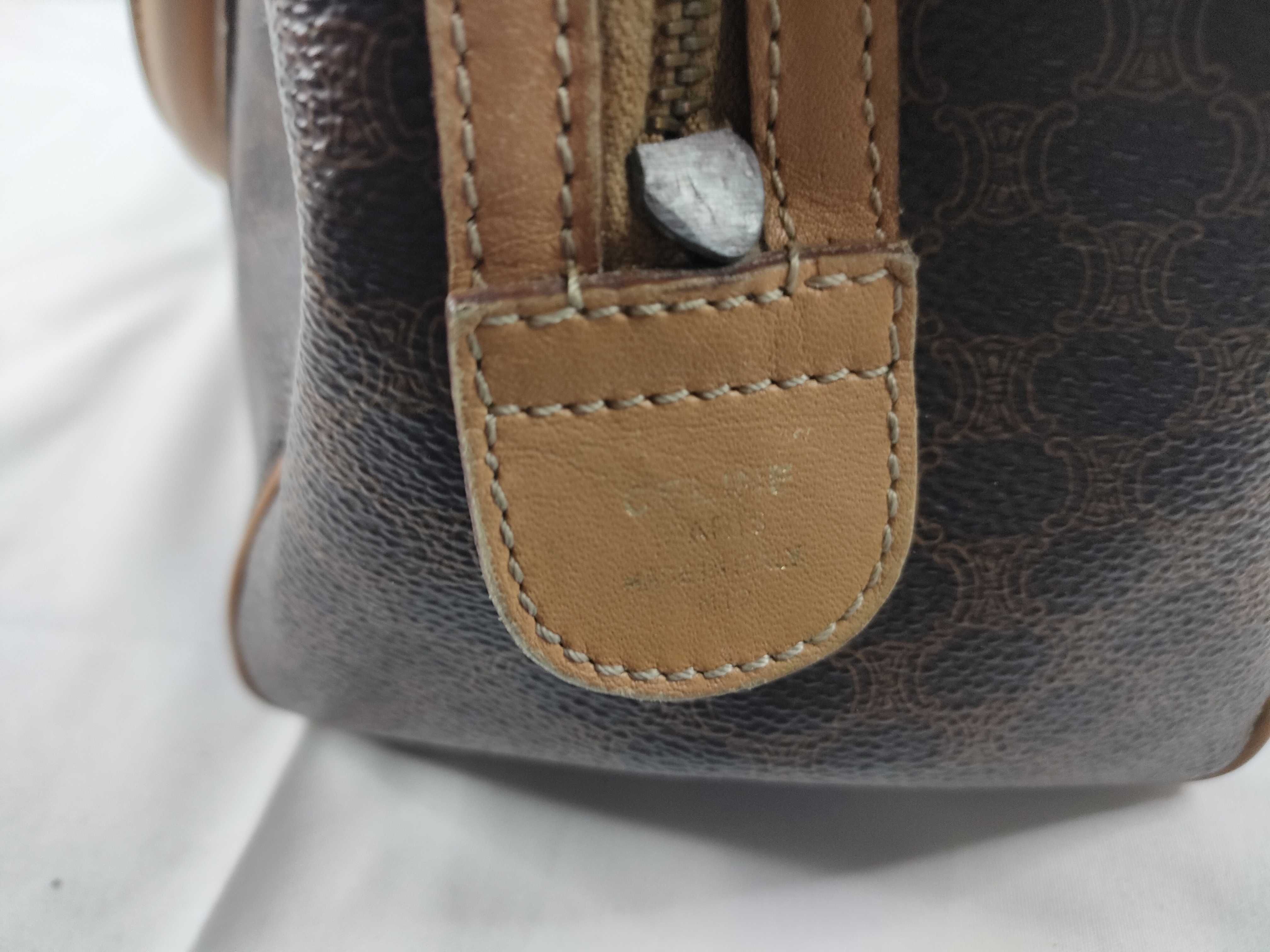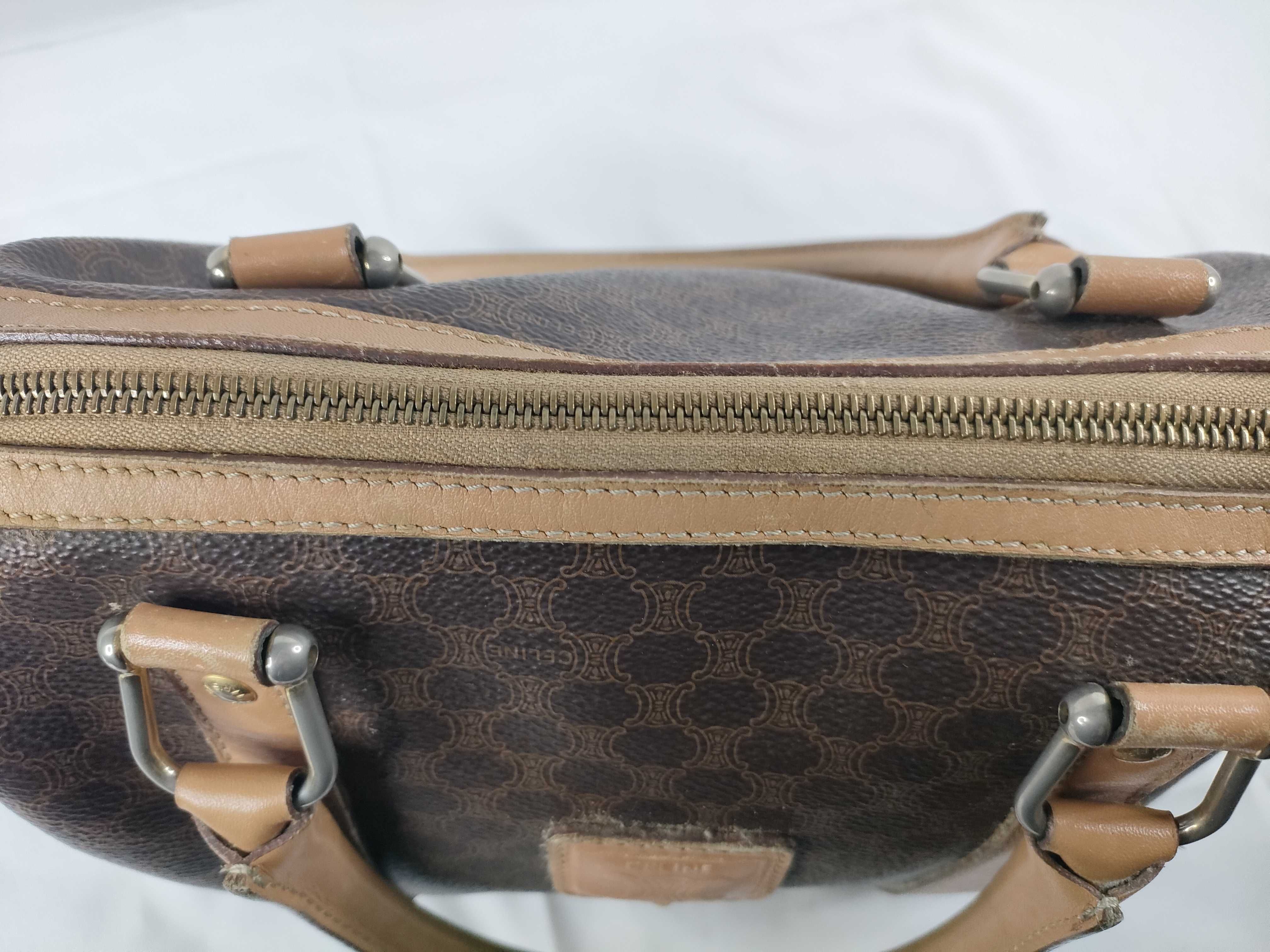 (11006_0091)CELINE セリーヌ マカダム PVC×レザー ハンドバッグ M12 ブラウン×ベージュ